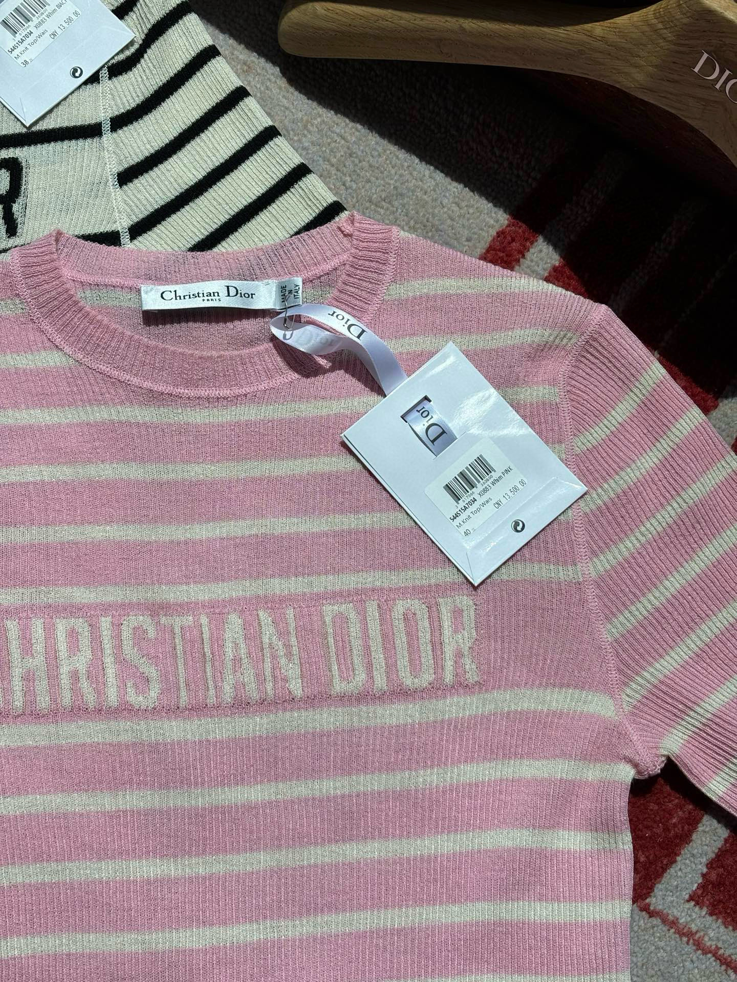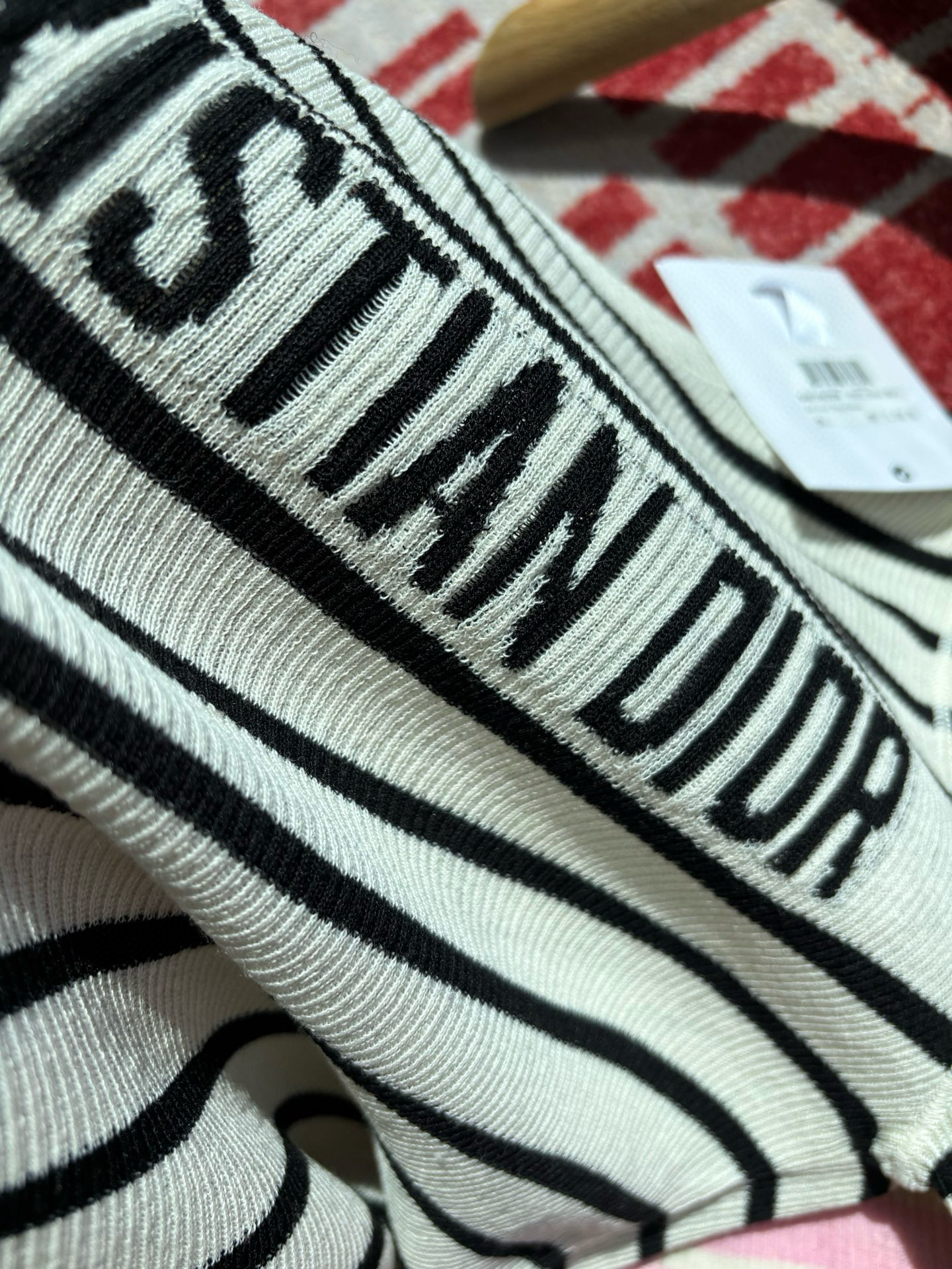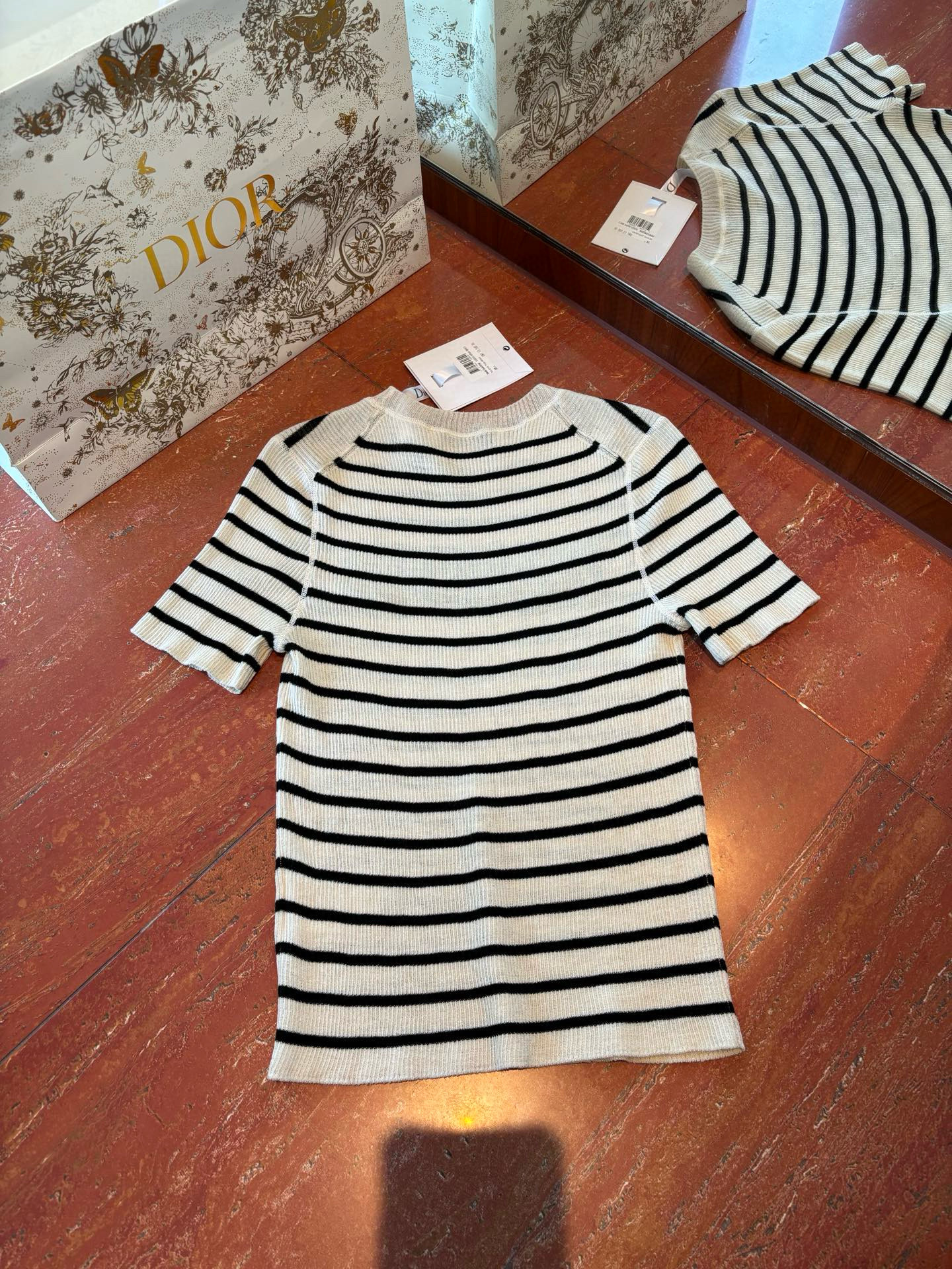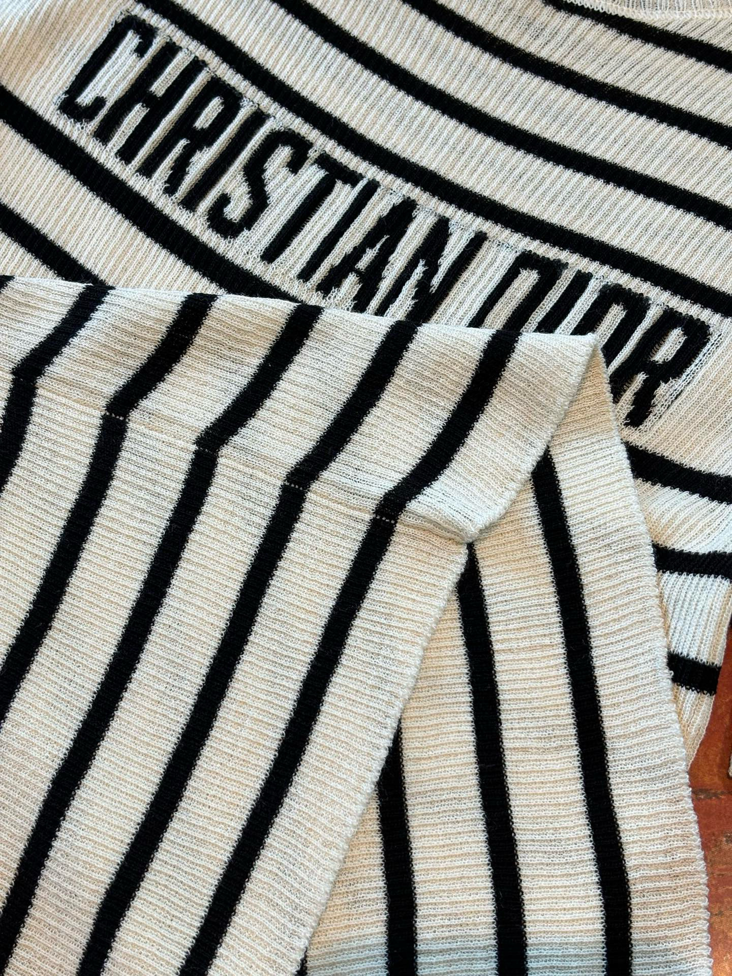 NIGO DIOR Dioriviera Women's Summer Black And White Striped Appliquéd Letters Knit Round Neck Short Sleeve T-shirt #nigo76872