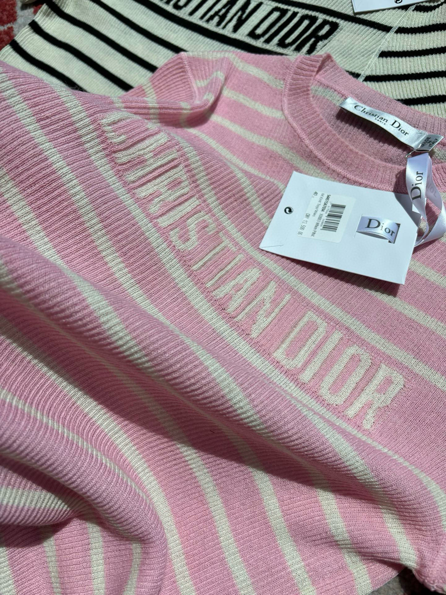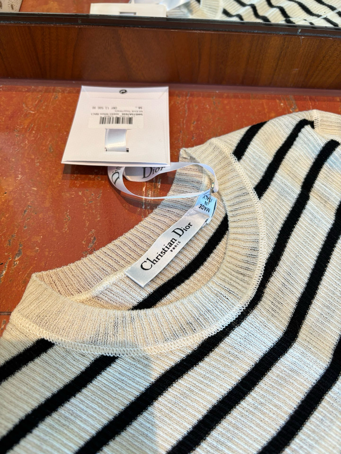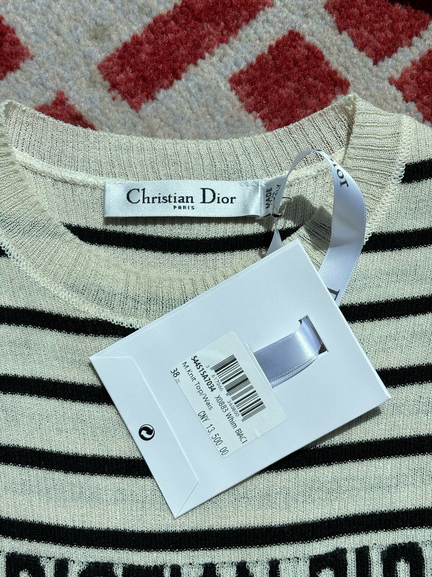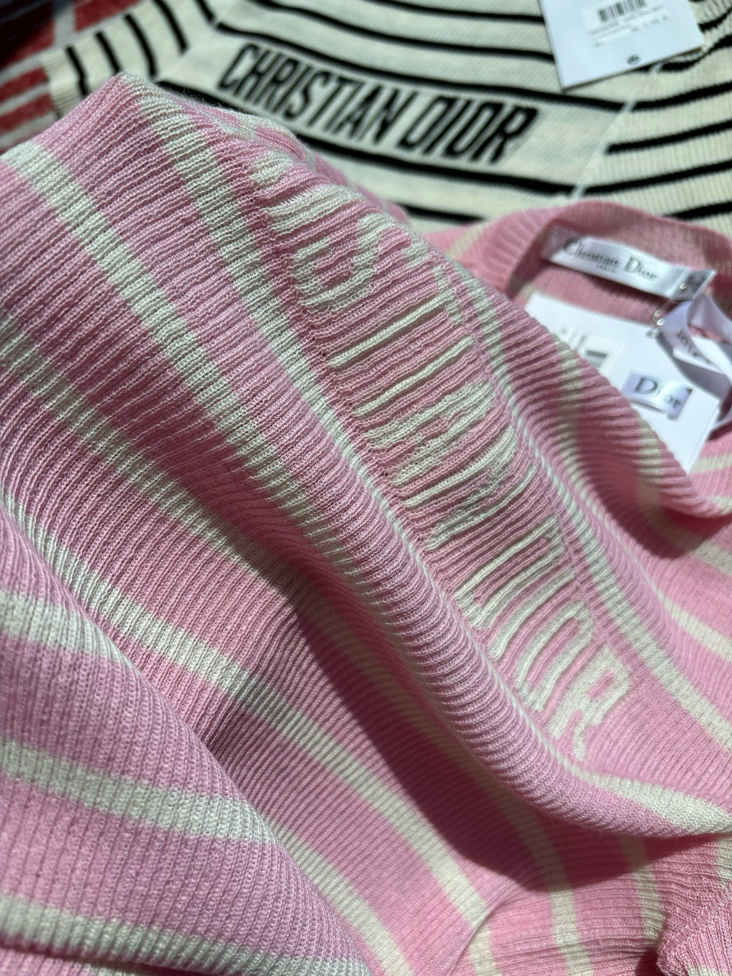 NIGO DIOR Dioriviera Women's Summer Black And White Striped Appliquéd Letters Knit Round Neck Short Sleeve T-shirt #nigo76872