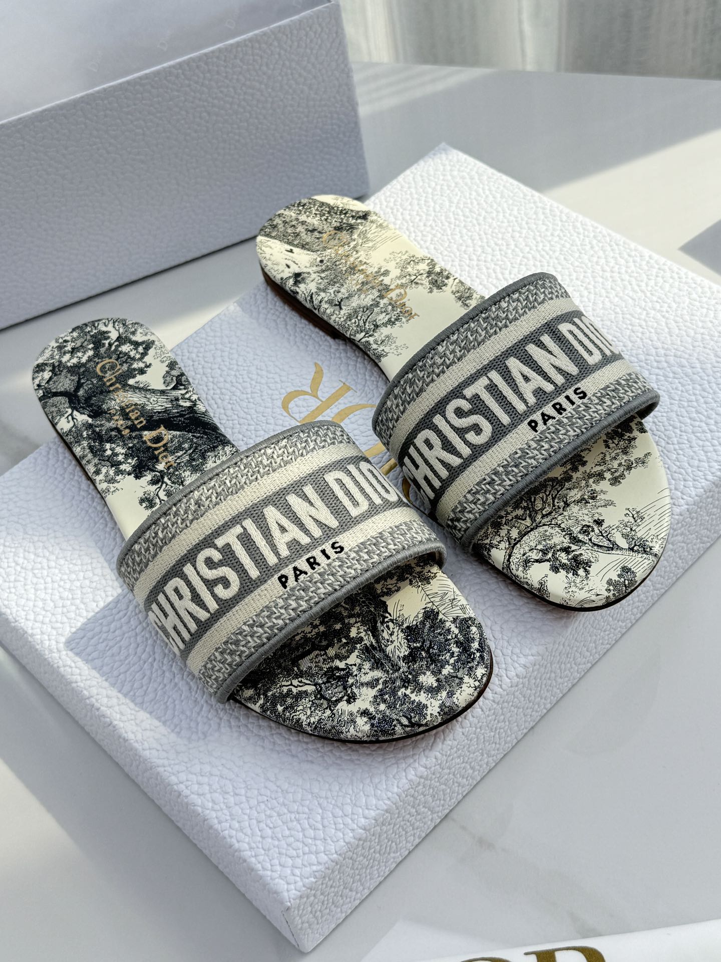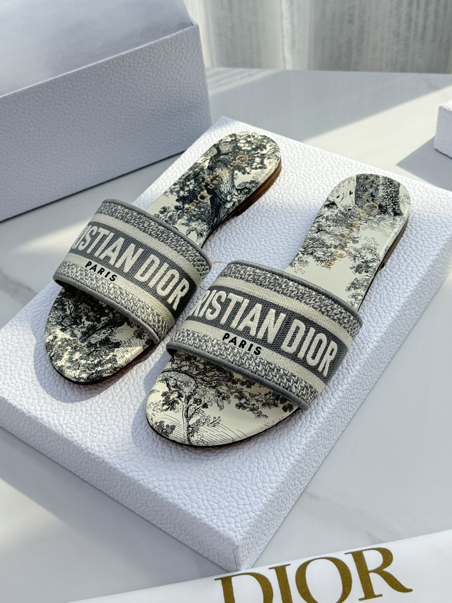 NIGO Dior Dway Women's Spring/Summer Fashion Round Toe Cotton Embroidered Slip On Slippers Shoes #nigo78272