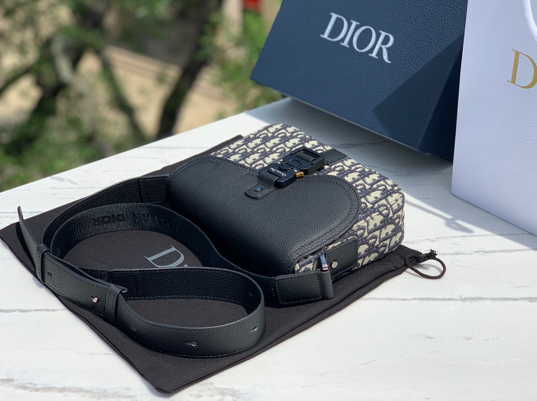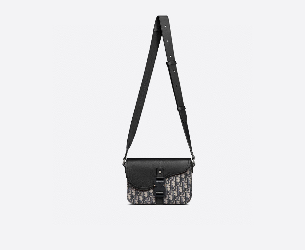 NIGO Dior Men's Adjustable Shoulder Strap Flap Closure Oblique Printed Grained Cowhide Saddle Bag Crossbody Shoulder Bags #nigo99336