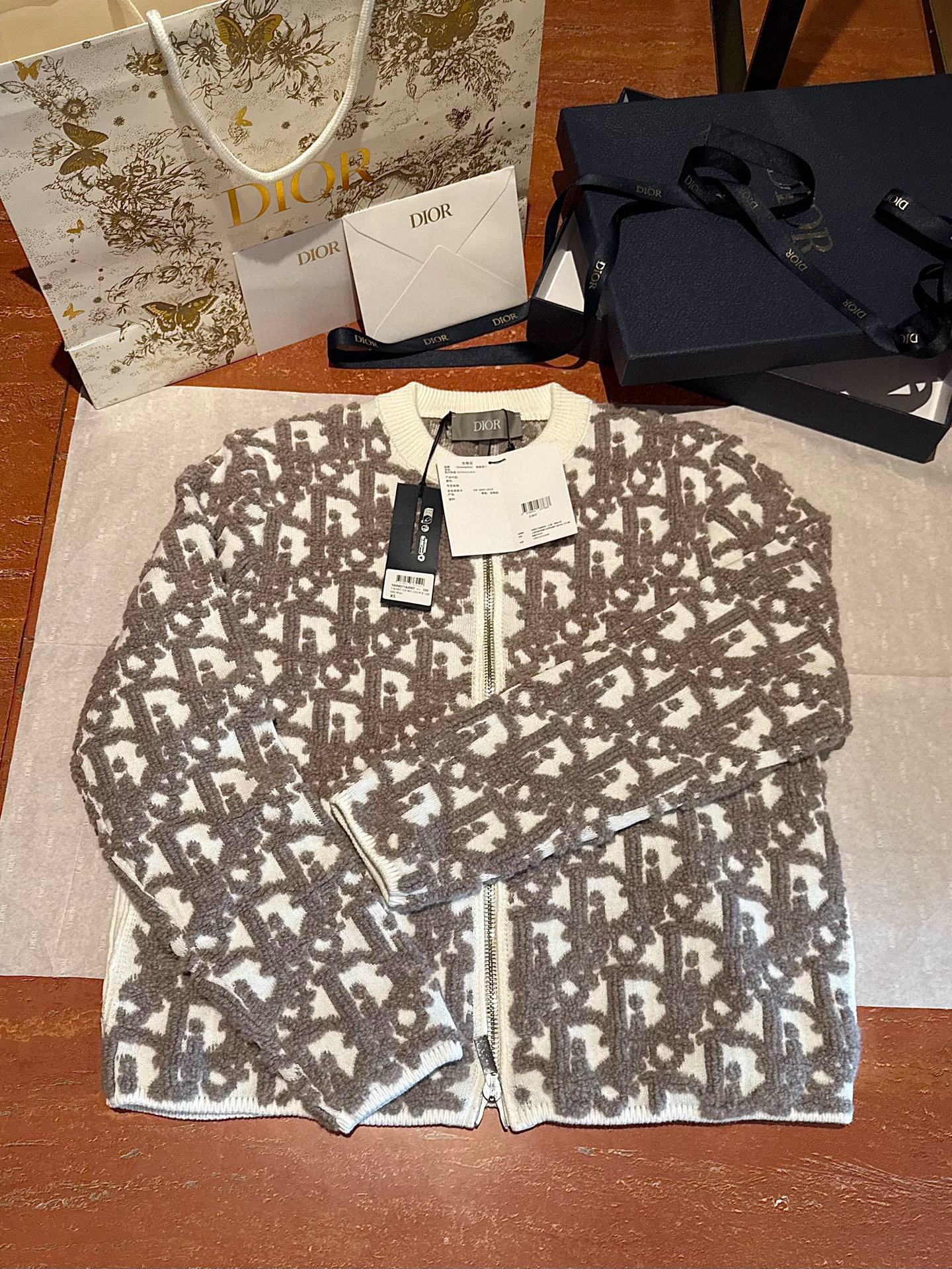 NIGO Dior Men's And Women's Spring/Summer Fashion Casual Round Neck Wool Knit Oblique Print Zipper Sweater #nigo78325