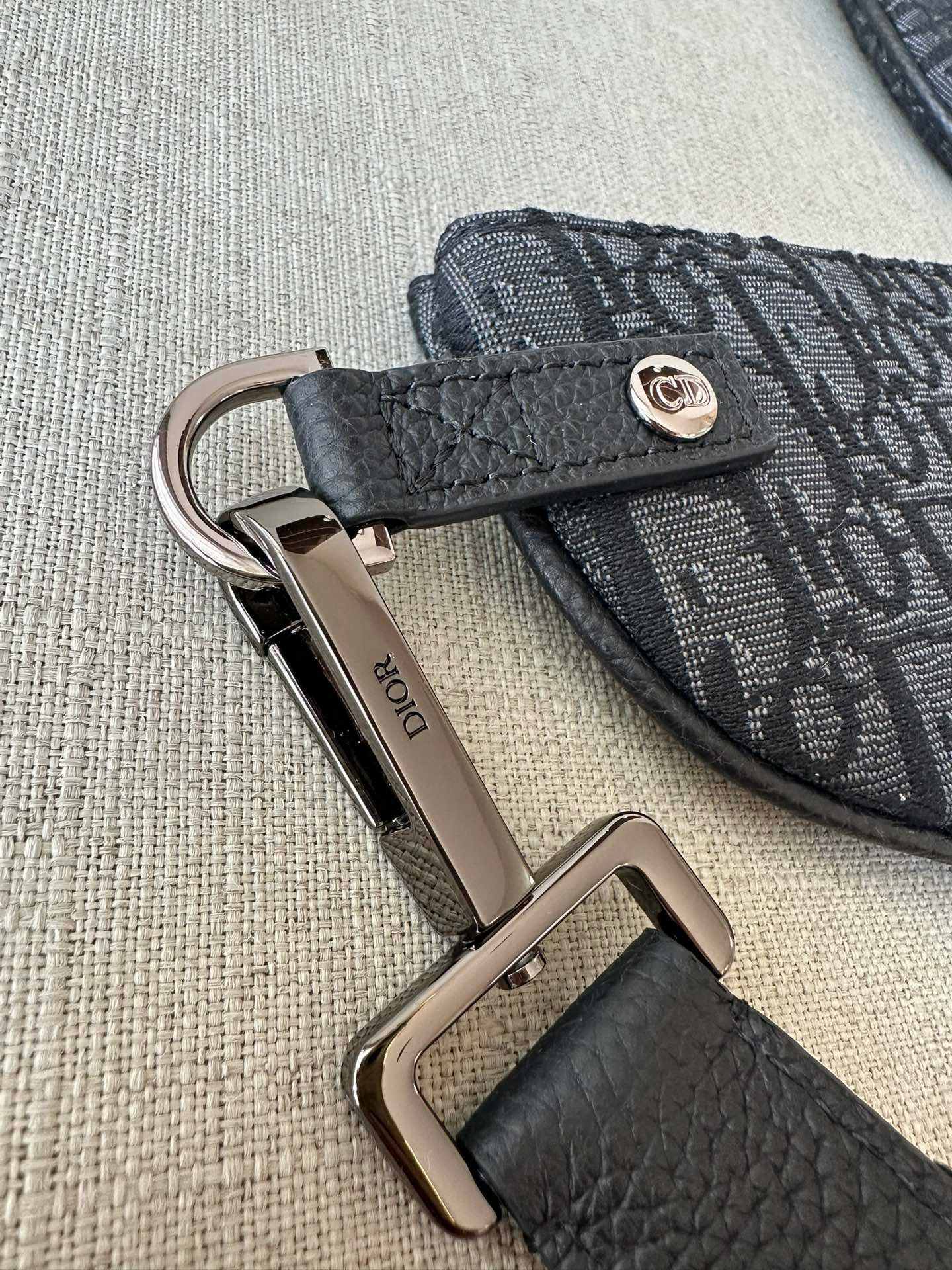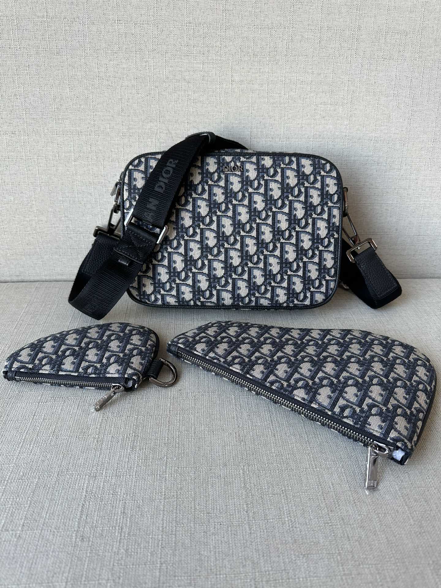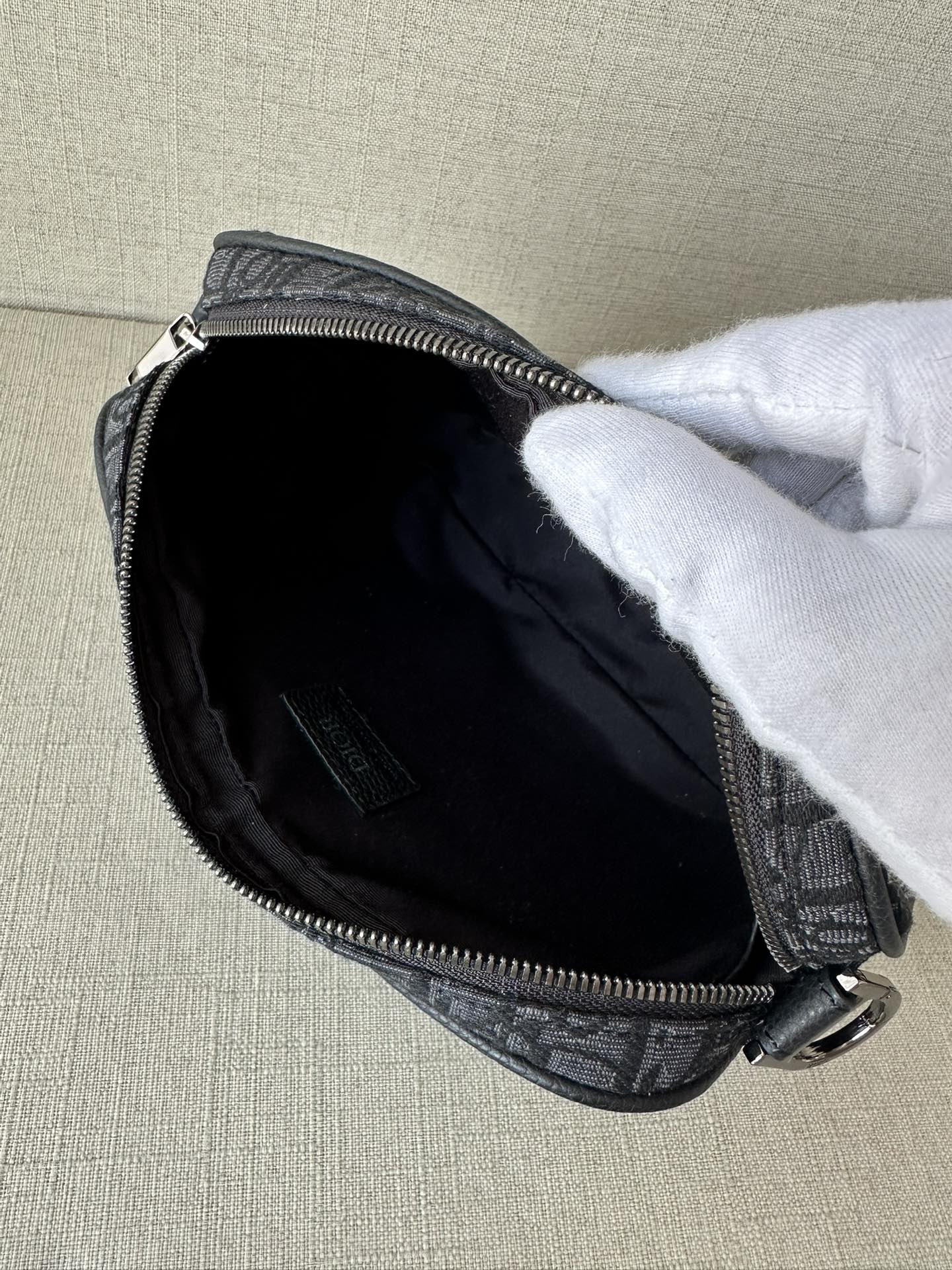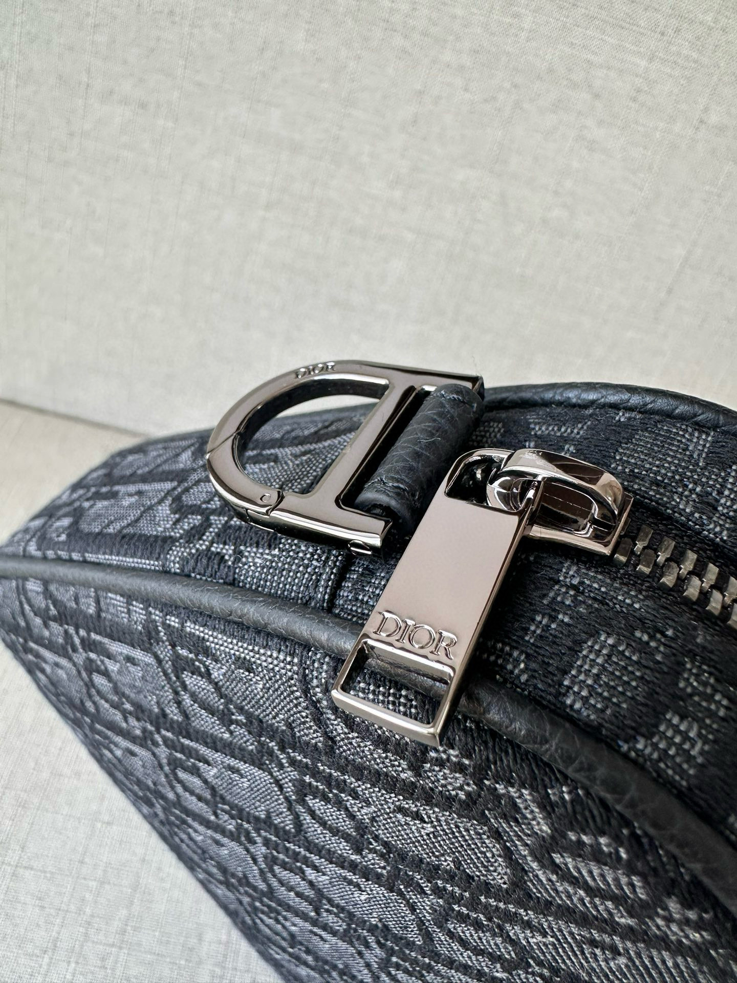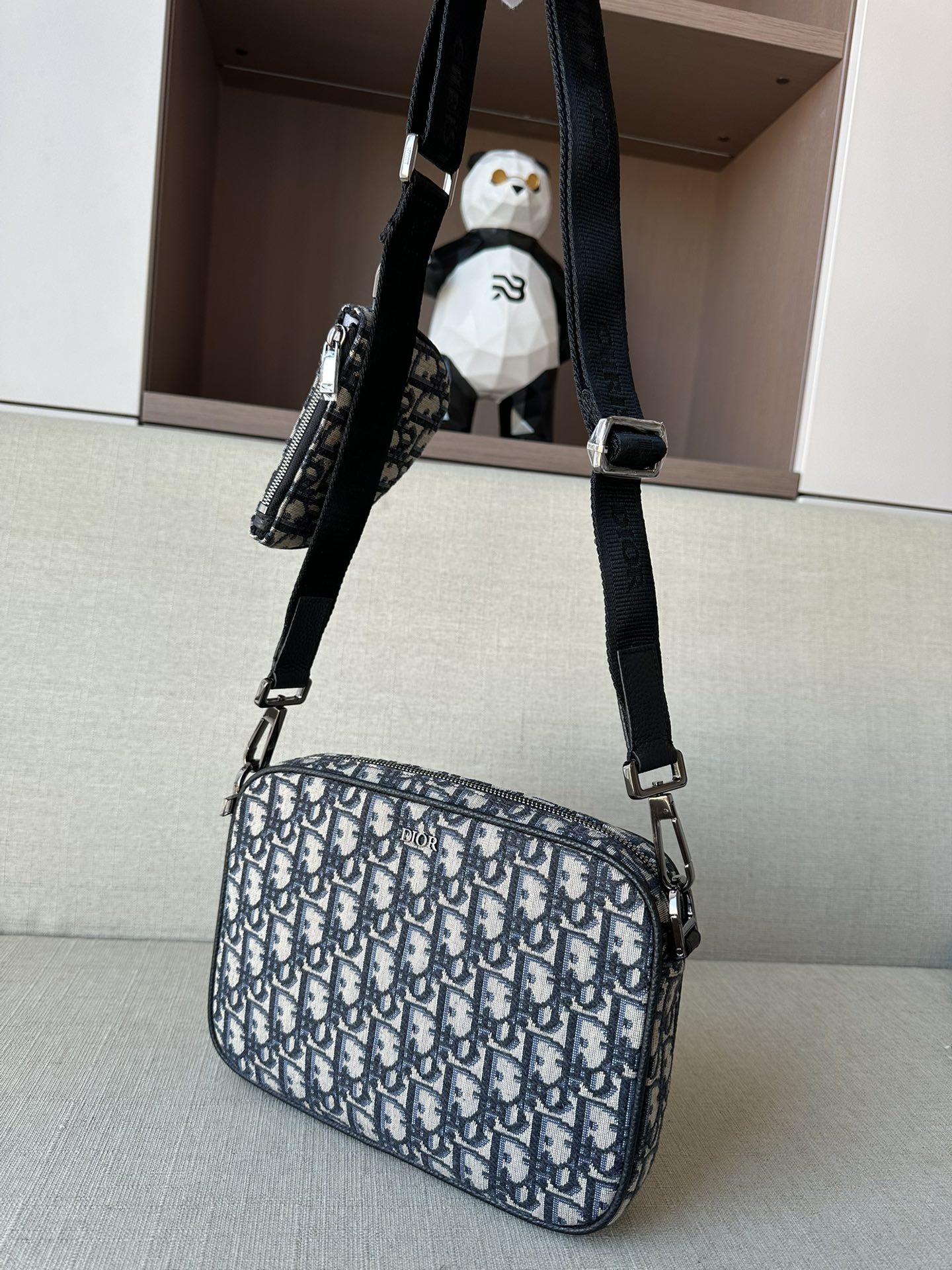 NIGO Dior Men's Black Embossed Pattern Magnetic Flap Leather Quilted Canvas Crossbody Saddle Bag Set of 3 #nigo74786