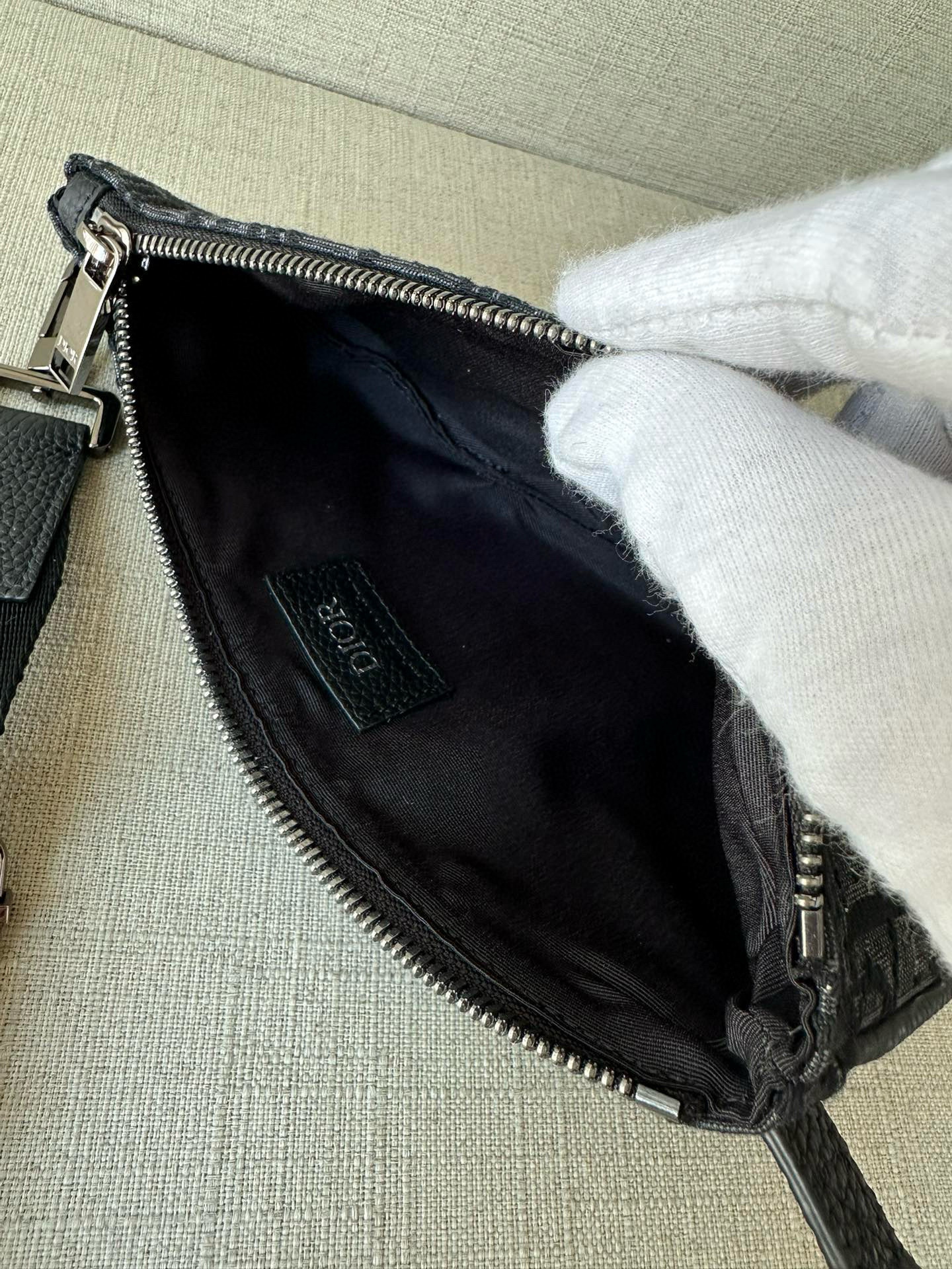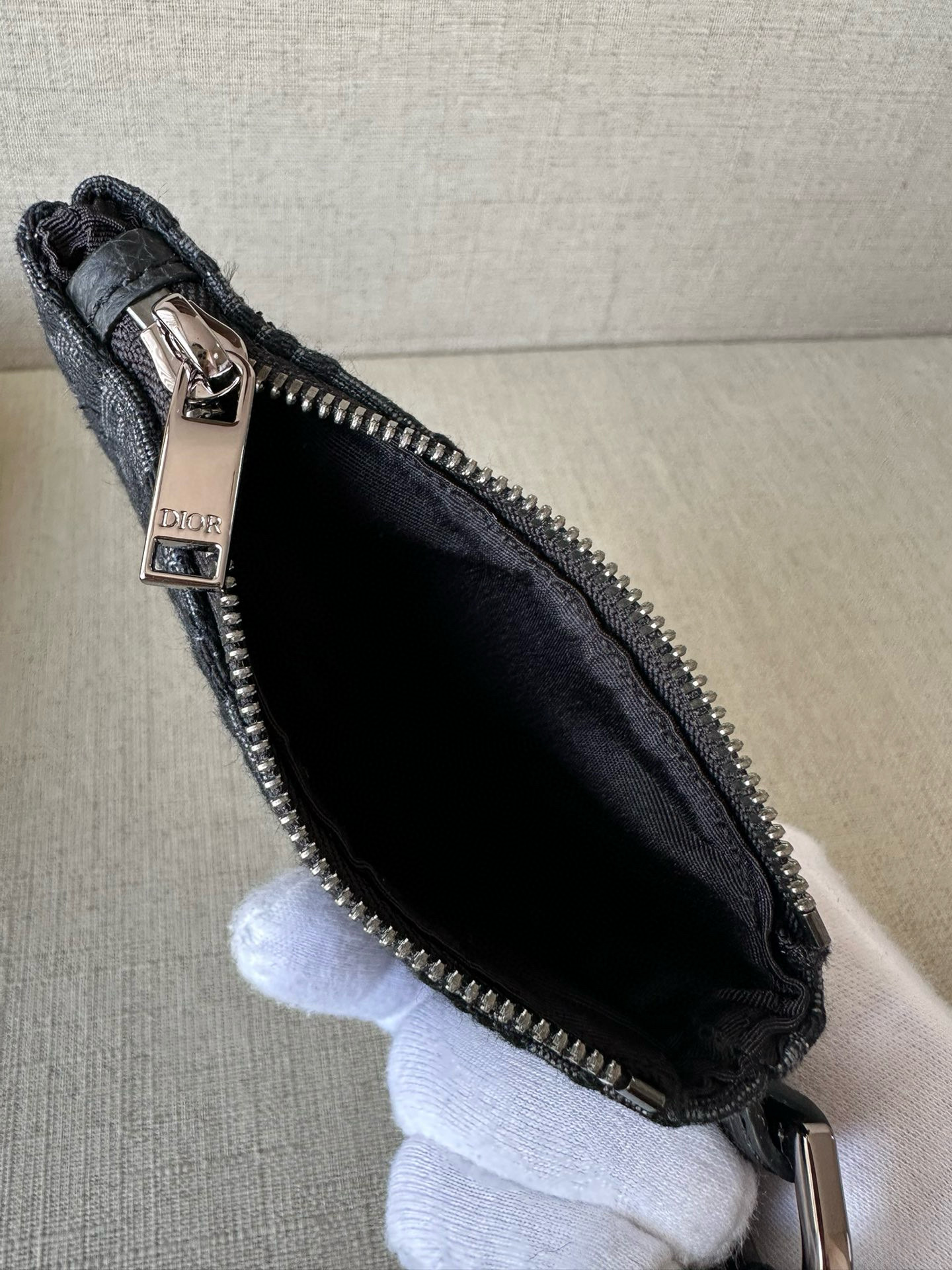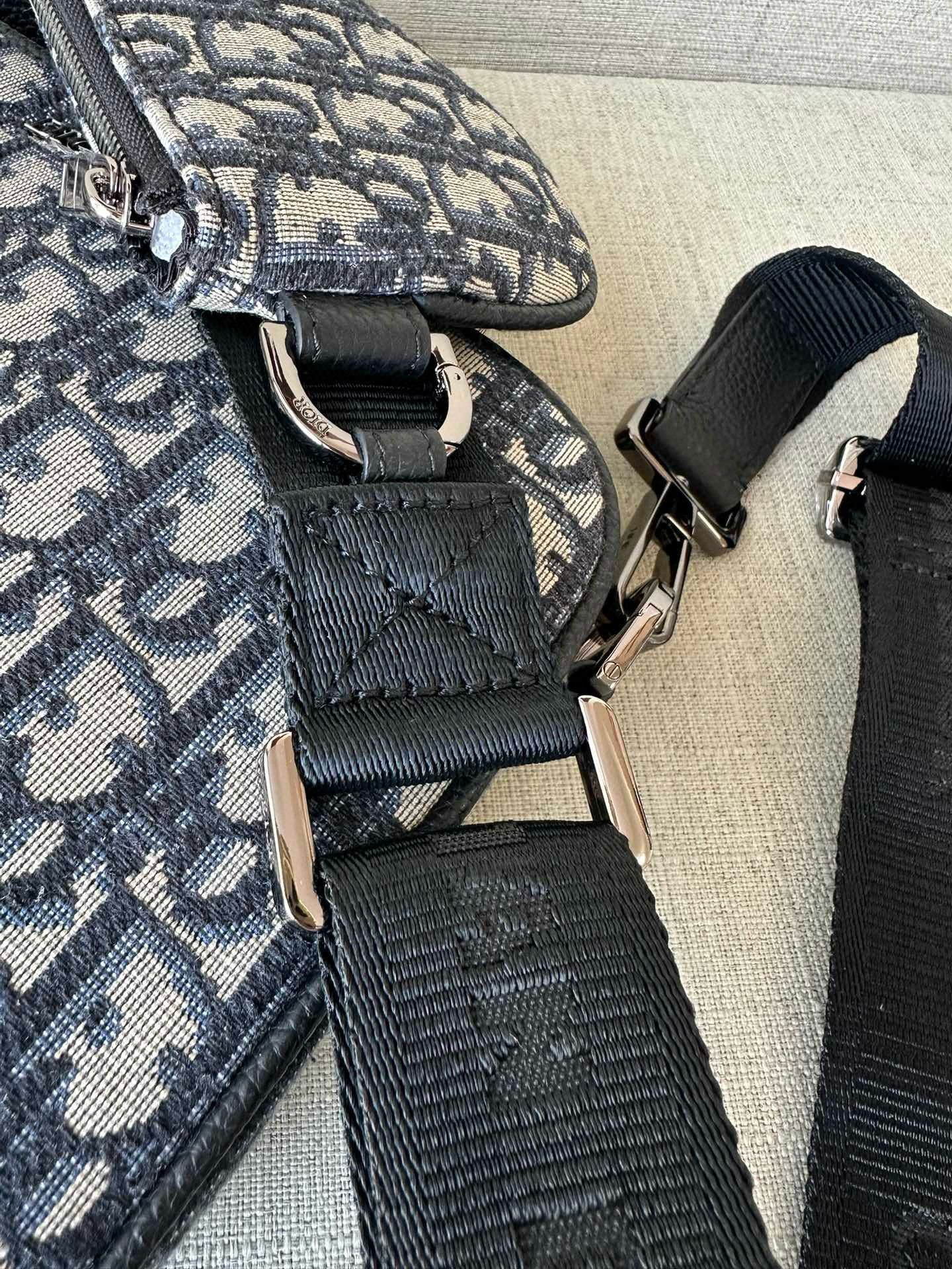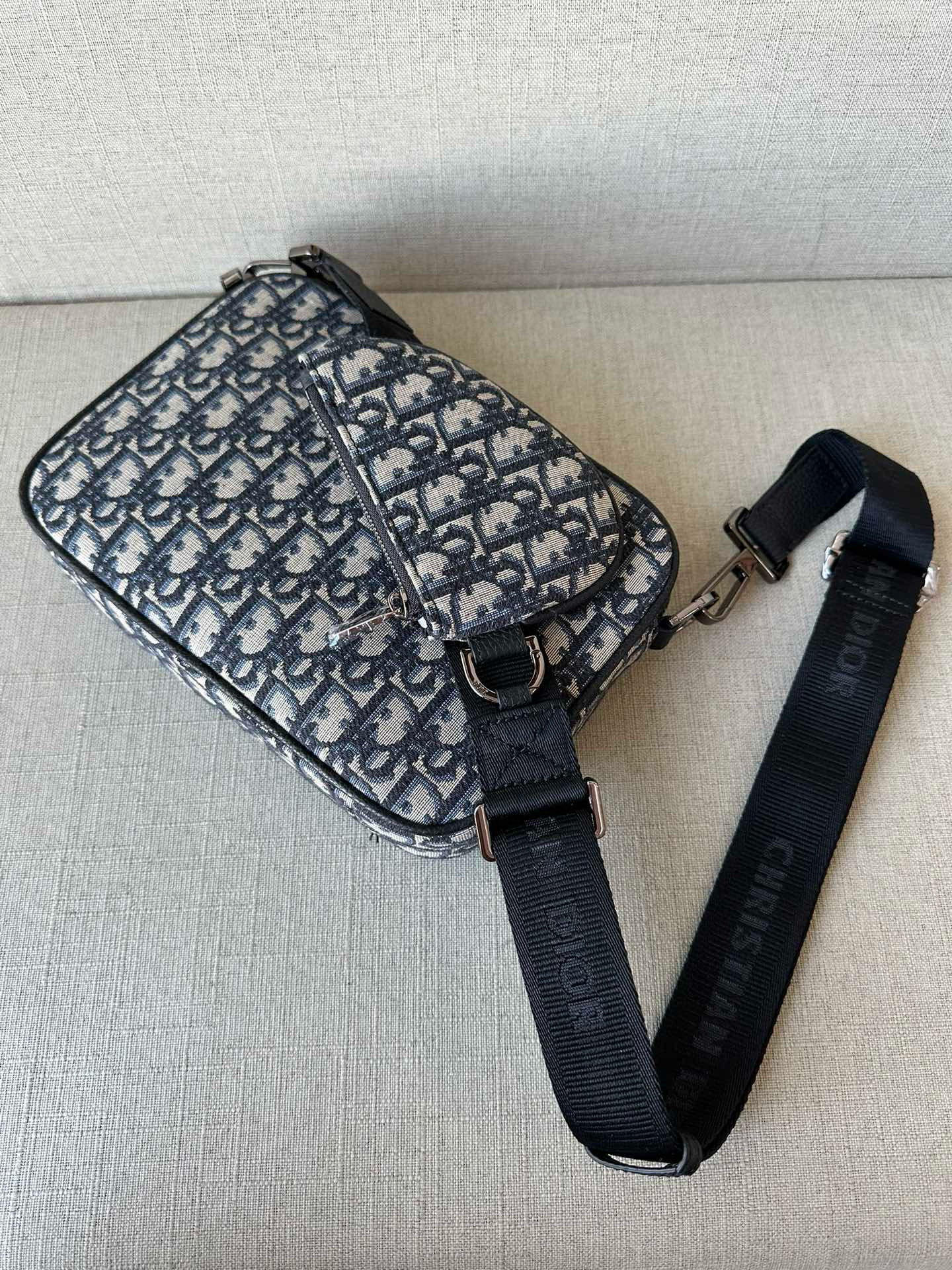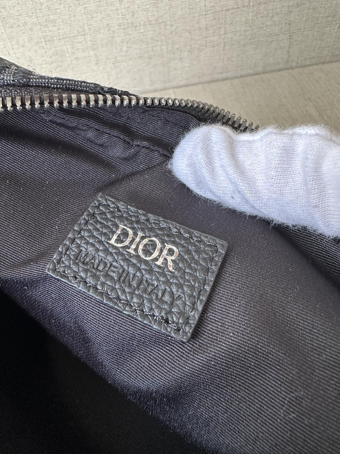 NIGO Dior Men's Black Embossed Pattern Magnetic Flap Leather Quilted Canvas Crossbody Saddle Bag Set of 3 #nigo74786