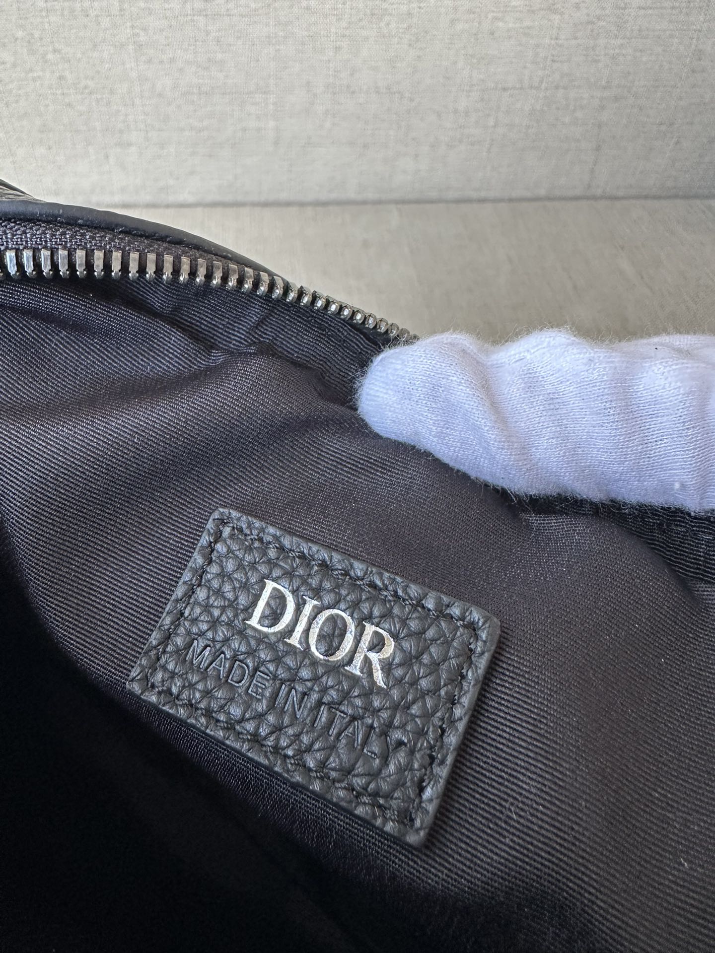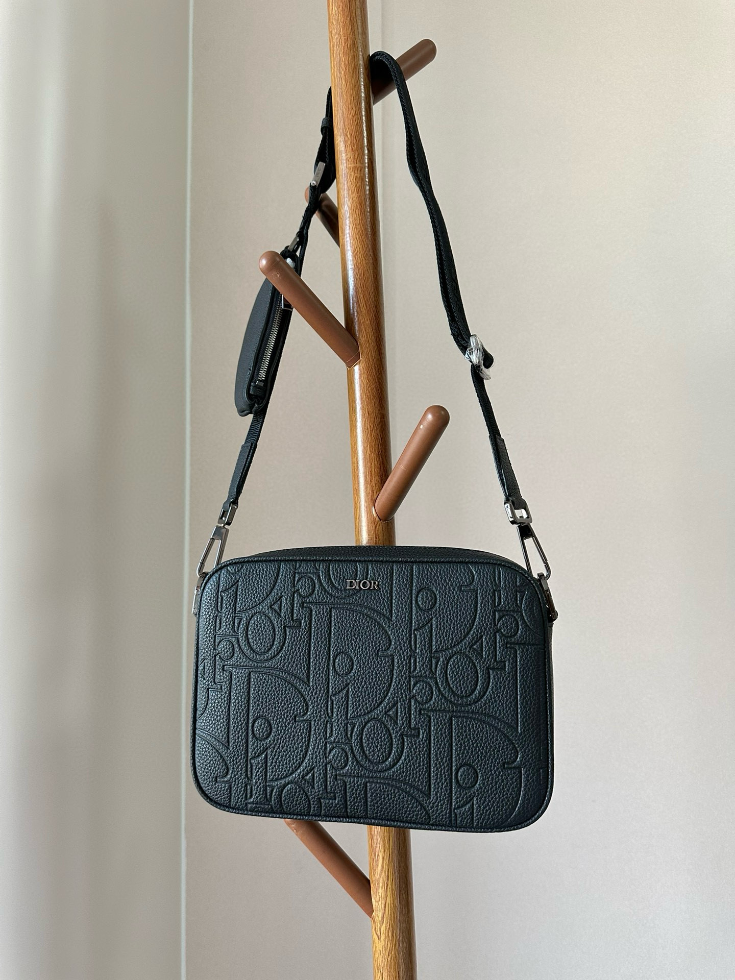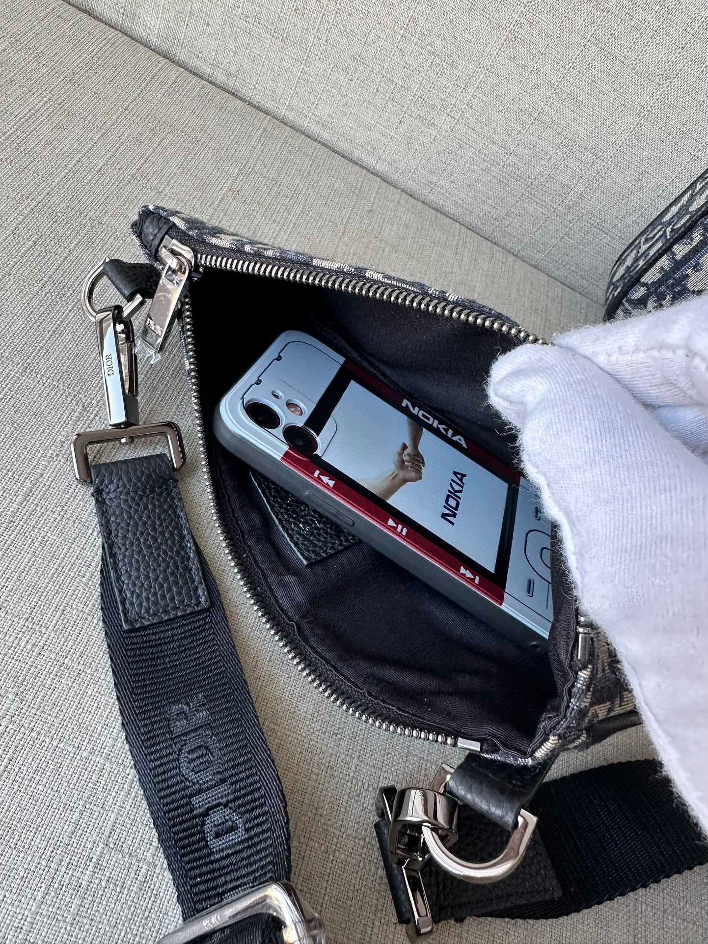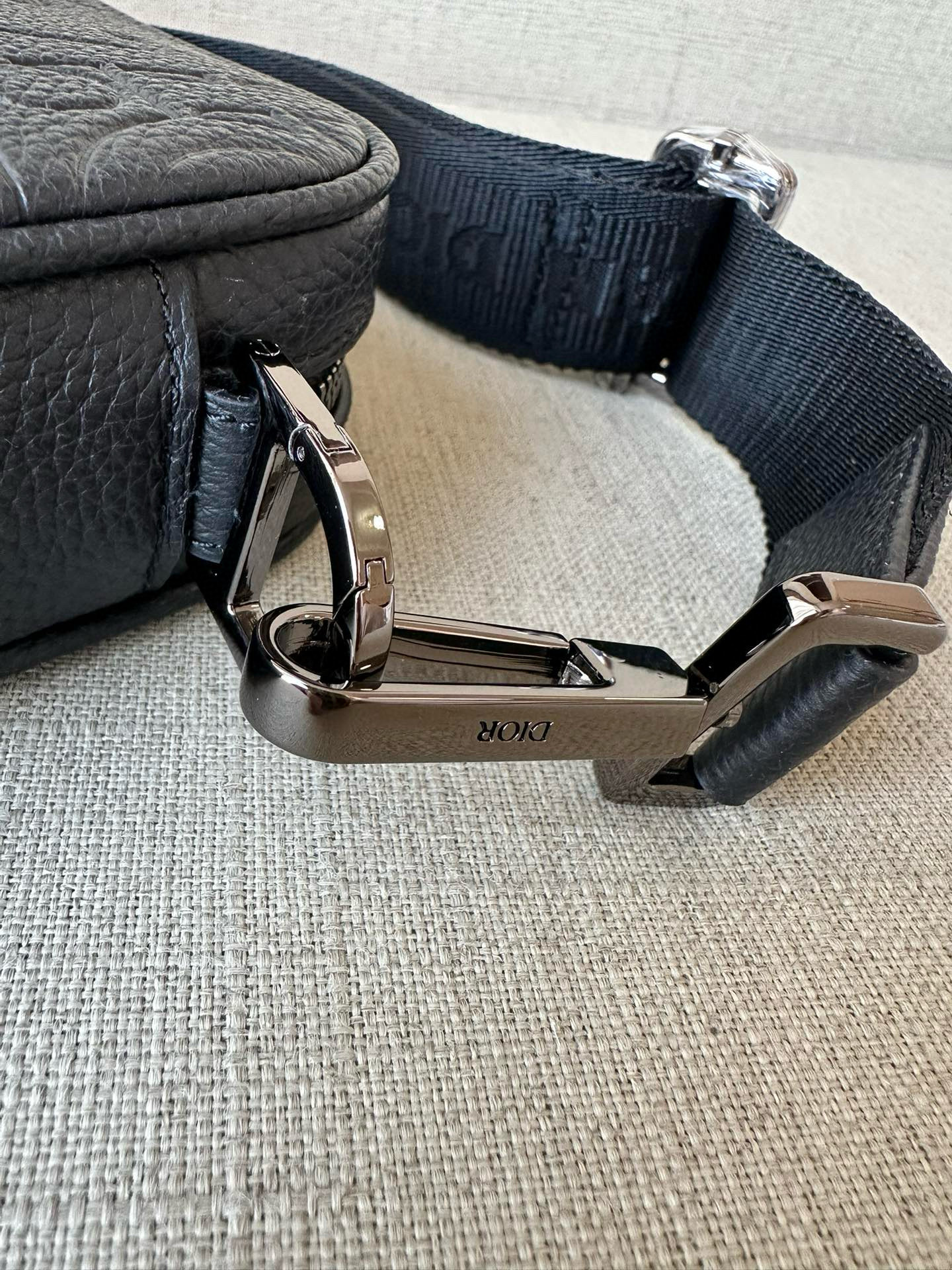 NIGO Dior Men's Black Embossed Pattern Magnetic Flap Leather Quilted Canvas Crossbody Saddle Bag Set of 3 #nigo74786