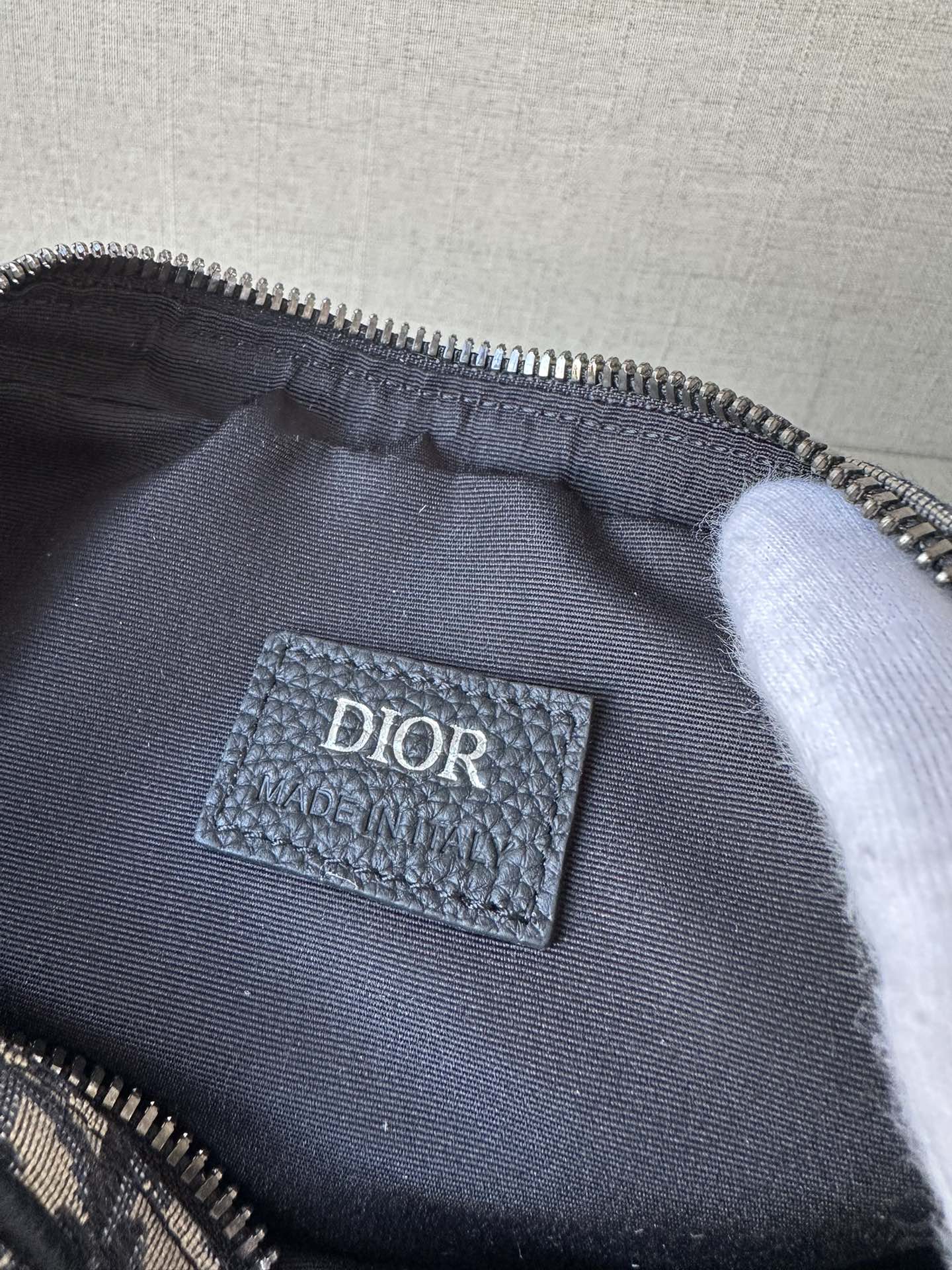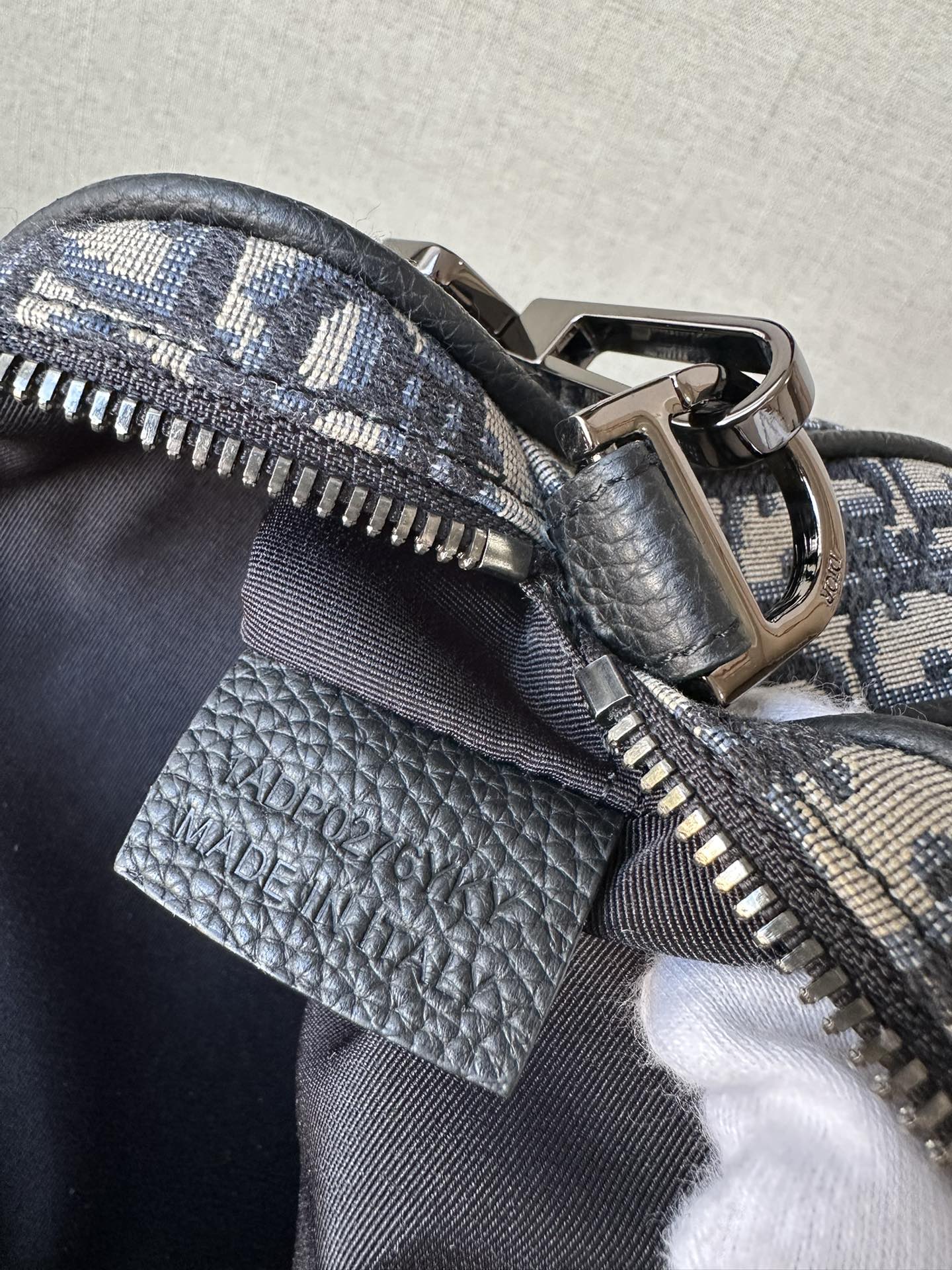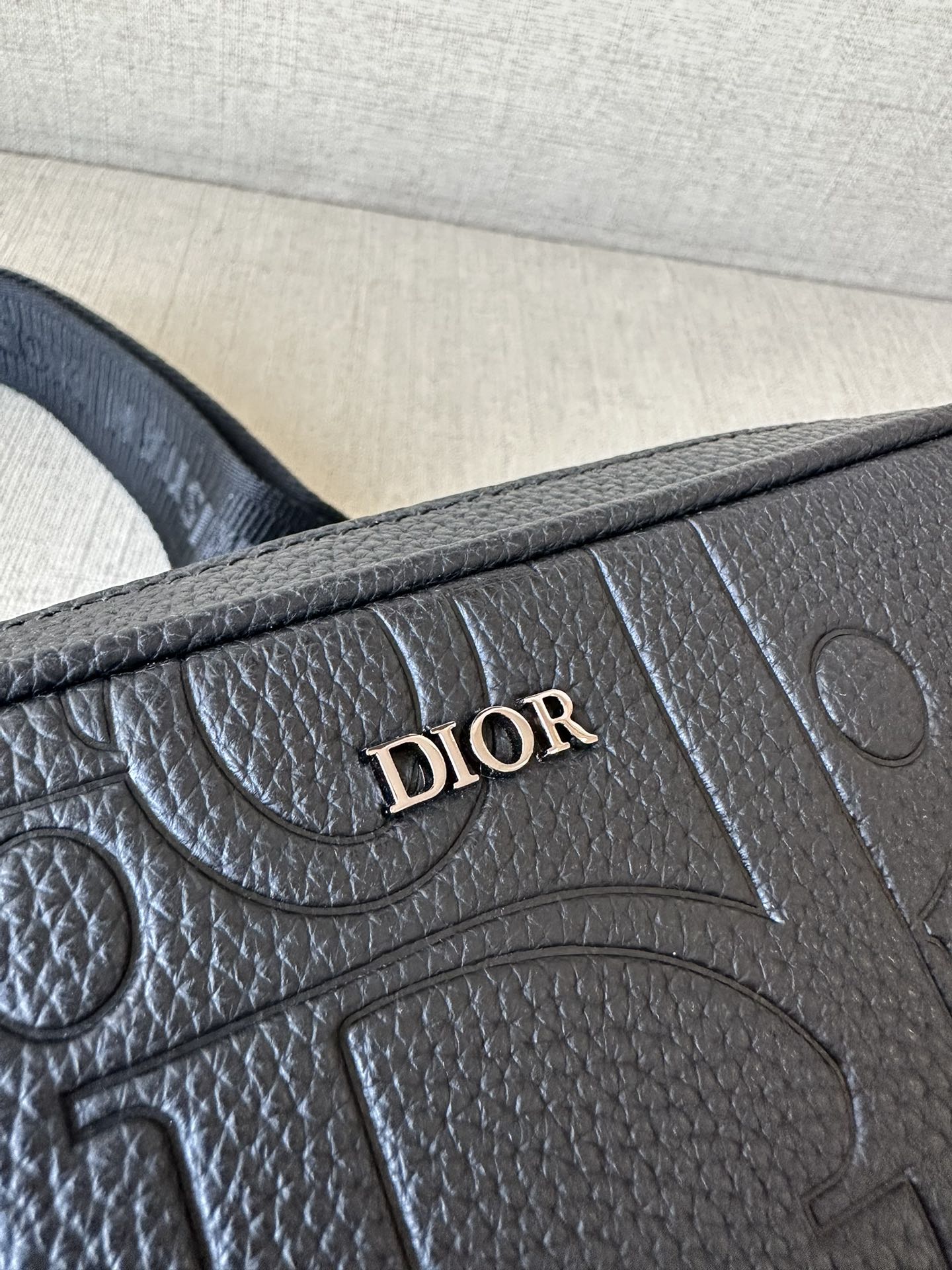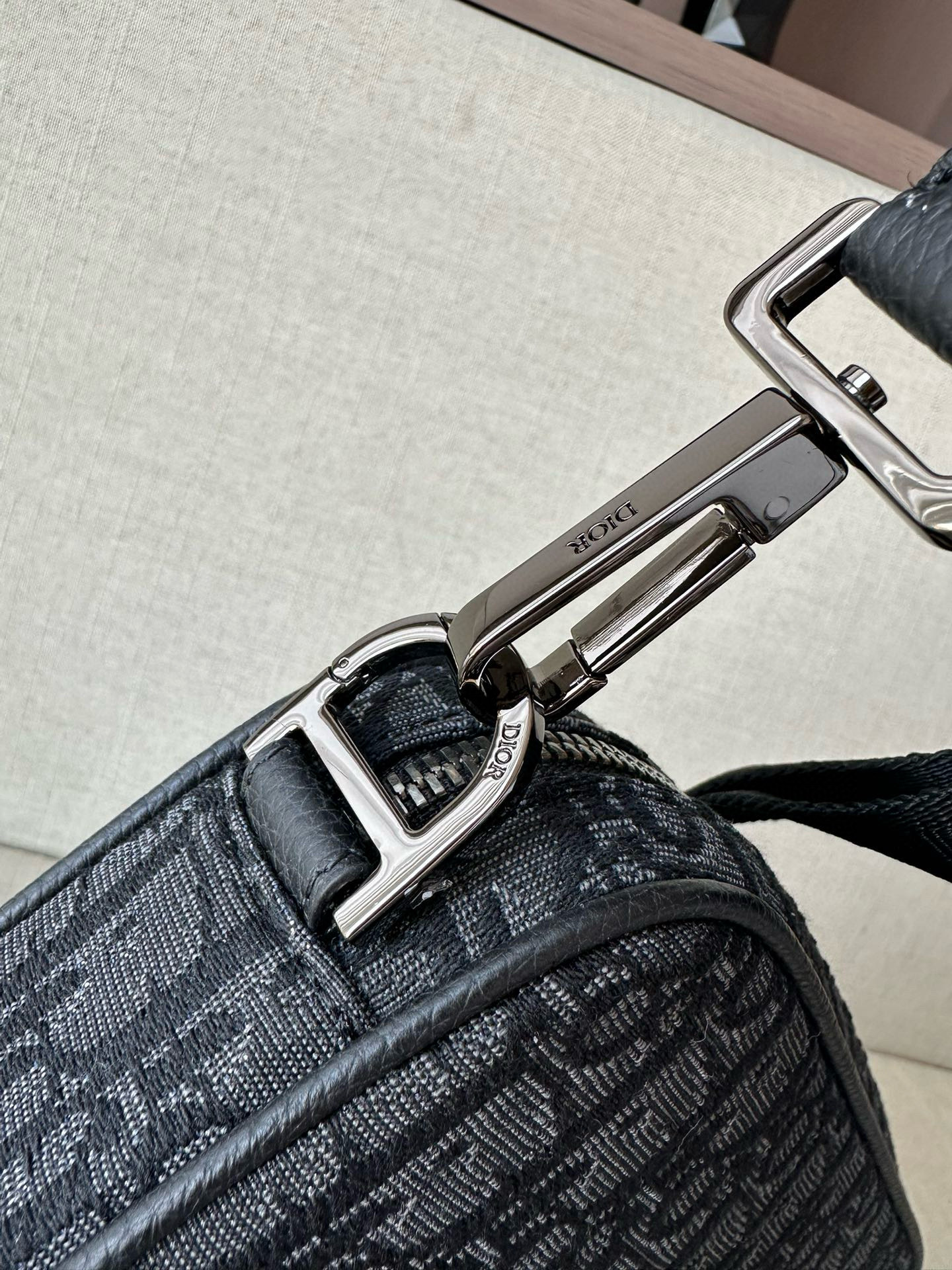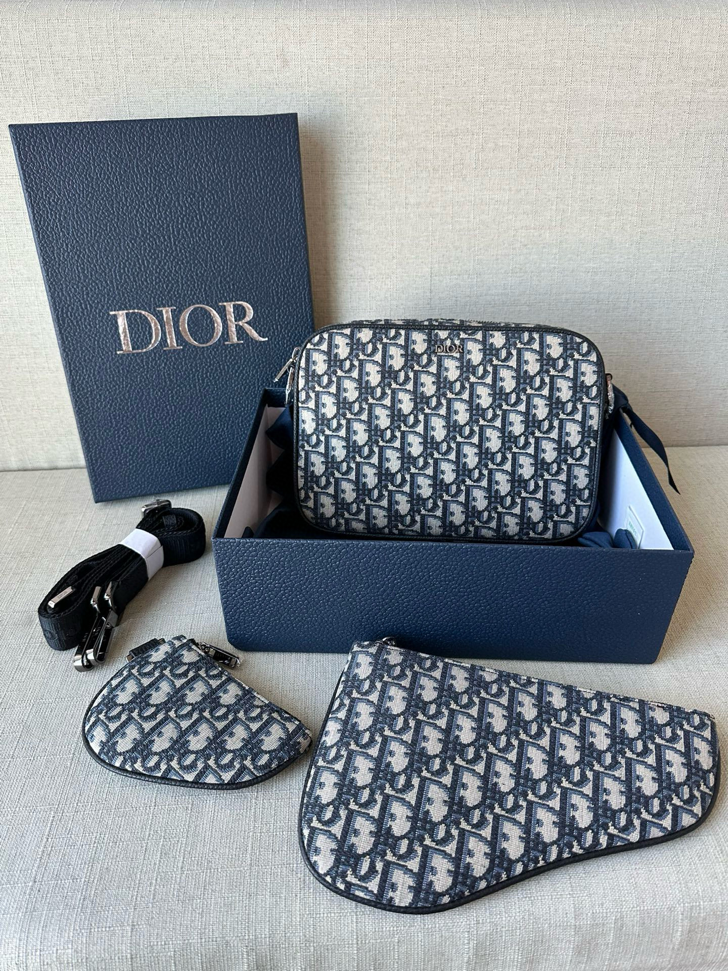 NIGO Dior Men's Black Embossed Pattern Magnetic Flap Leather Quilted Canvas Crossbody Saddle Bag Set of 3 #nigo74786
