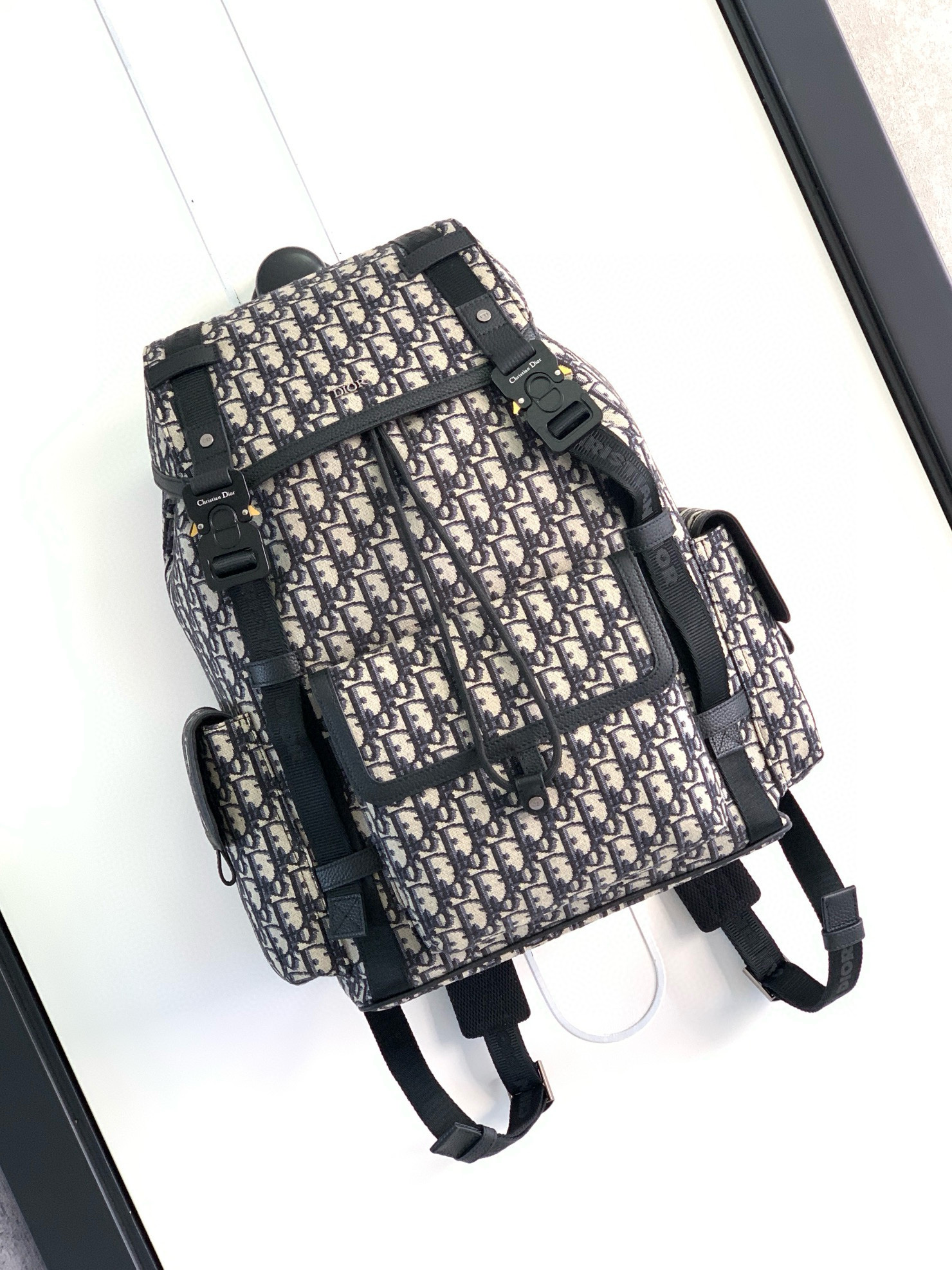NIGO Dior Men's Diamond Patterned Smooth Cowhide Leather Nylon Shoulder Strap Backpack Rucksack Bag Bags #nigo97818
