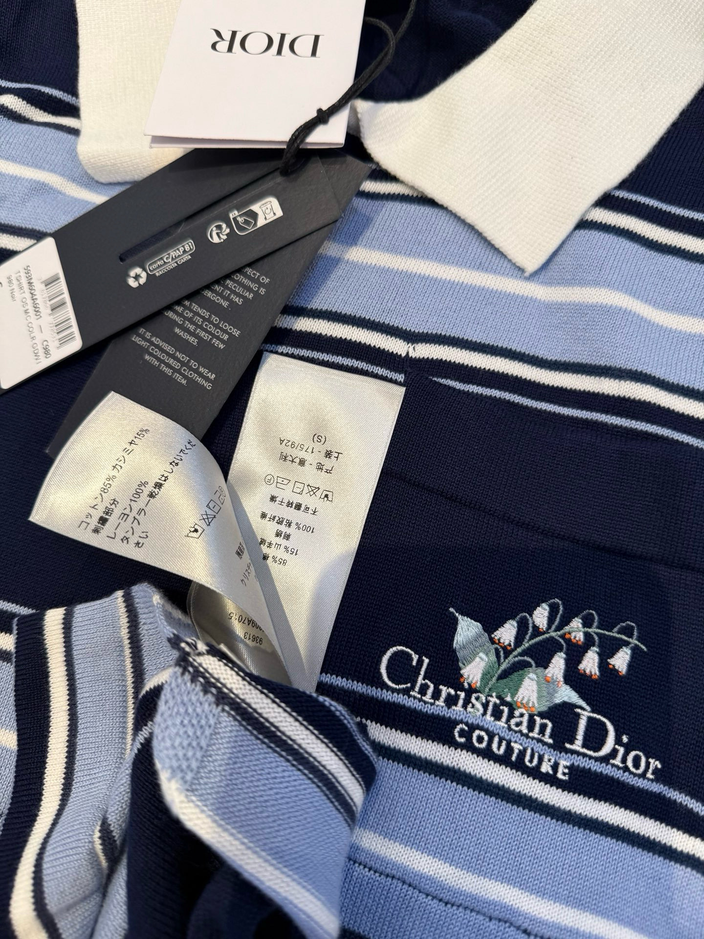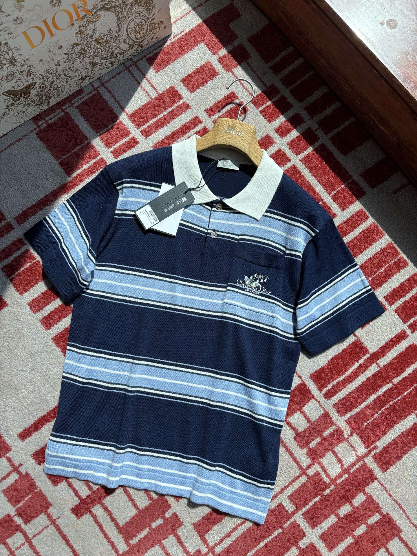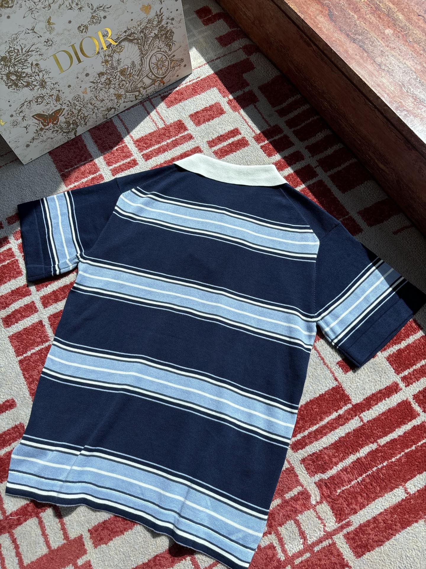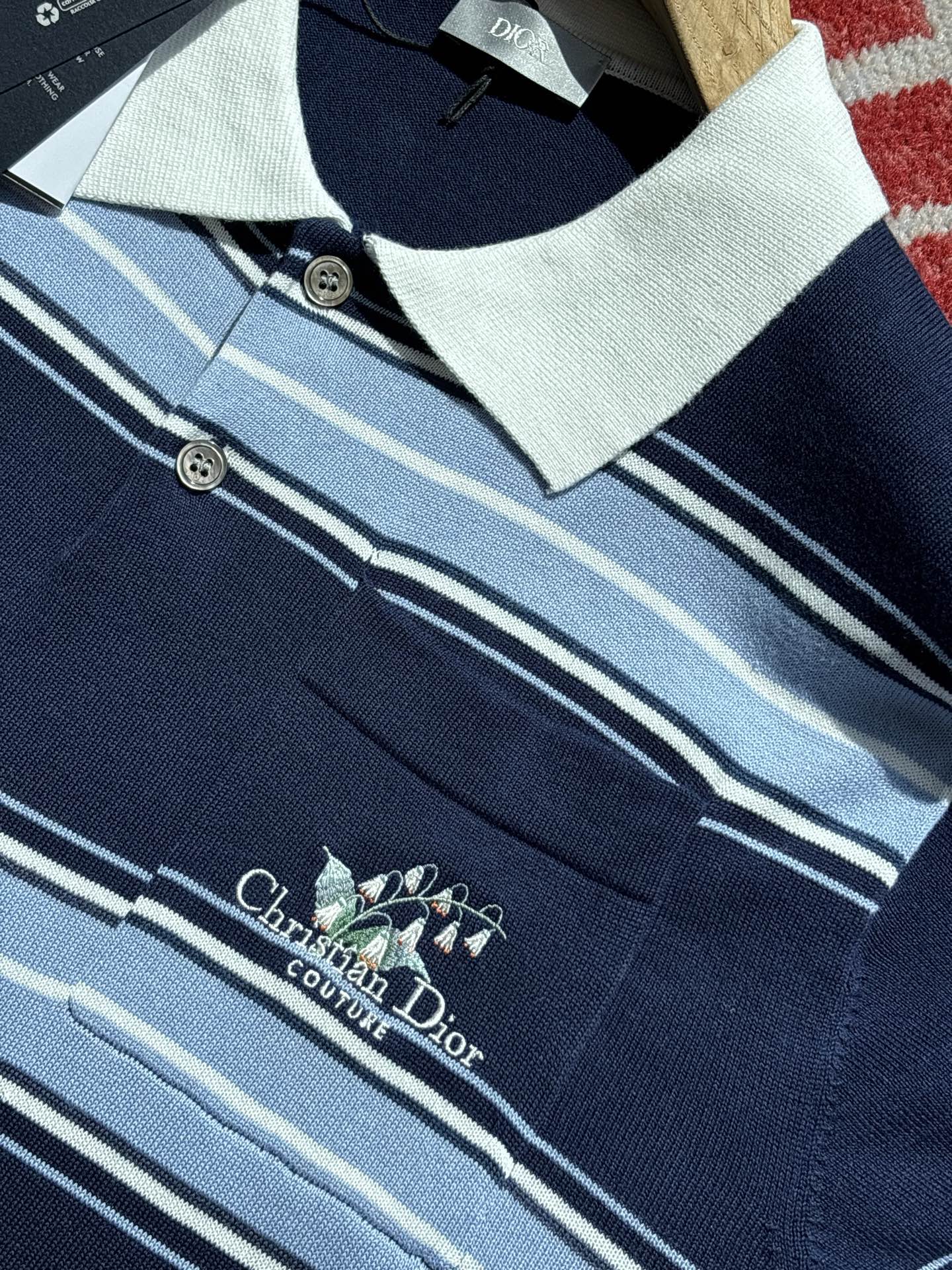 NIGO Dior Men's Summer Blue Cotton Plain Knit Fabric Suzuran Embroidery Polo Neck Short Sleeve T-Shirt #nigo76931