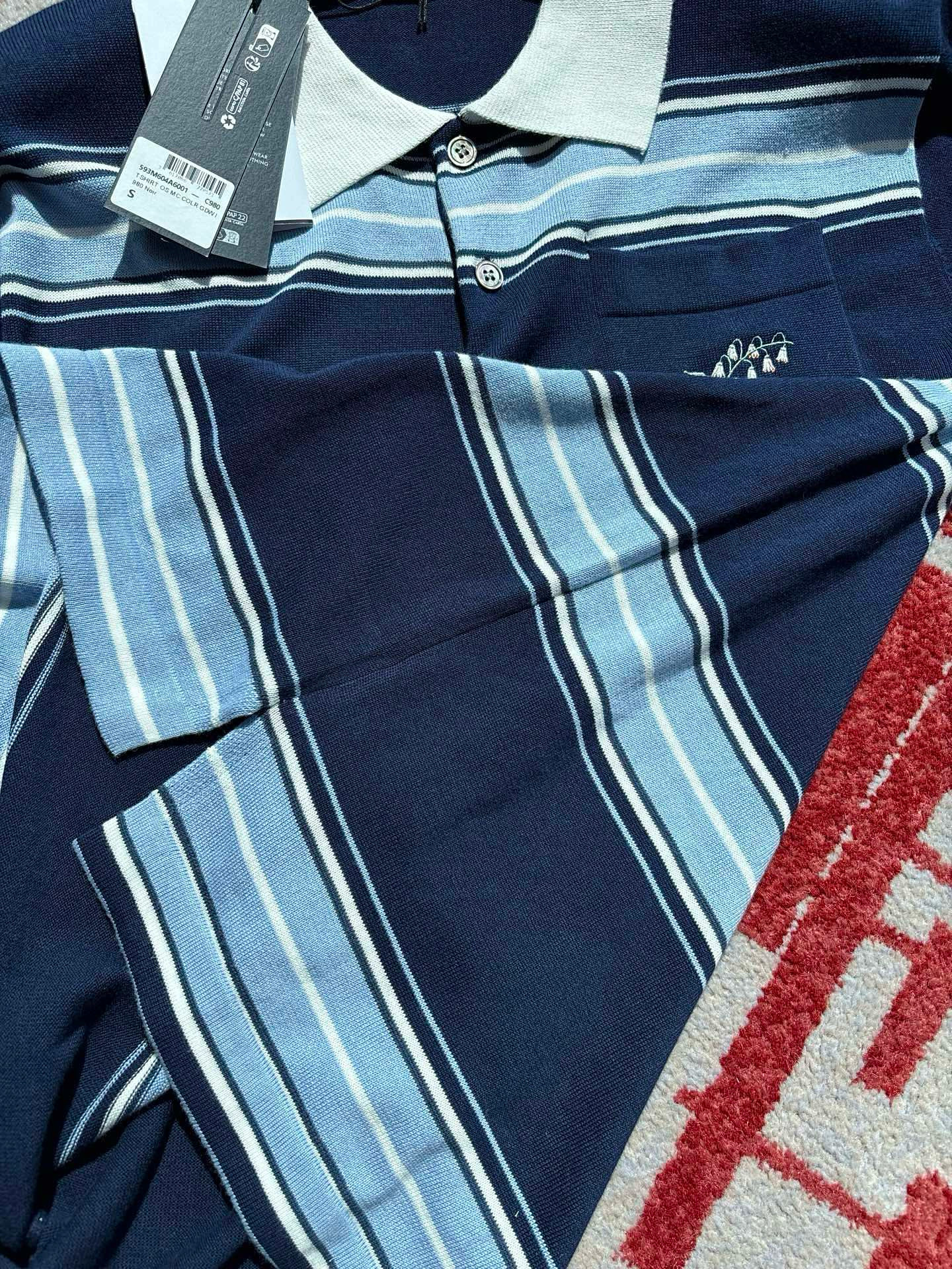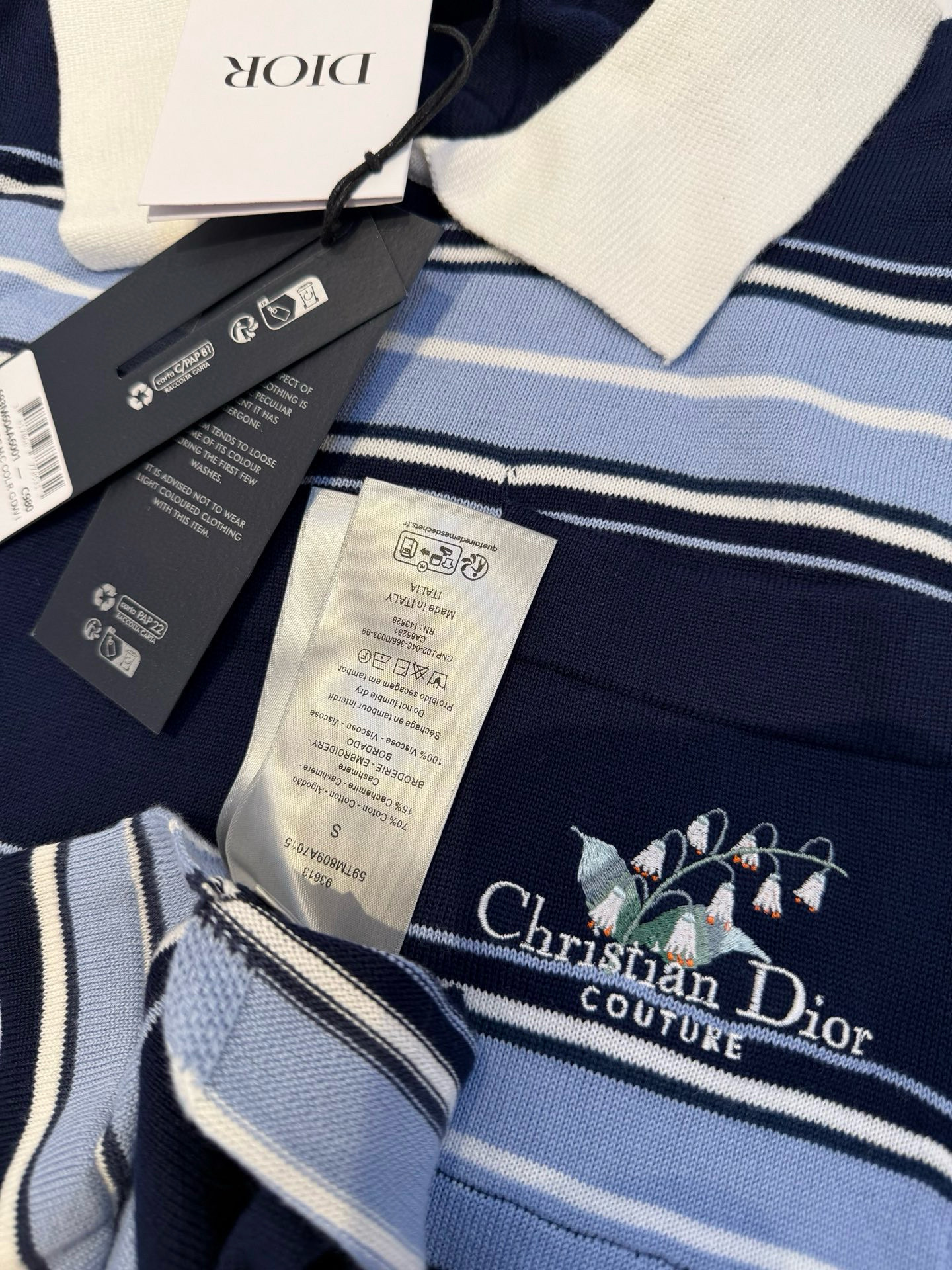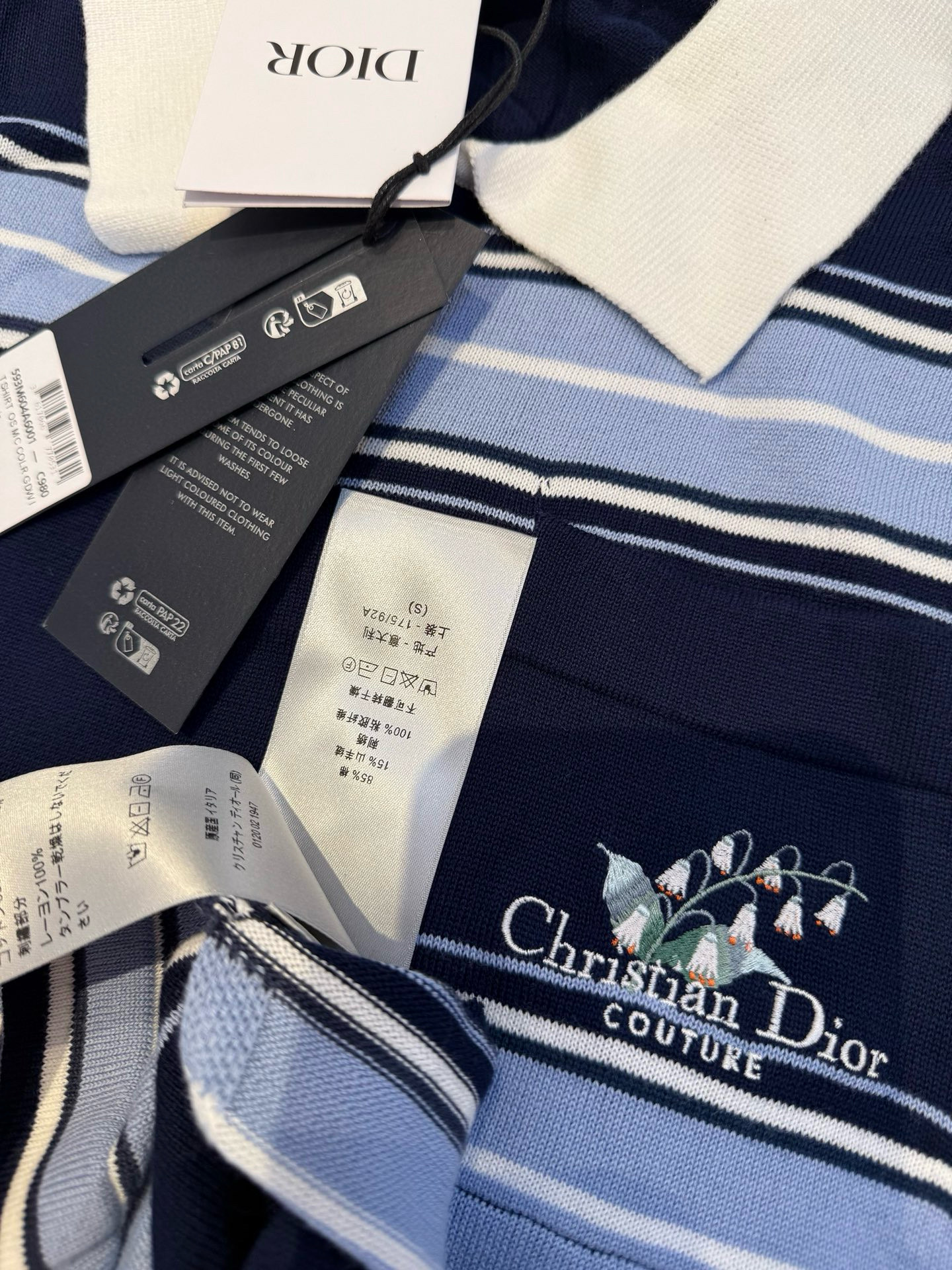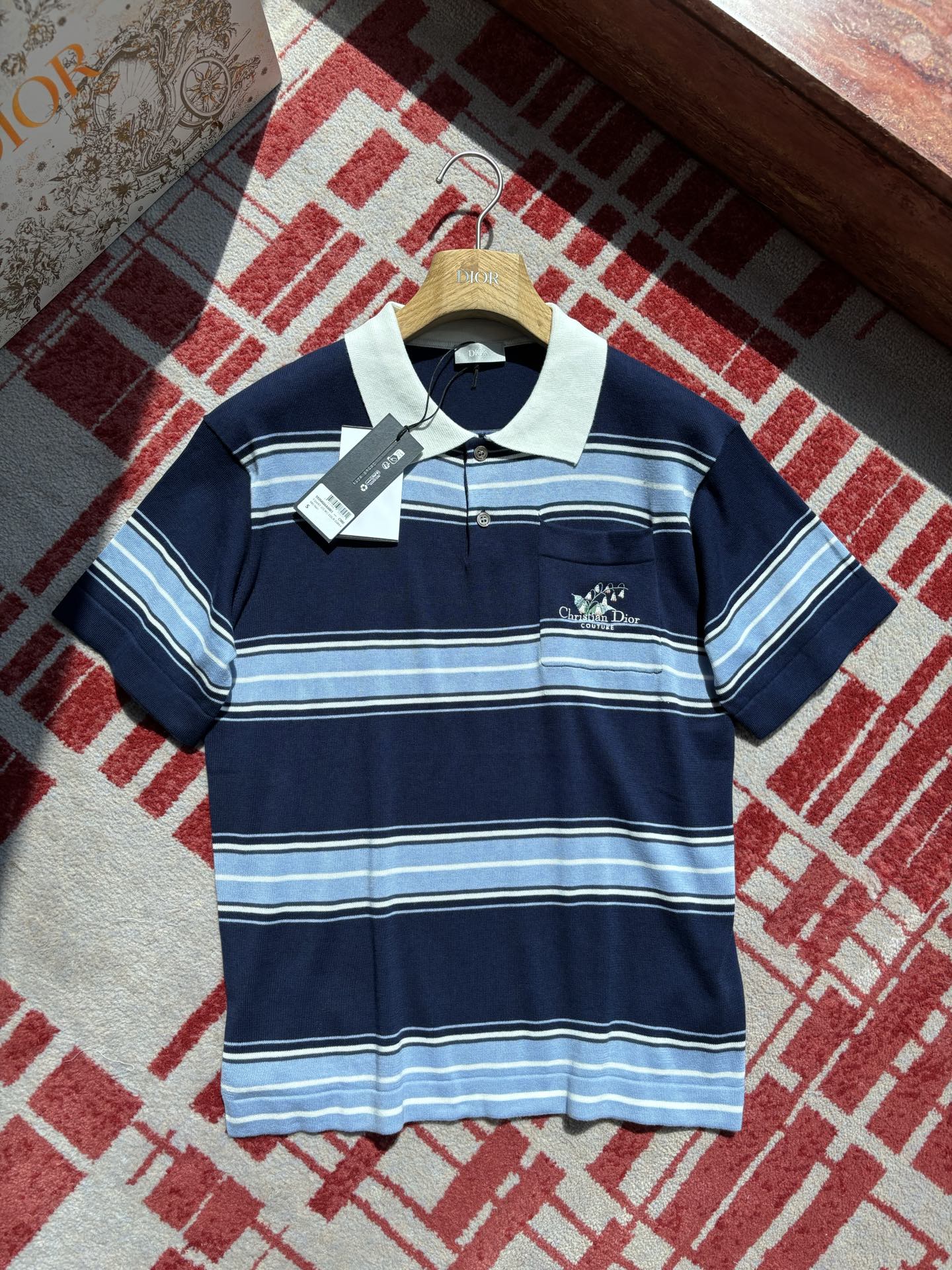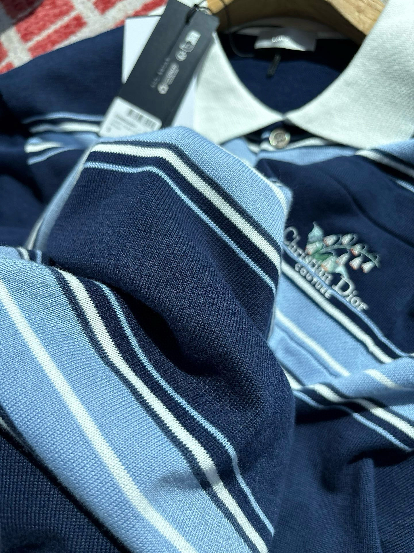 NIGO Dior Men's Summer Blue Cotton Plain Knit Fabric Suzuran Embroidery Polo Neck Short Sleeve T-Shirt #nigo76931