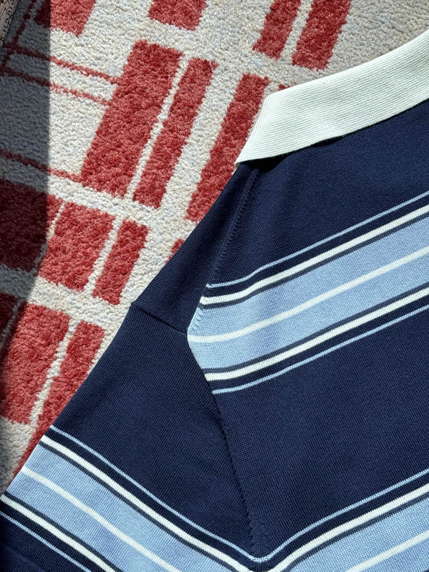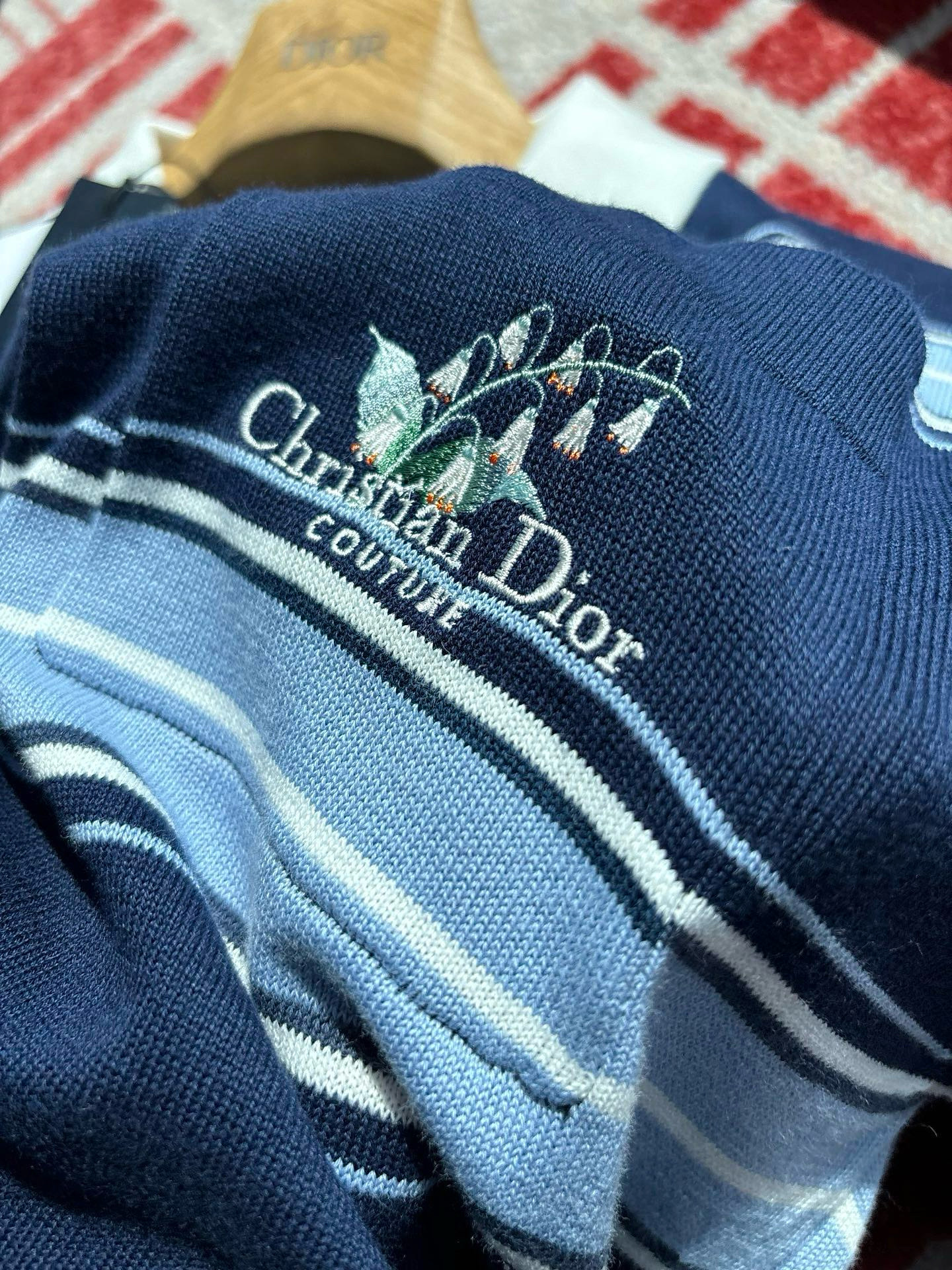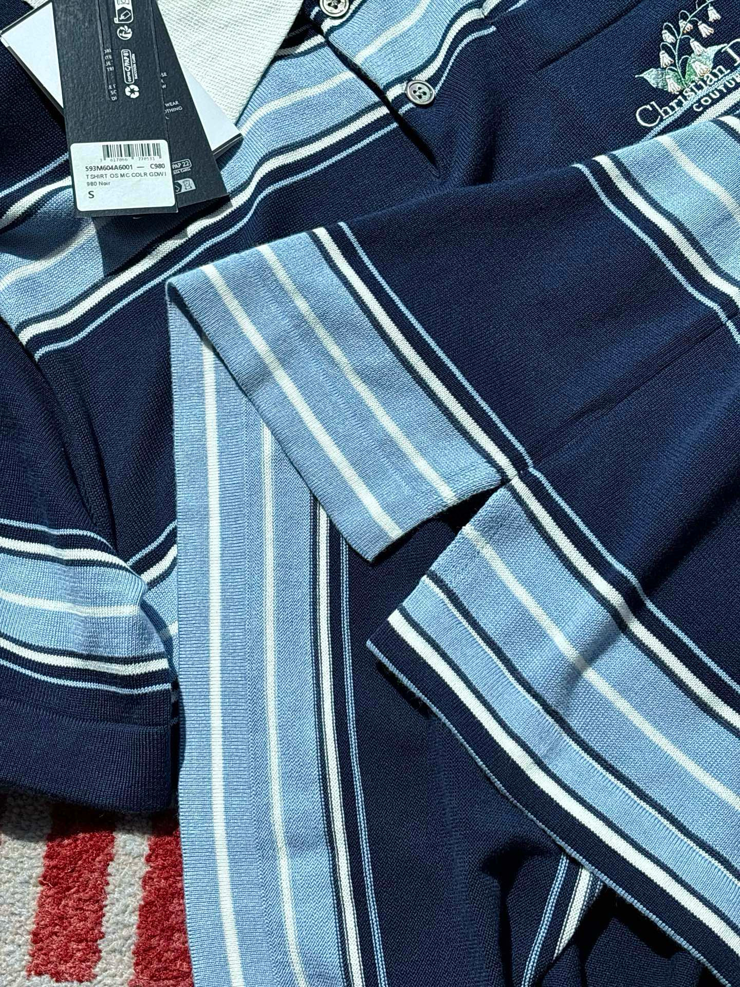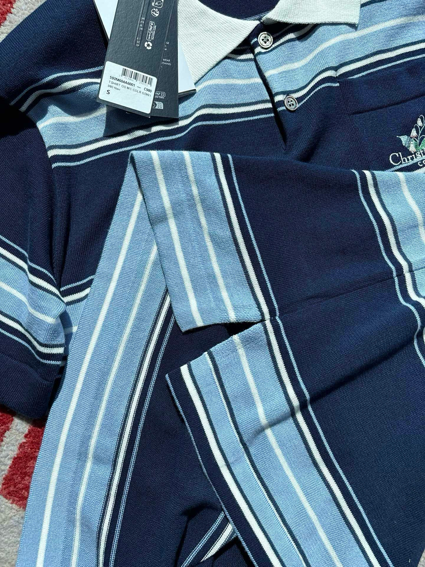 NIGO Dior Men's Summer Blue Cotton Plain Knit Fabric Suzuran Embroidery Polo Neck Short Sleeve T-Shirt #nigo76931