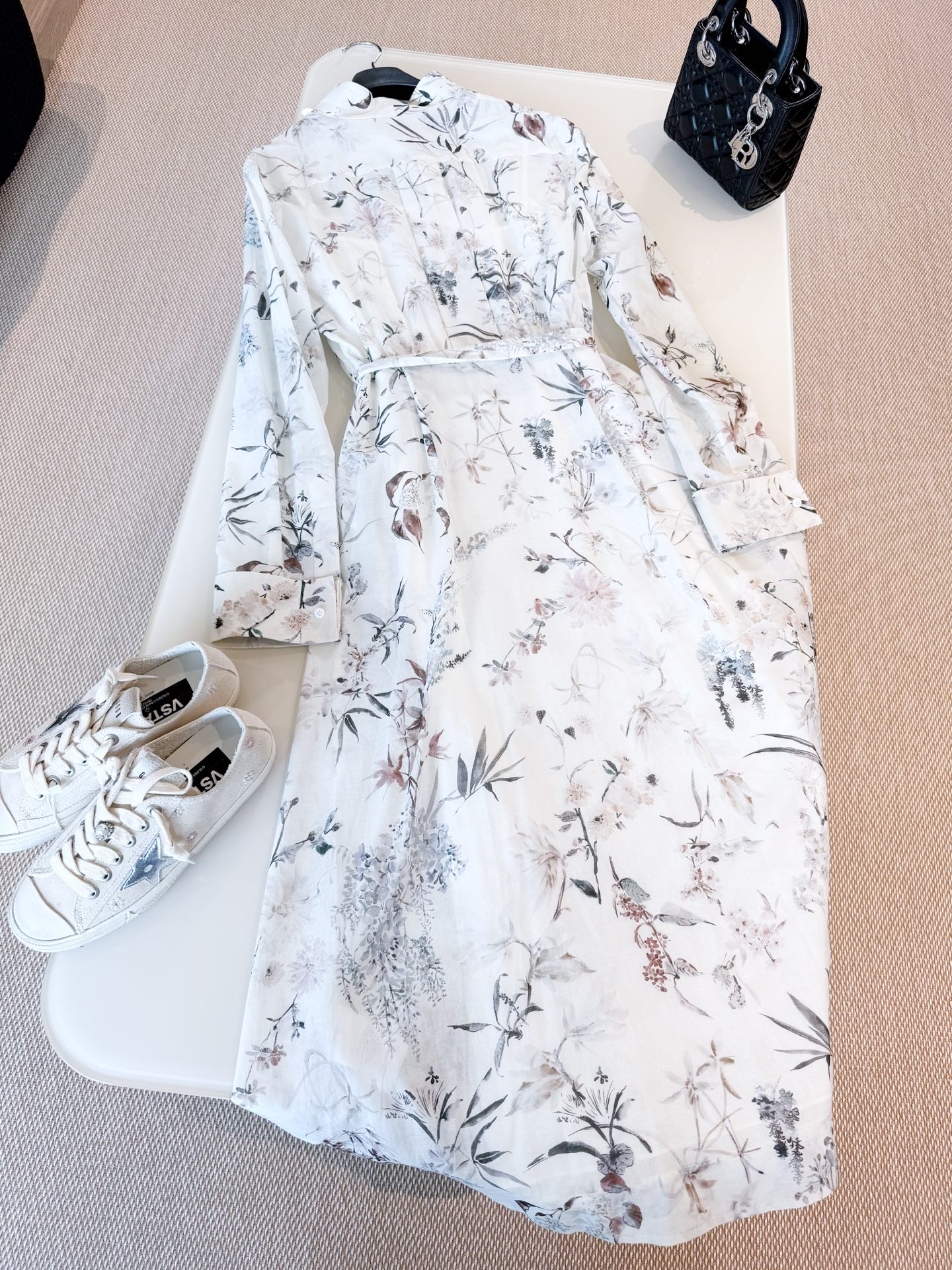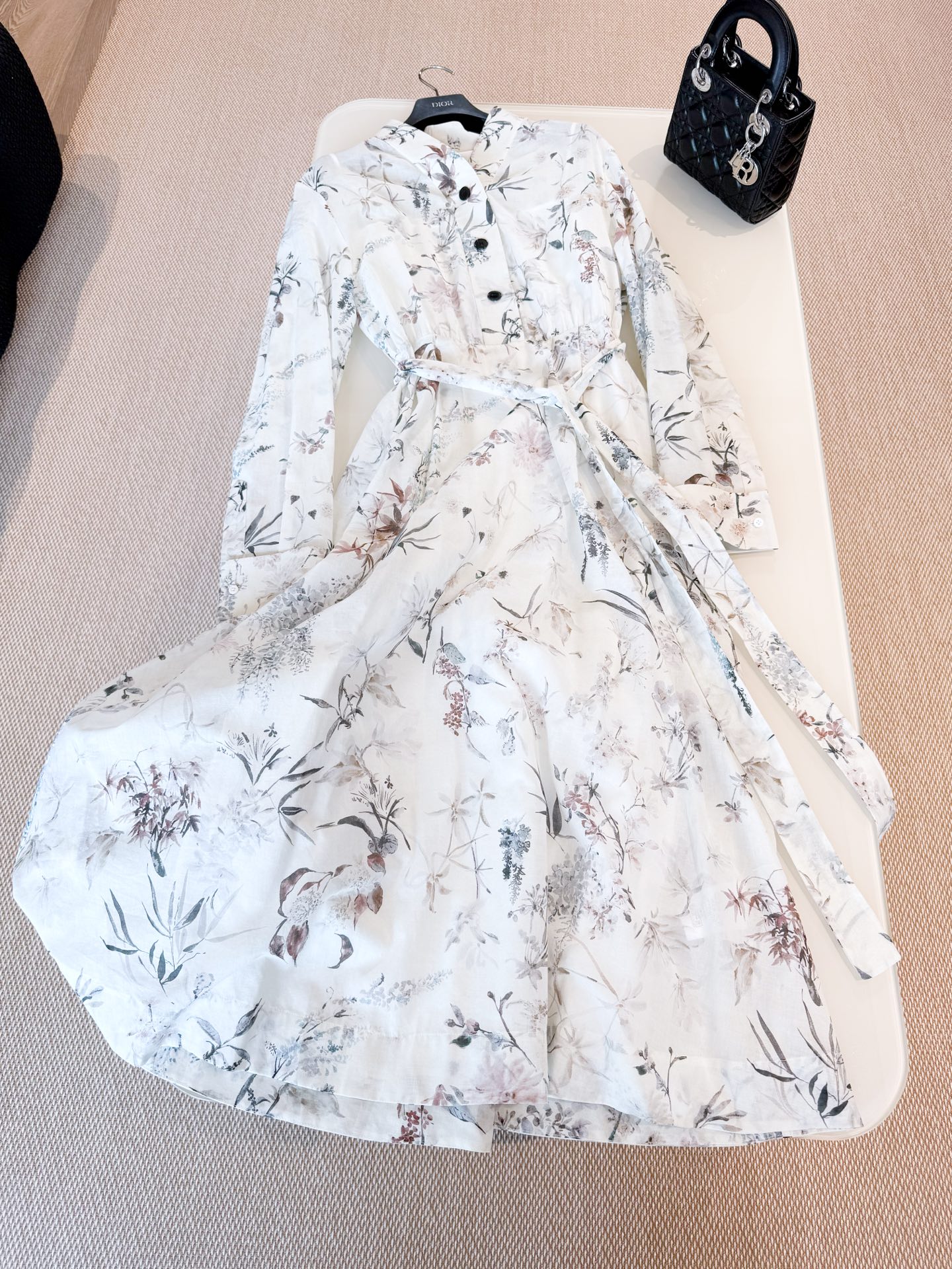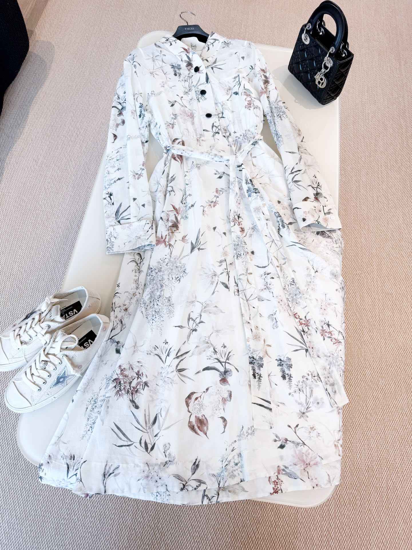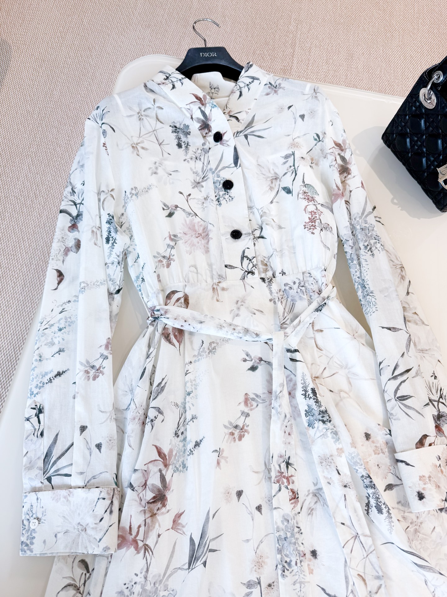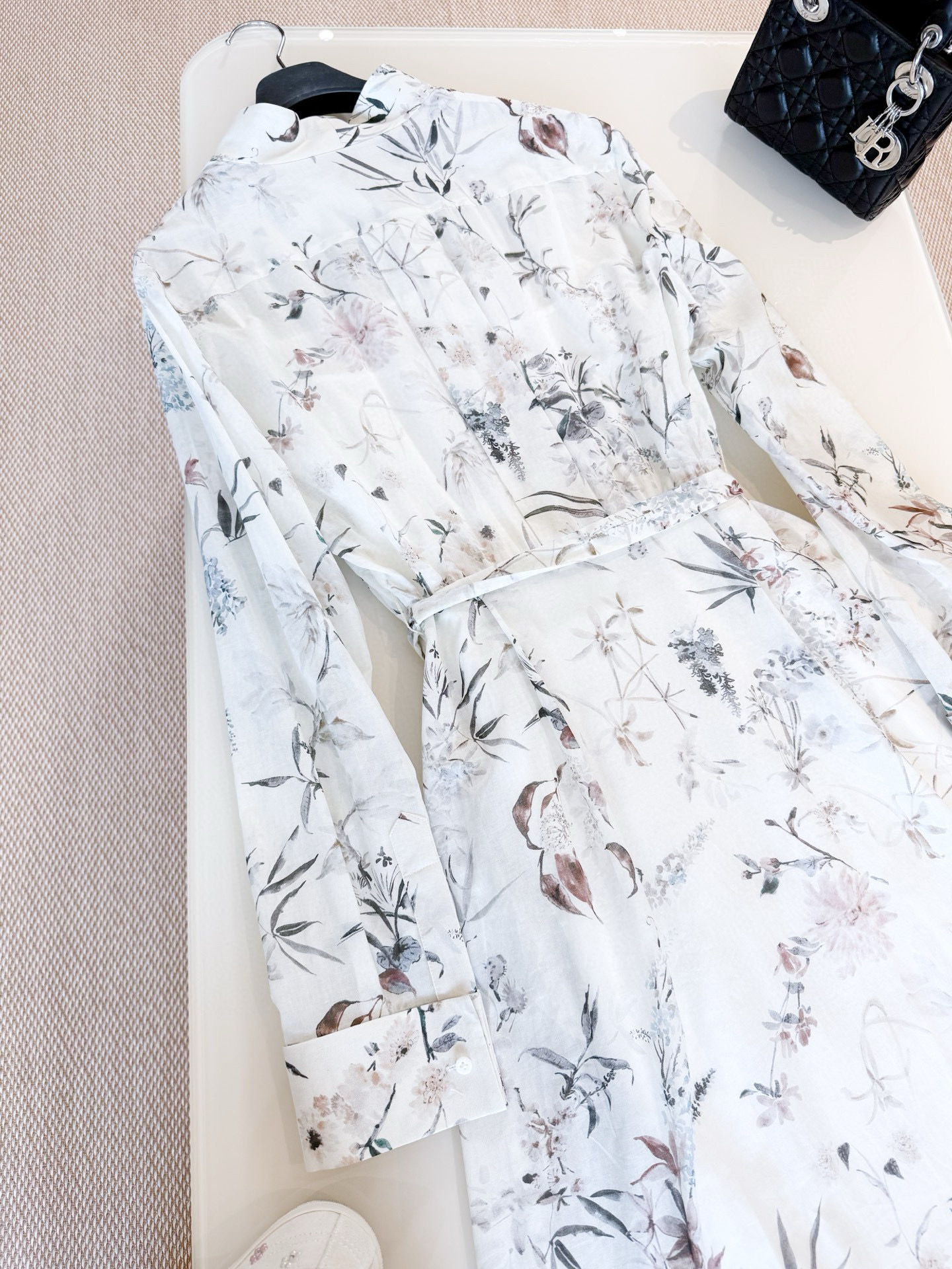 NIGO Dior Millefiori Pattern With Belt Women's Spring Summer Fashion Elegant Long Long Sleeve Dress Slim Printed Gown Dresses Ngvp #nigo1899
