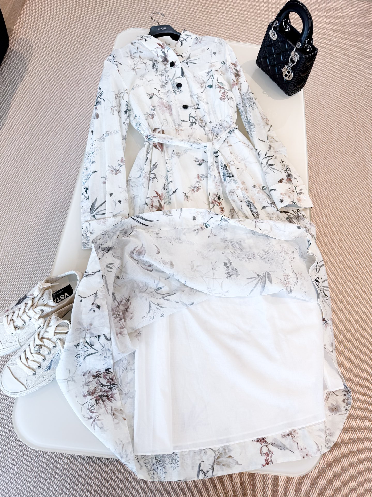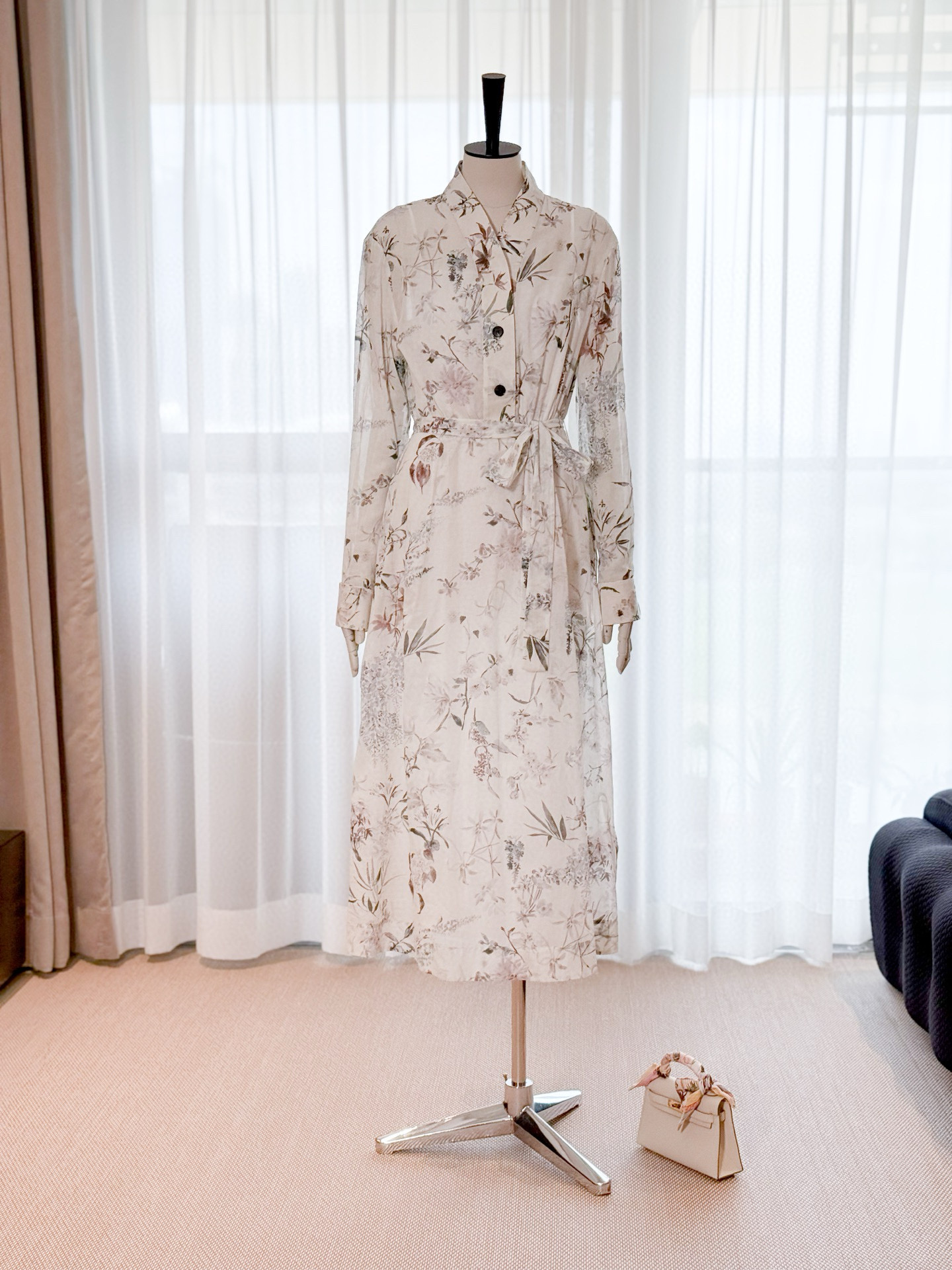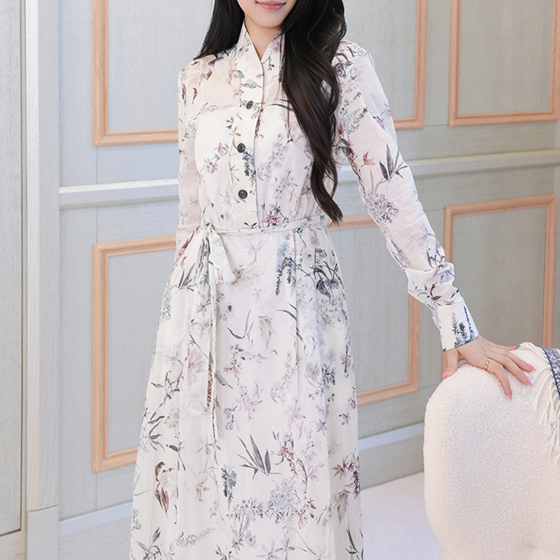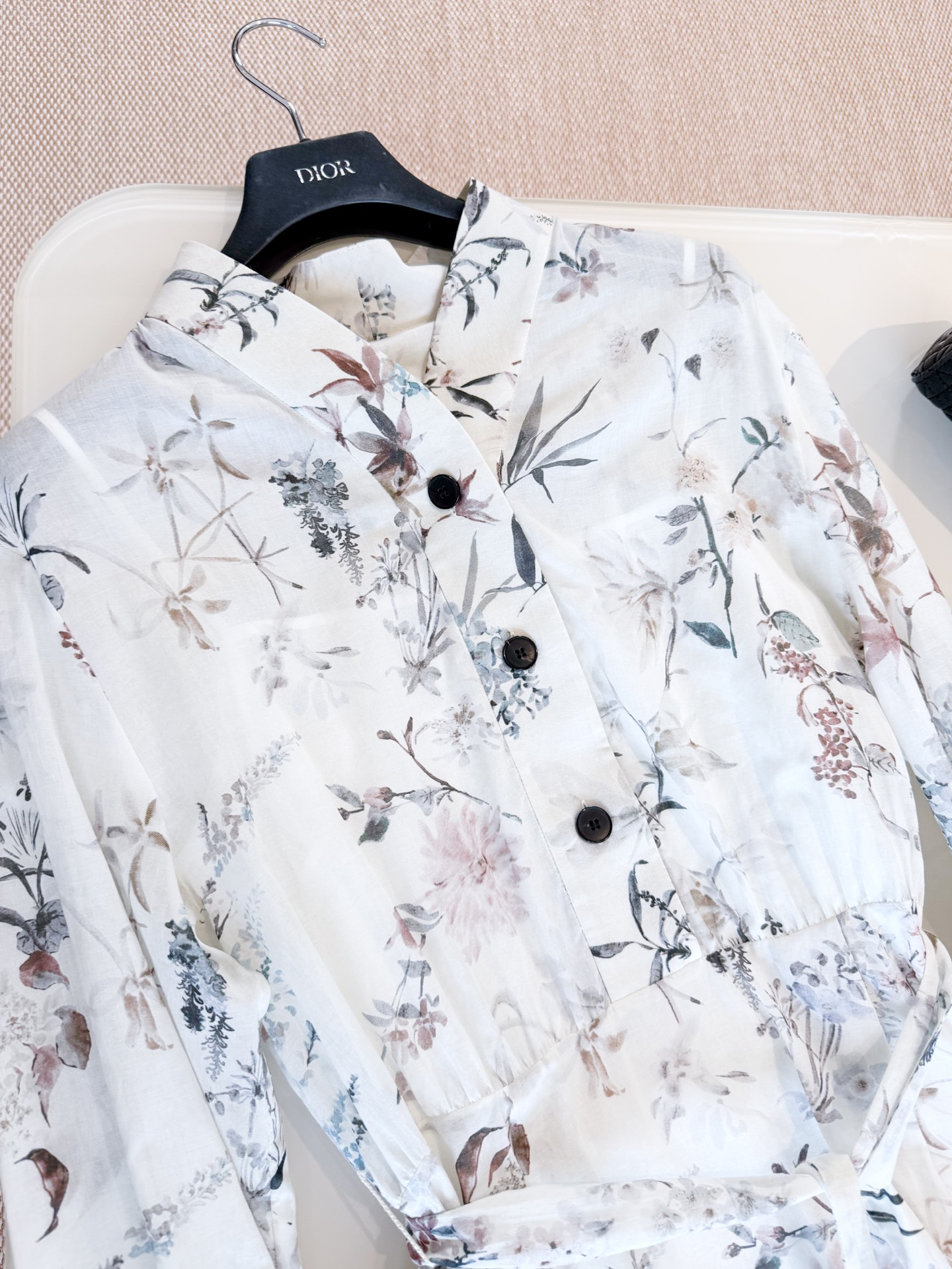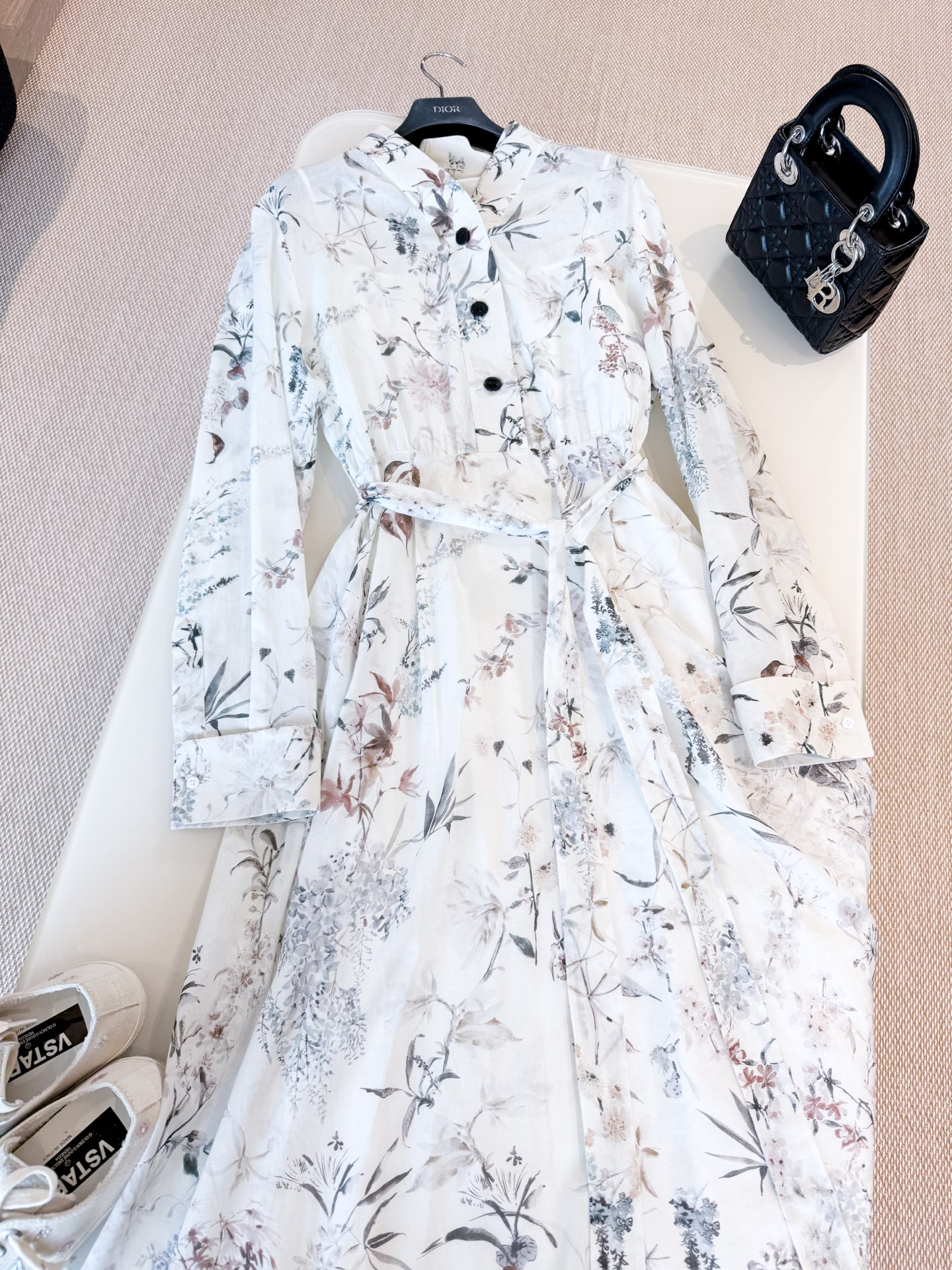 NIGO Dior Millefiori Pattern With Belt Women's Spring Summer Fashion Elegant Long Long Sleeve Dress Slim Printed Gown Dresses Ngvp #nigo1899