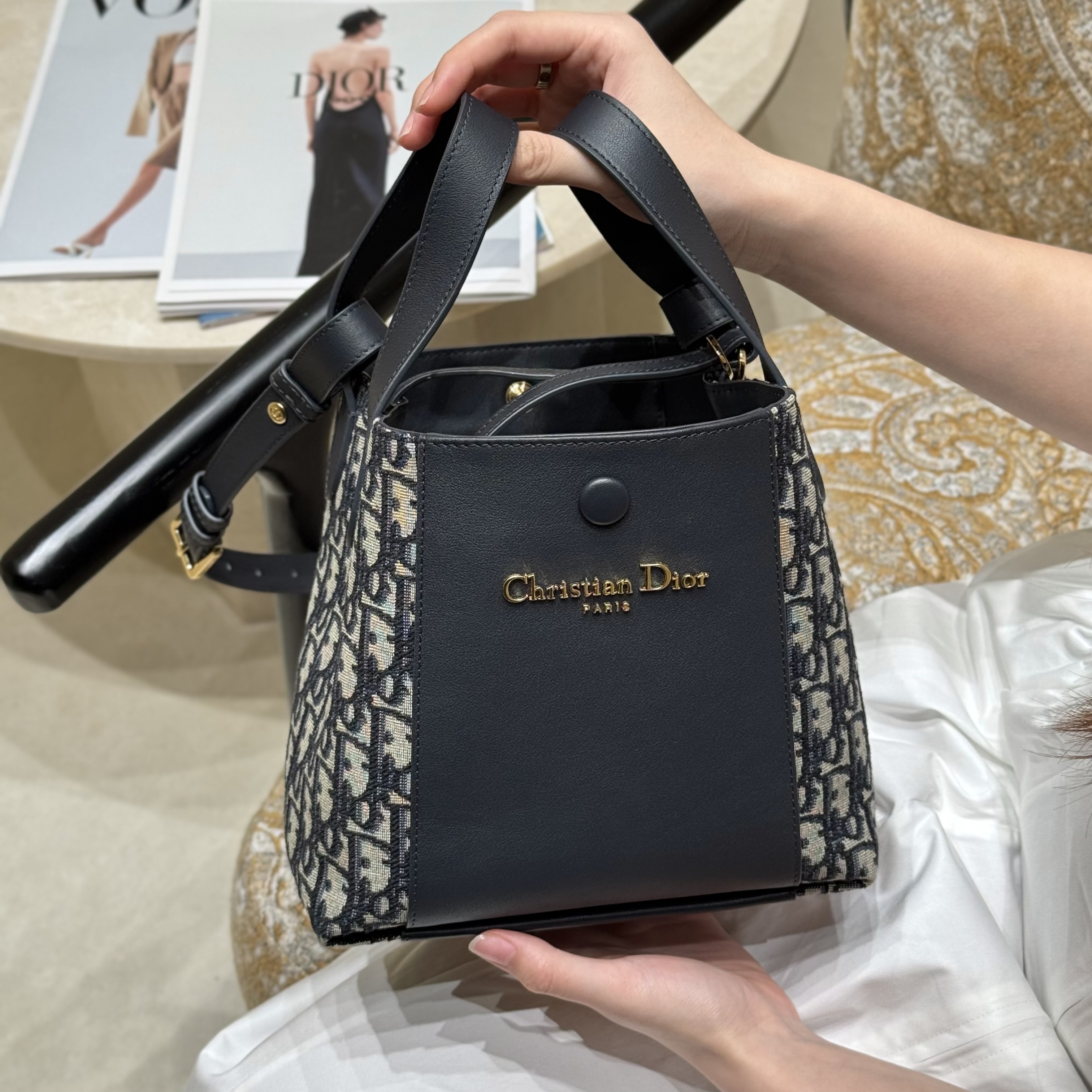 NIGO Dior Signature Women's Monogram Printed Solid Colour Grained Cowhide Leather Shoulder Tote Bucket Bag Bags #nigo76662