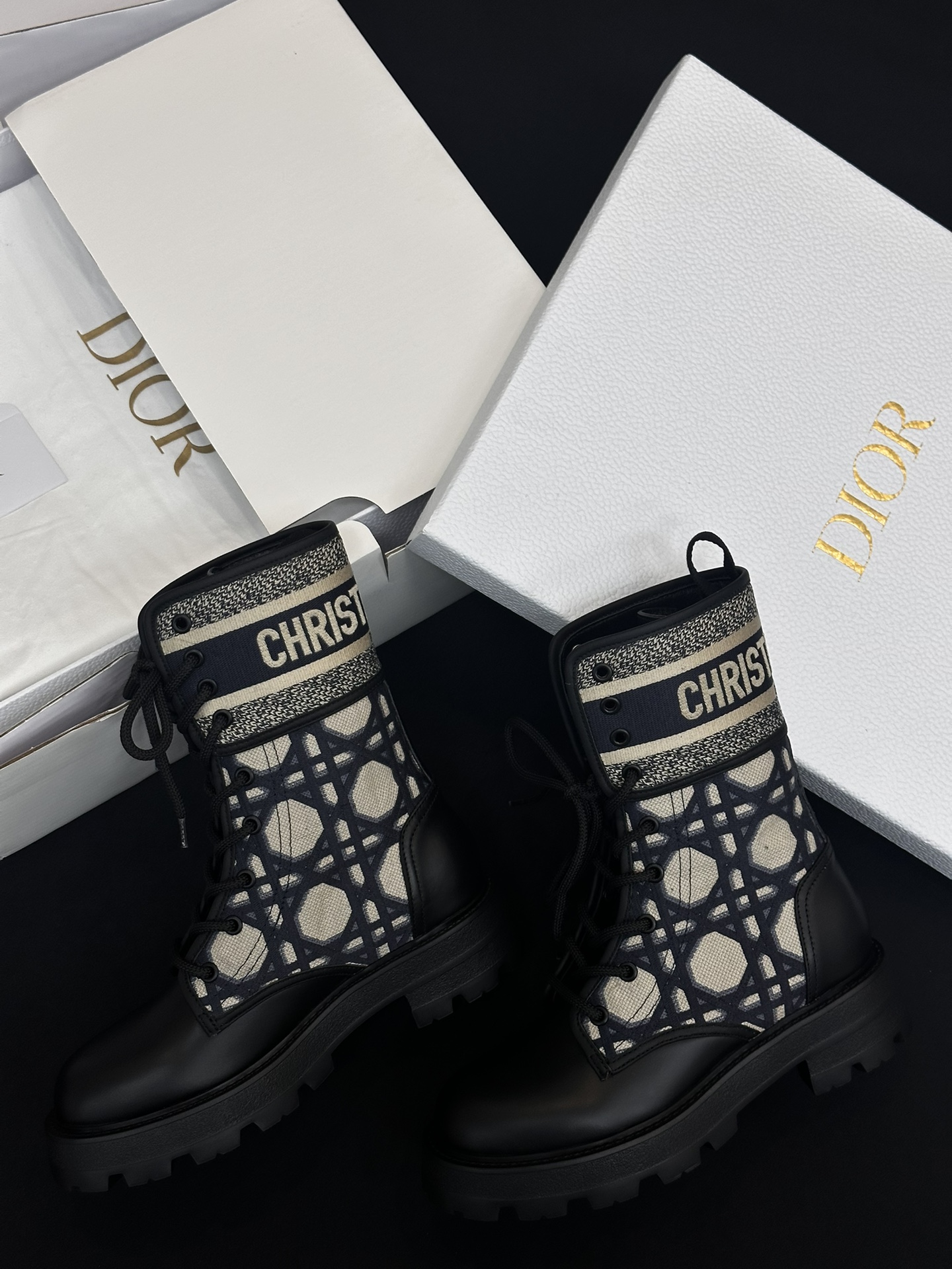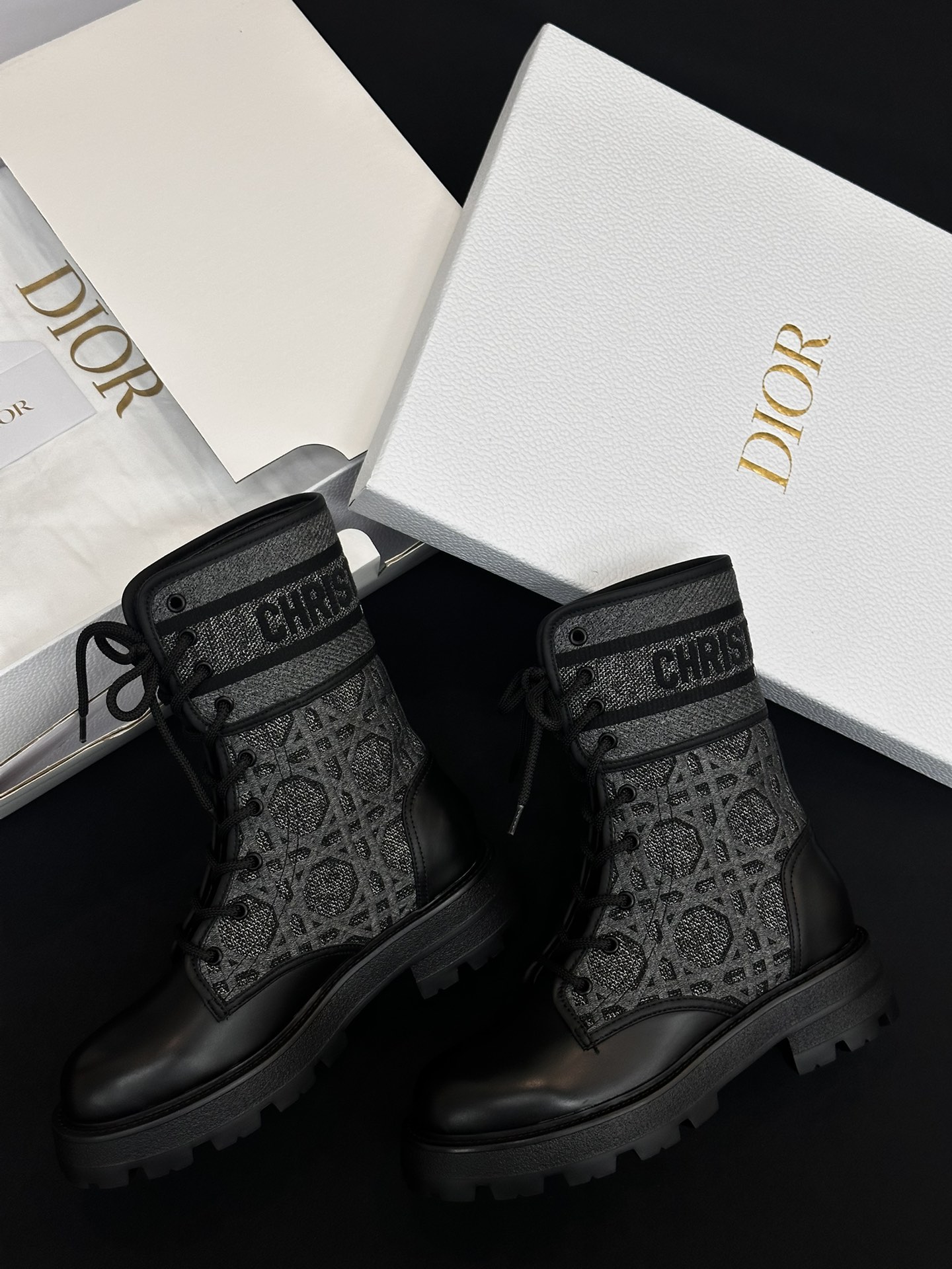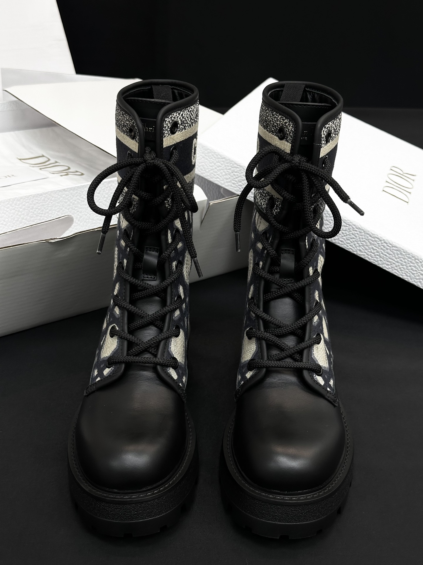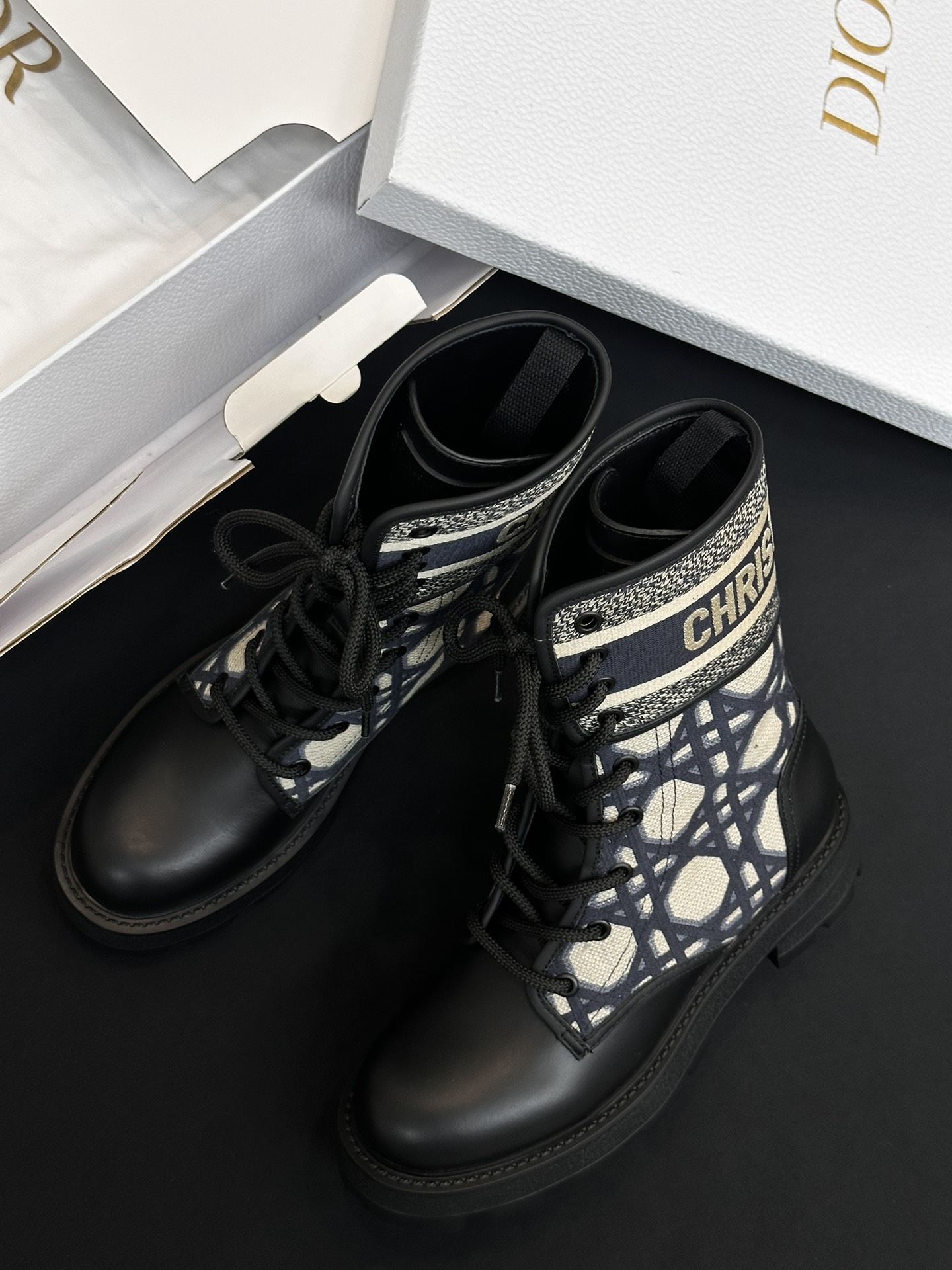 NIGO Dior Women's Autumn/Winter Fashion Casual Round Toe Lace Up Leather Light Sole Embroidered Lace Up Martin Boots Shoes #nigo78289