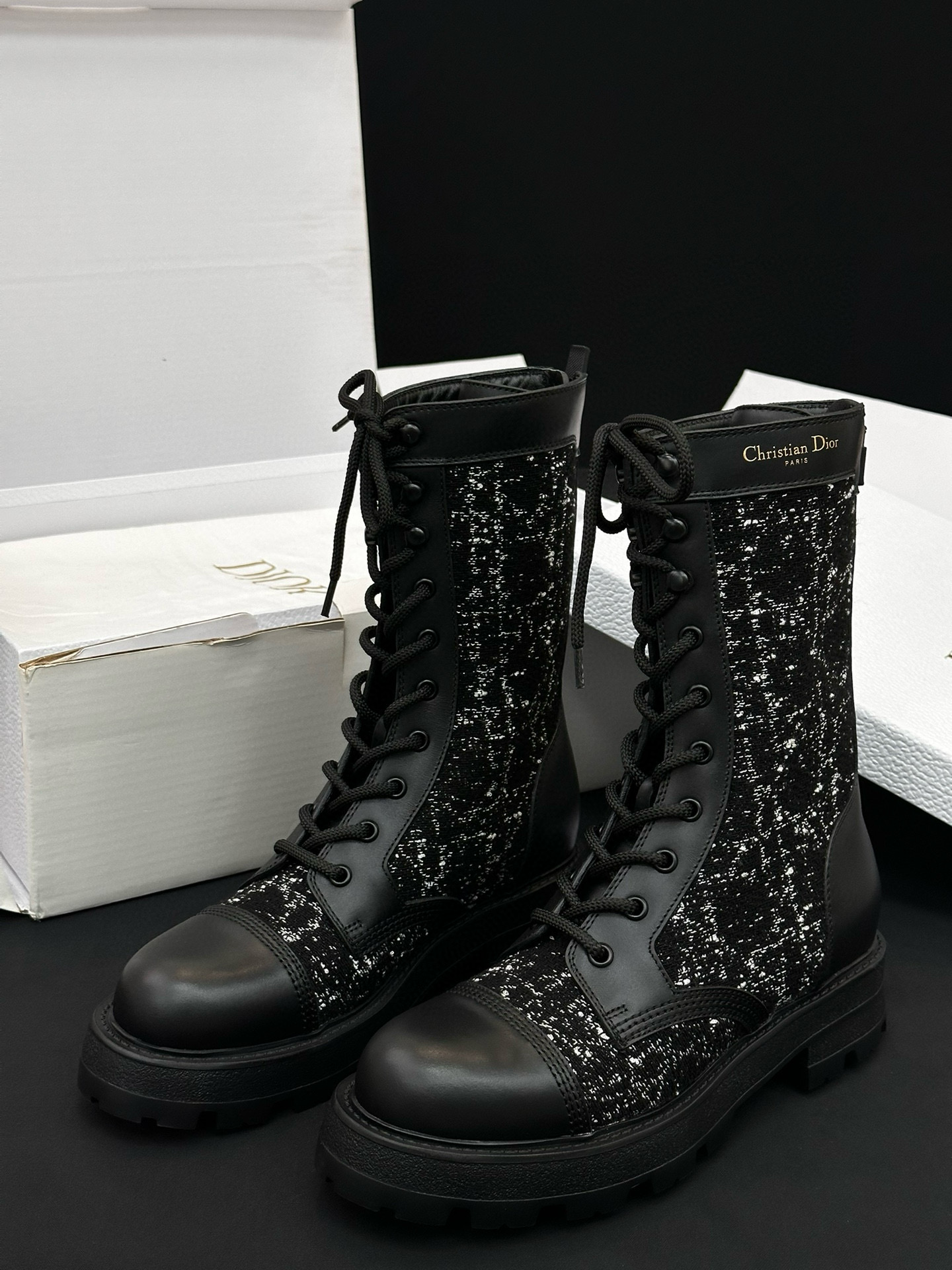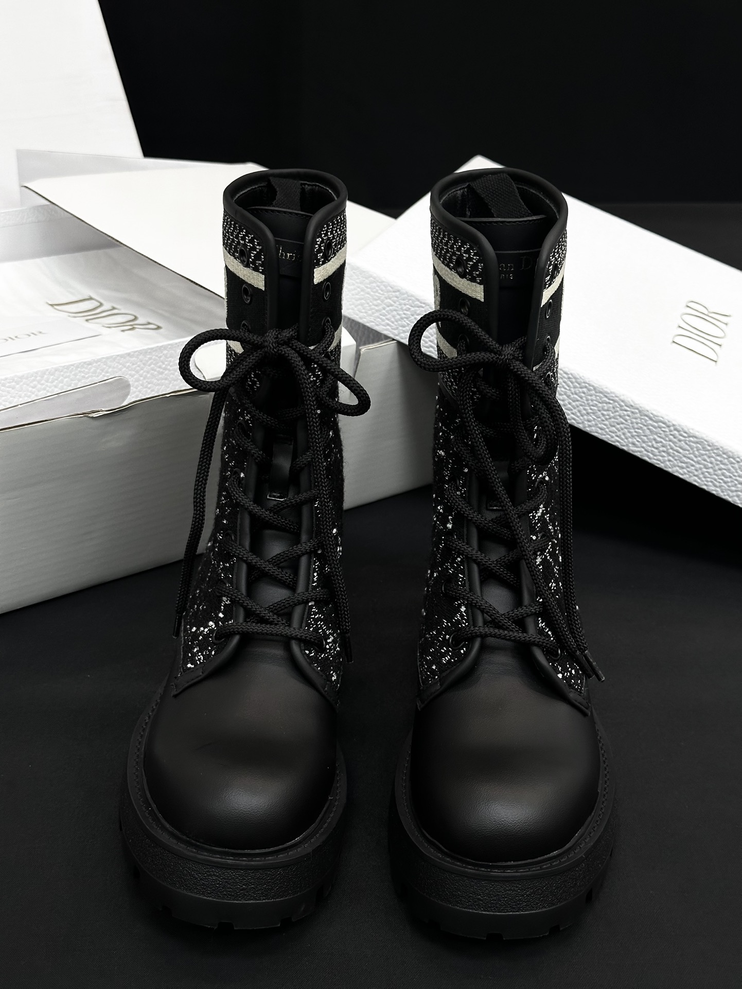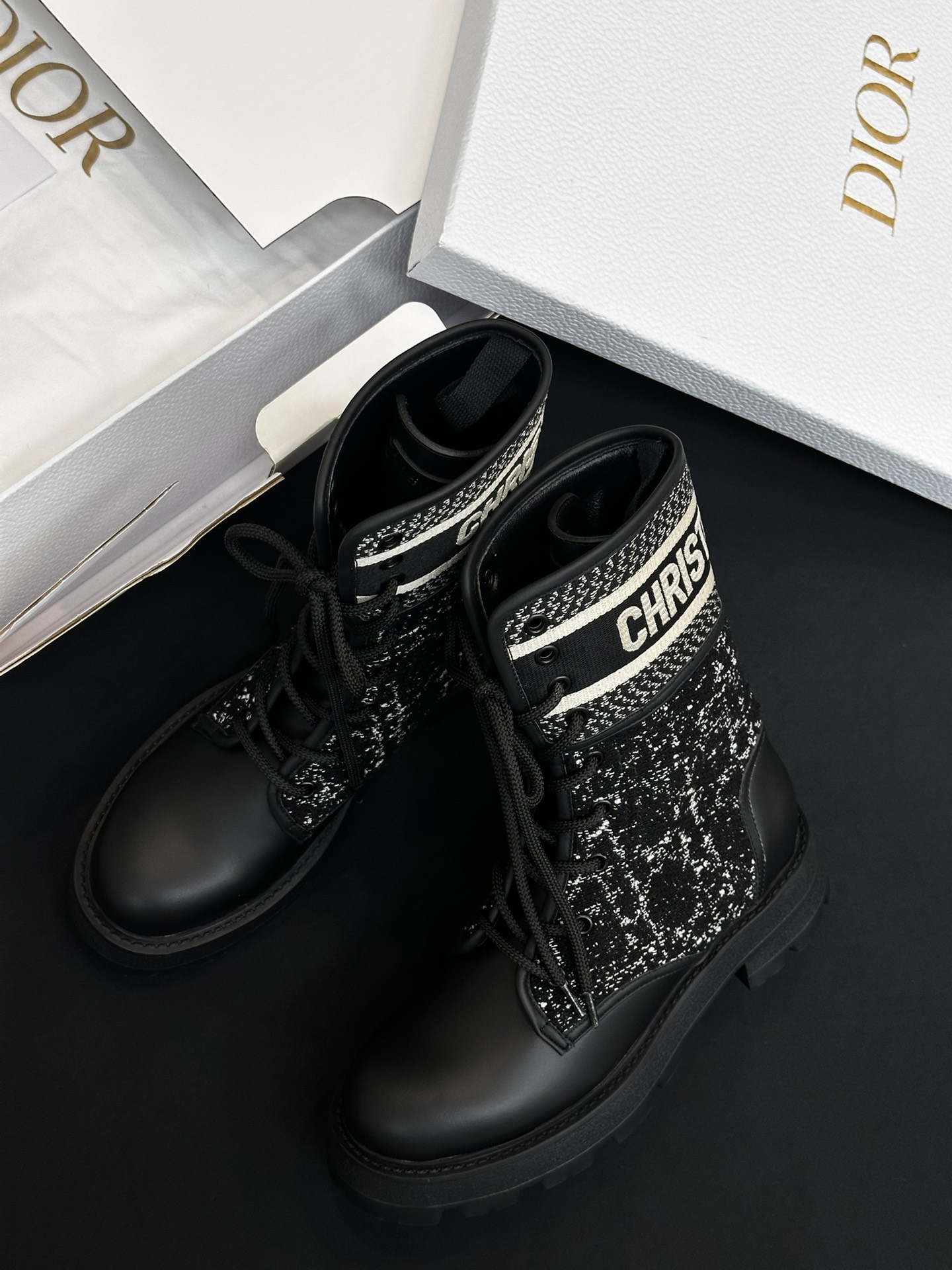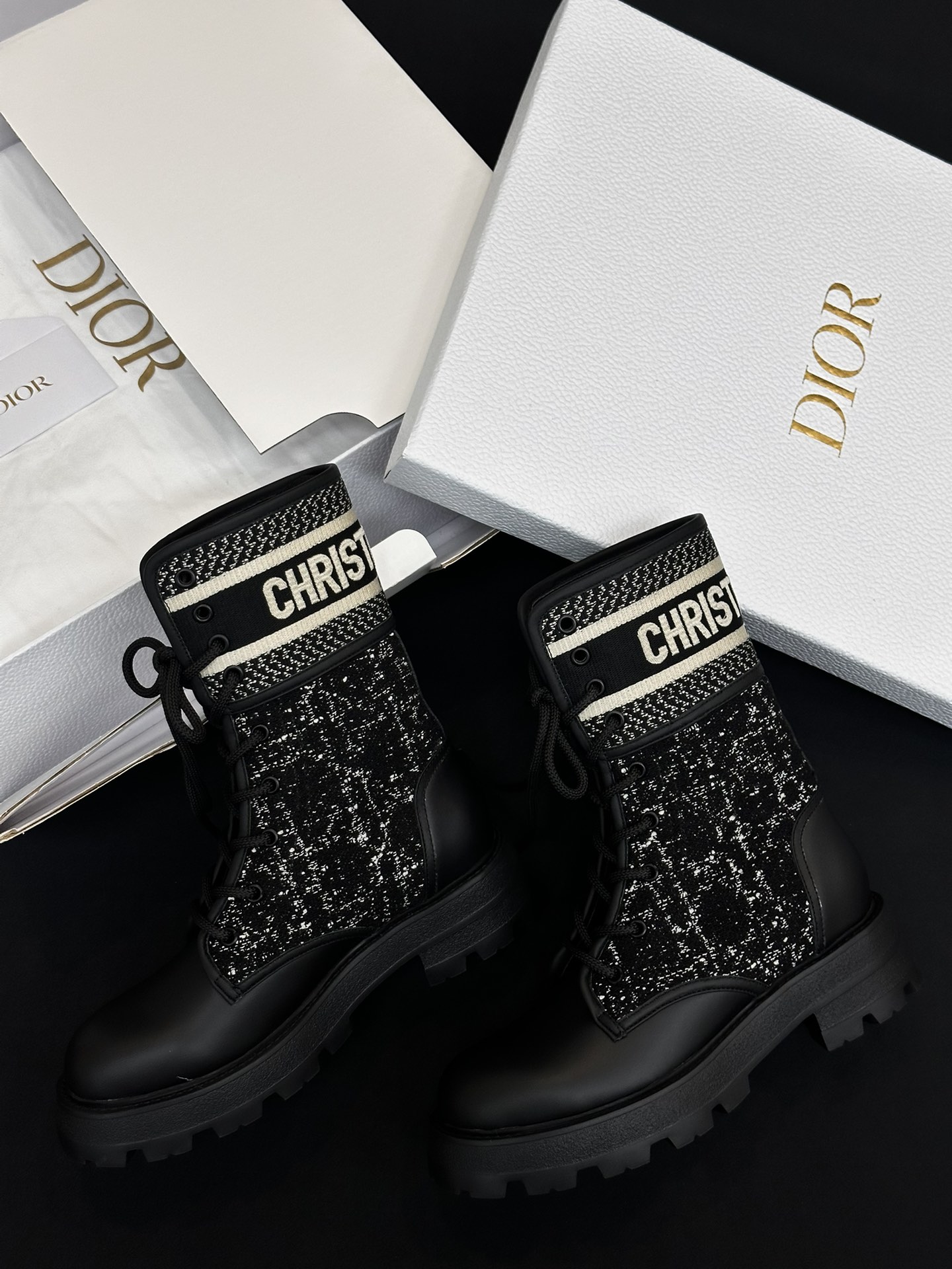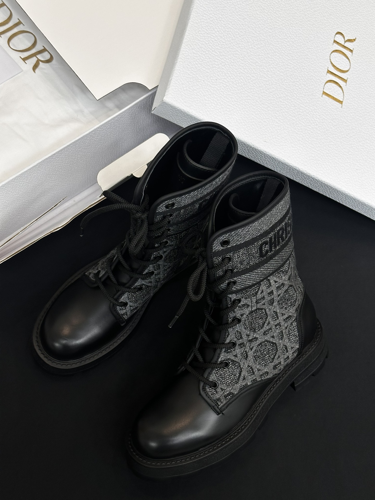 NIGO Dior Women's Autumn/Winter Fashion Casual Round Toe Lace Up Leather Light Sole Embroidered Lace Up Martin Boots Shoes #nigo78289