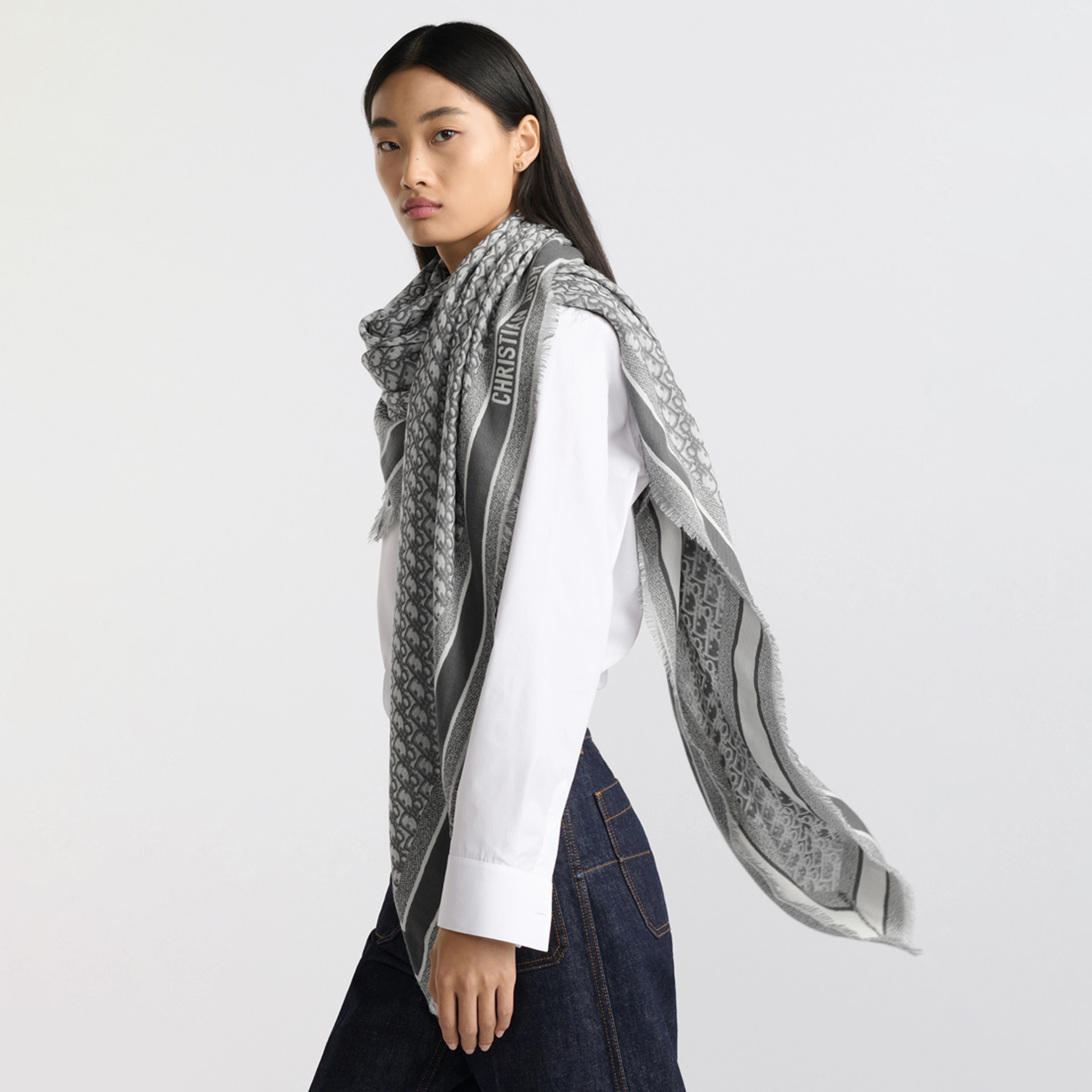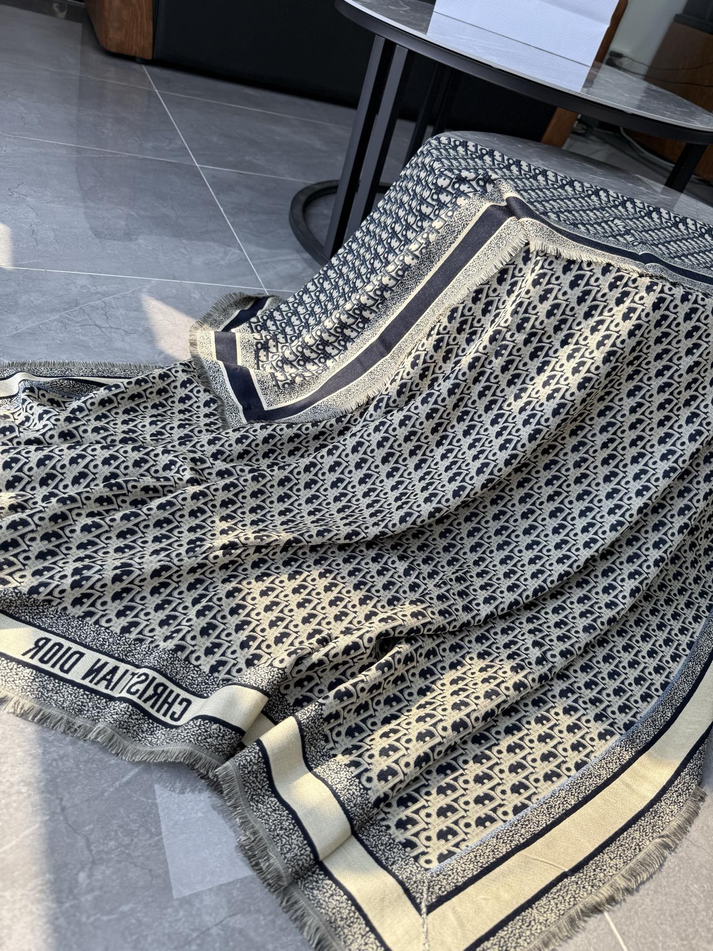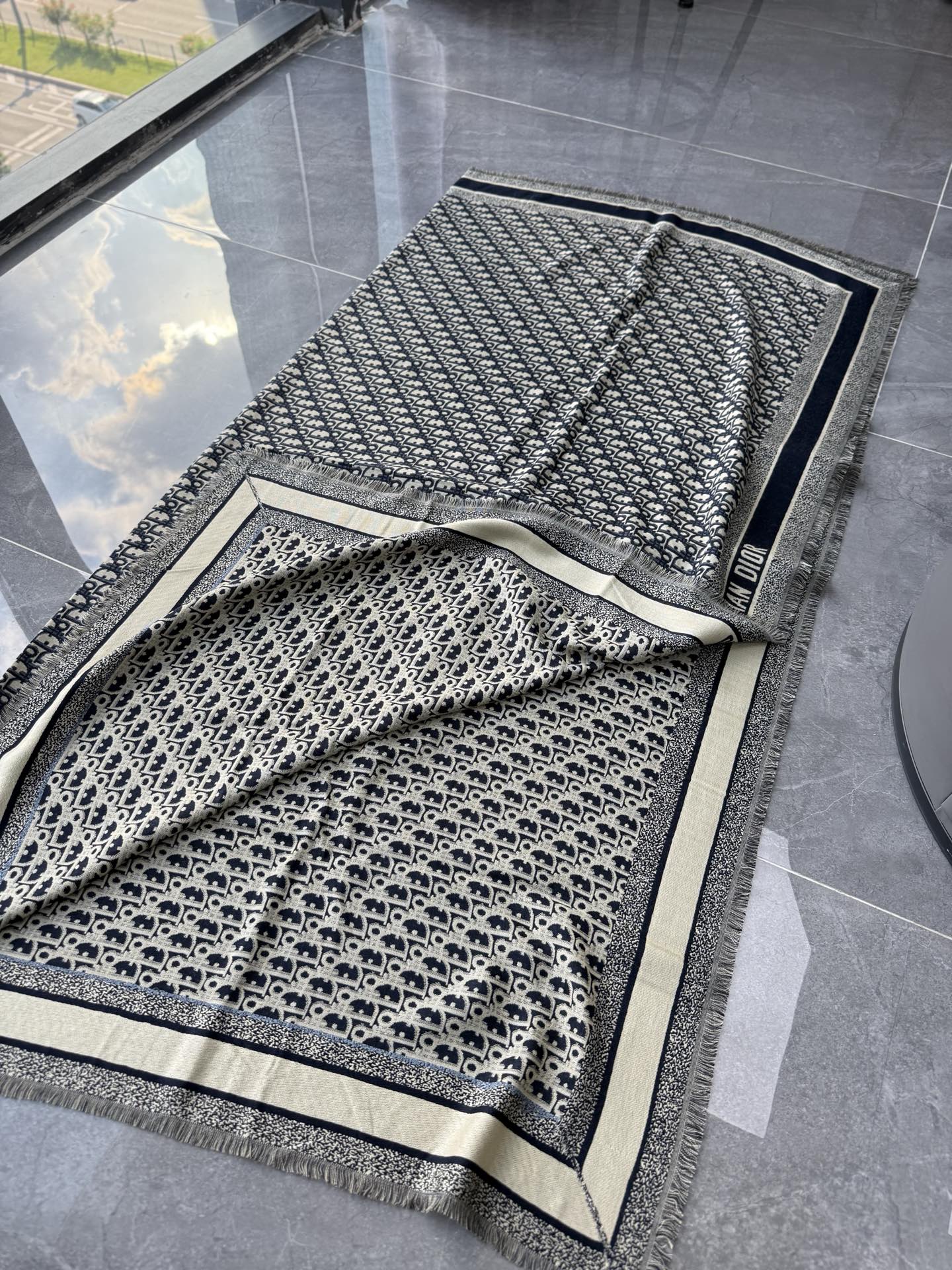 NIGO Dior Women's Fashion Classic Reversible Oblique Print Shearling and Mulberry Silk Blend Fabric Scarf Accessories #nigo78625