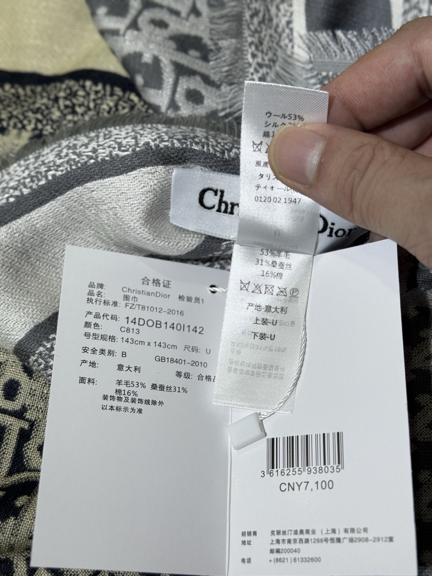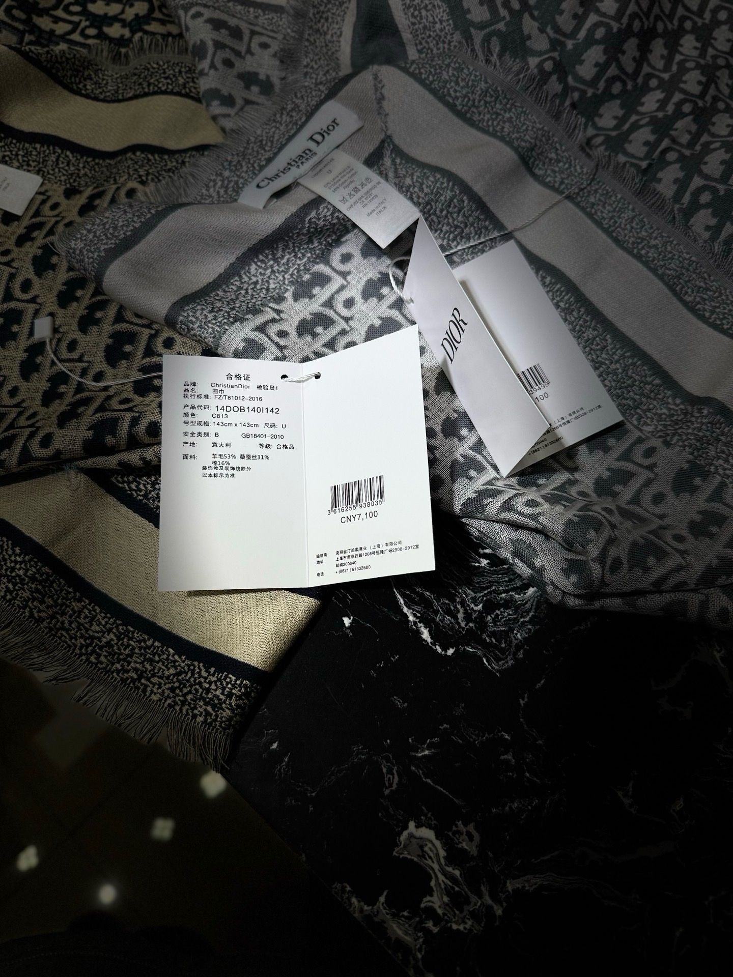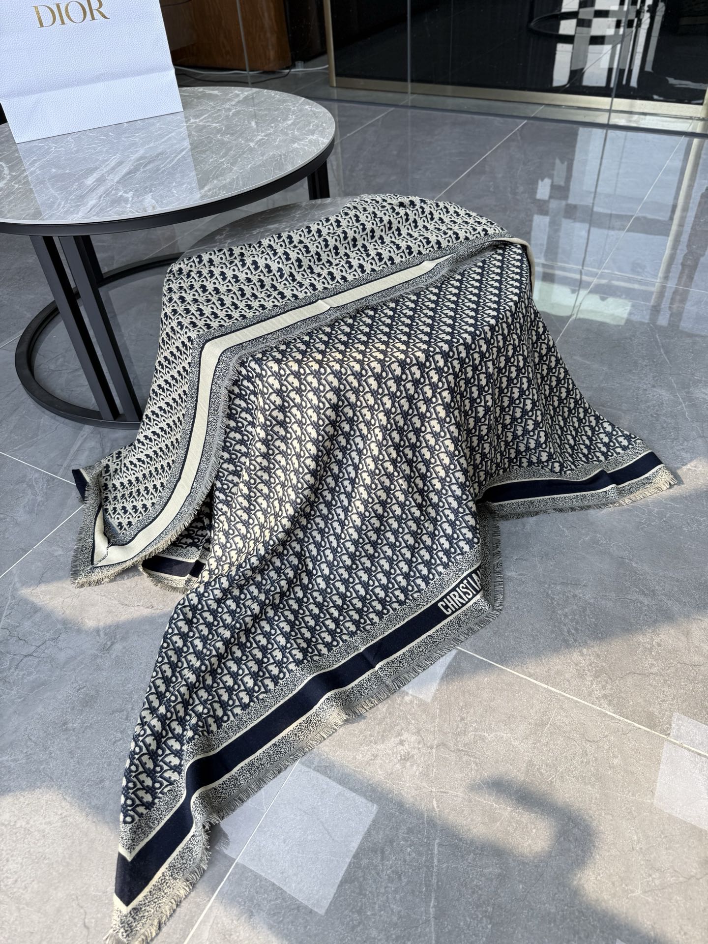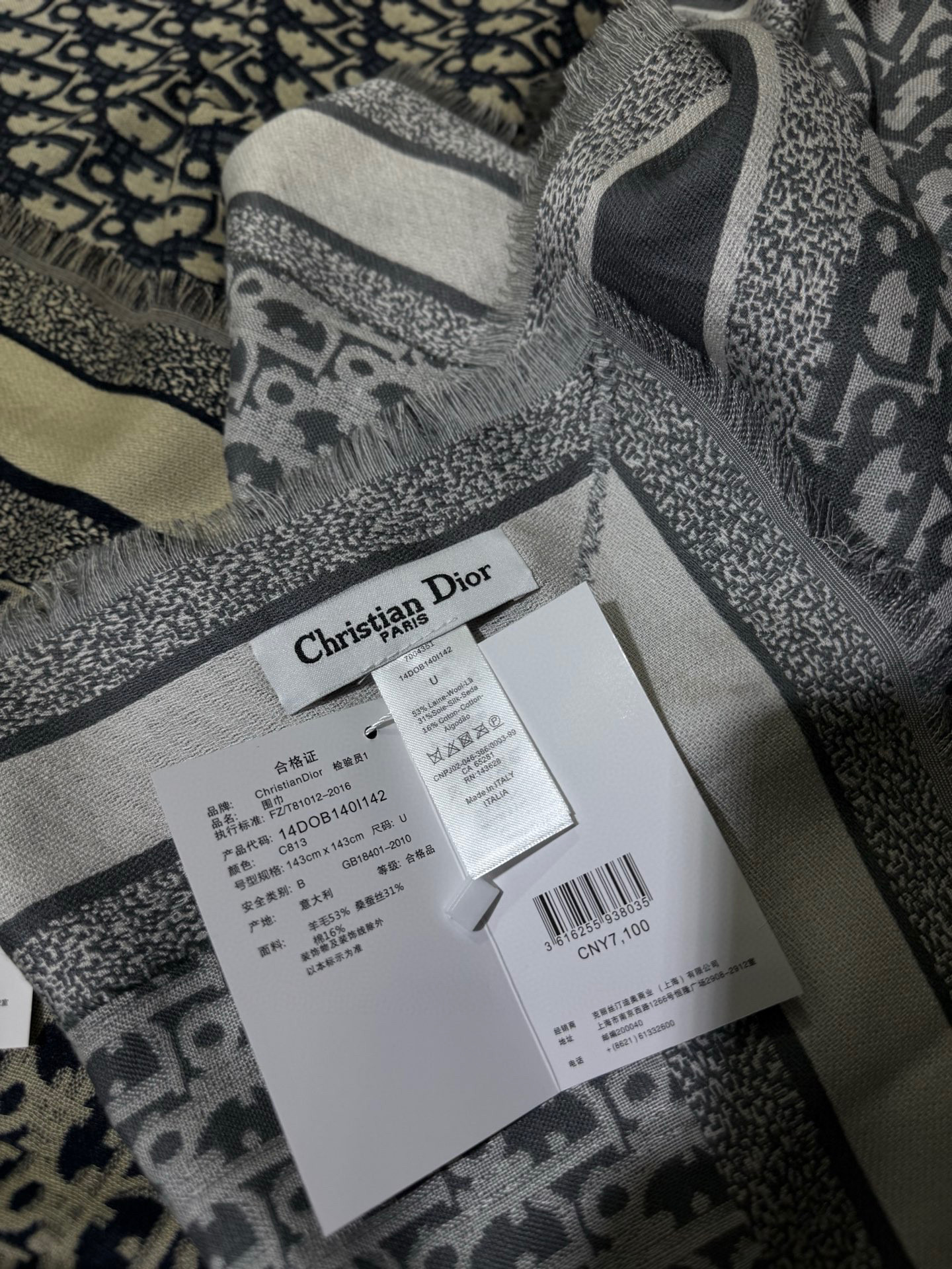 NIGO Dior Women's Fashion Classic Reversible Oblique Print Shearling and Mulberry Silk Blend Fabric Scarf Accessories #nigo78625