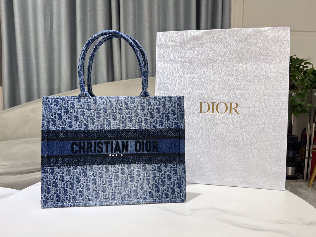 NIGO Dior Women's Gradient Blue Embroidered Logo Printed Denim Tote Bag Shopper Handbag Tote Bags #nigo72163