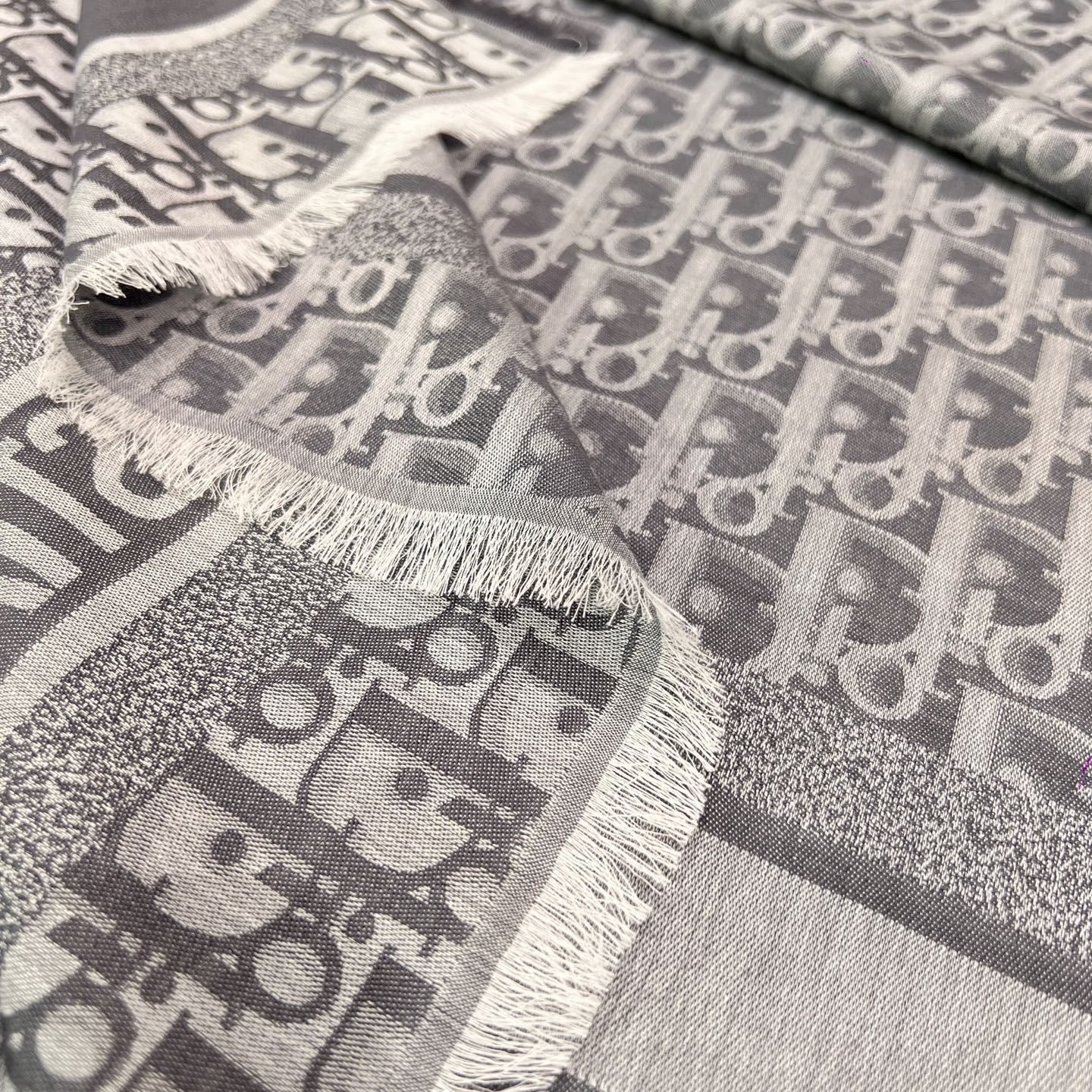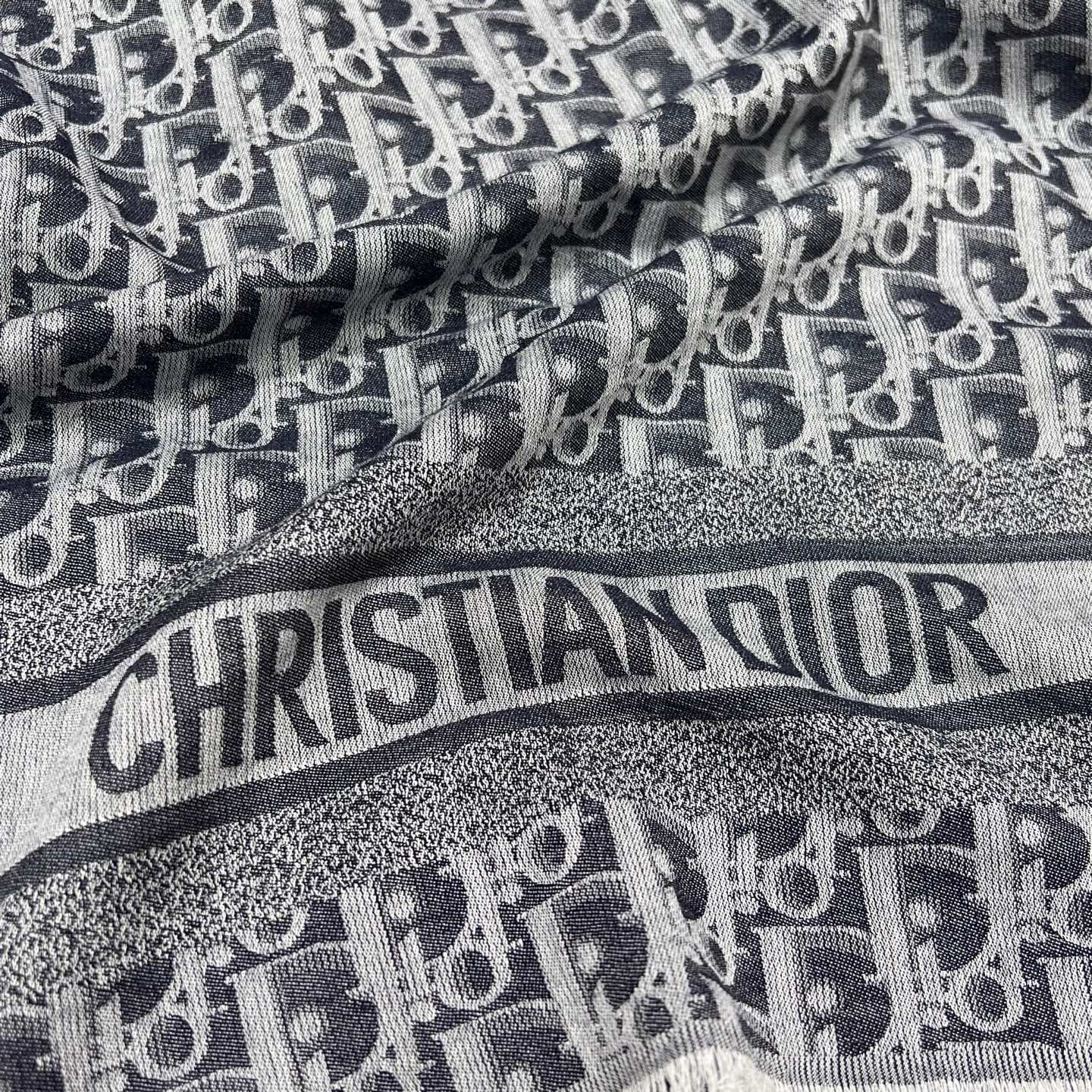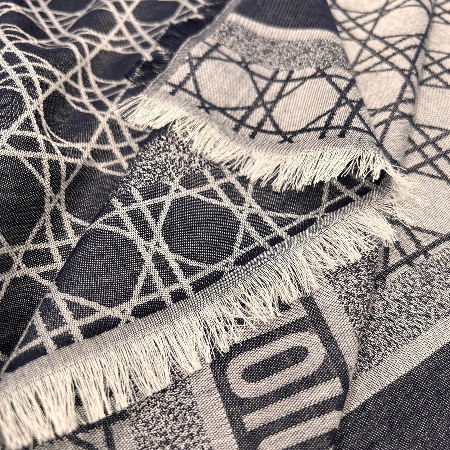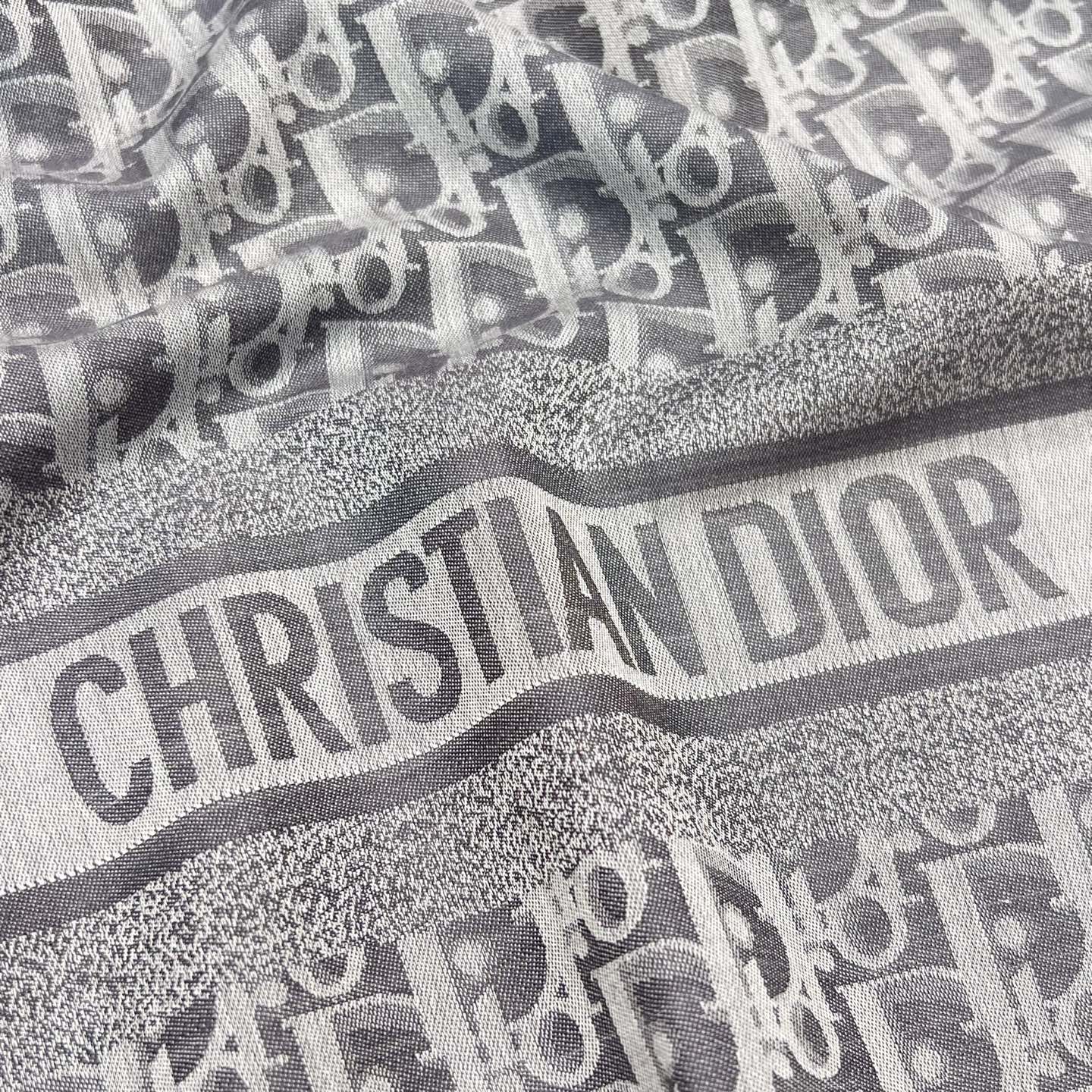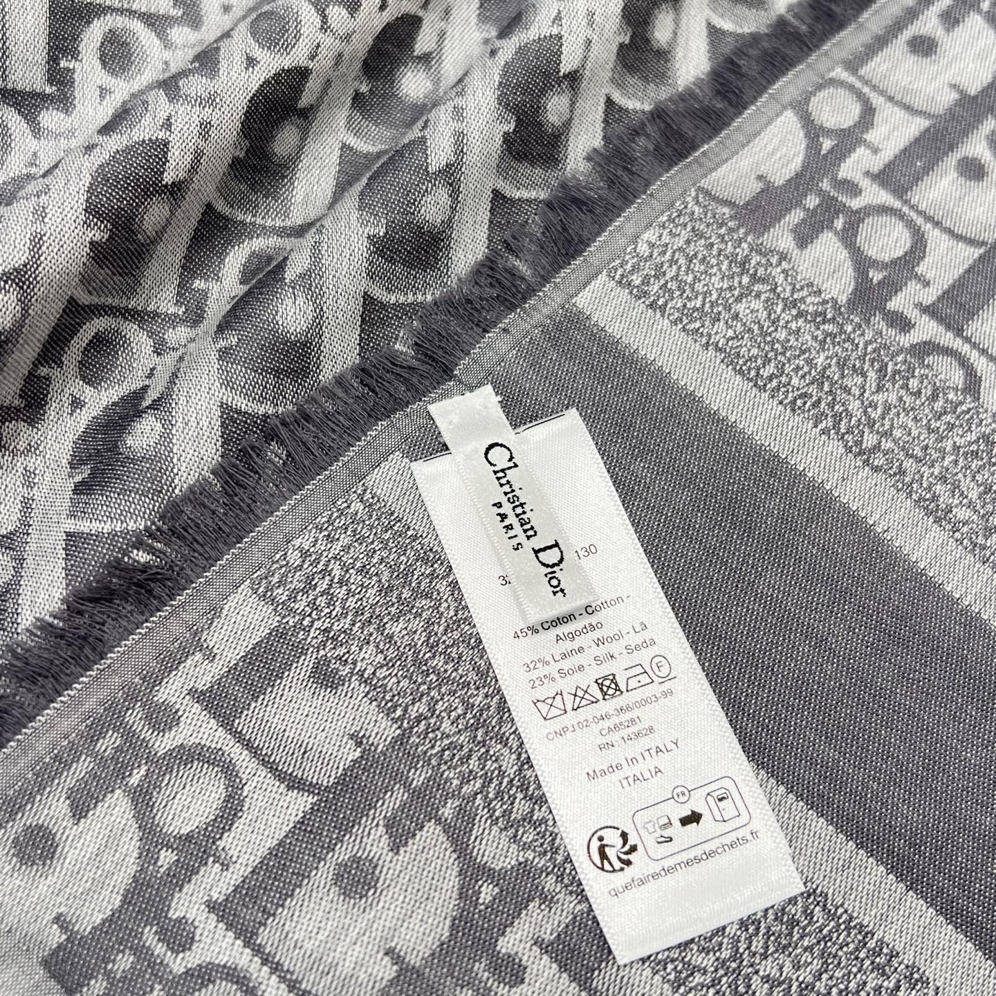 NIGO Dior Women's Gray Monogrammed Wool, Mulberry Silk & Cotton Blend Shawl Scarf #nigo77561