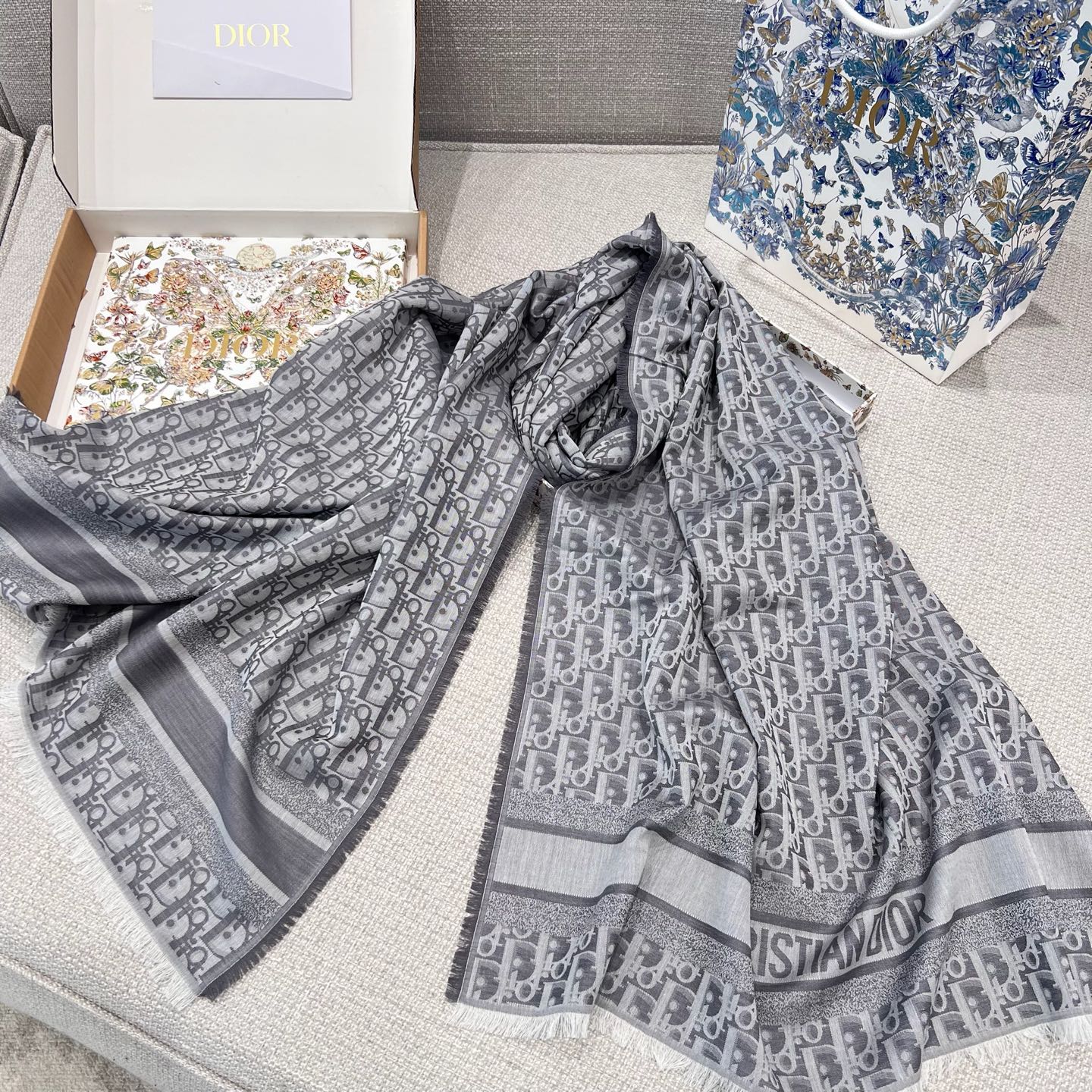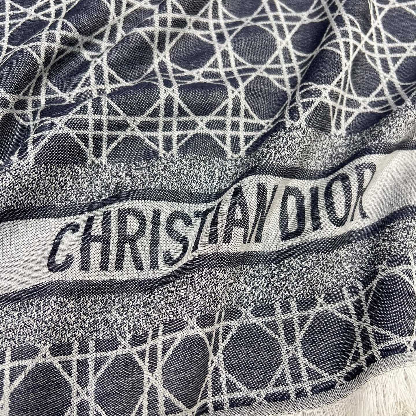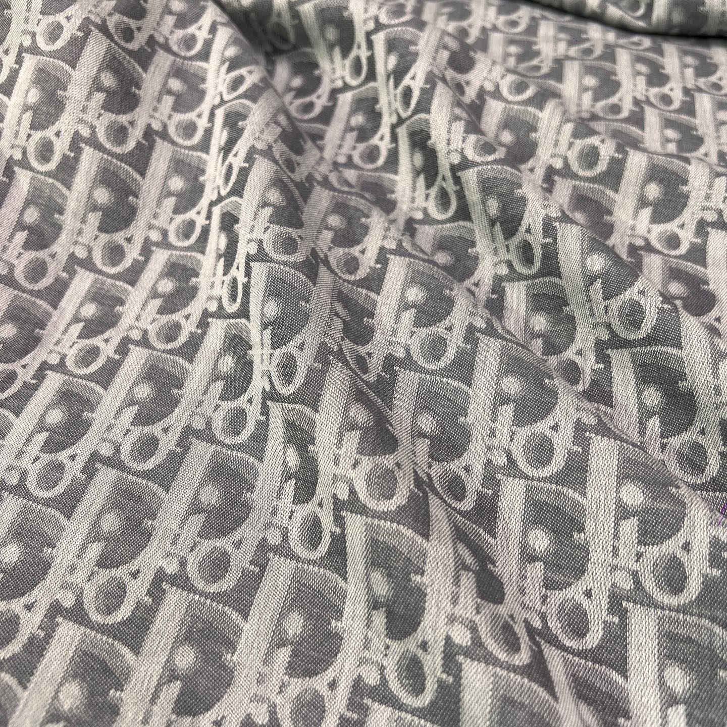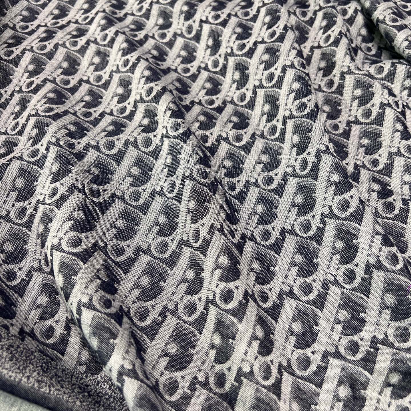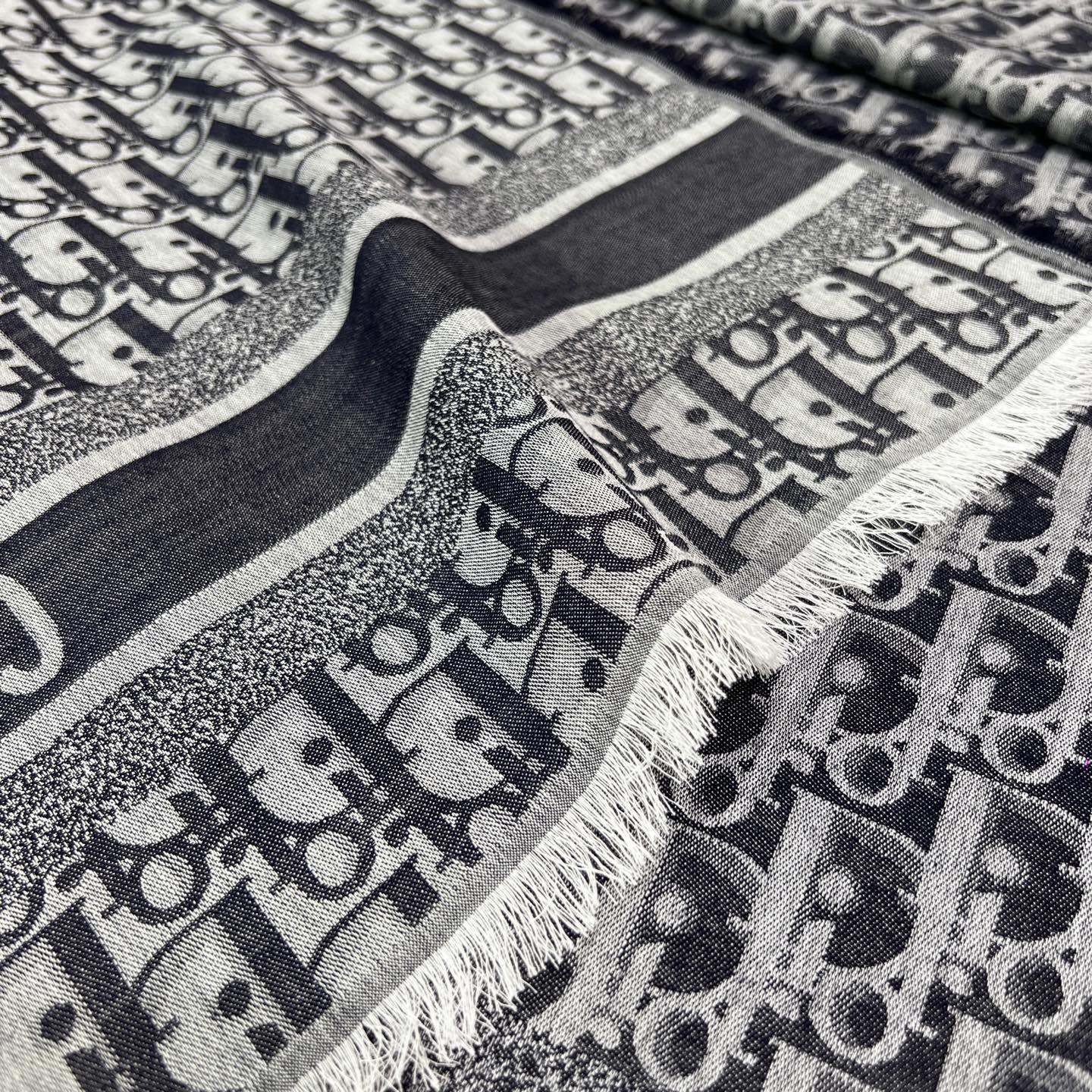 NIGO Dior Women's Gray Monogrammed Wool, Mulberry Silk & Cotton Blend Shawl Scarf #nigo77561