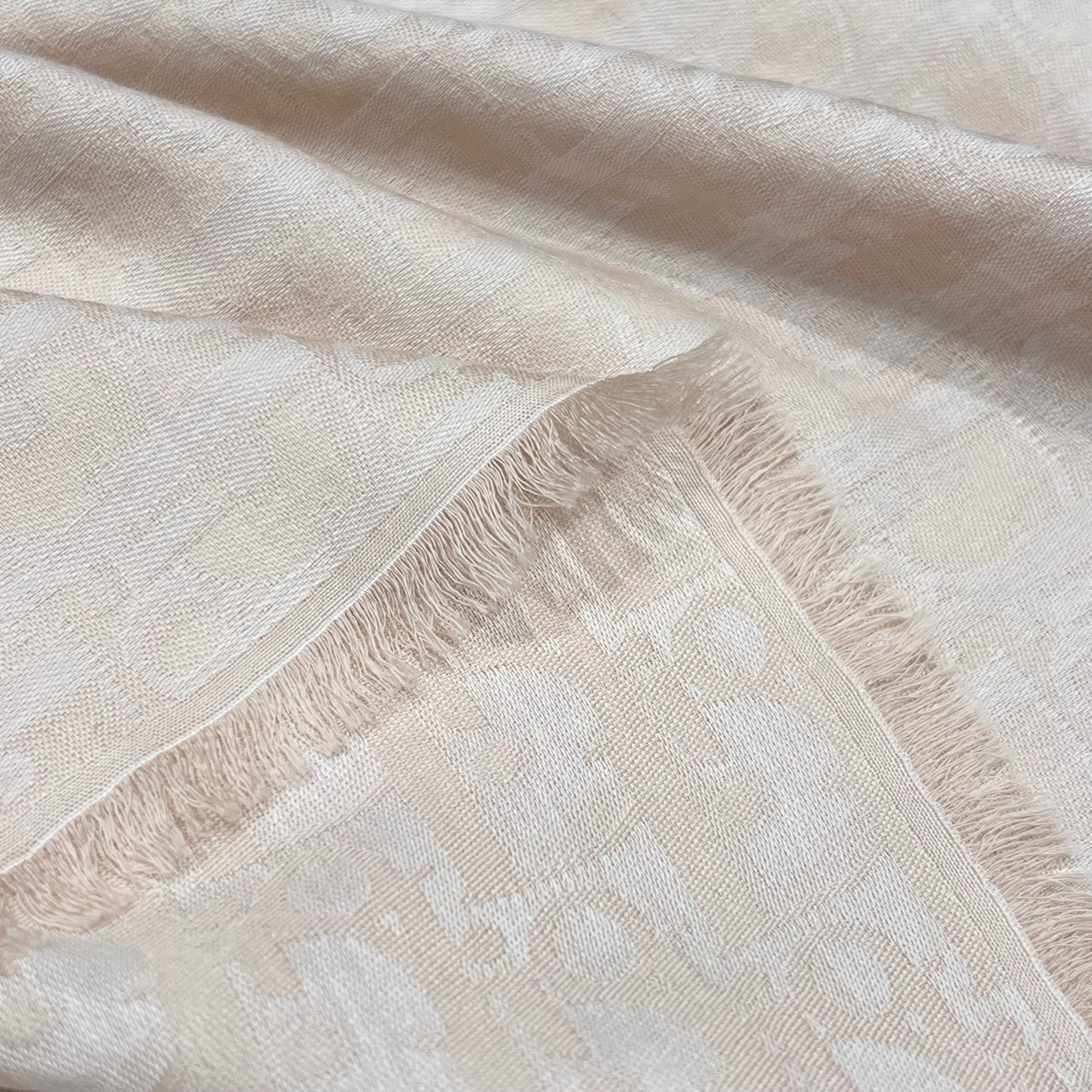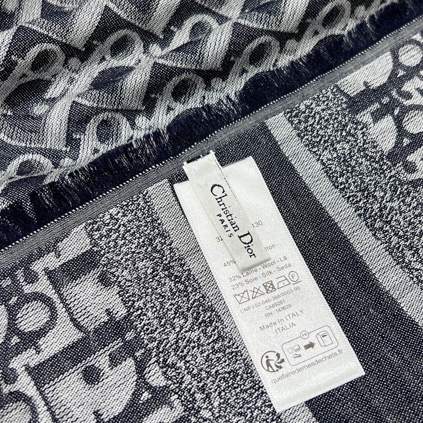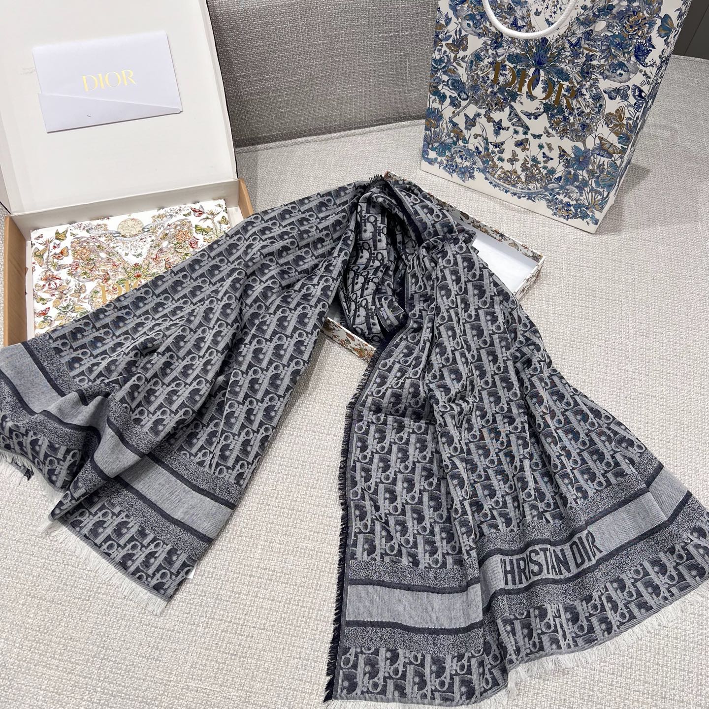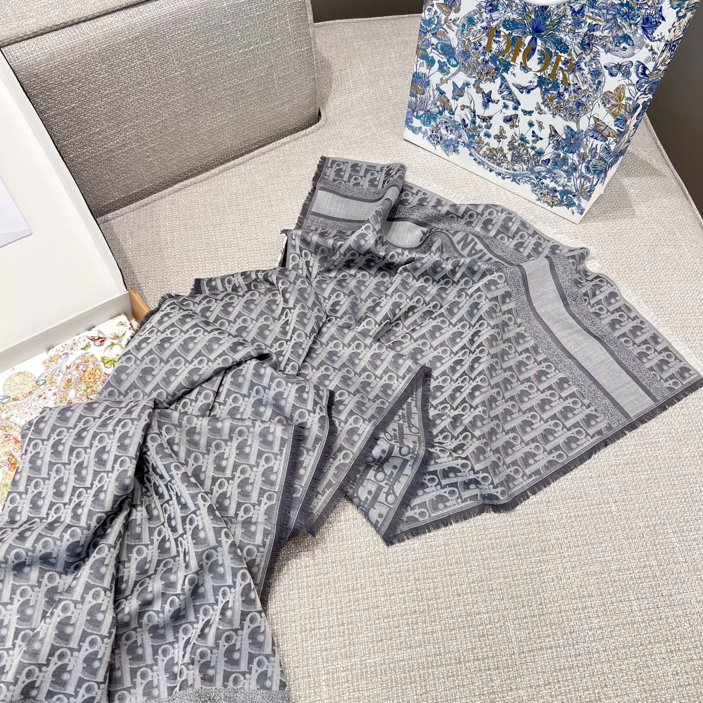 NIGO Dior Women's Gray Monogrammed Wool, Mulberry Silk & Cotton Blend Shawl Scarf #nigo77561