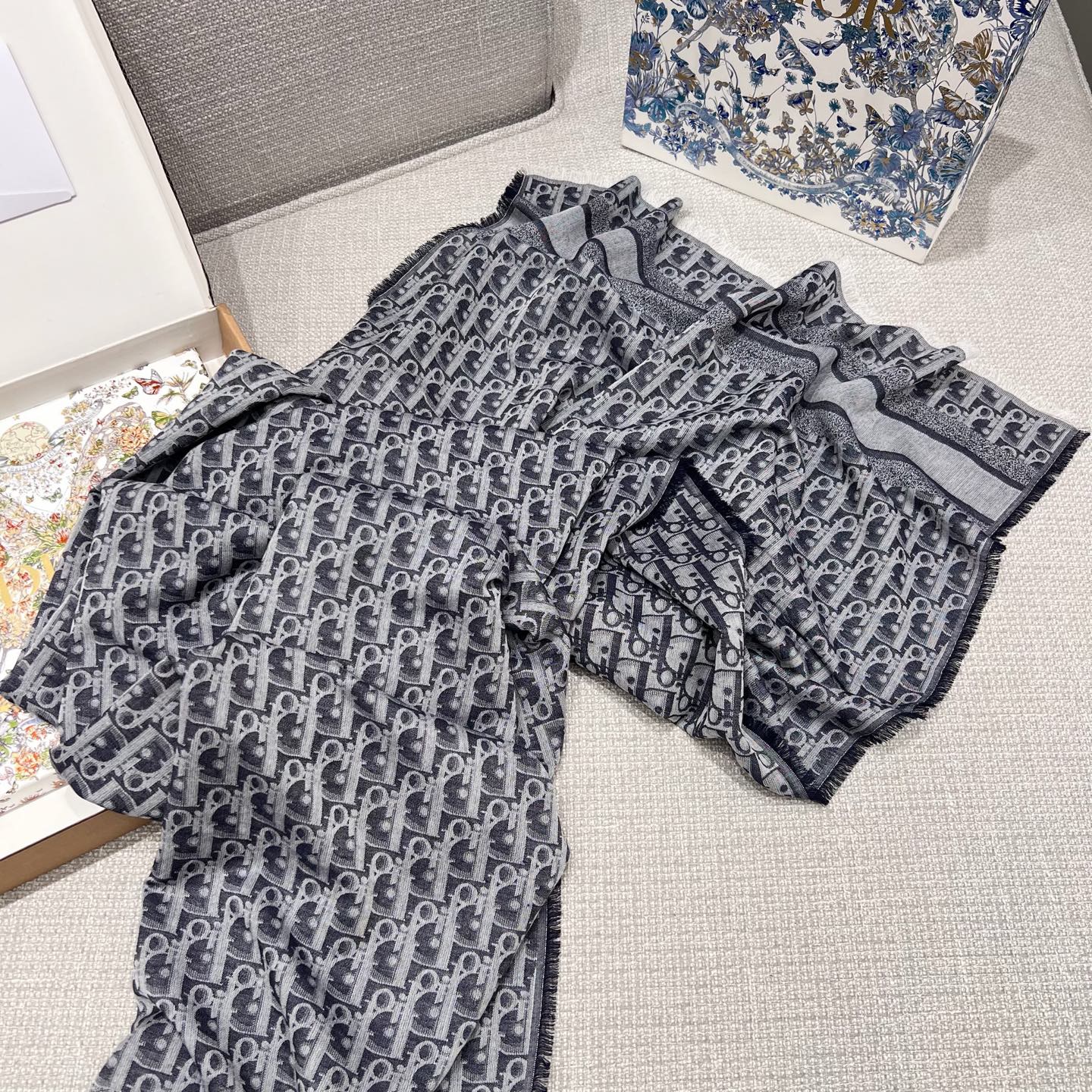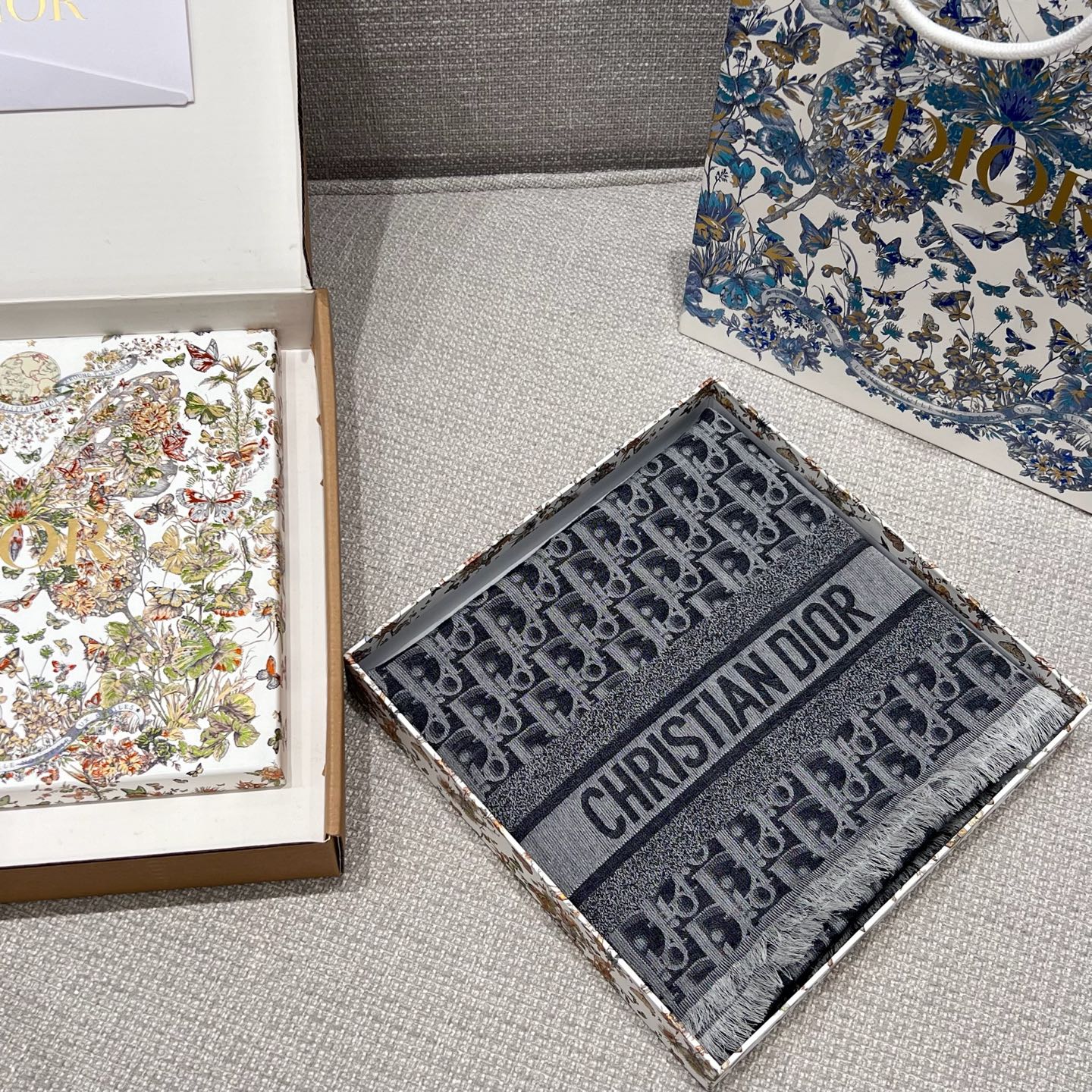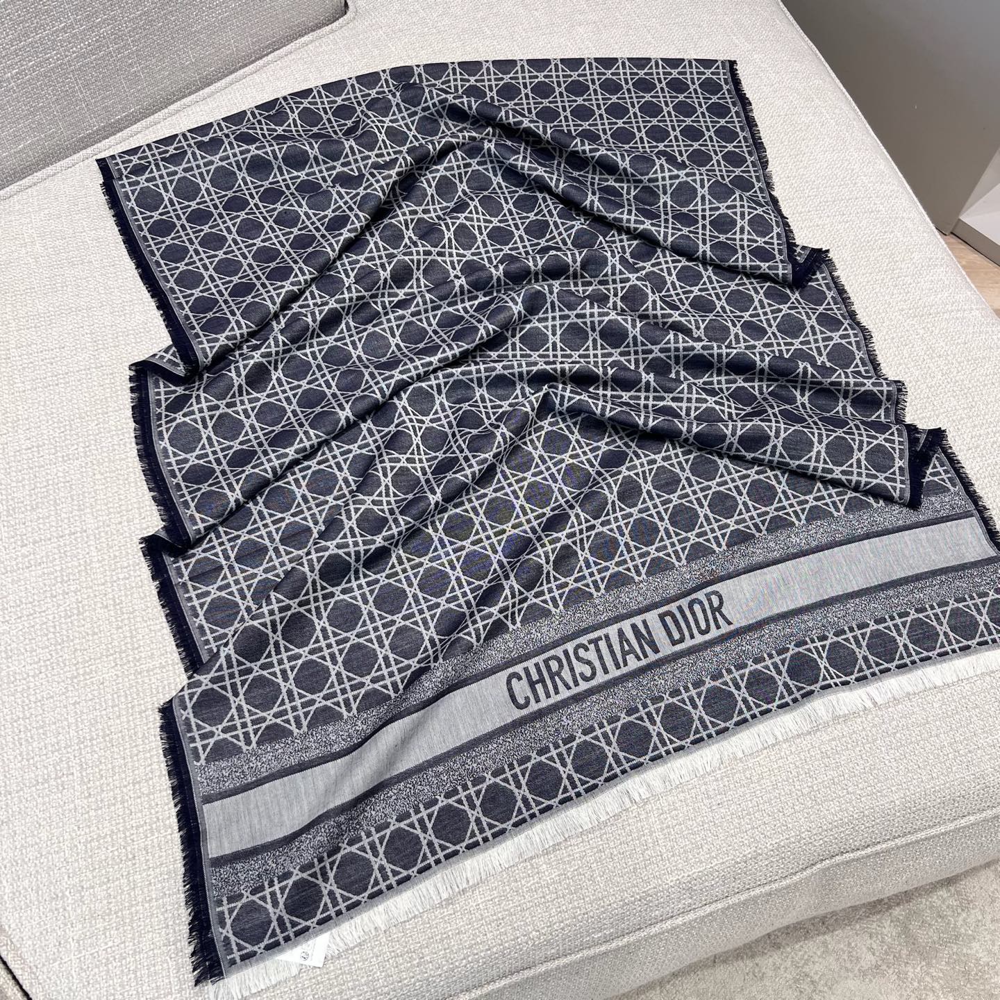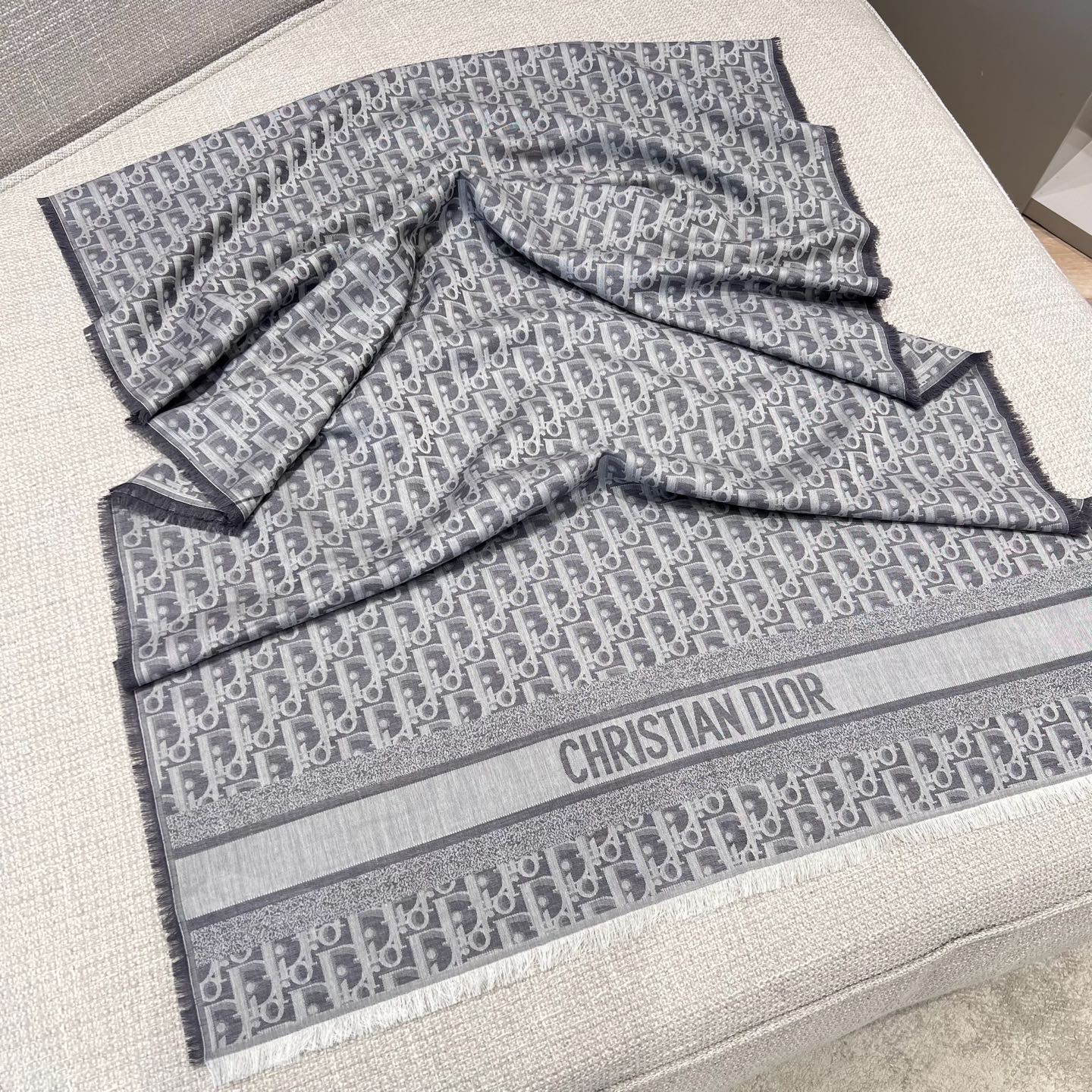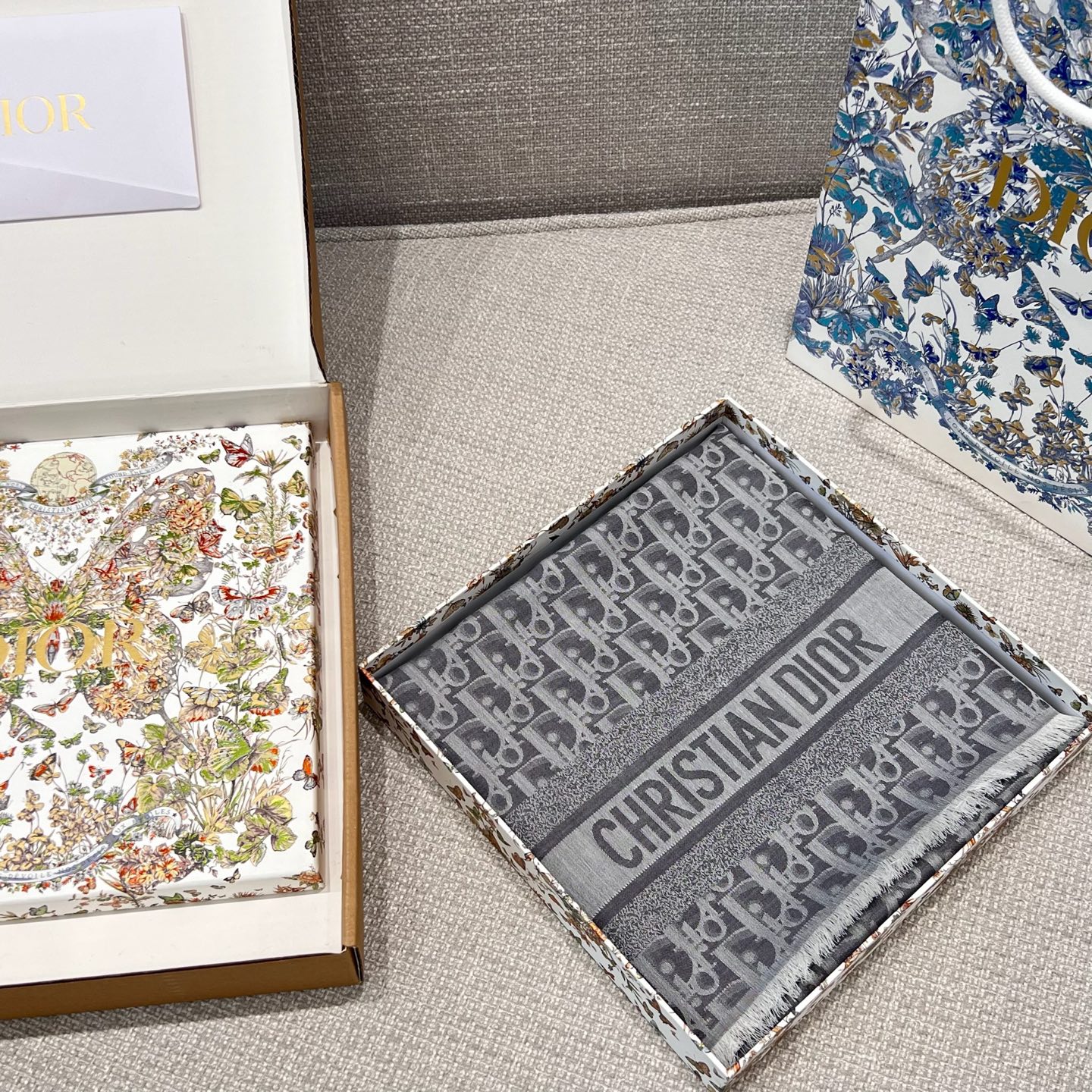 NIGO Dior Women's Gray Monogrammed Wool, Mulberry Silk & Cotton Blend Shawl Scarf #nigo77561