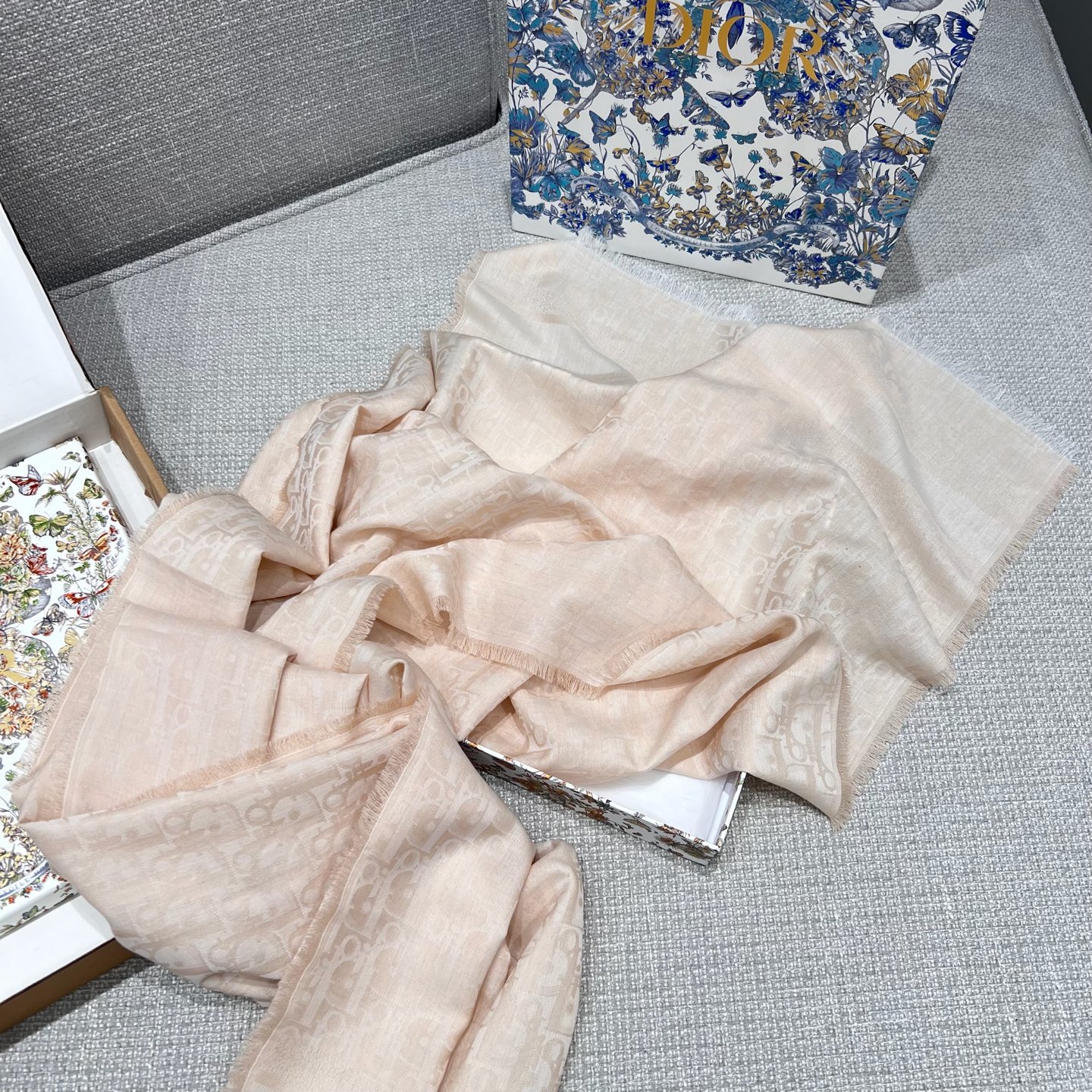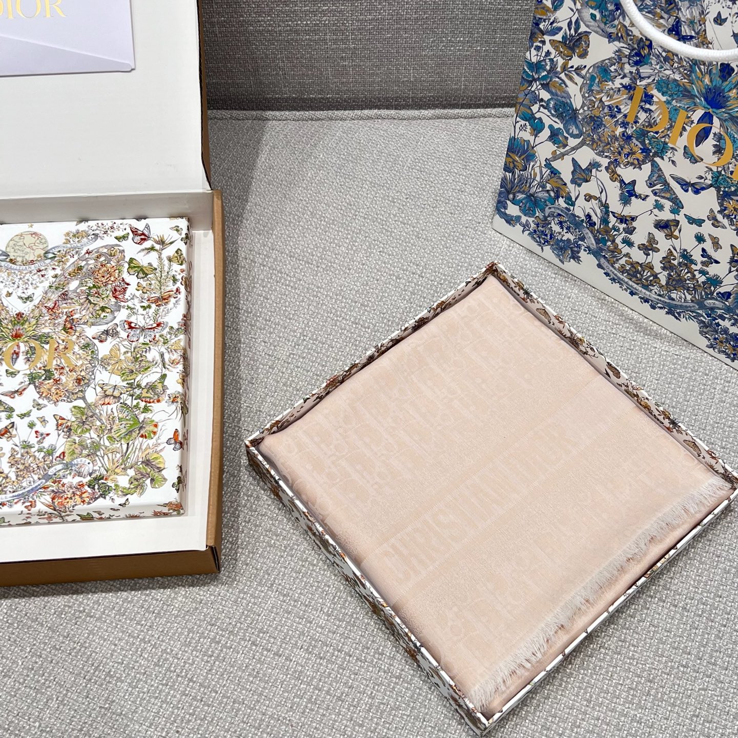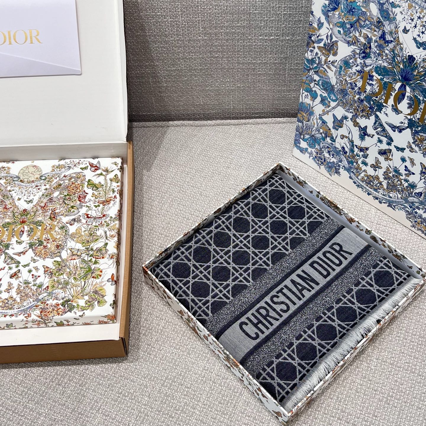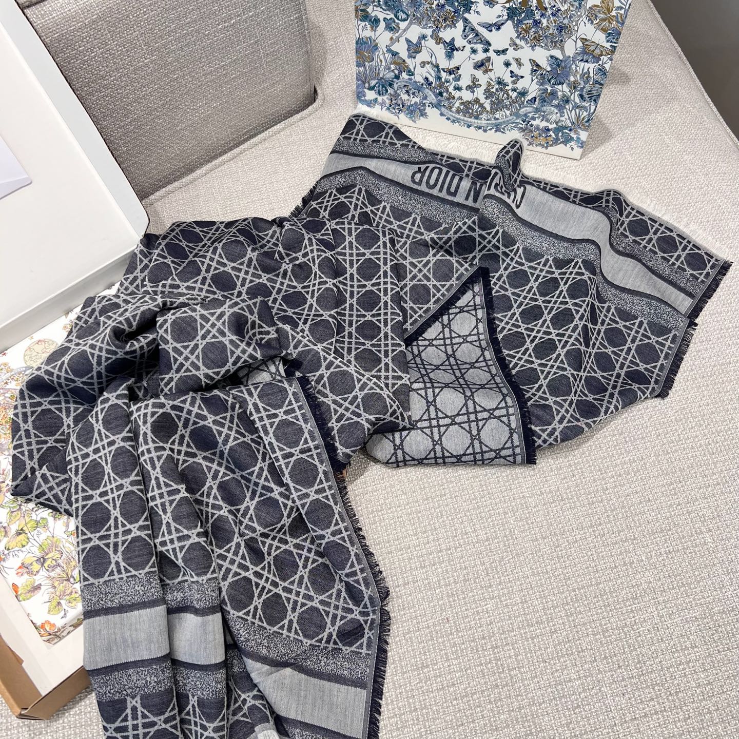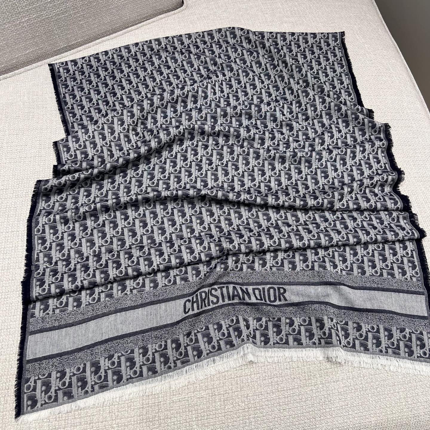 NIGO Dior Women's Gray Monogrammed Wool, Mulberry Silk & Cotton Blend Shawl Scarf #nigo77561