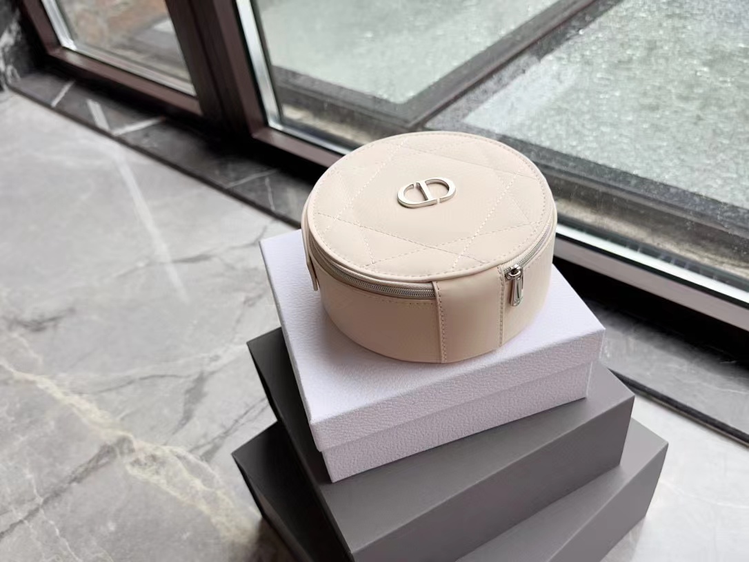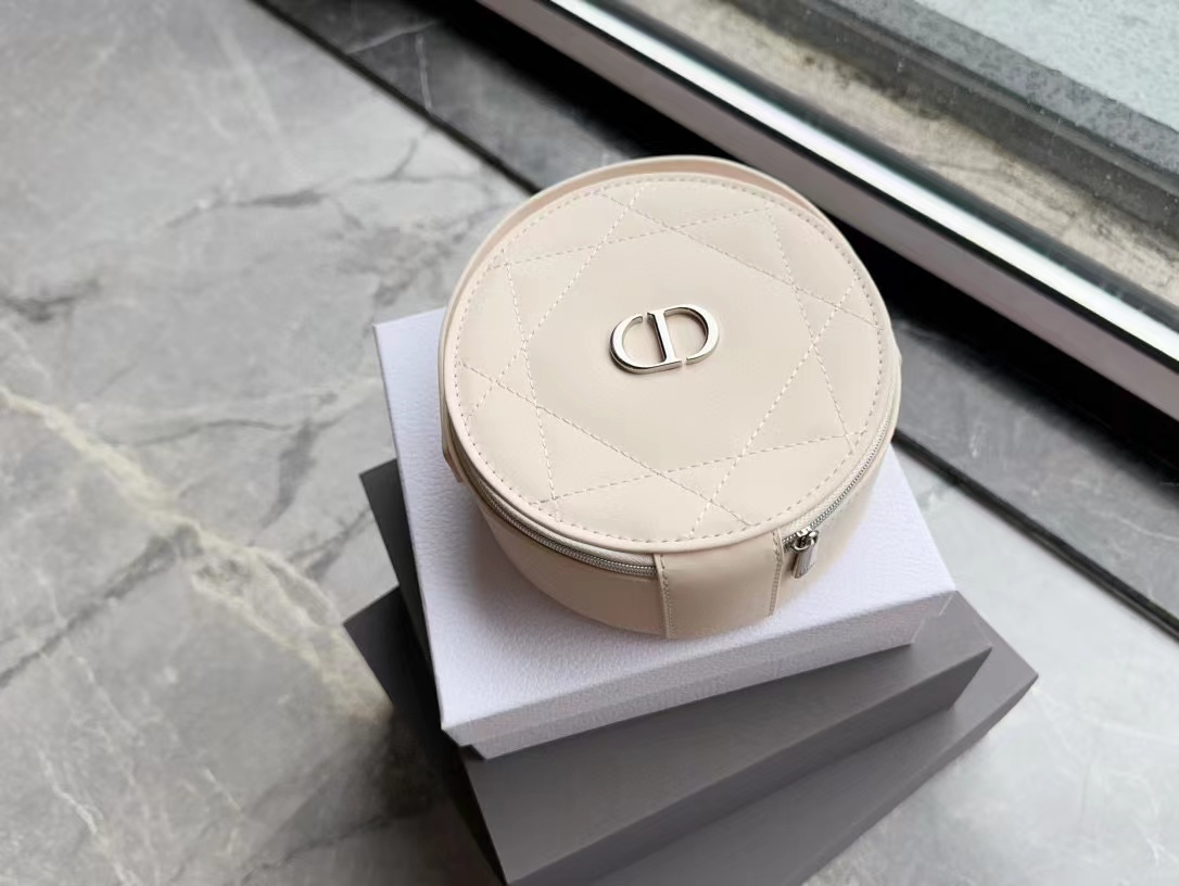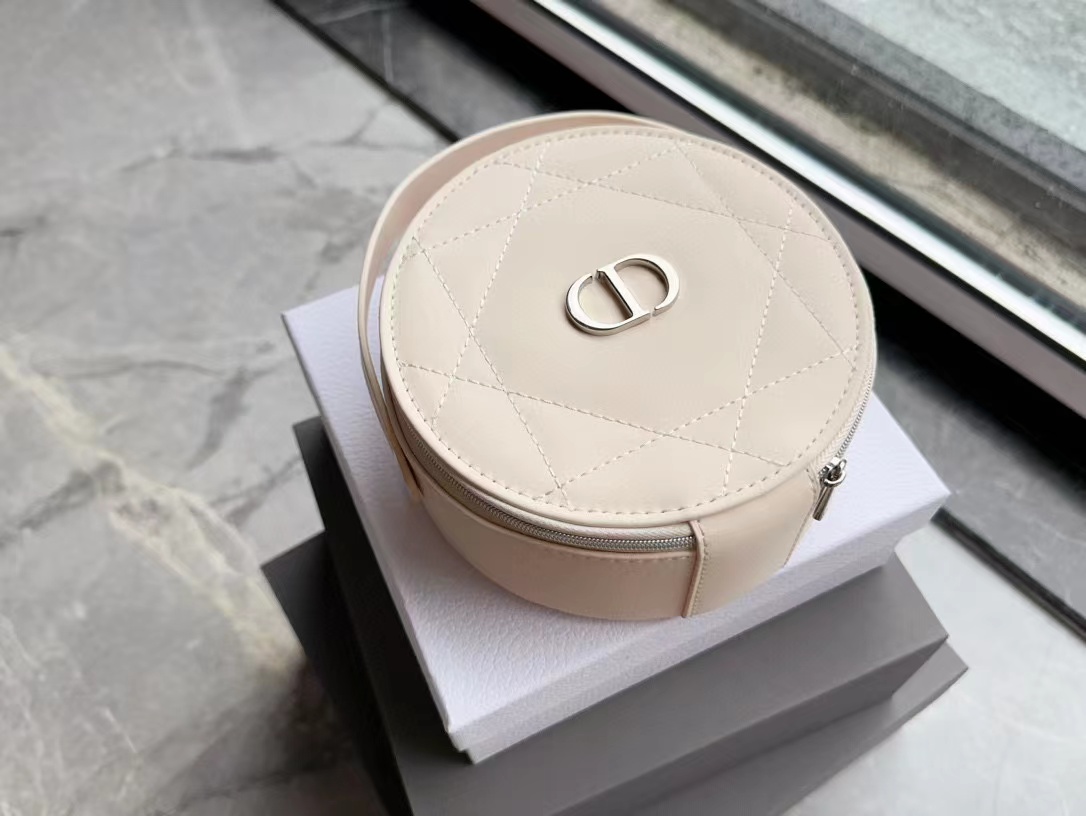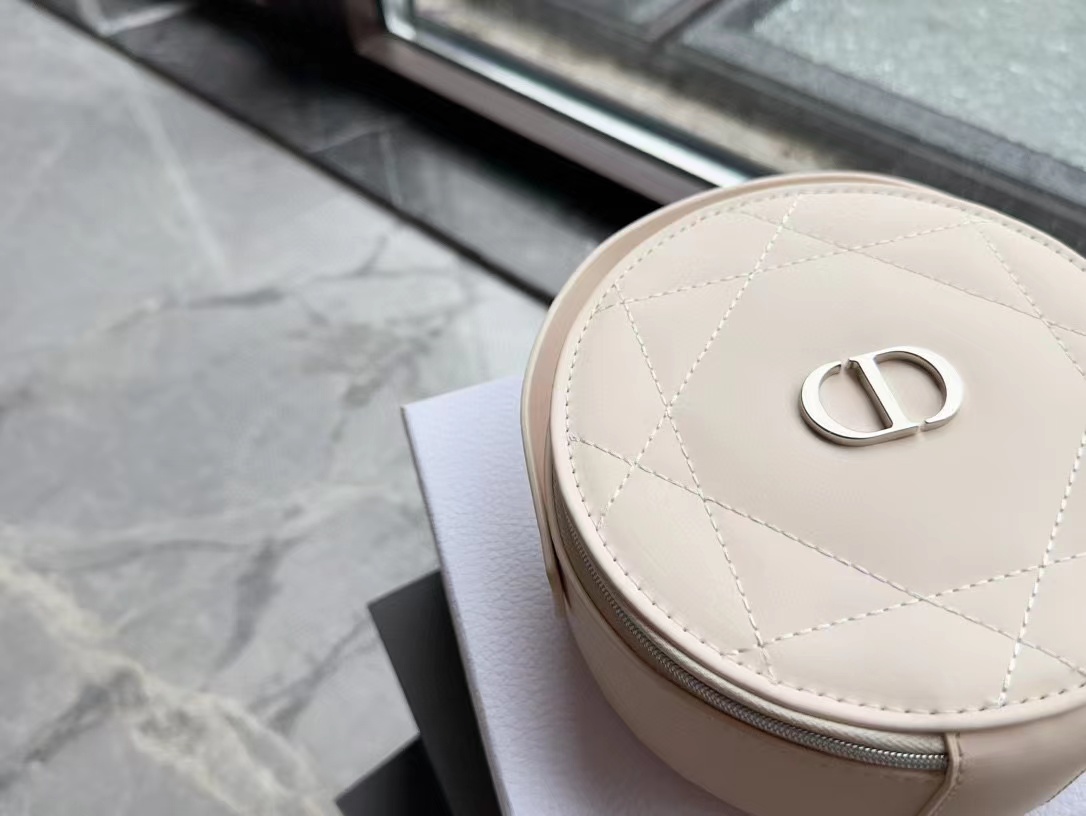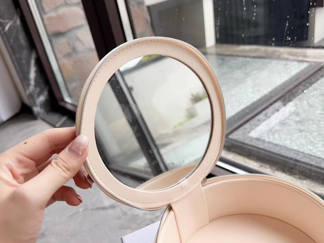 NIGO Dior Women's Round Leather Tote Cosmetic Bag With Mirror #nigo96962