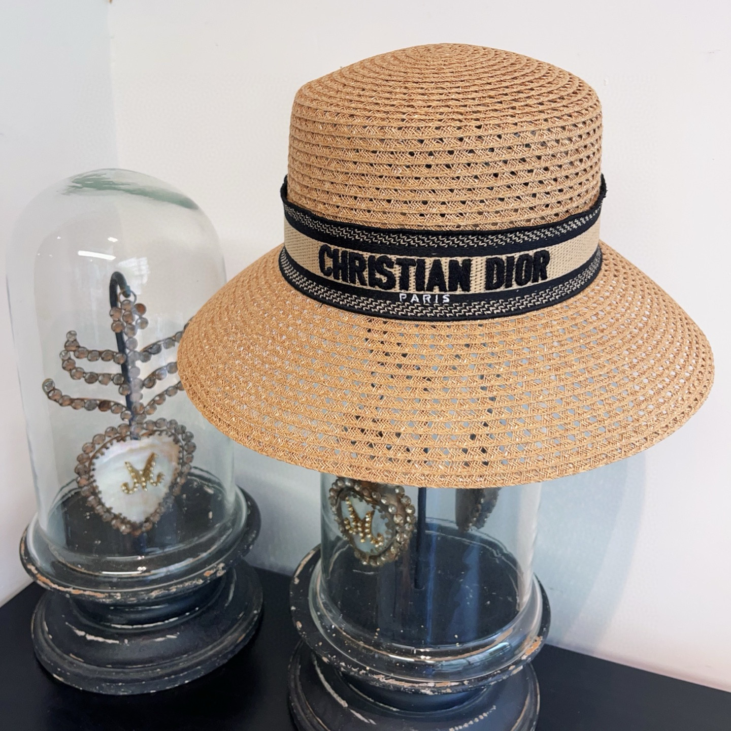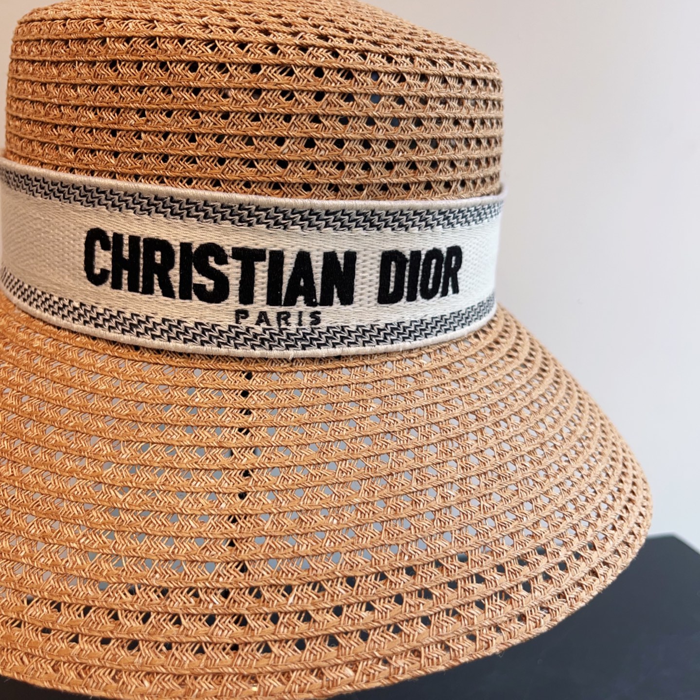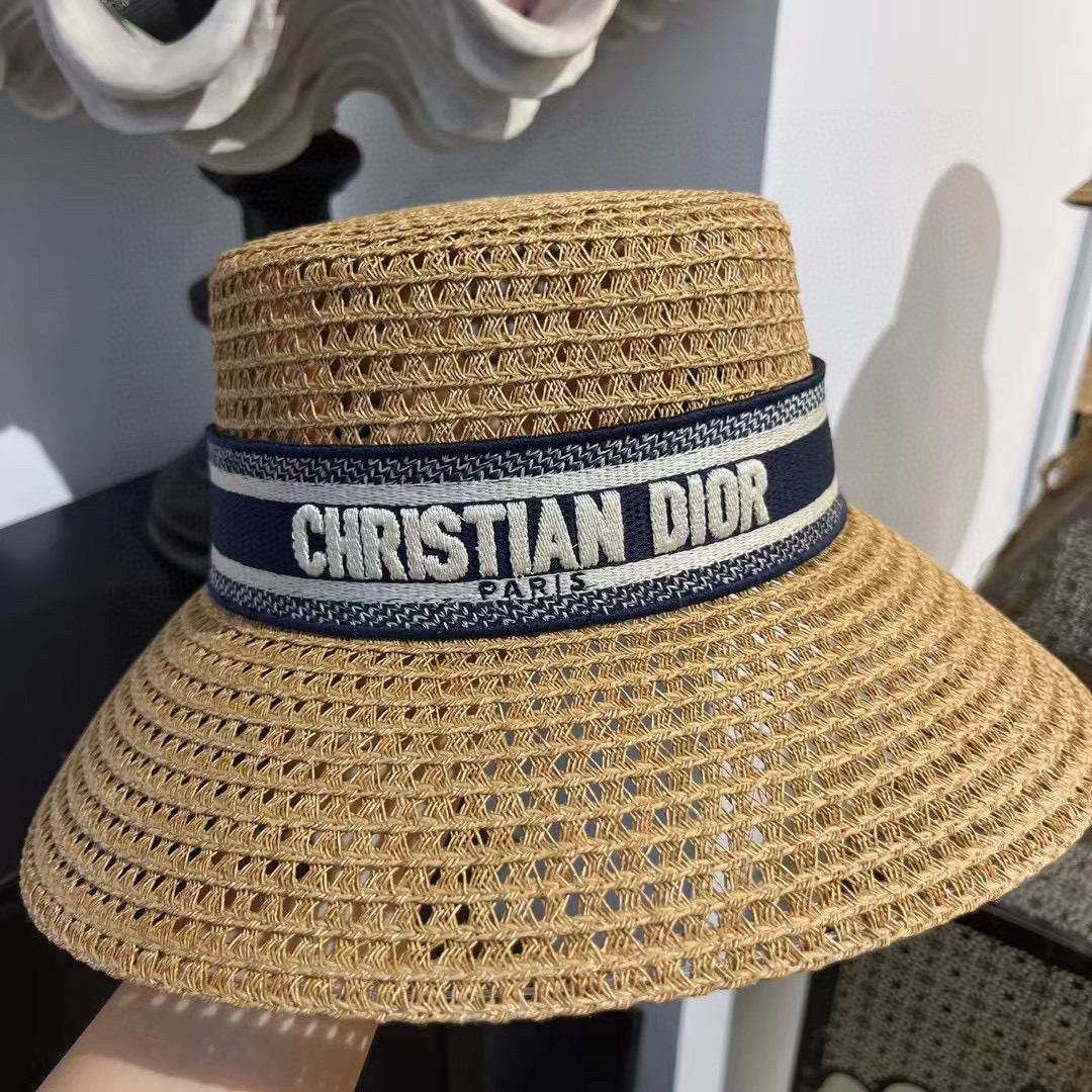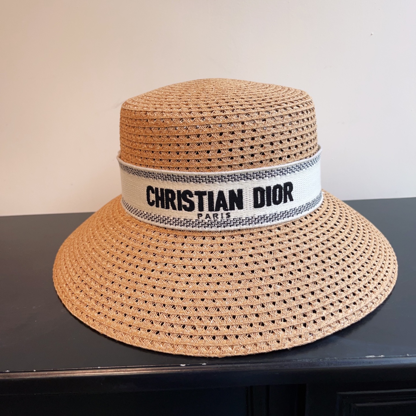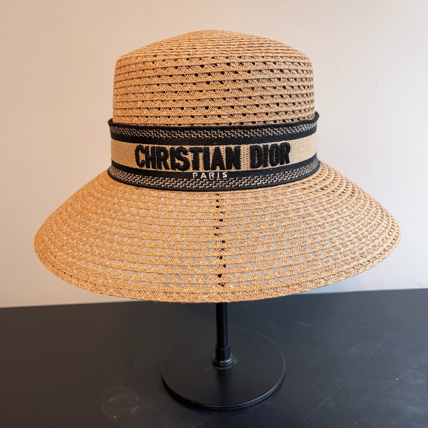 NIGO Dior Women's Solid Colour Straw Letter Embroidery Trimmed Strap Fisherman's Hat D-Bobby Wide Brim Hat #nigo76871