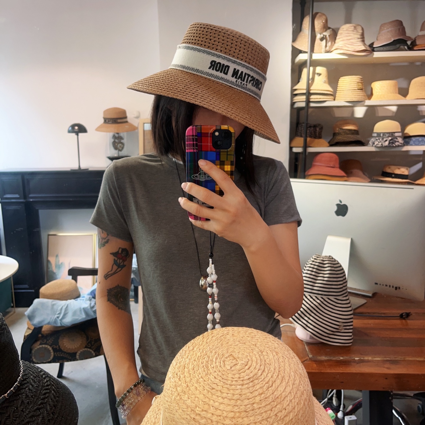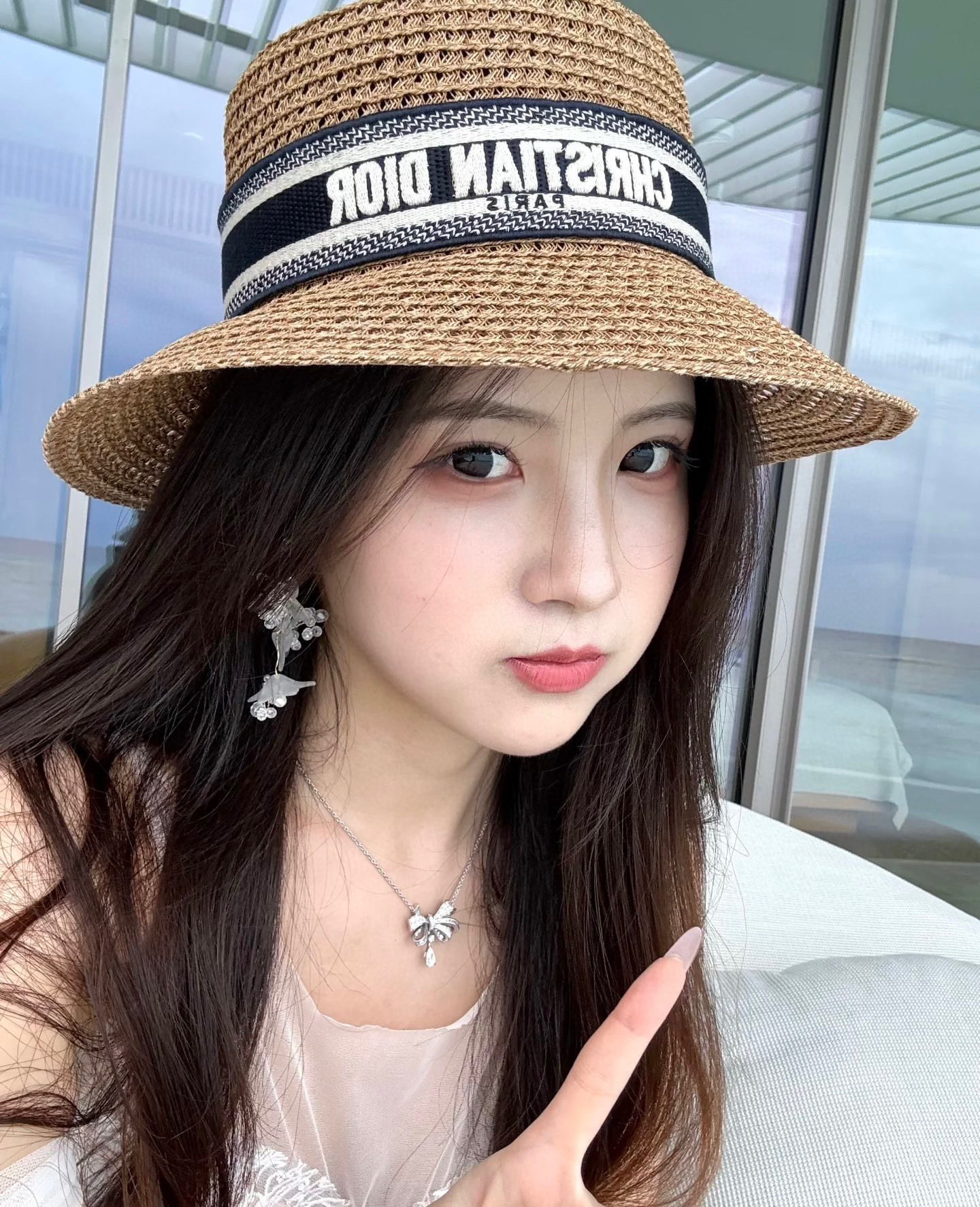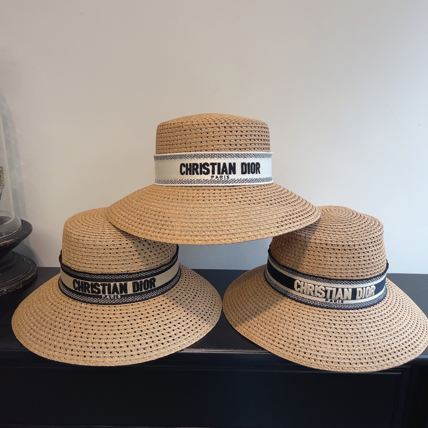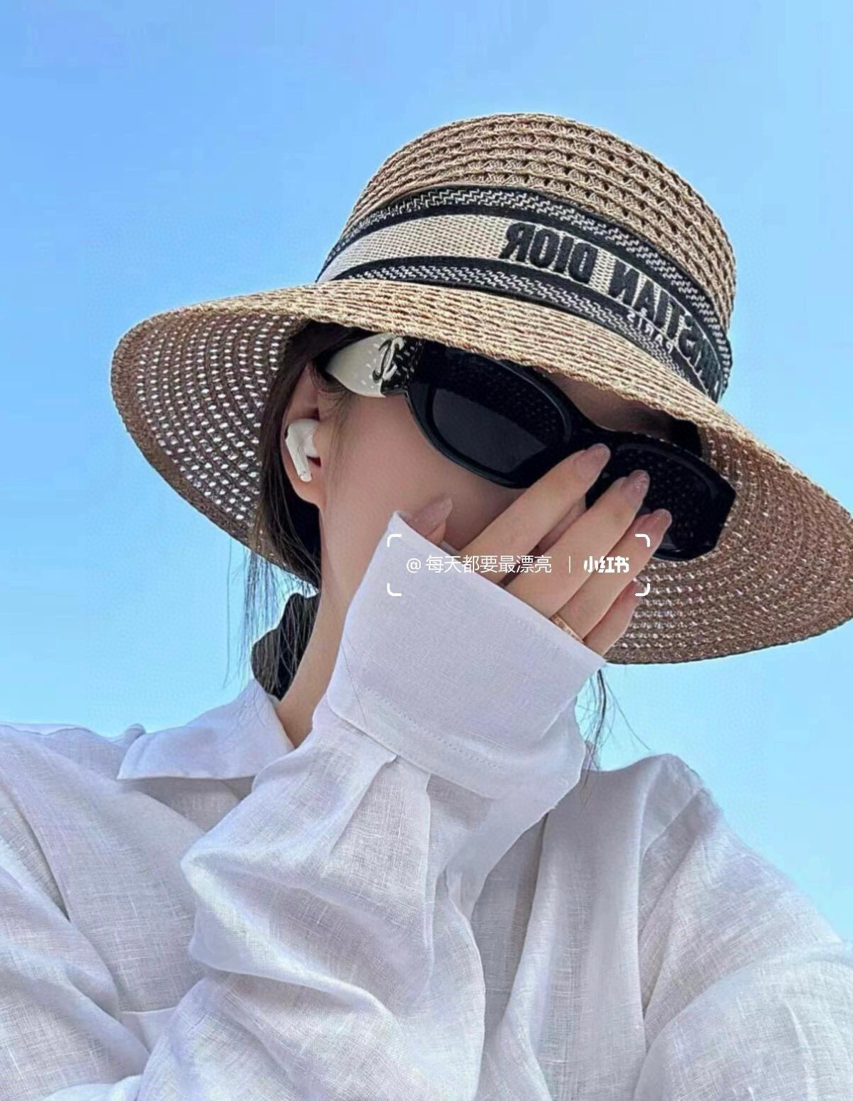 NIGO Dior Women's Solid Colour Straw Letter Embroidery Trimmed Strap Fisherman's Hat D-Bobby Wide Brim Hat #nigo76871