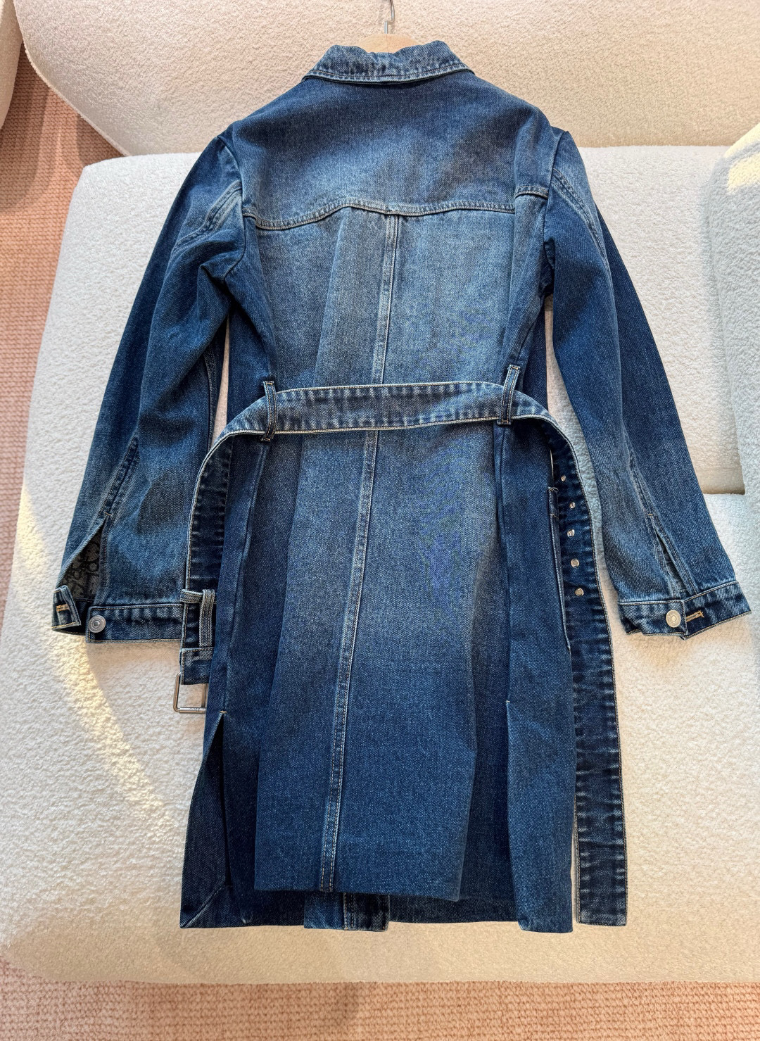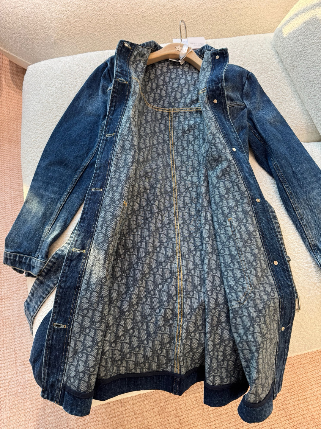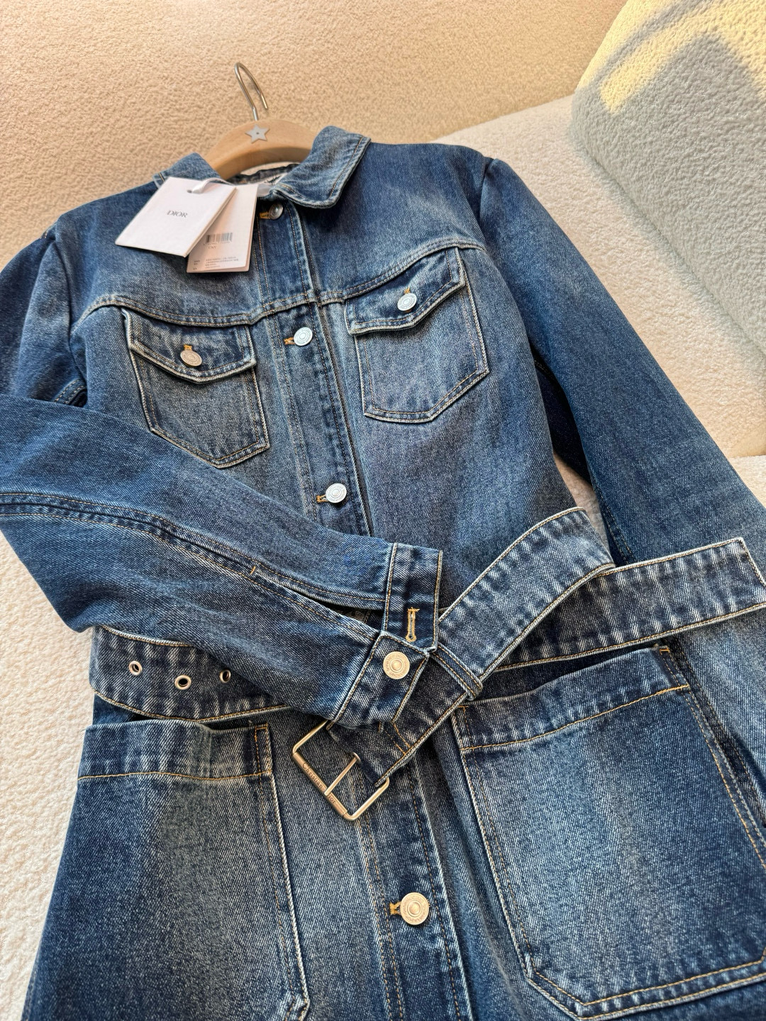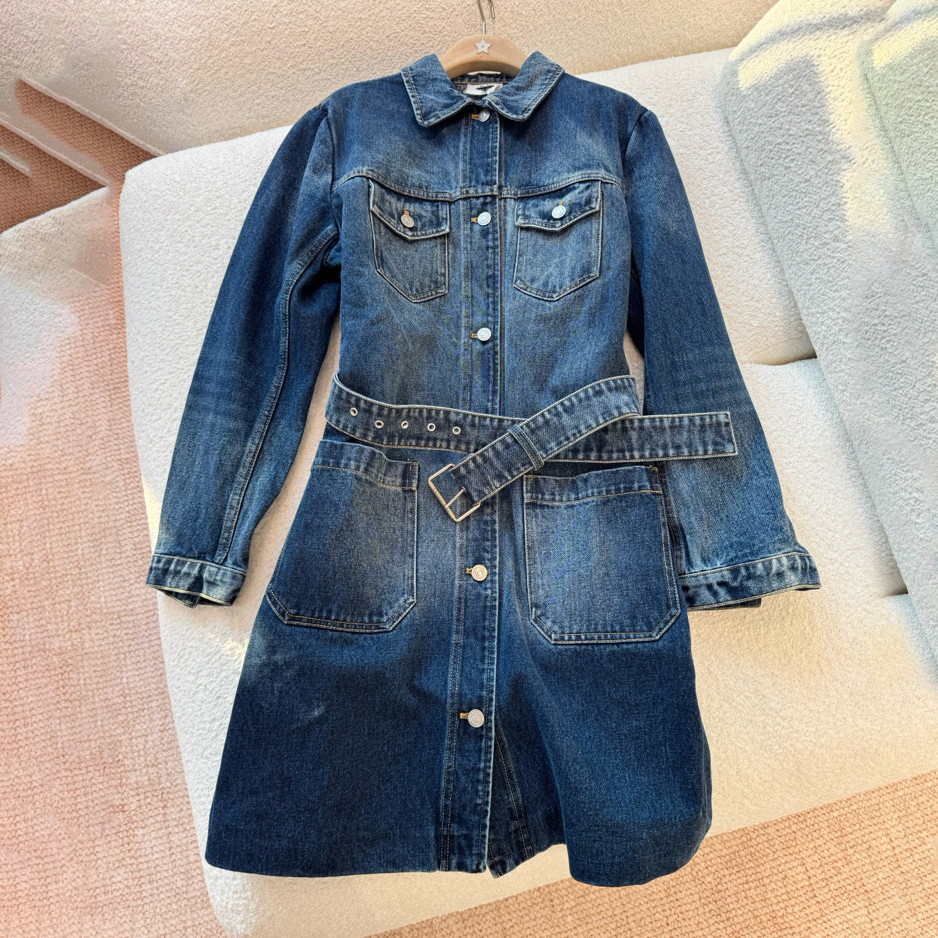 NIGO Dior Women's Spring/Fall Fashion Casual Midi Length Single Breasted Collar Print Belted Long-Sleeve Denim Skirt Dress #nigo78947