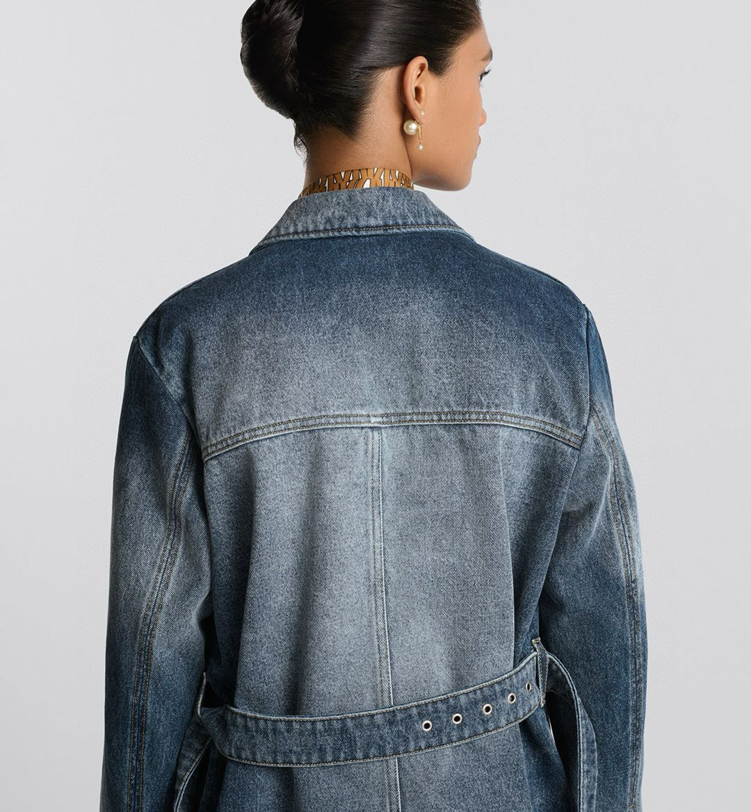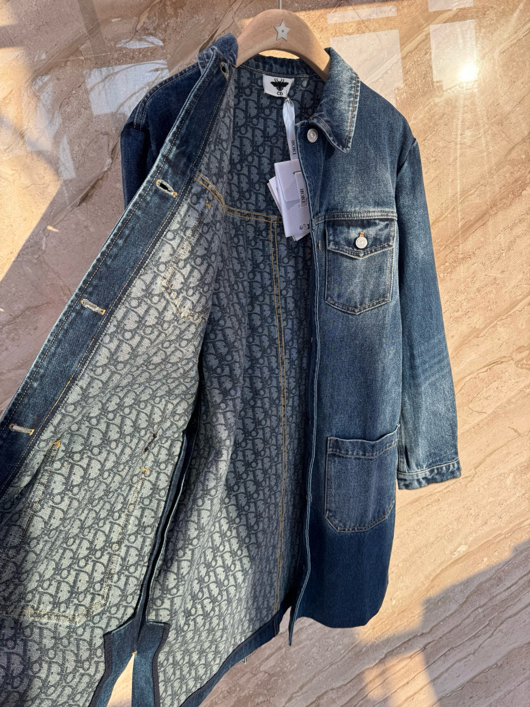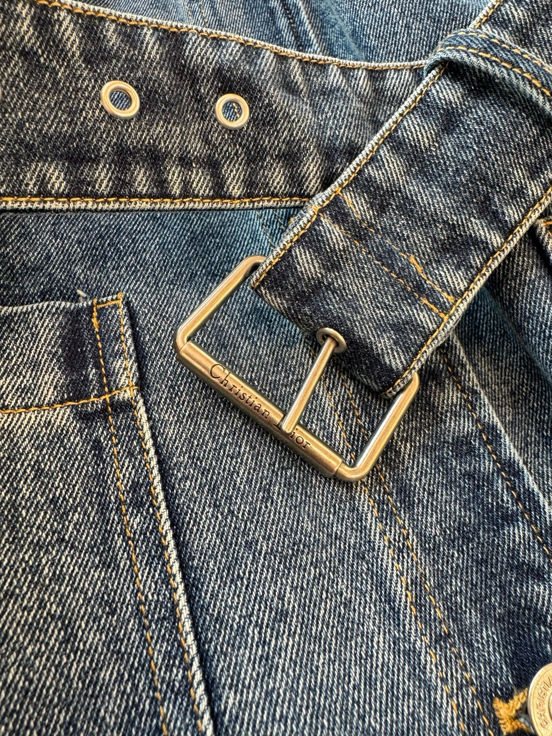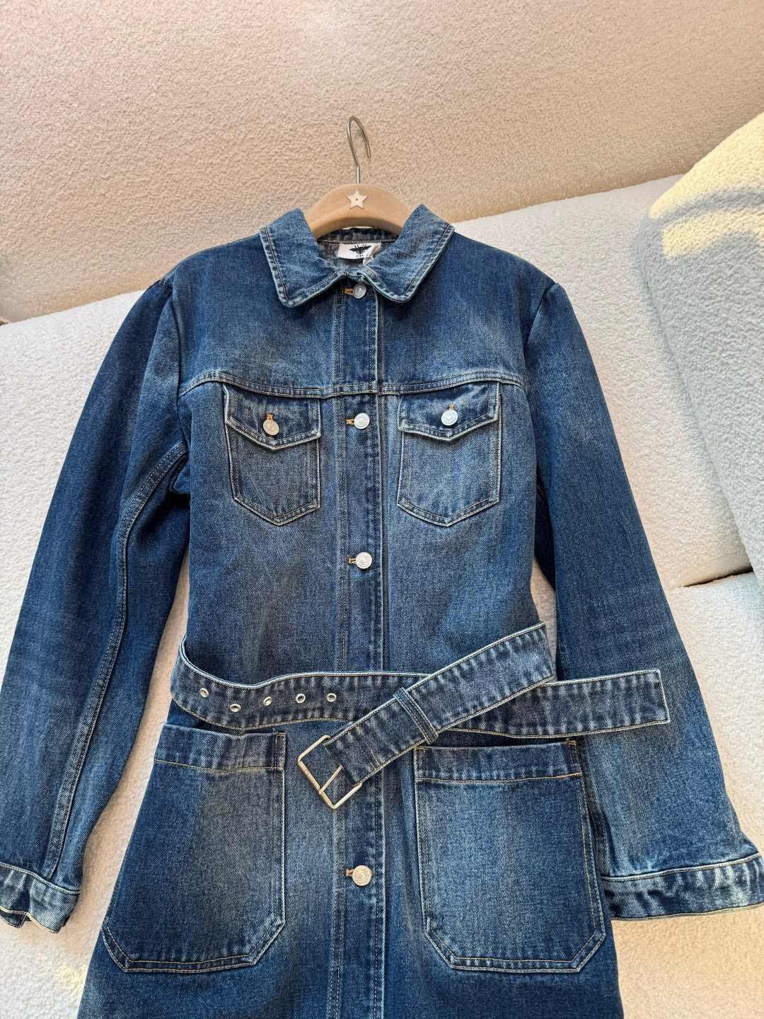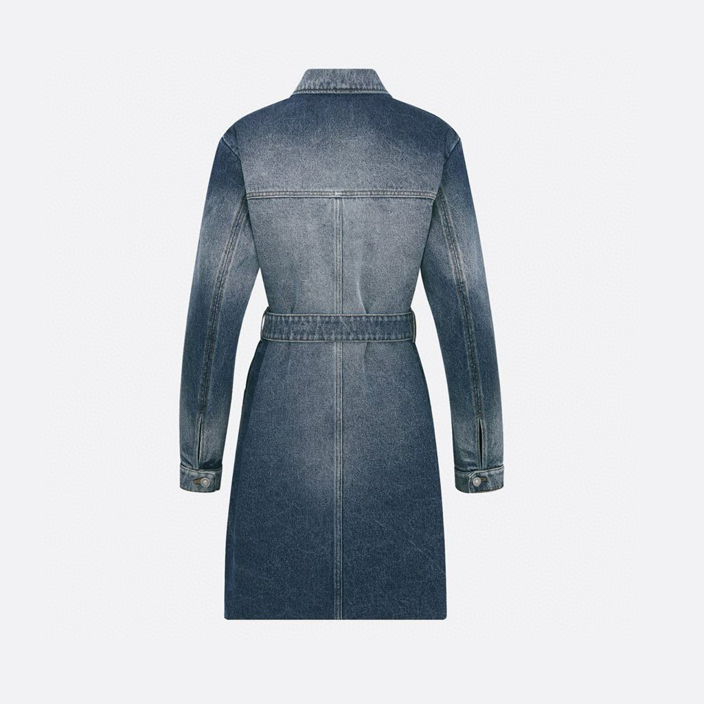 NIGO Dior Women's Spring/Fall Fashion Casual Midi Length Single Breasted Collar Print Belted Long-Sleeve Denim Skirt Dress #nigo78947