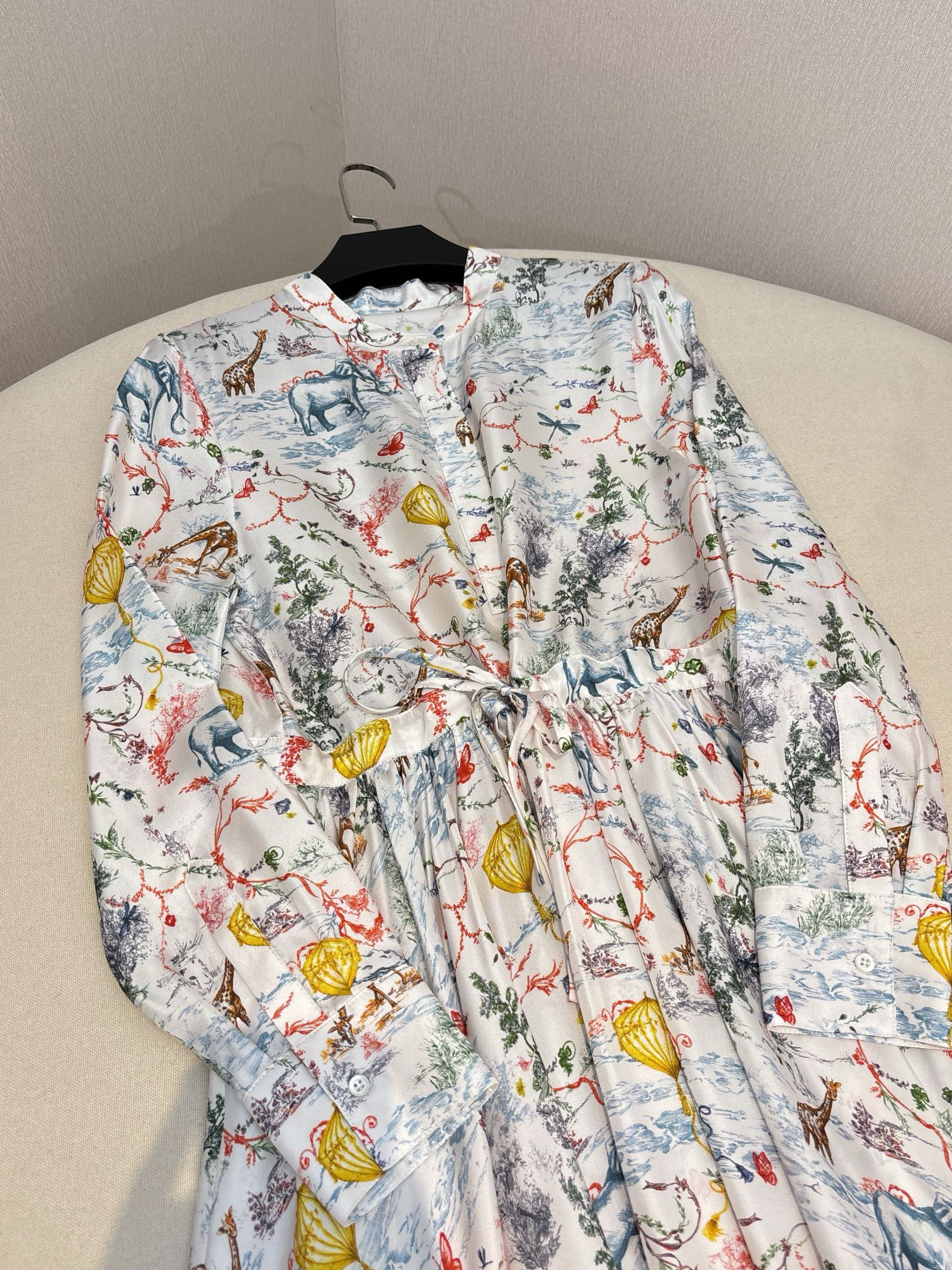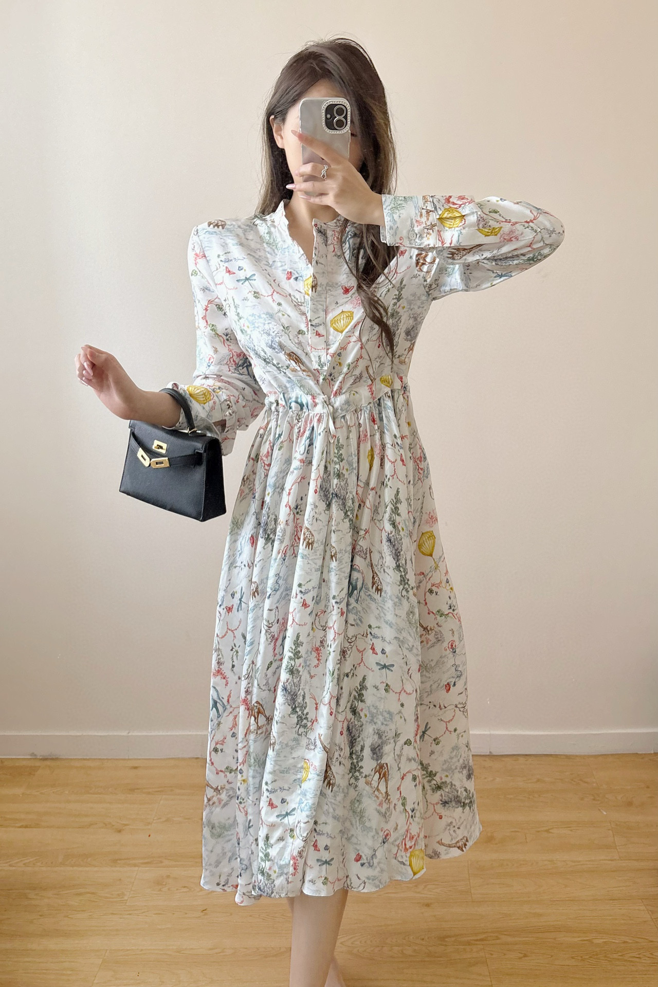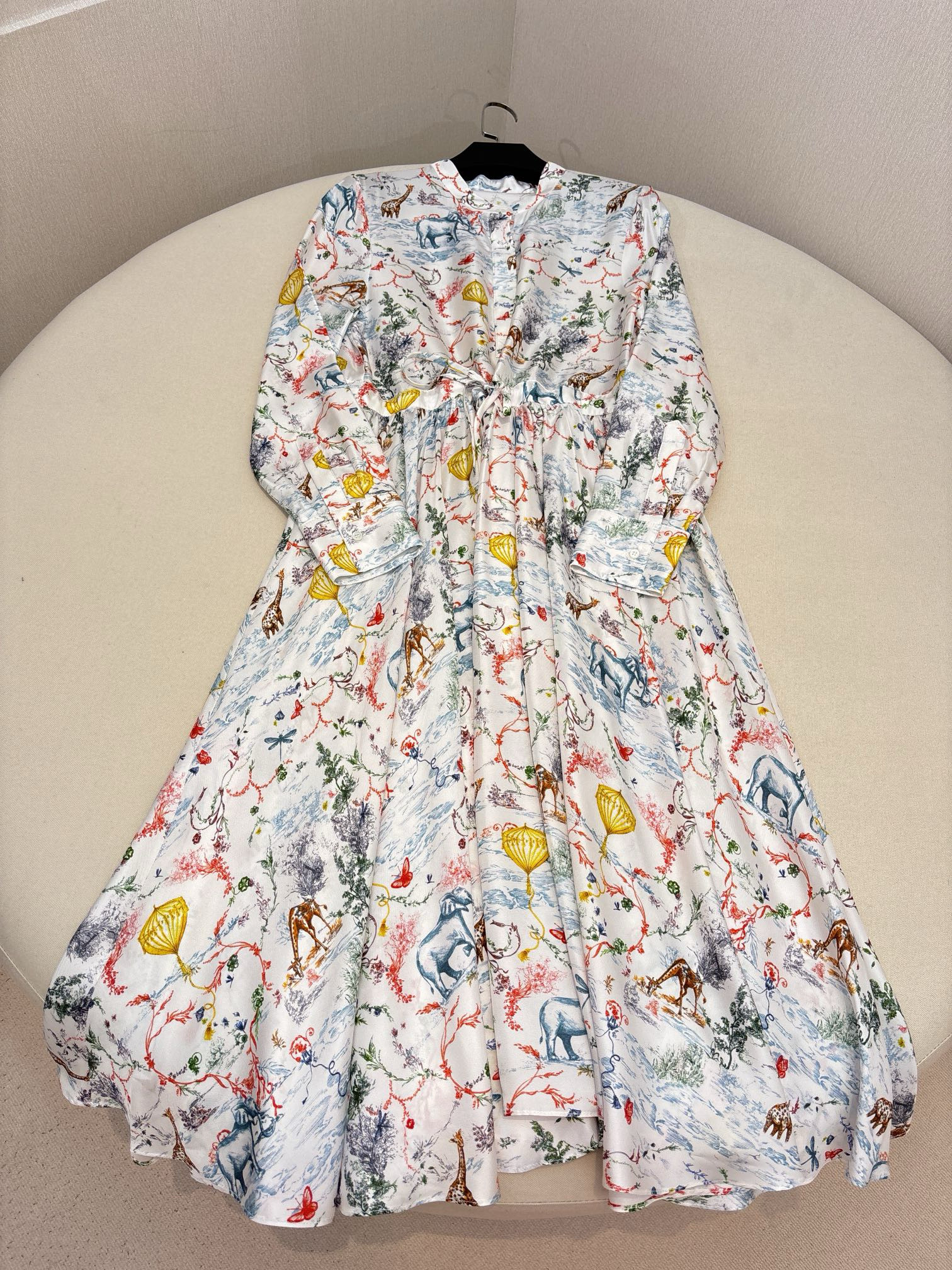 NIGO Dior Women's Spring/Summer Floral Print Round Neck High Waist Silk Long Dresses Ngvp #nigo1391