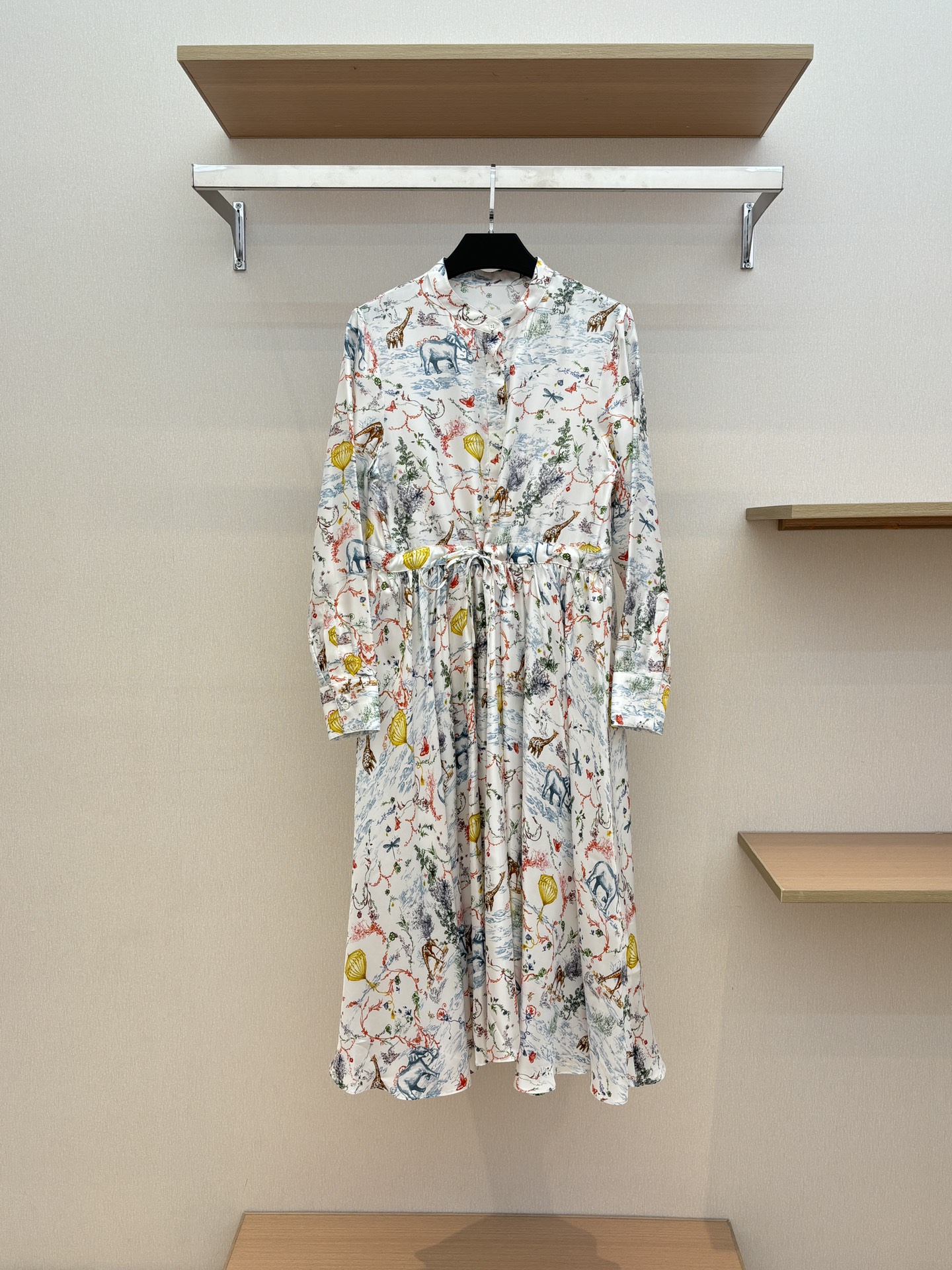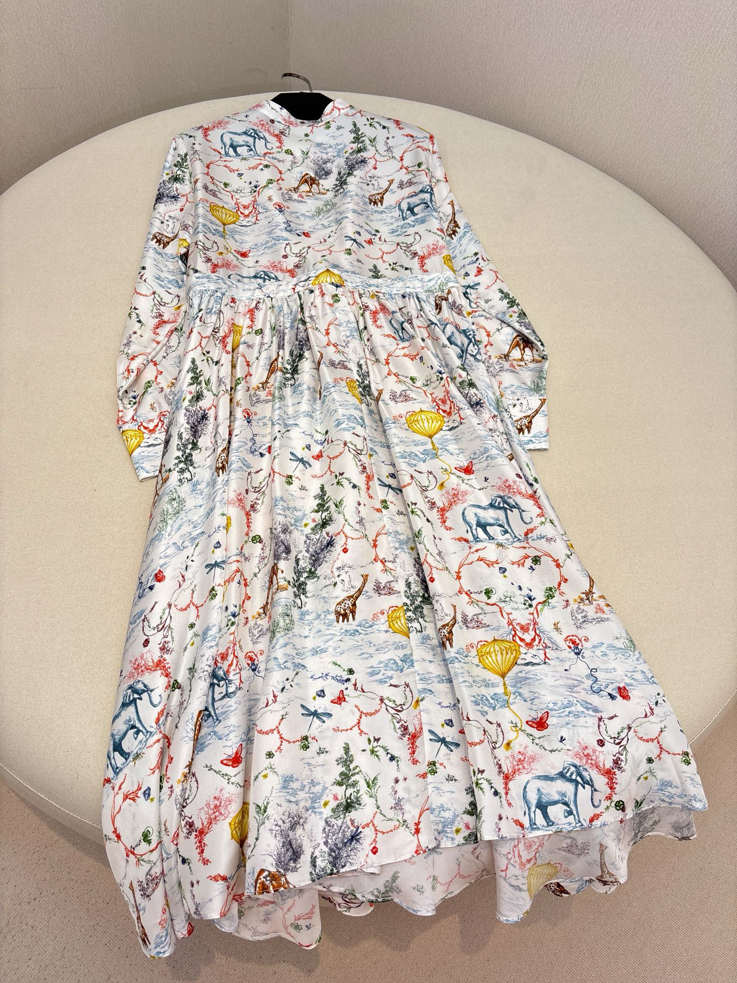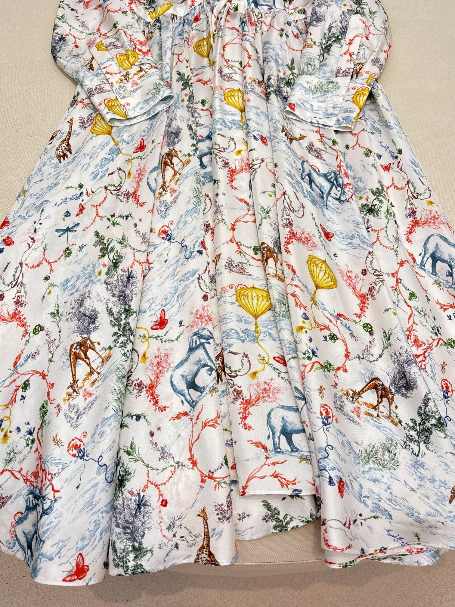 NIGO Dior Women's Spring/Summer Floral Print Round Neck High Waist Silk Long Dresses Ngvp #nigo1391