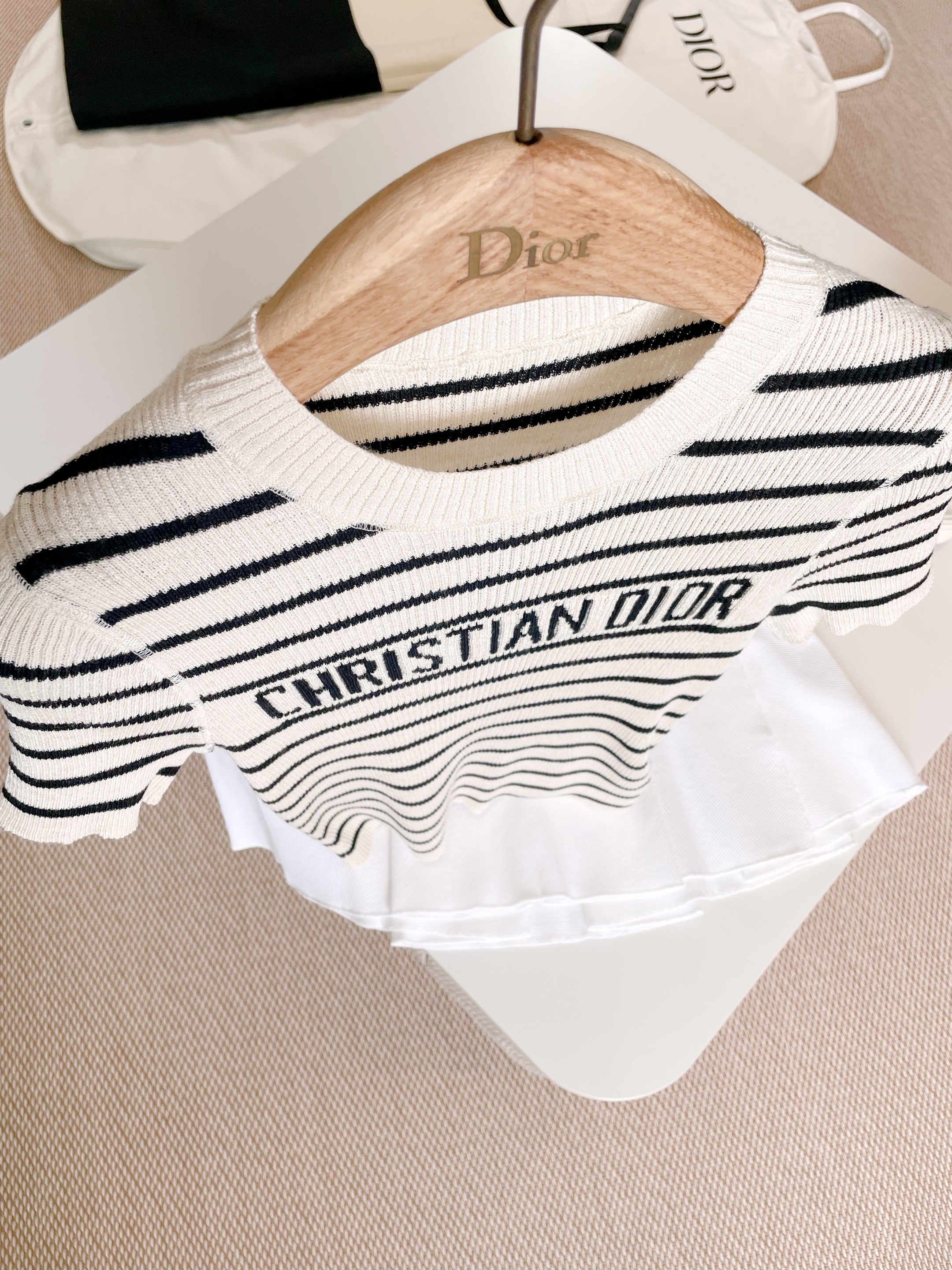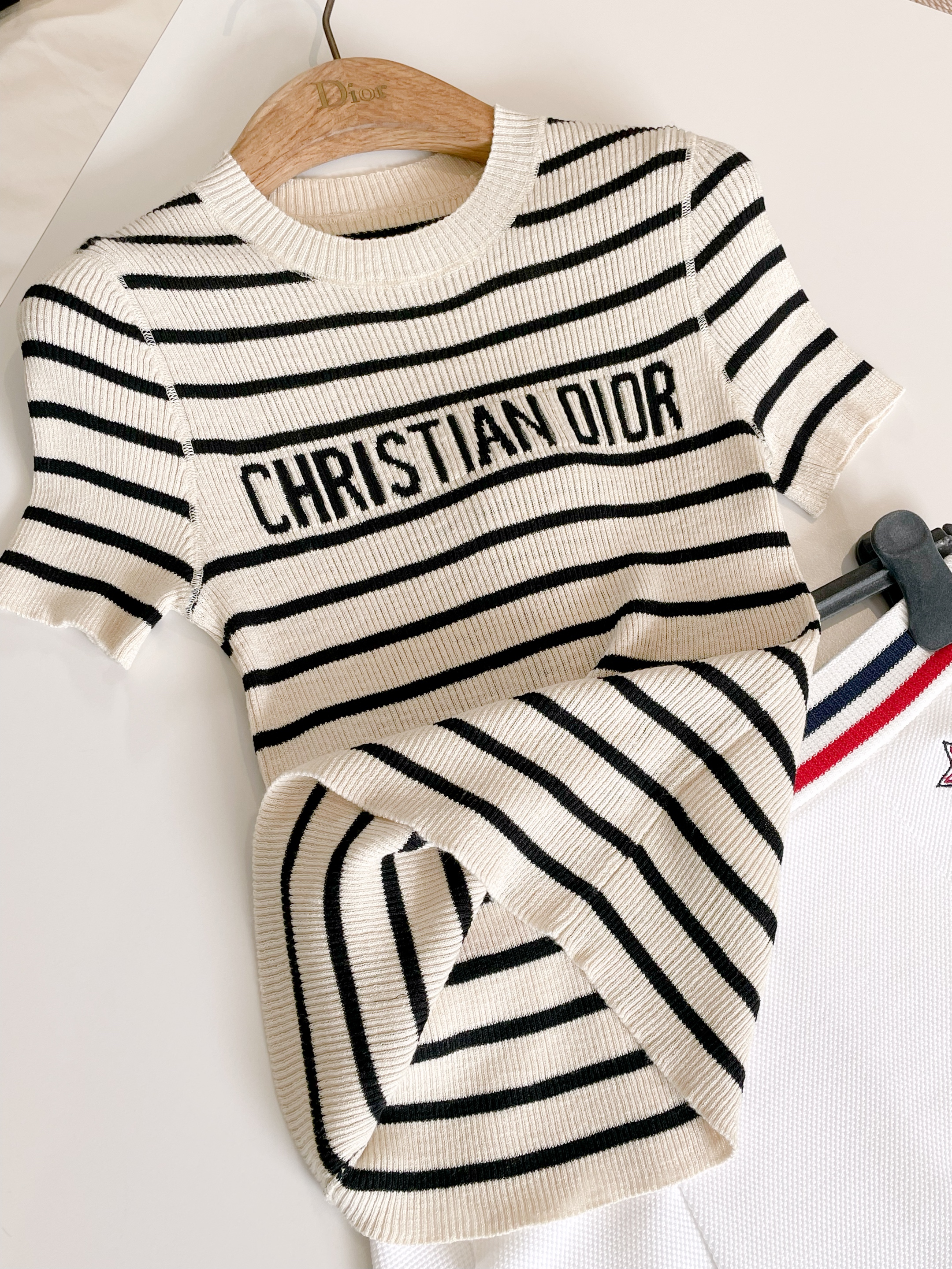 NIGO DIOR Women's Summer Black And White Striped Appliquéd Letters Knit Round Neck Short Sleeve T-shirt #nigo76543
