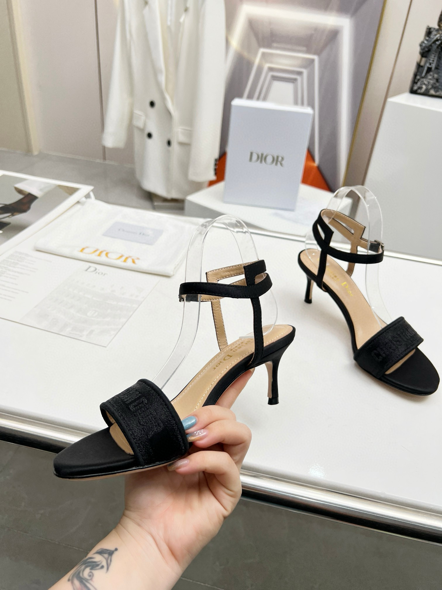 NIGO Dior Women's Summer Black Embroidered Leather Heels Sandals Shoes #nigo97537