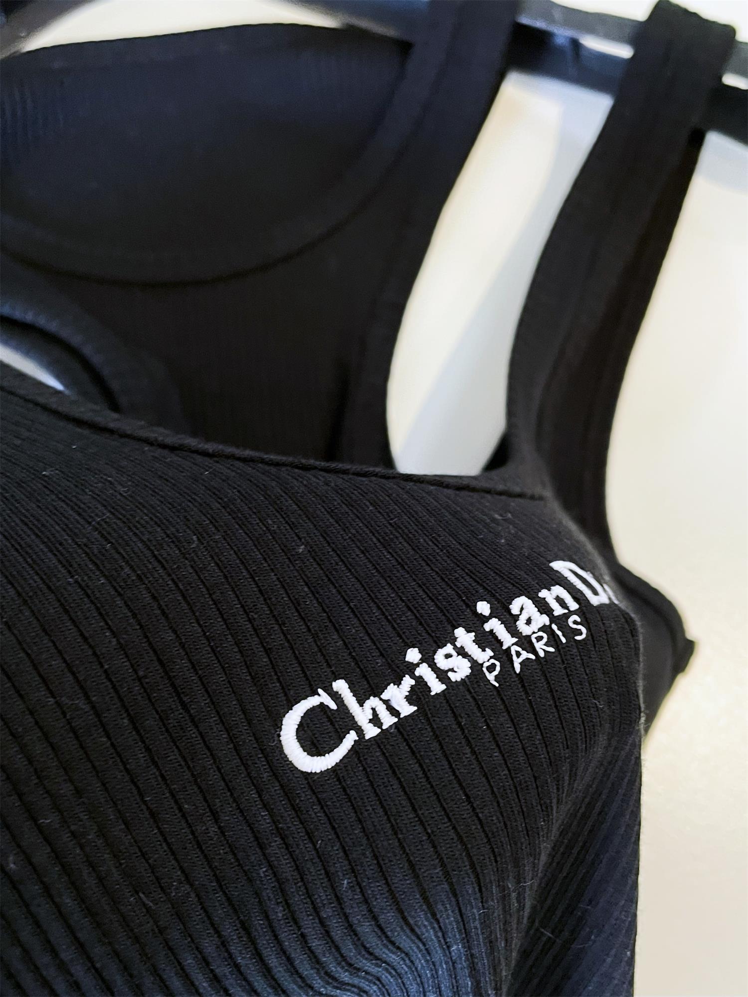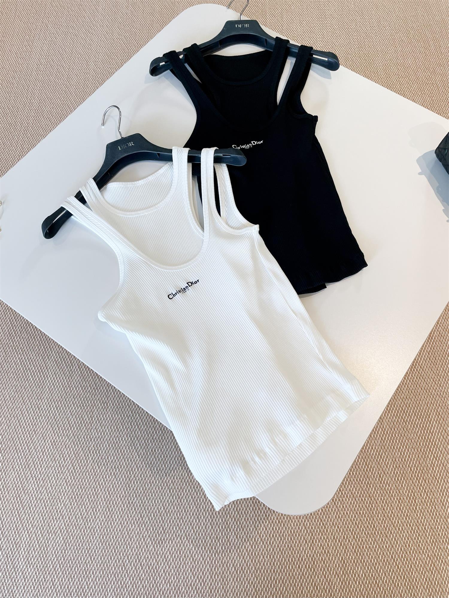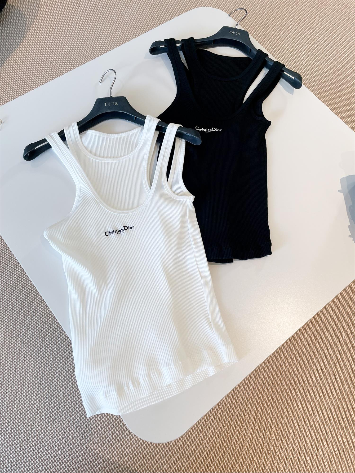 NIGO DIOR Women's Summer Embroidered Letter Print Double Layer Cross Knit Tank Top #nigo75958