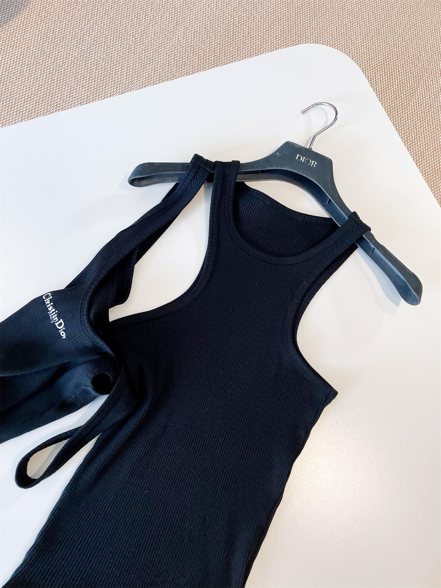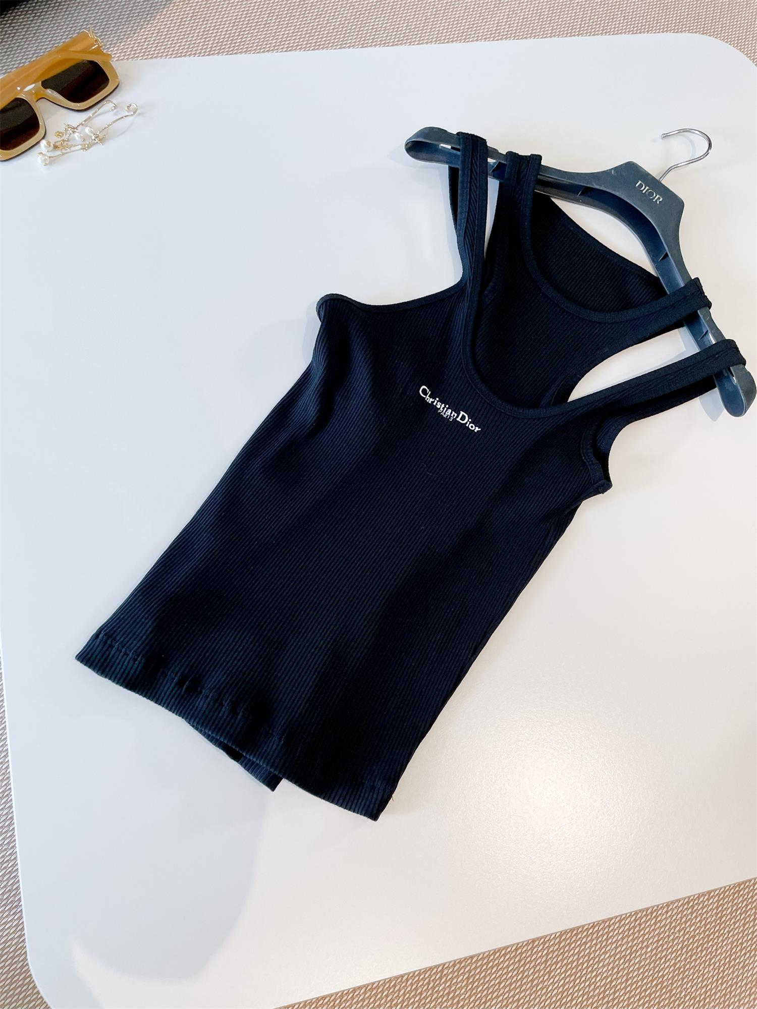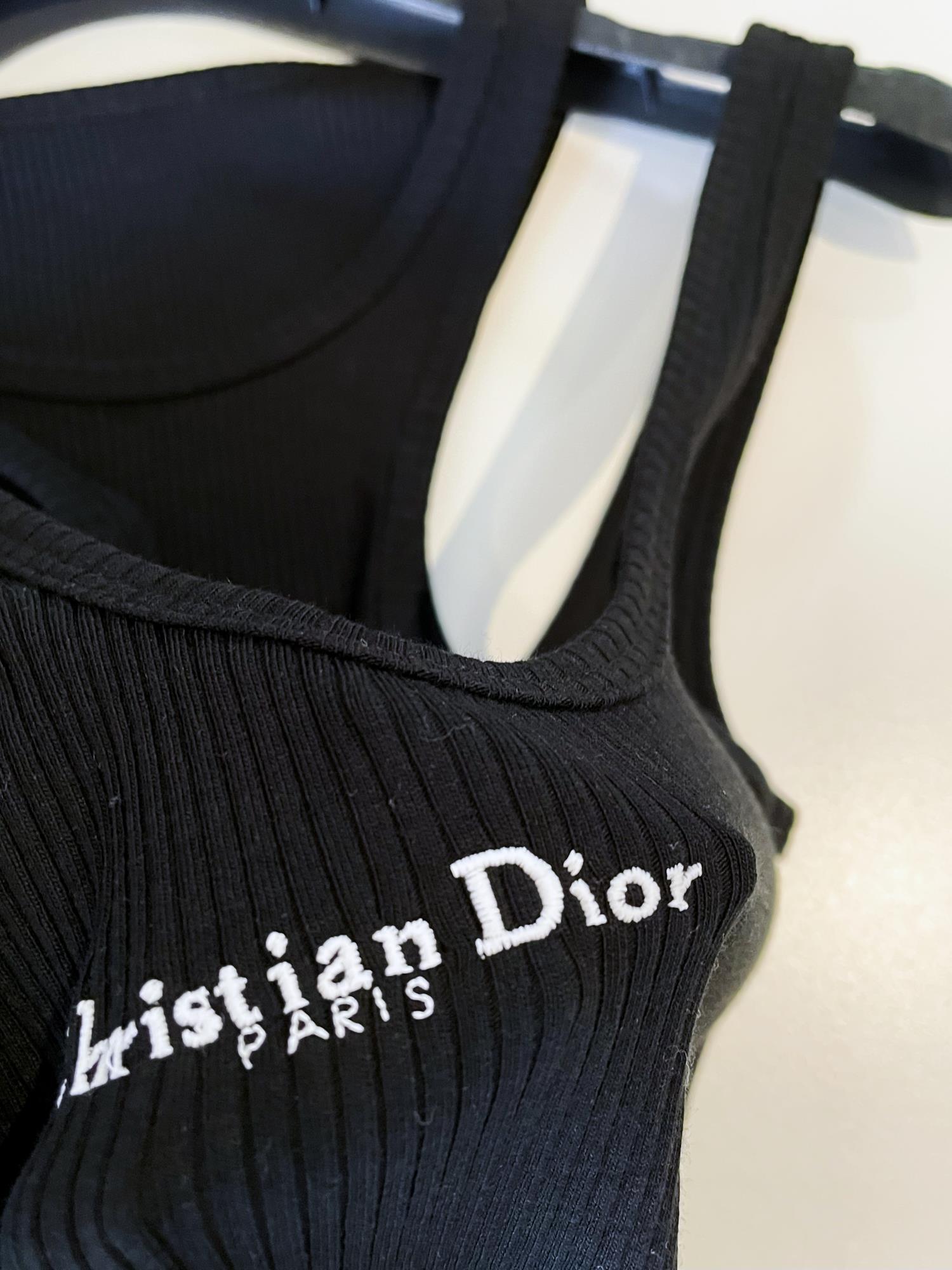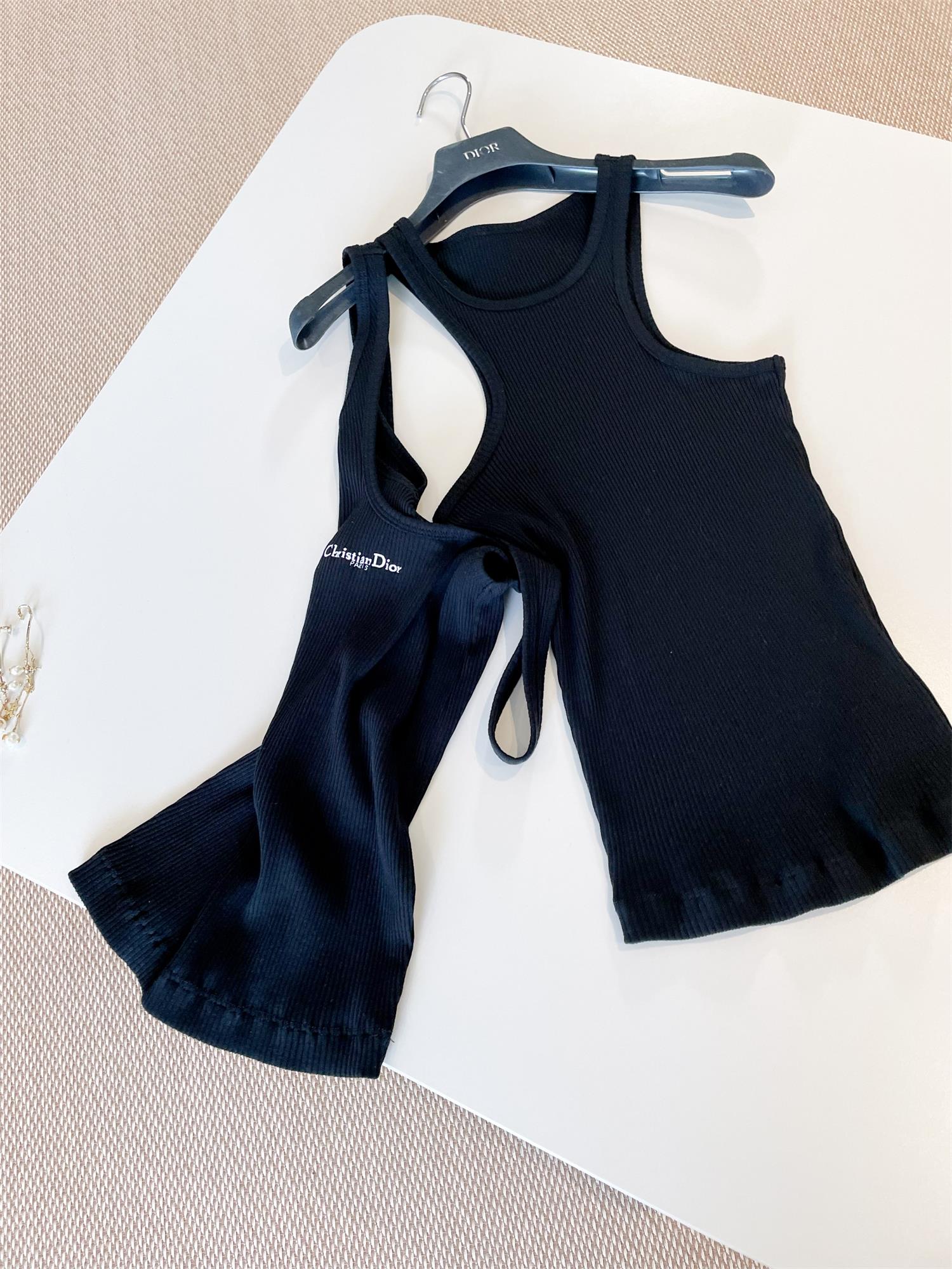 NIGO DIOR Women's Summer Embroidered Letter Print Double Layer Cross Knit Tank Top #nigo75958
