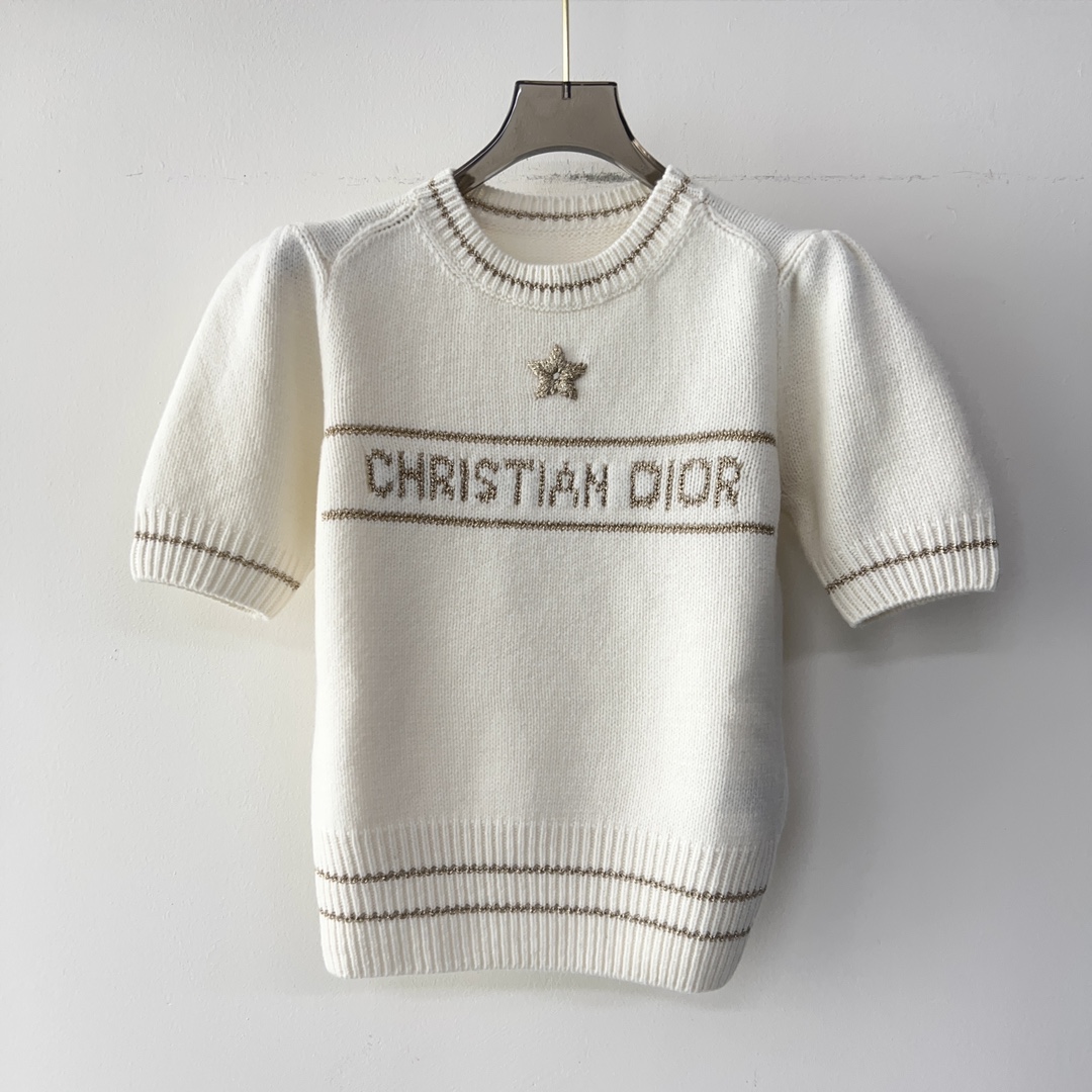 NIGO Dior Women's Wool Blend Knit Short Sleeve Top Round Neck Fashion Temperament Short T-Shirt Knitwear #nigo81137