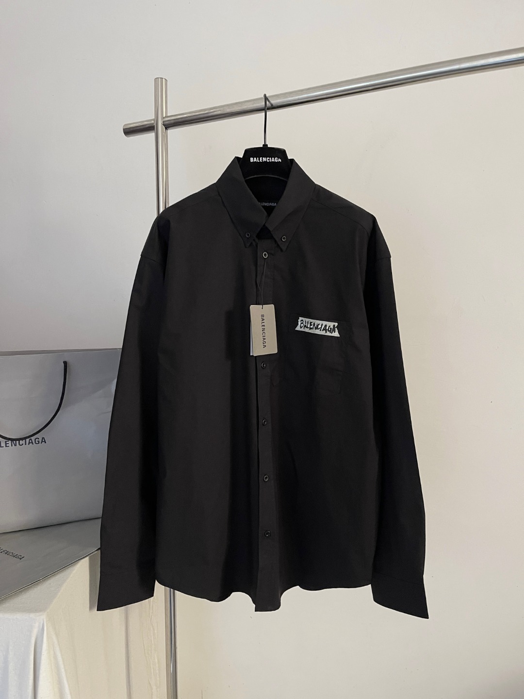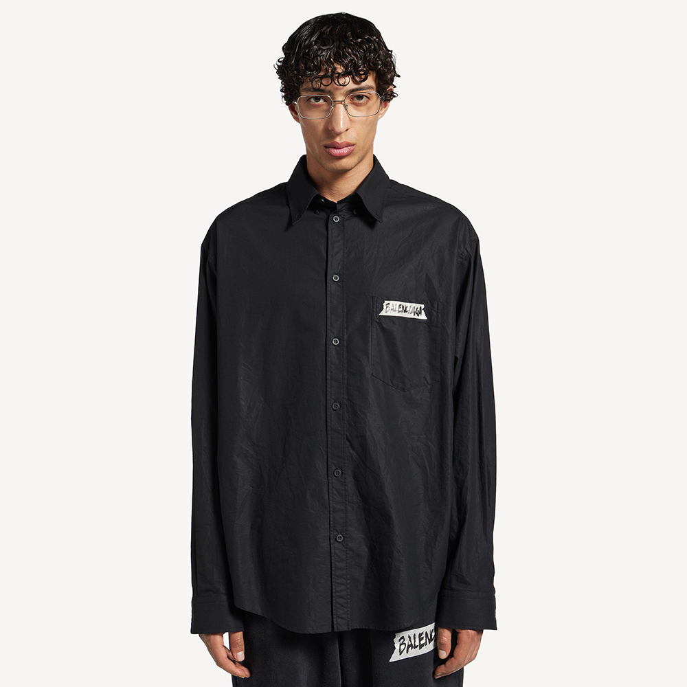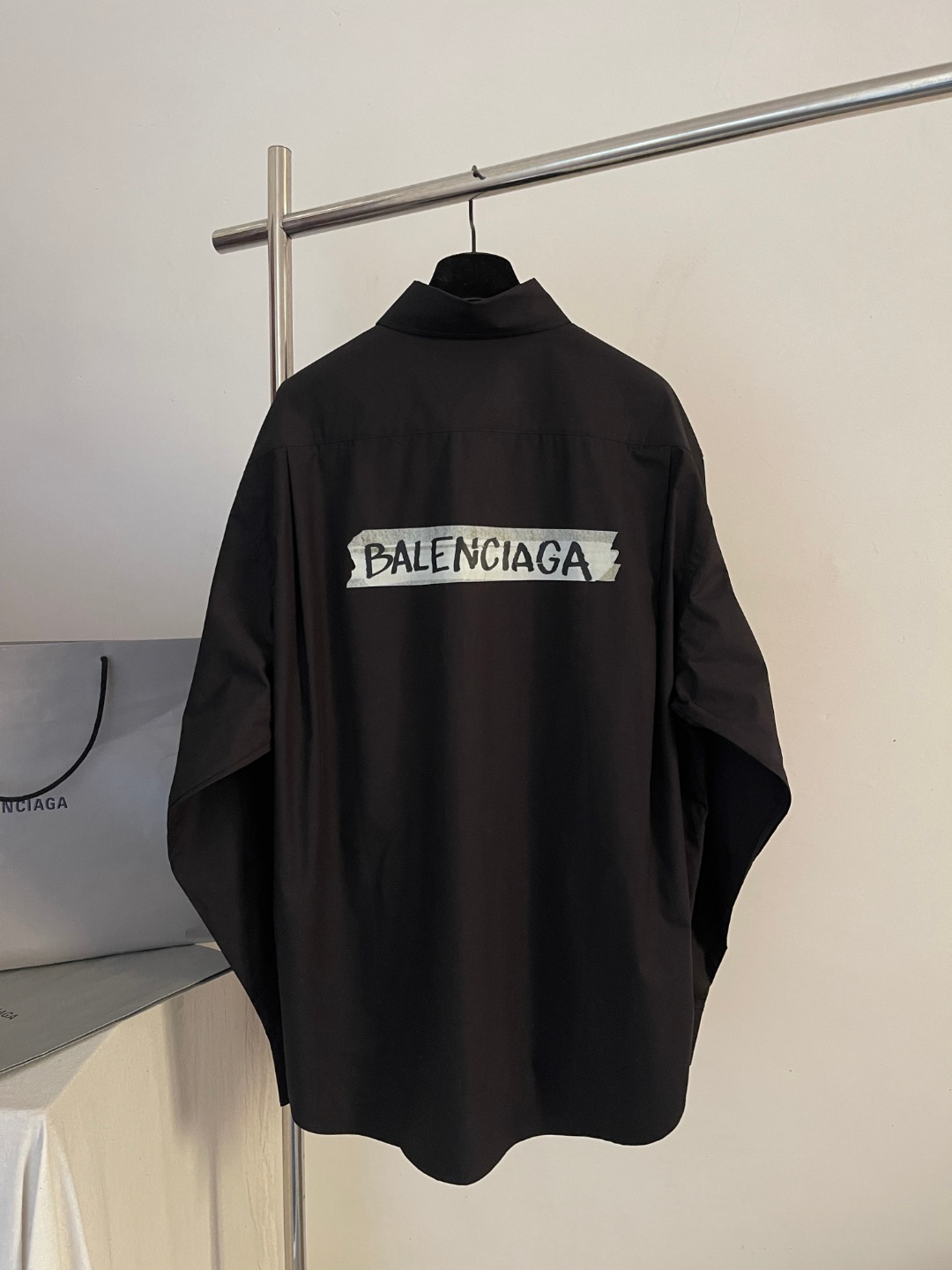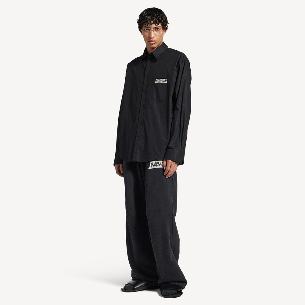 Balenciaga Men's Masking Tape Long Sleeve Shirt Large Fit in Black #nigo337143