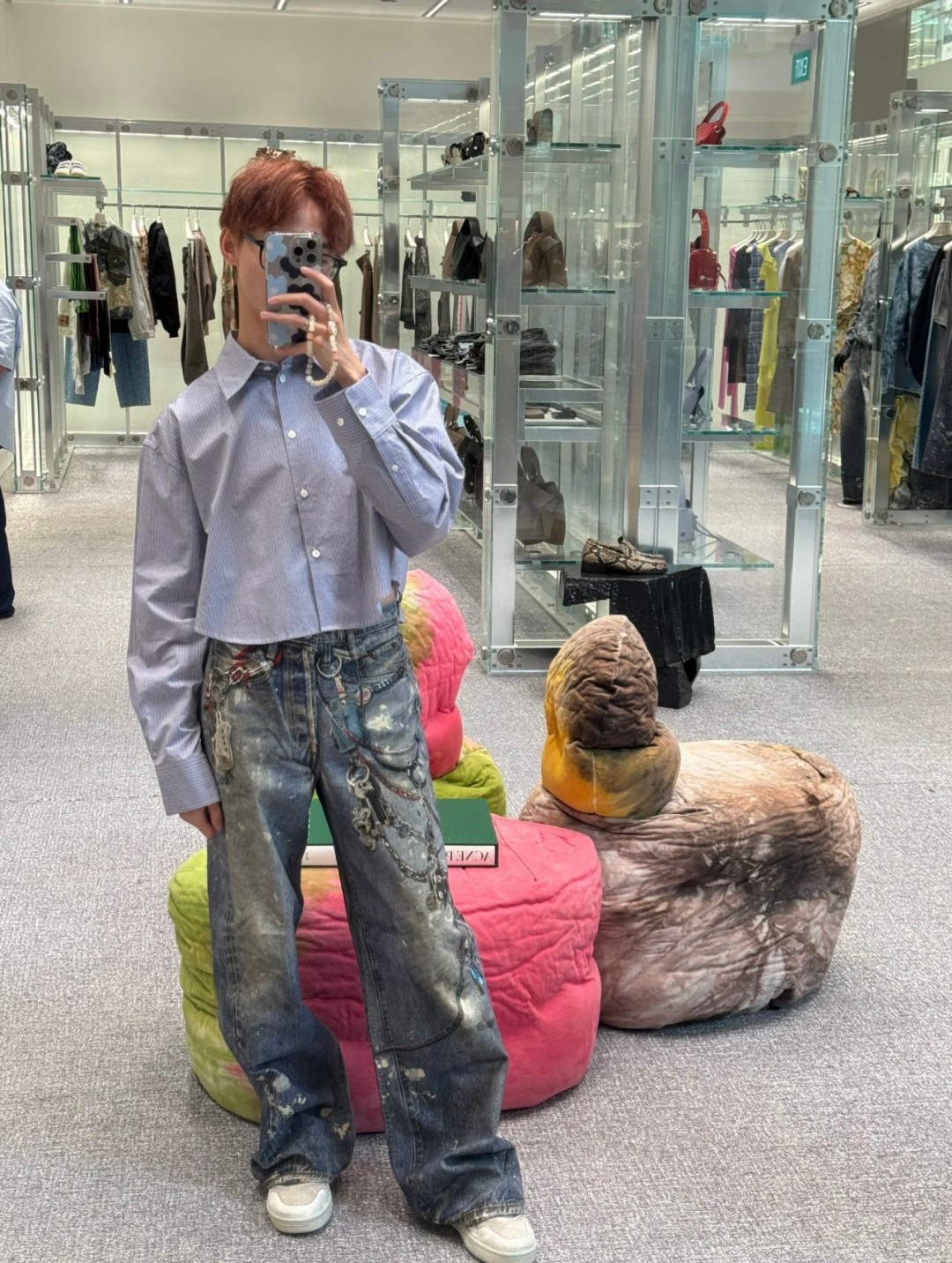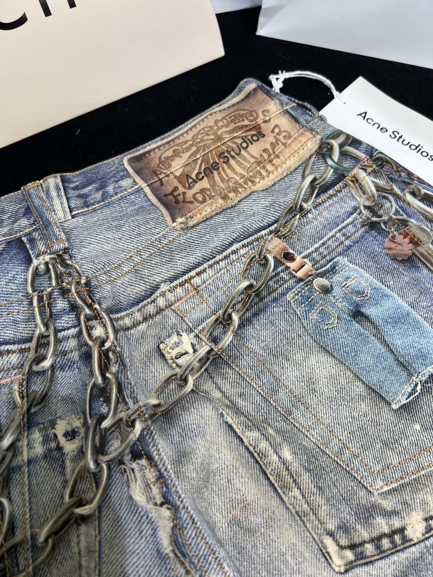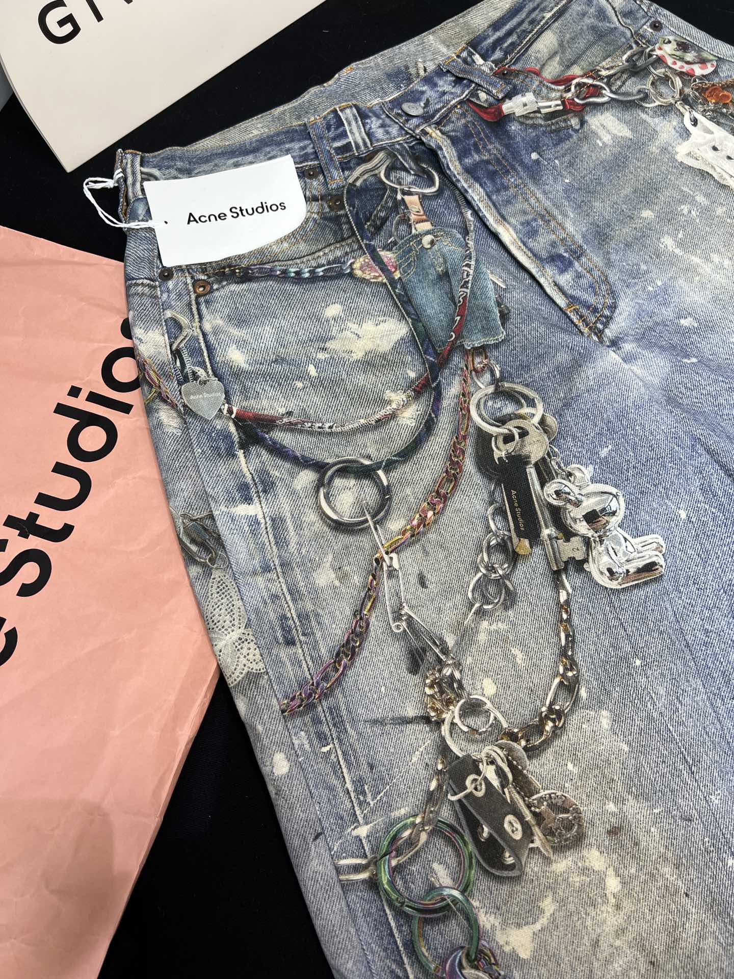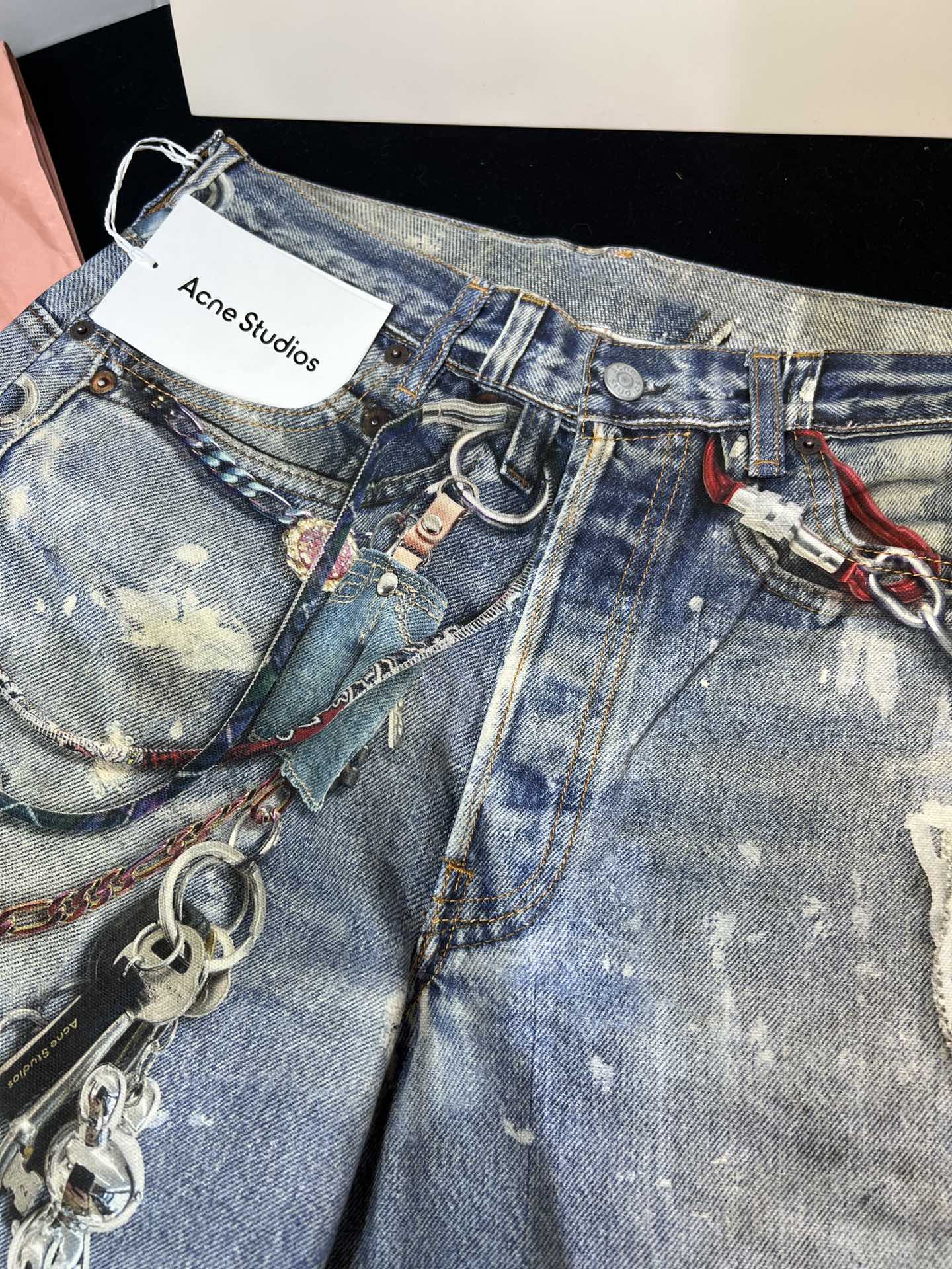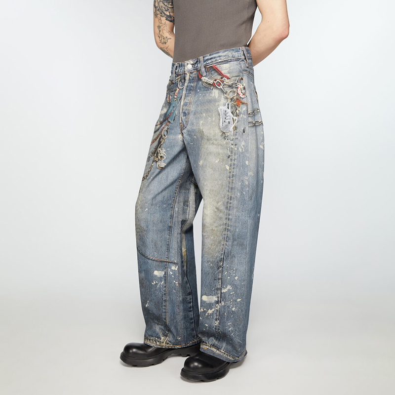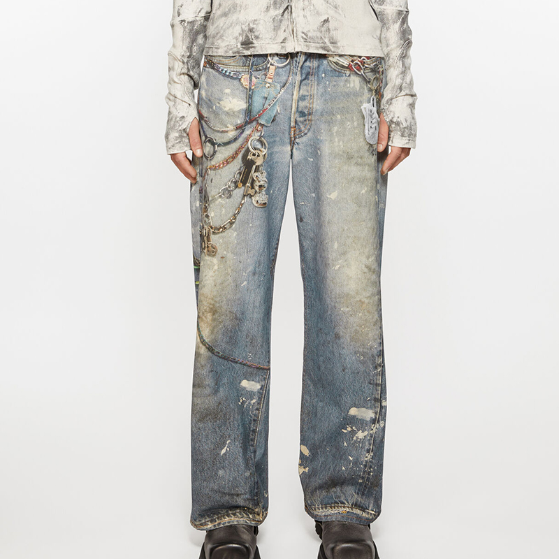 NIGO Acne Studios Men's And Women's 3D Printed Pattern Loose Low Waisted Casual Wide Leg Solid Color Denim Pants Ngvp #nigo8513