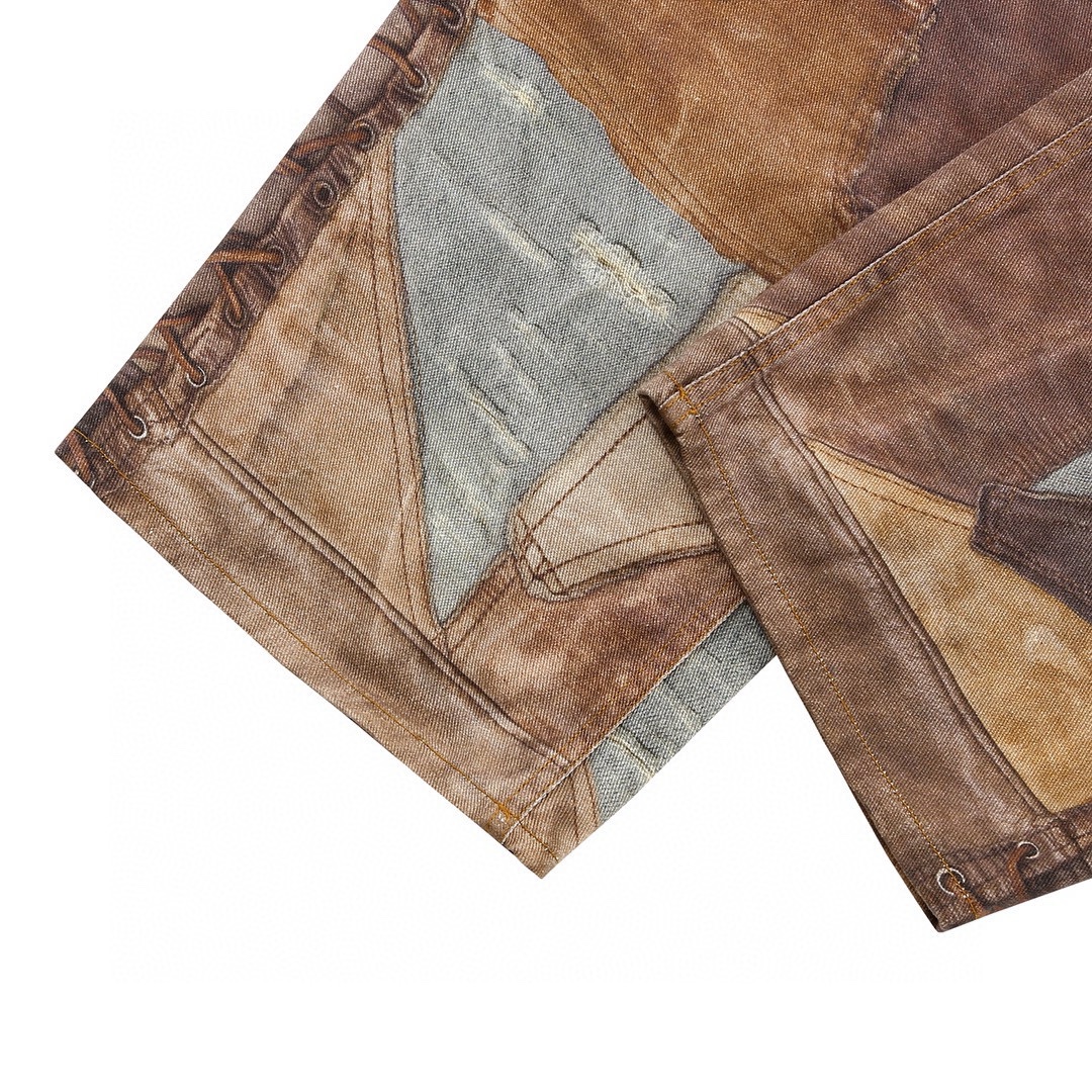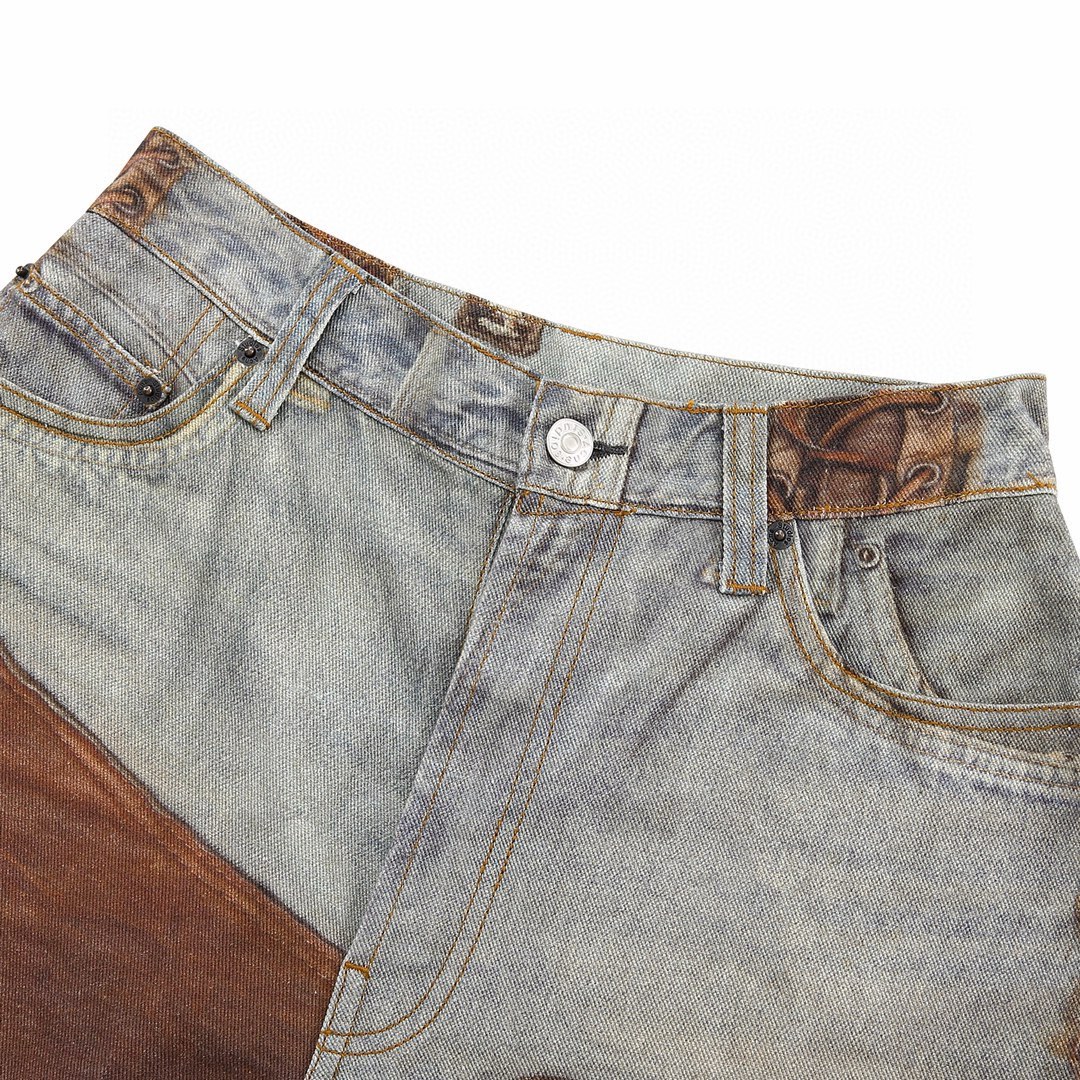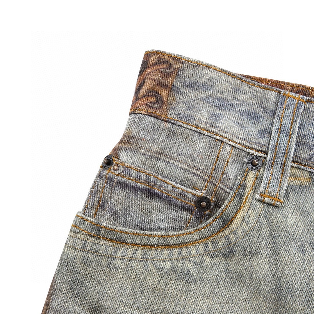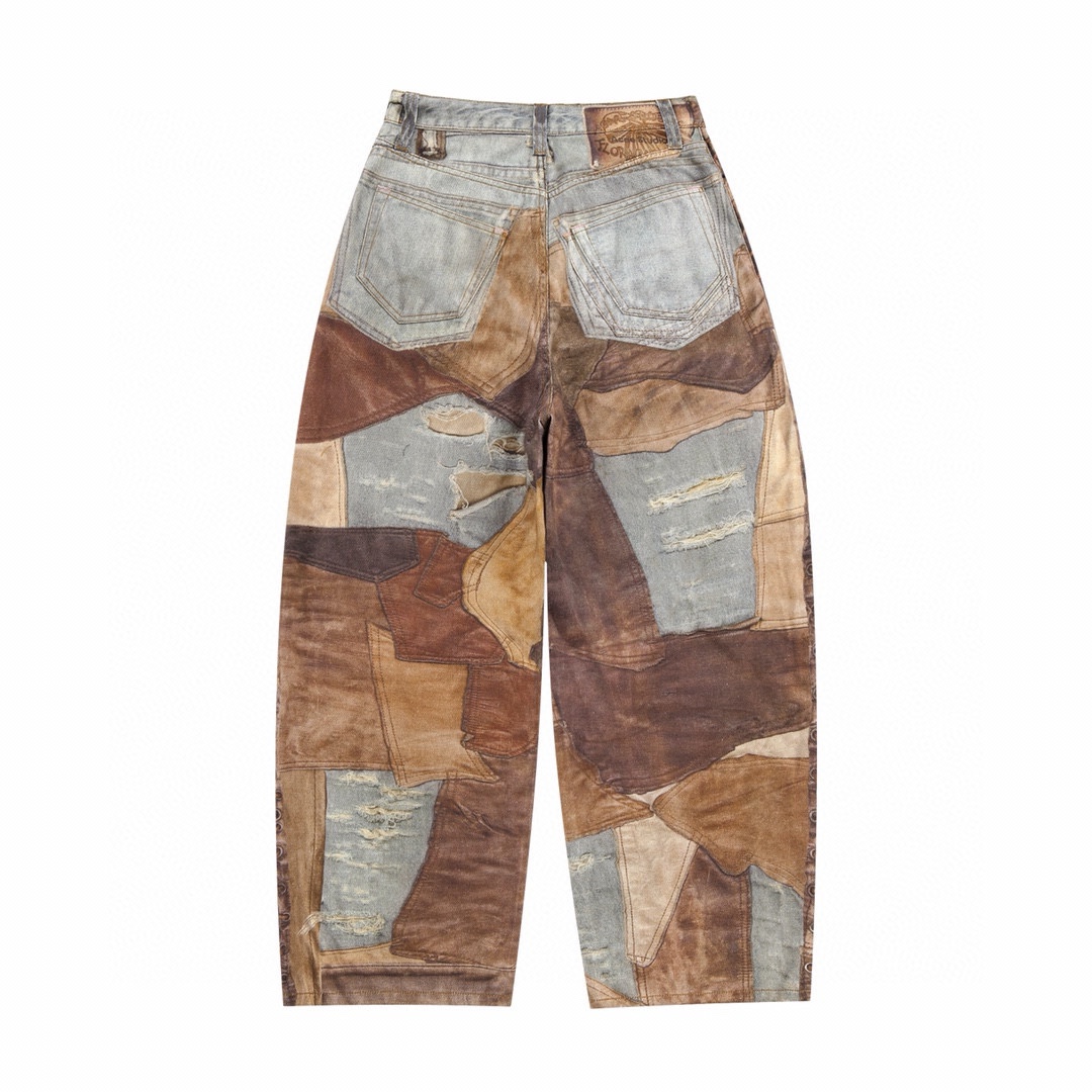NIGO Acne Studios Men's Four Seasons Vintage Mud Dye Spliced Printed Loose Cotton Mid Waist Wide Leg Denim Pants Ngvp #nigo8369