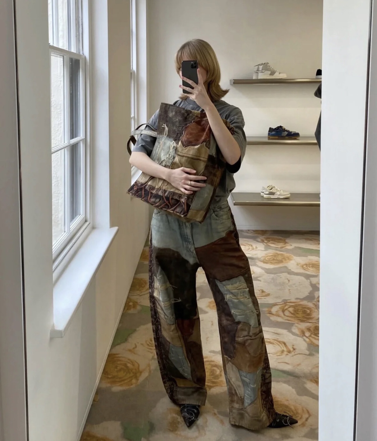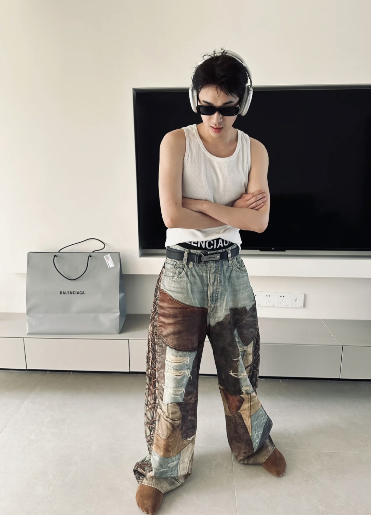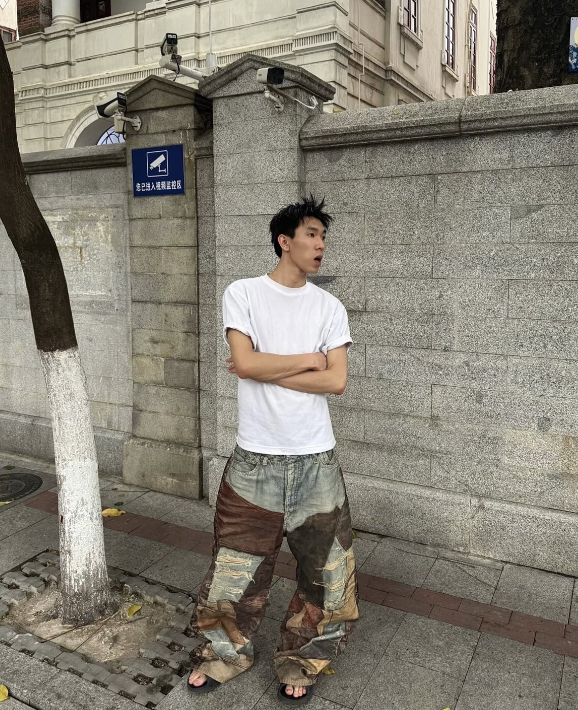 NIGO Acne Studios Men's Four Seasons Vintage Mud Dye Spliced Printed Loose Cotton Mid Waist Wide Leg Denim Pants Ngvp #nigo8369