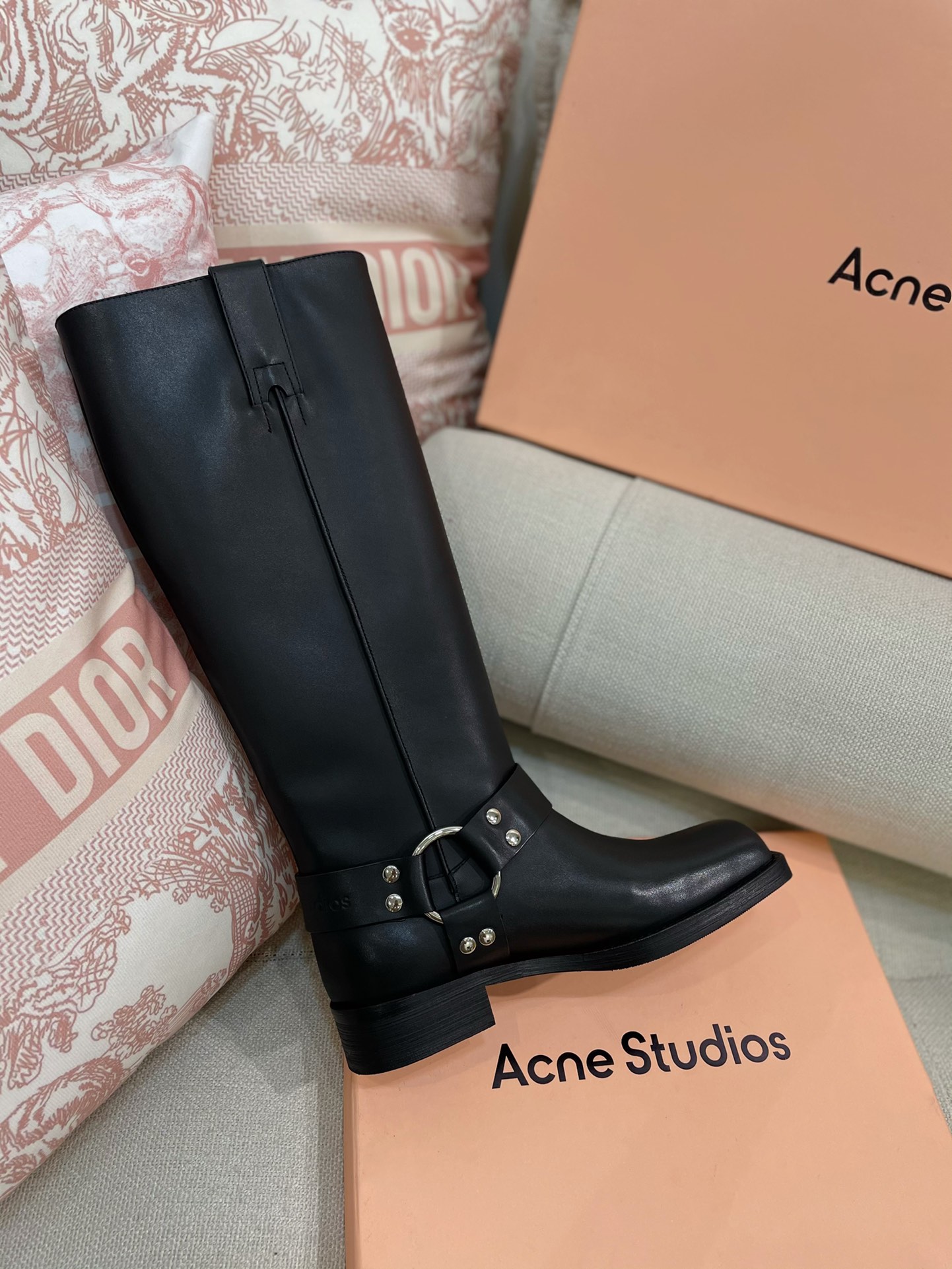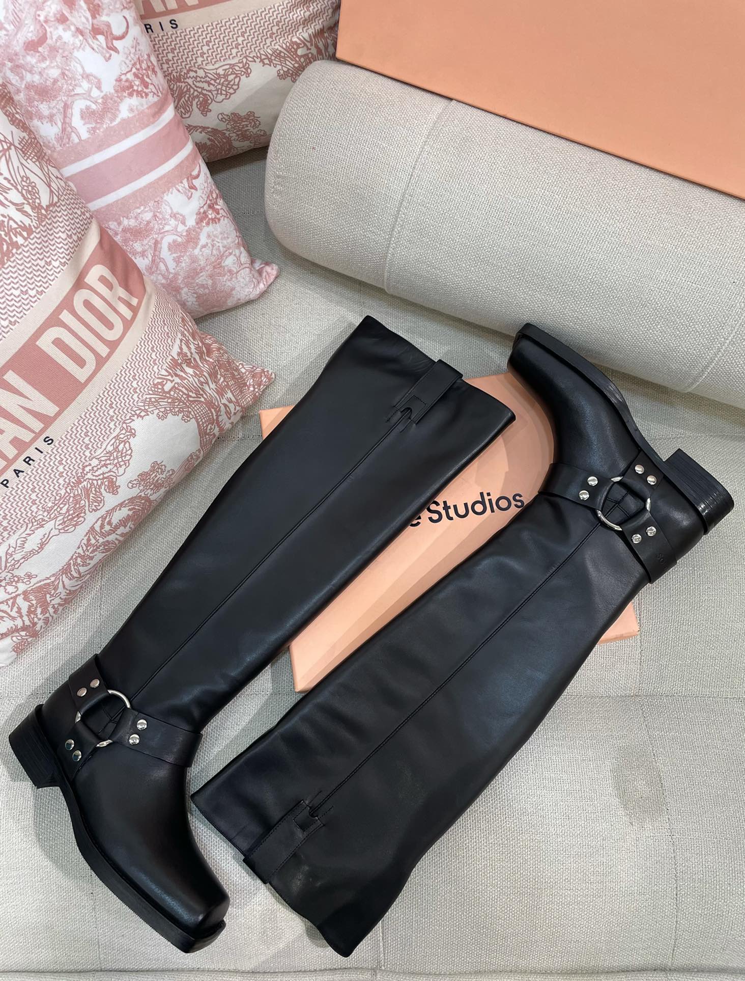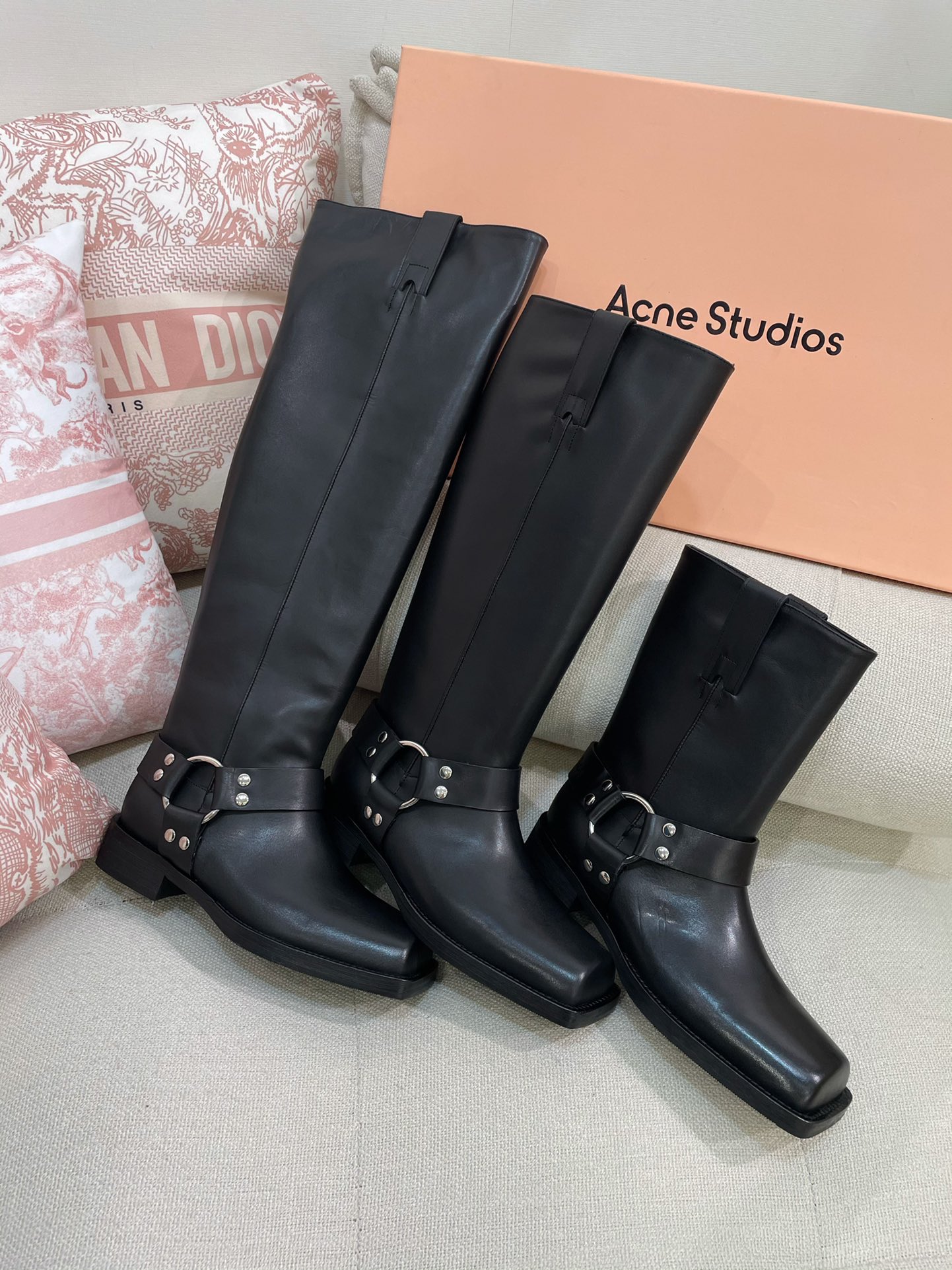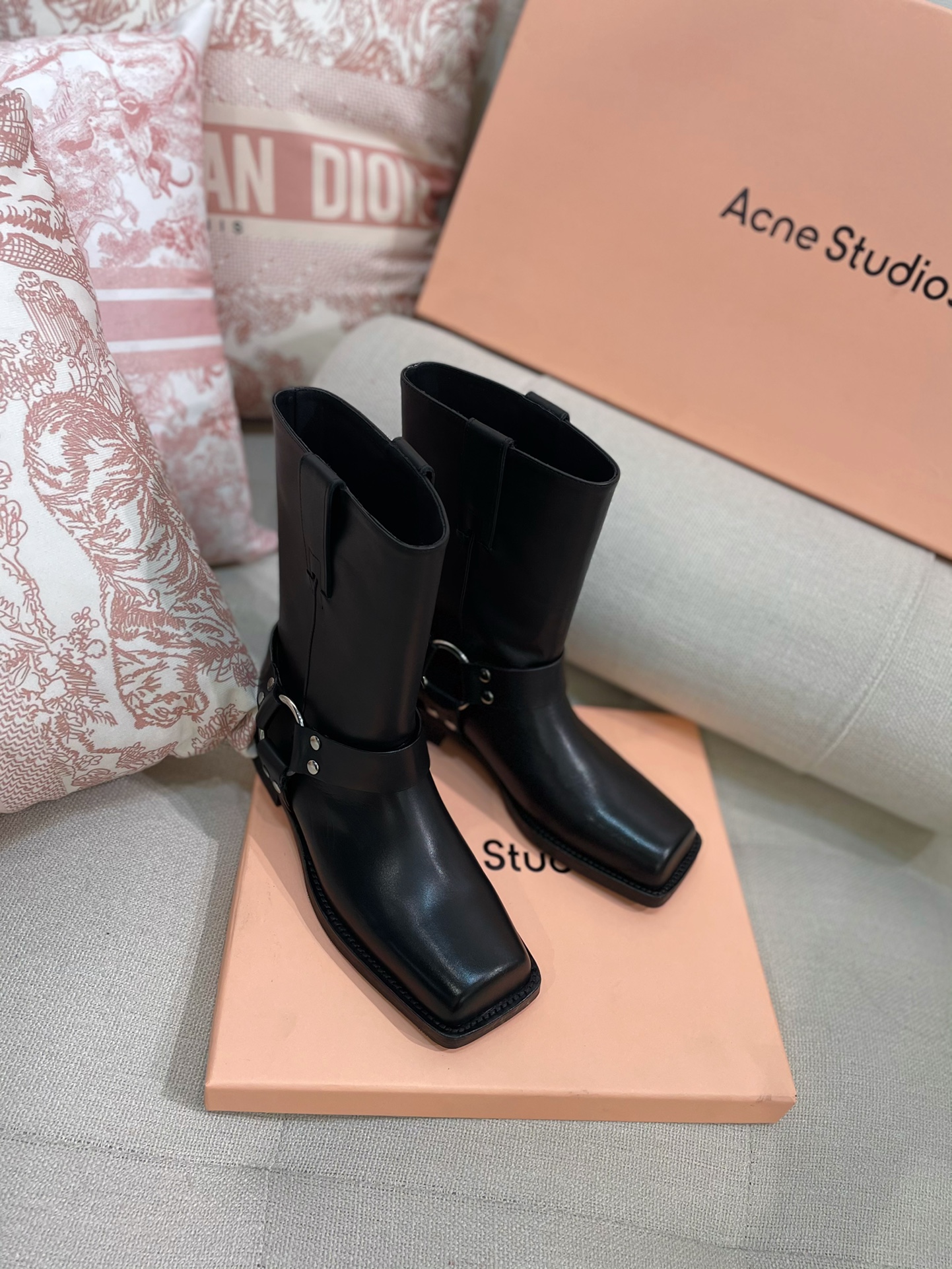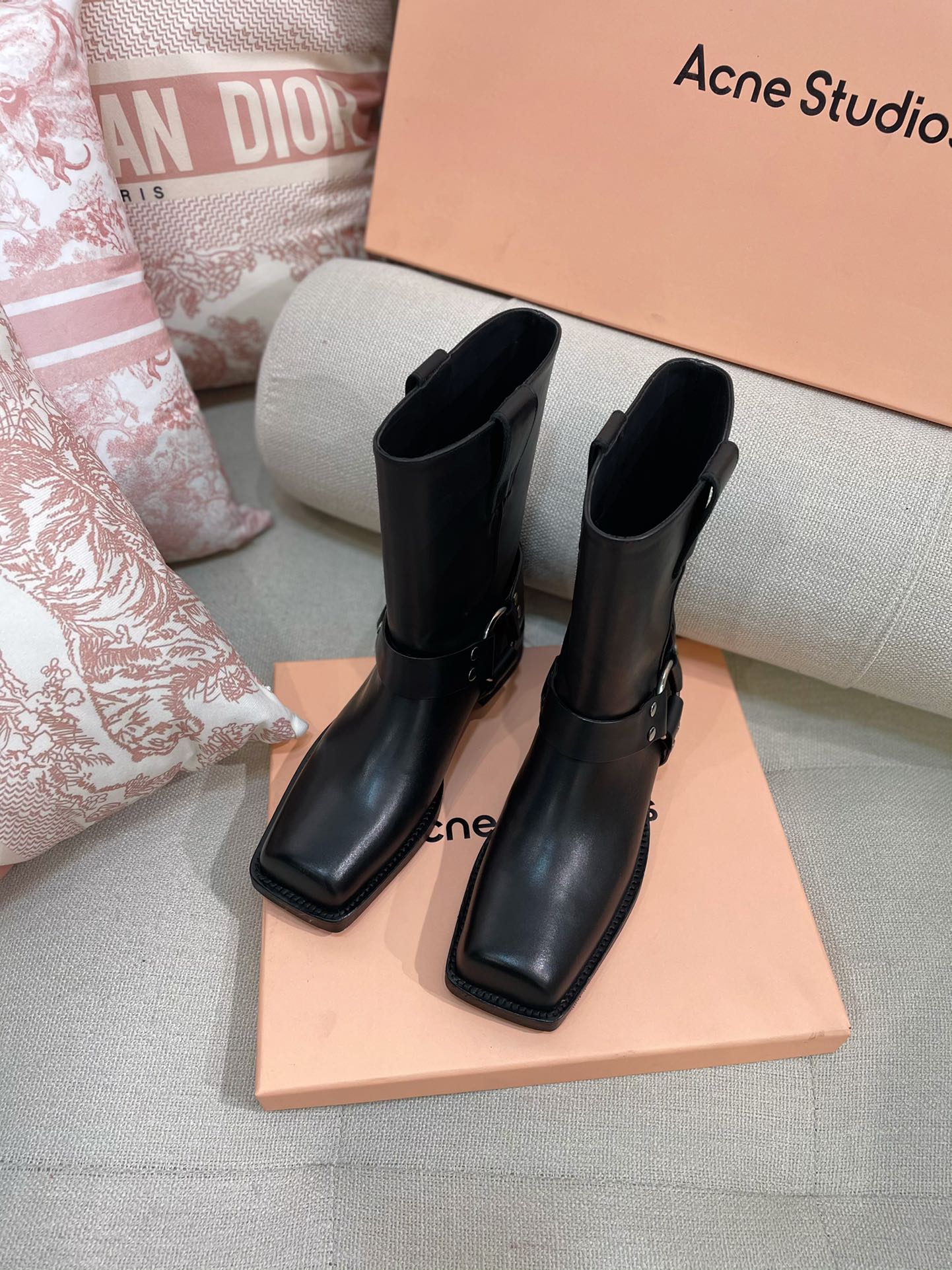 NIGO Acne Studios Women's Fashion Overlay Leather Buckle Boots Solid Color Casual Round Toe Boots Ngvp #nigo9275