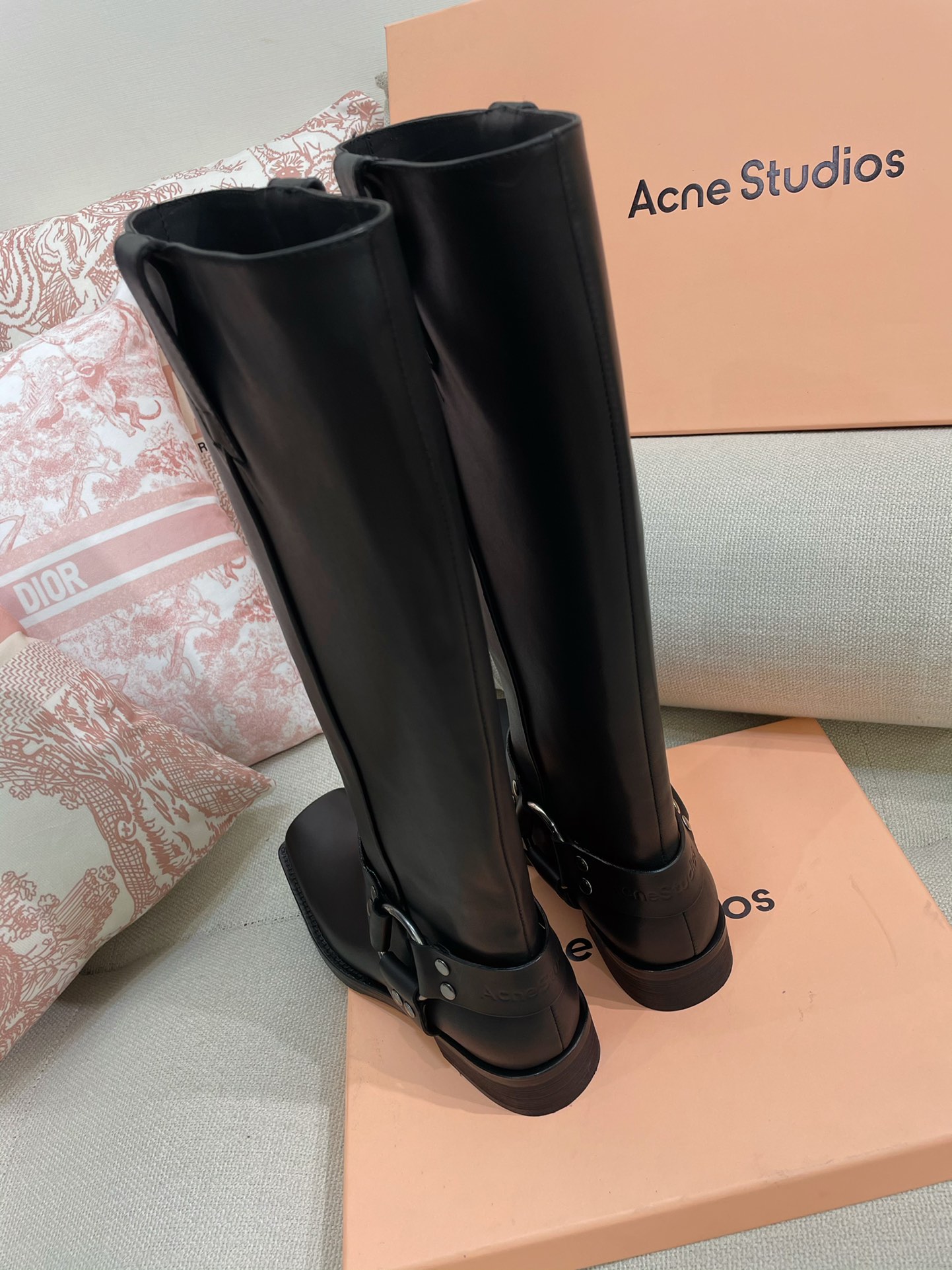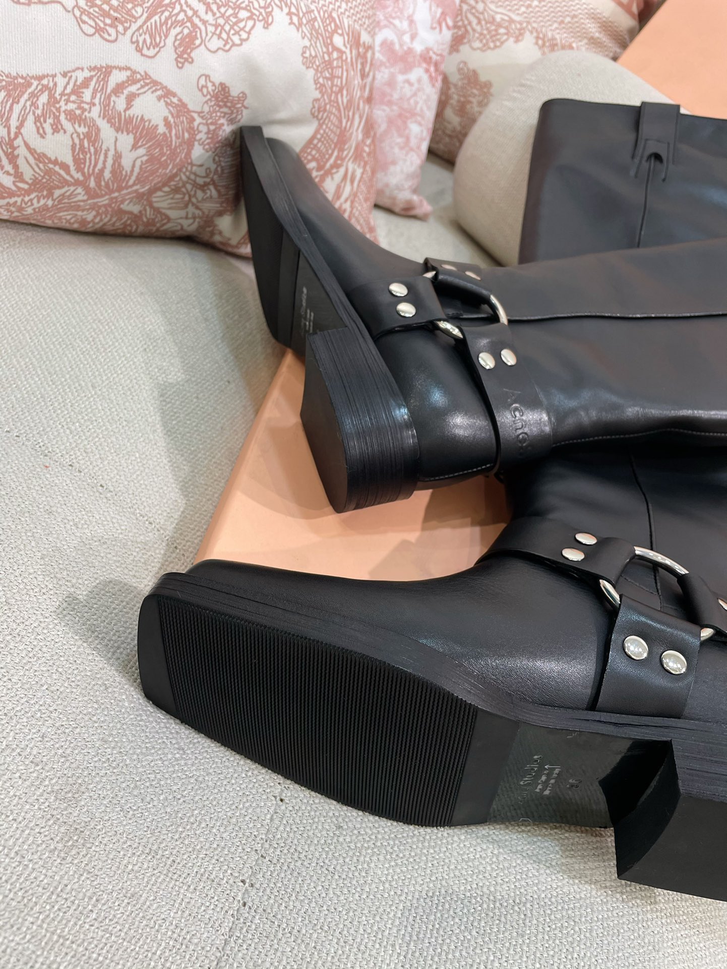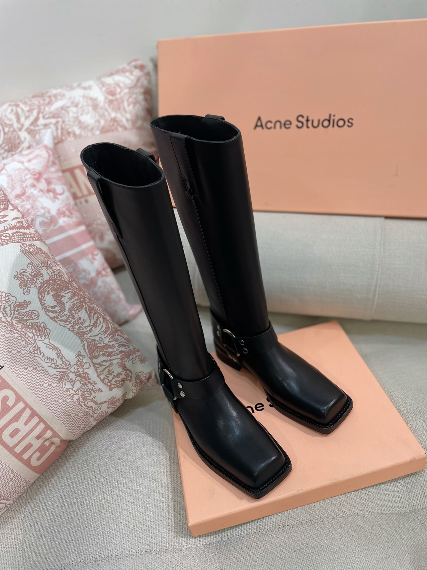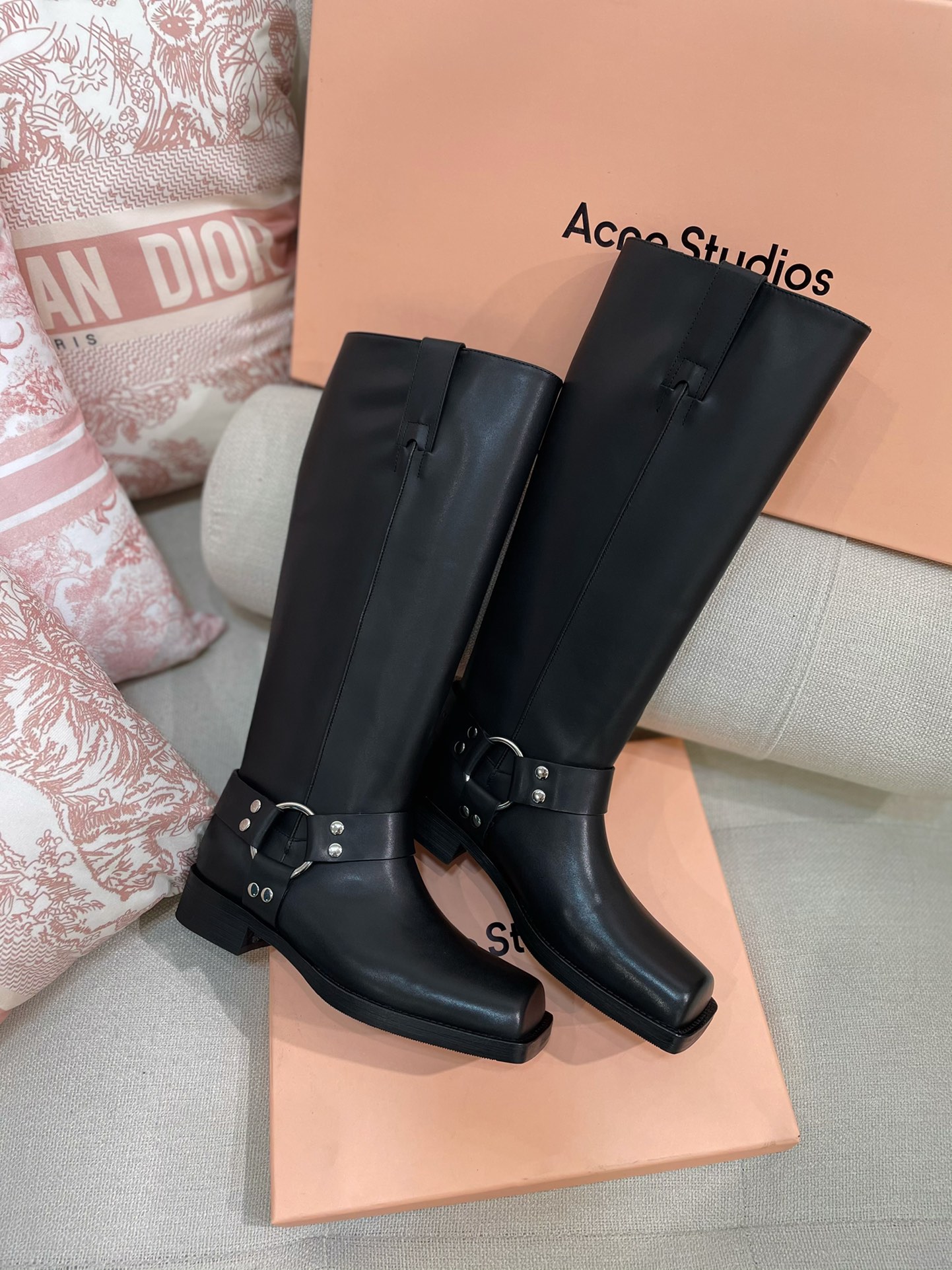 NIGO Acne Studios Women's Fashion Overlay Leather Buckle Boots Solid Color Casual Round Toe Boots Ngvp #nigo9275