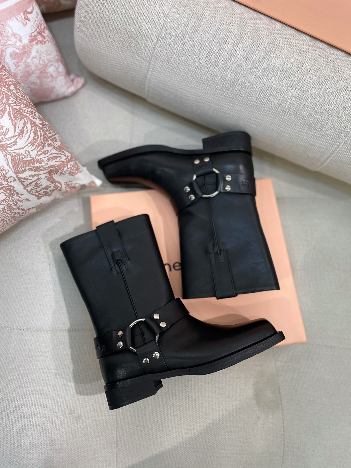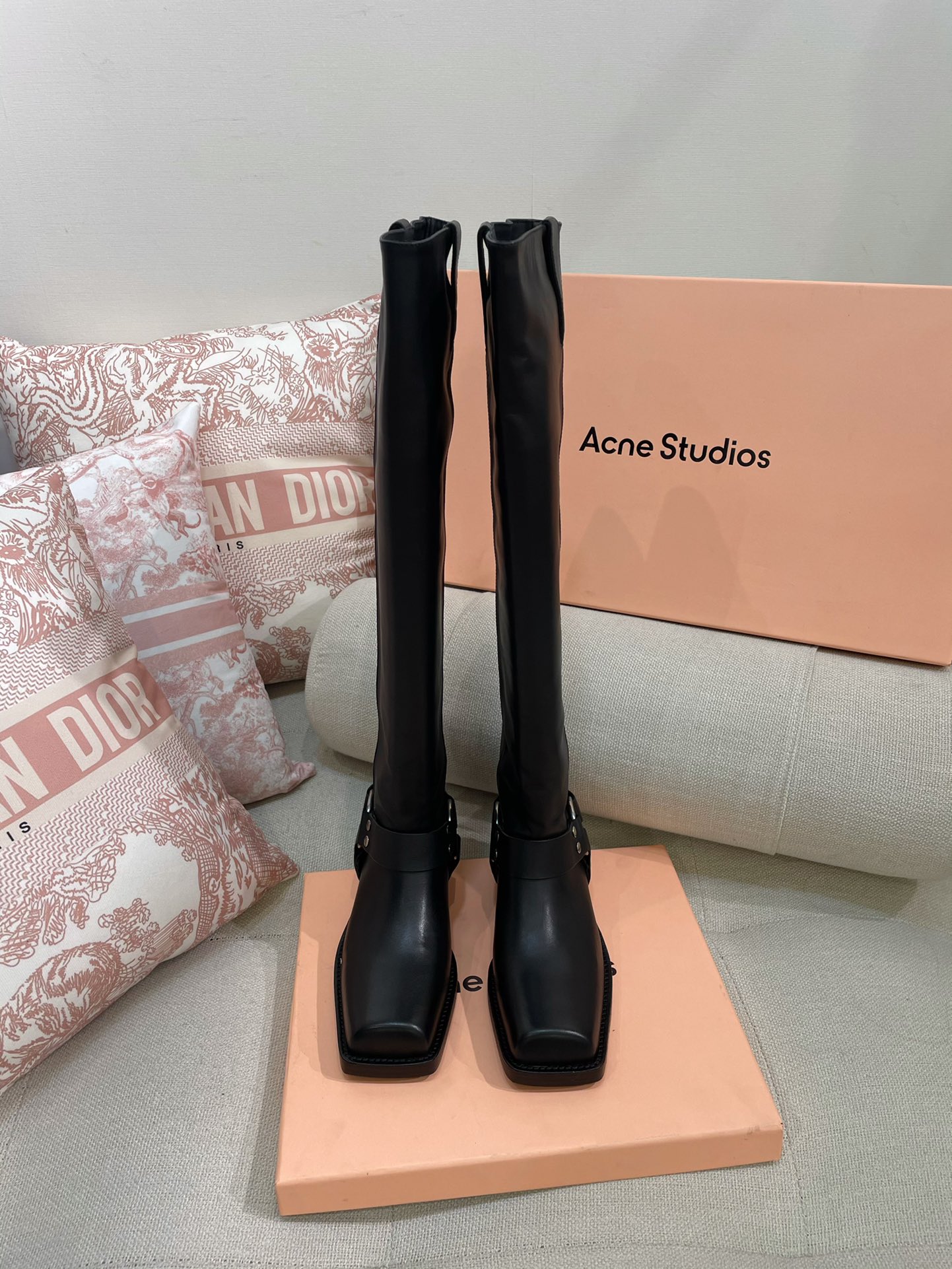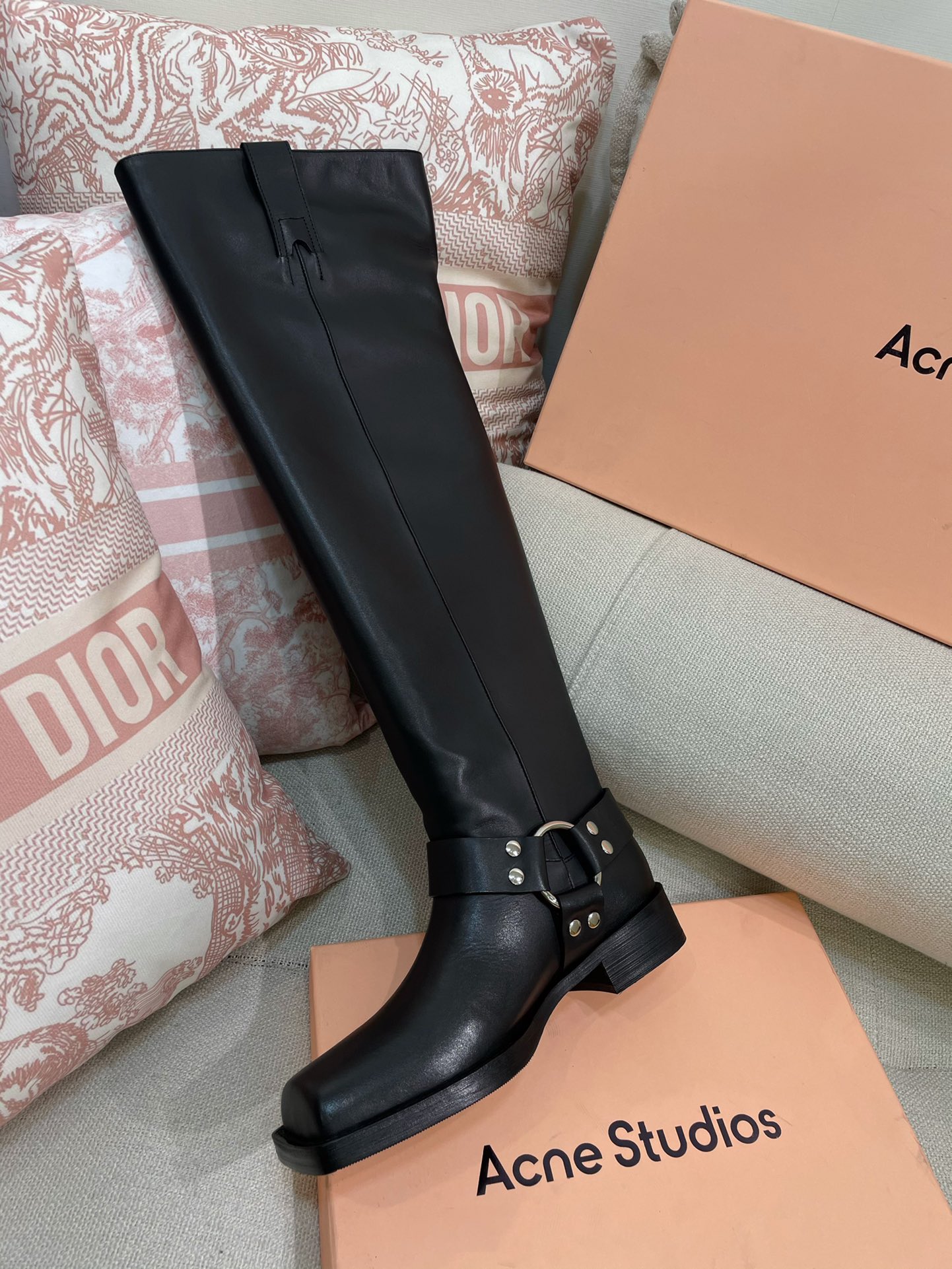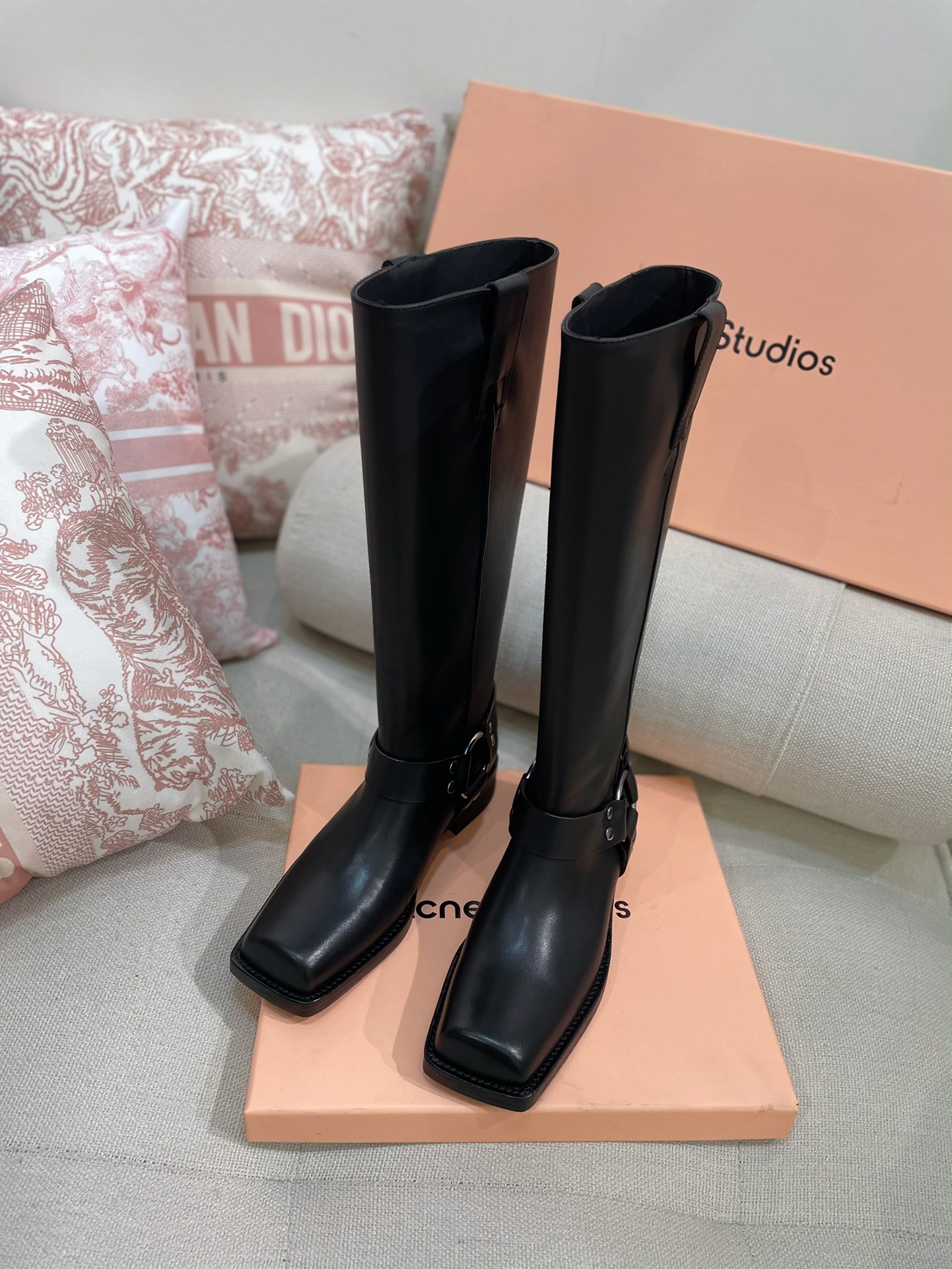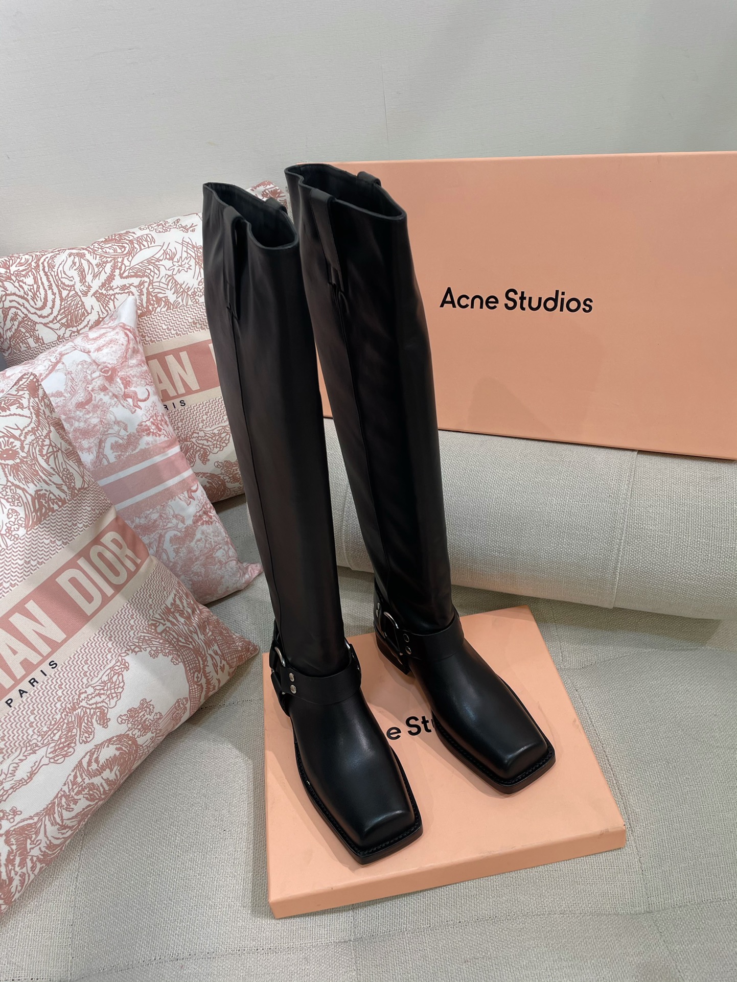 NIGO Acne Studios Women's Fashion Overlay Leather Buckle Boots Solid Color Casual Round Toe Boots Ngvp #nigo9275