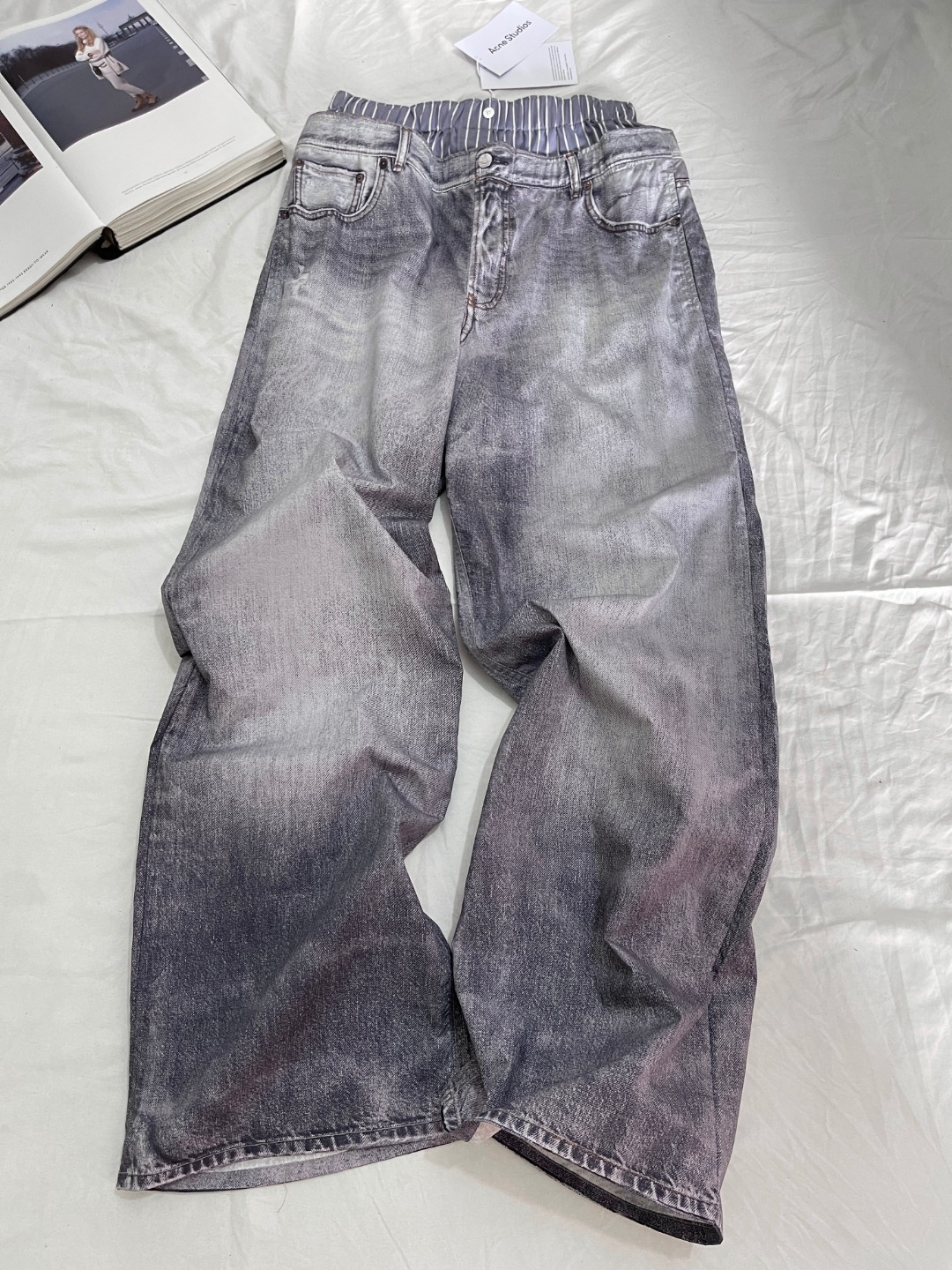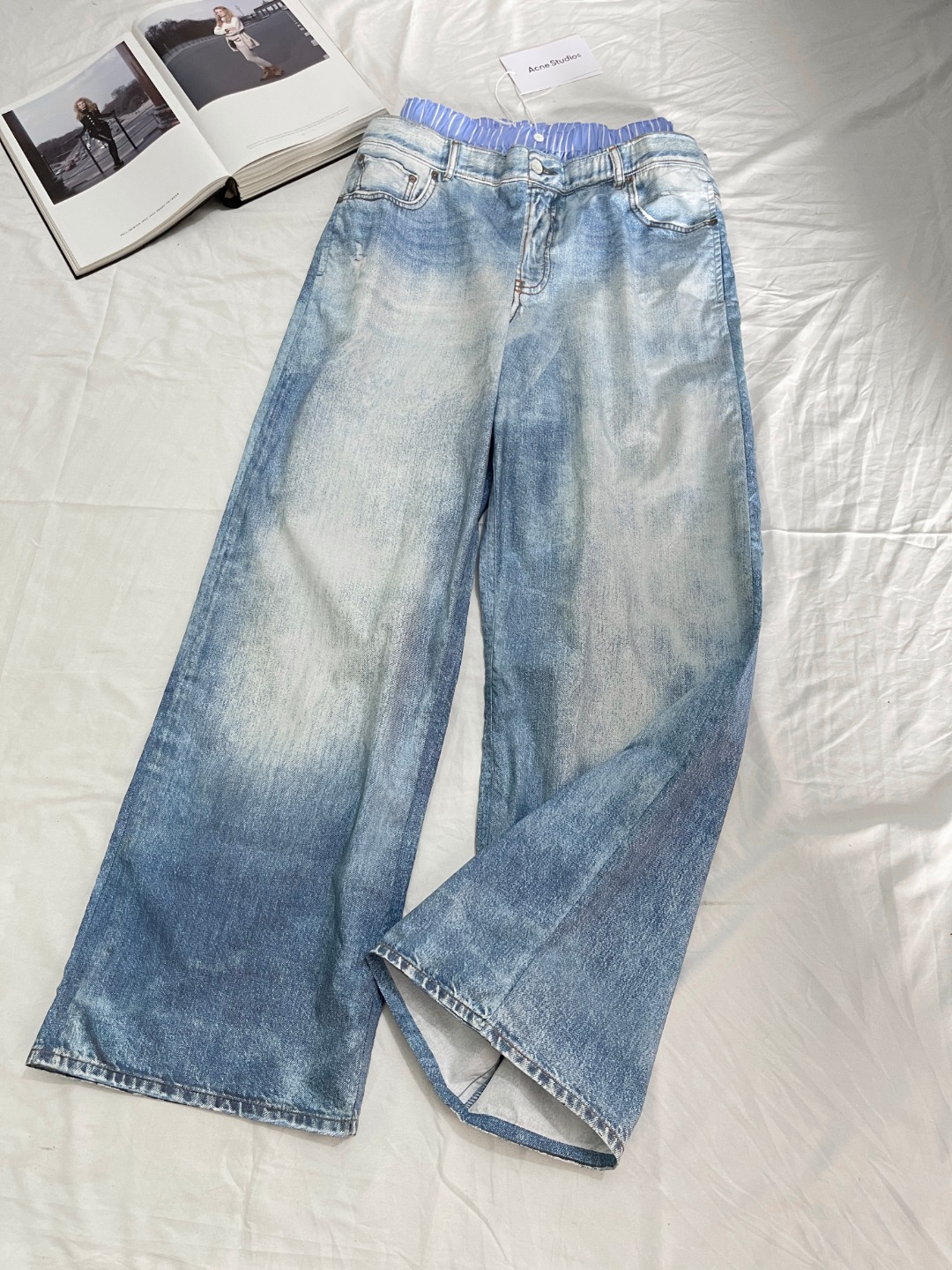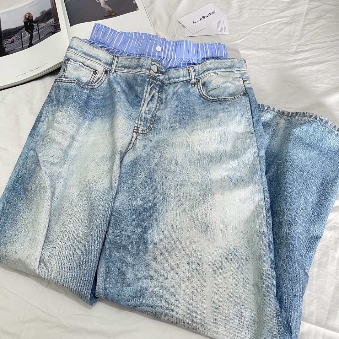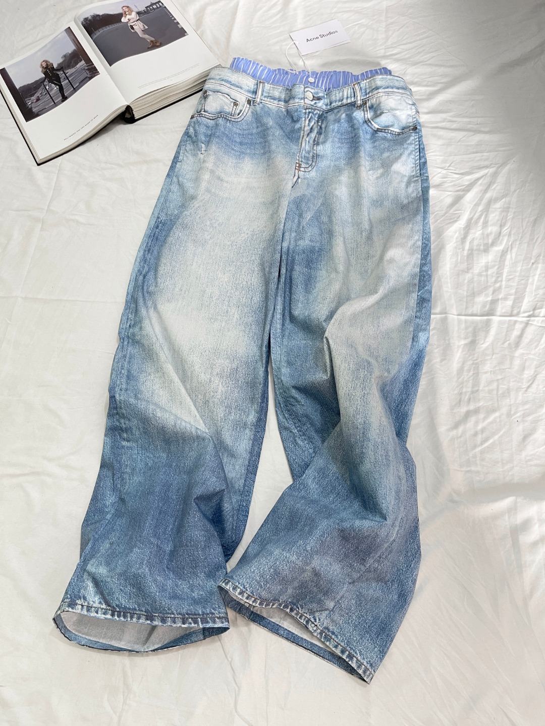 NIGO Acne Studios Women's Spring And Summer Double Pants Waist Vintage Old Washed High Waist Loose Cotton Wide Leg Straight Pants Ngvp #nigo1895