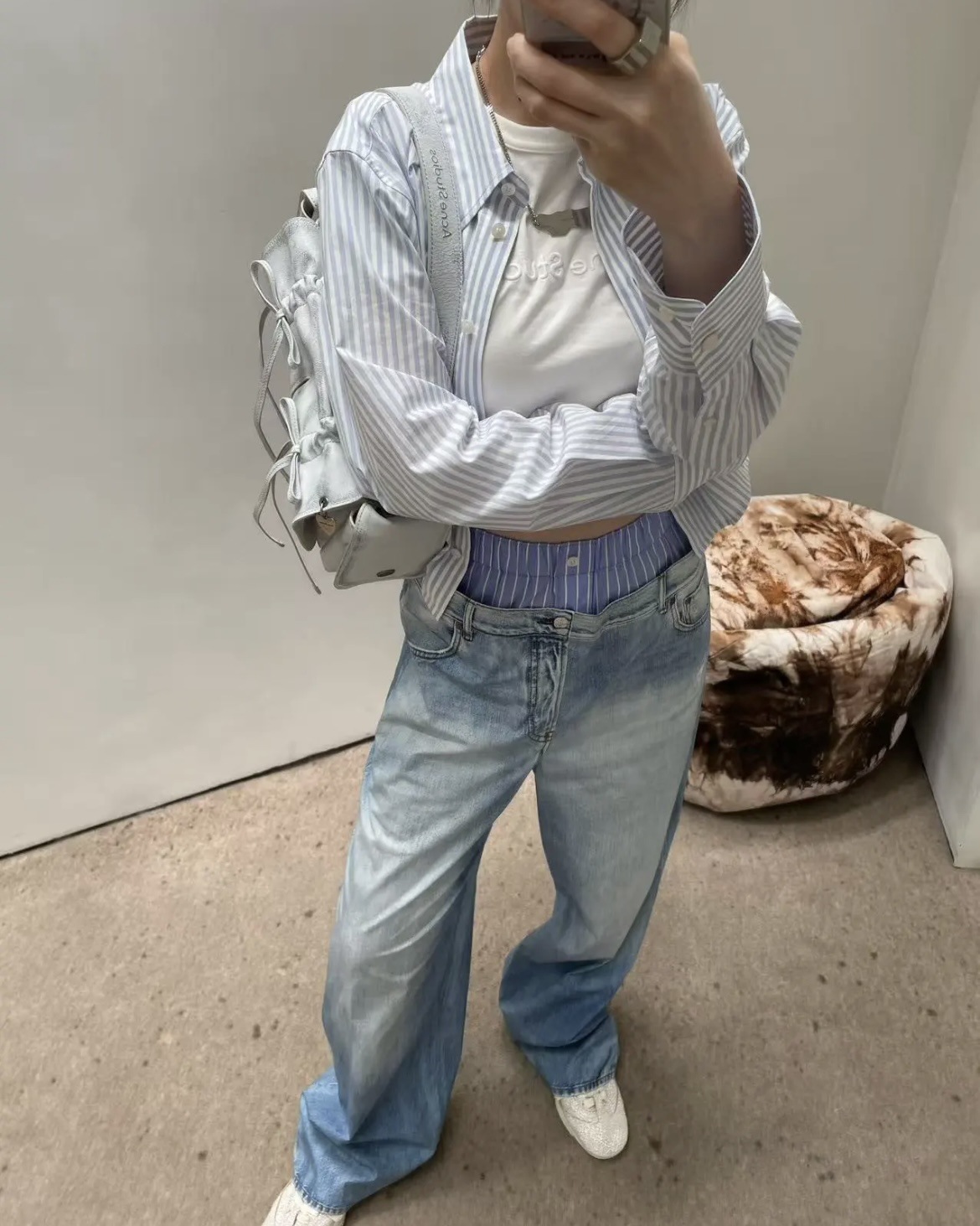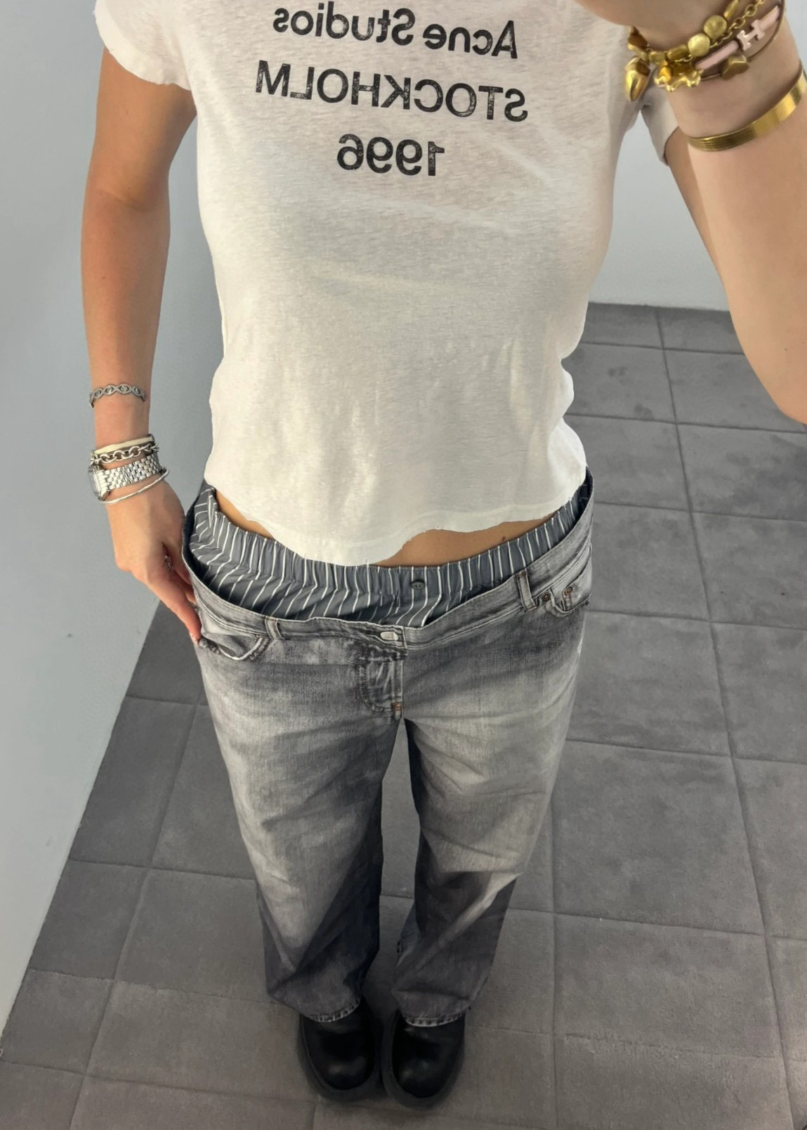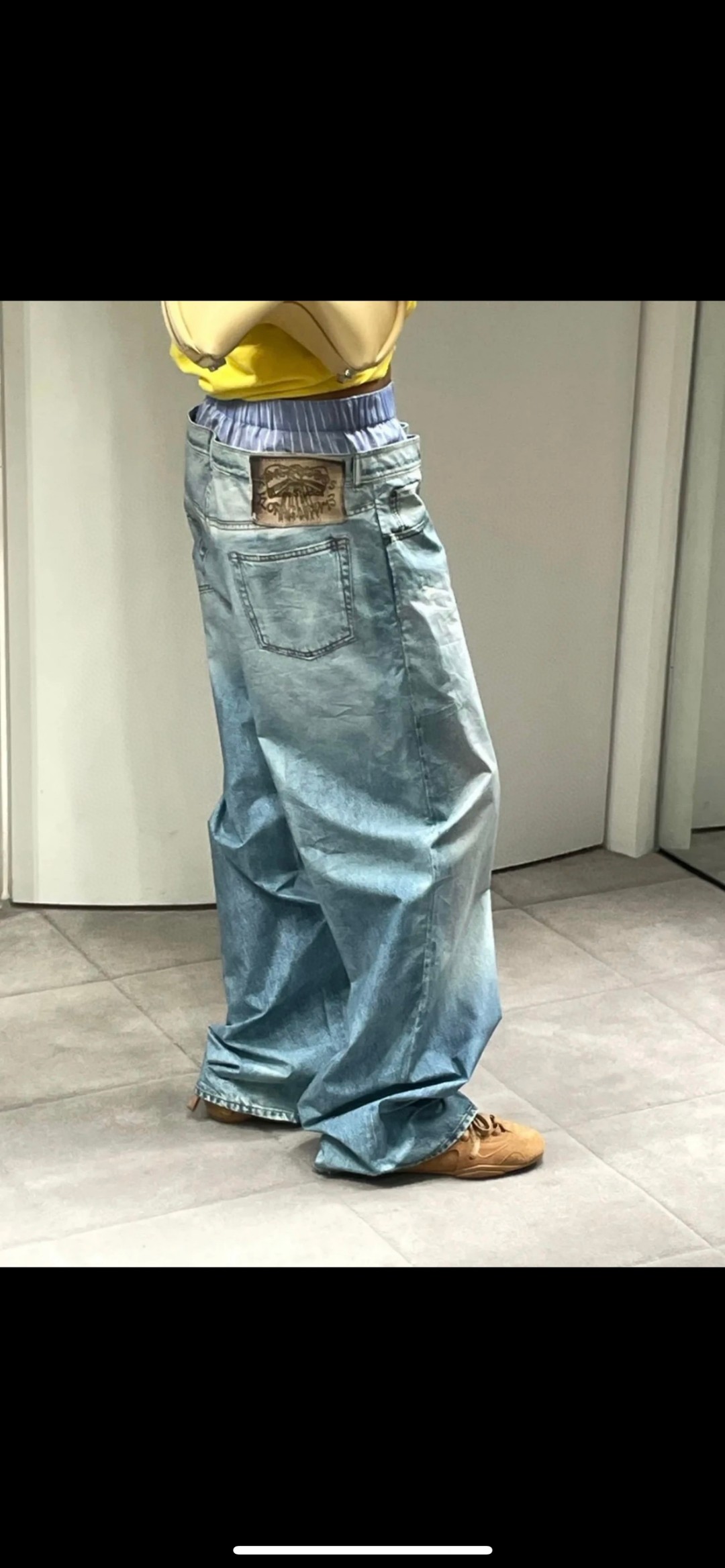 NIGO Acne Studios Women's Spring And Summer Double Pants Waist Vintage Old Washed High Waist Loose Cotton Wide Leg Straight Pants Ngvp #nigo1895