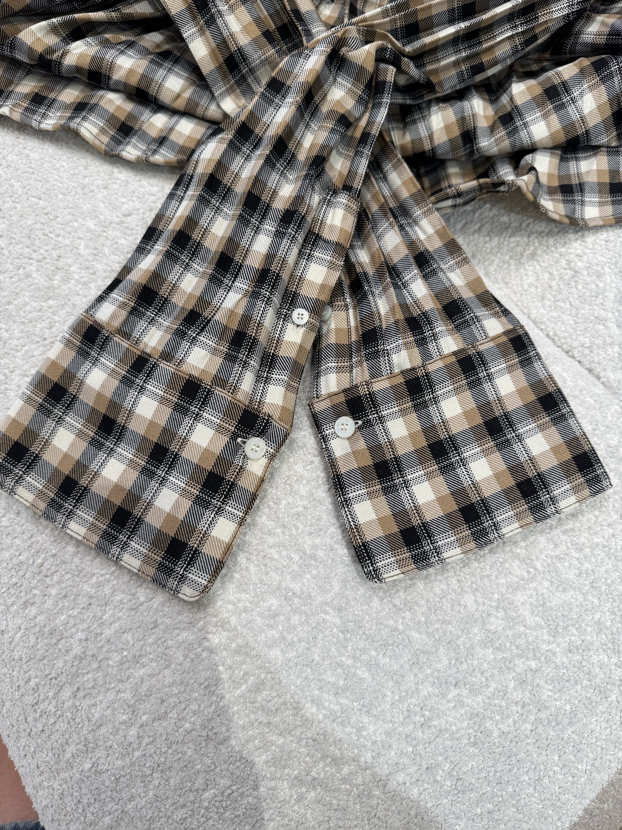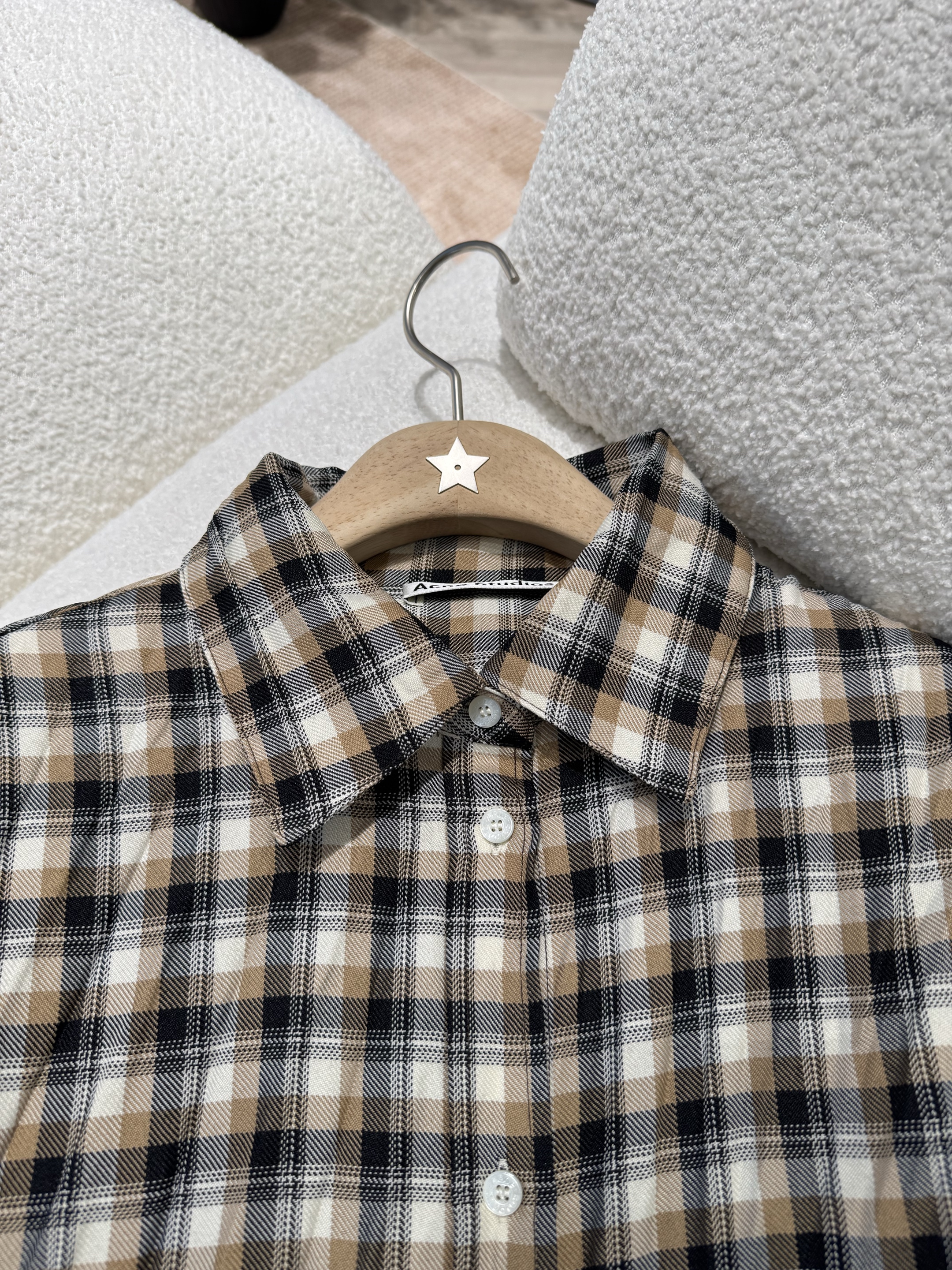 NIGO Acne Studios Women's Spring/Fall Checkered Single-Breasted Color-Blocked Casual Loose-Fit Long-Sleeve Shirt #nigo81593