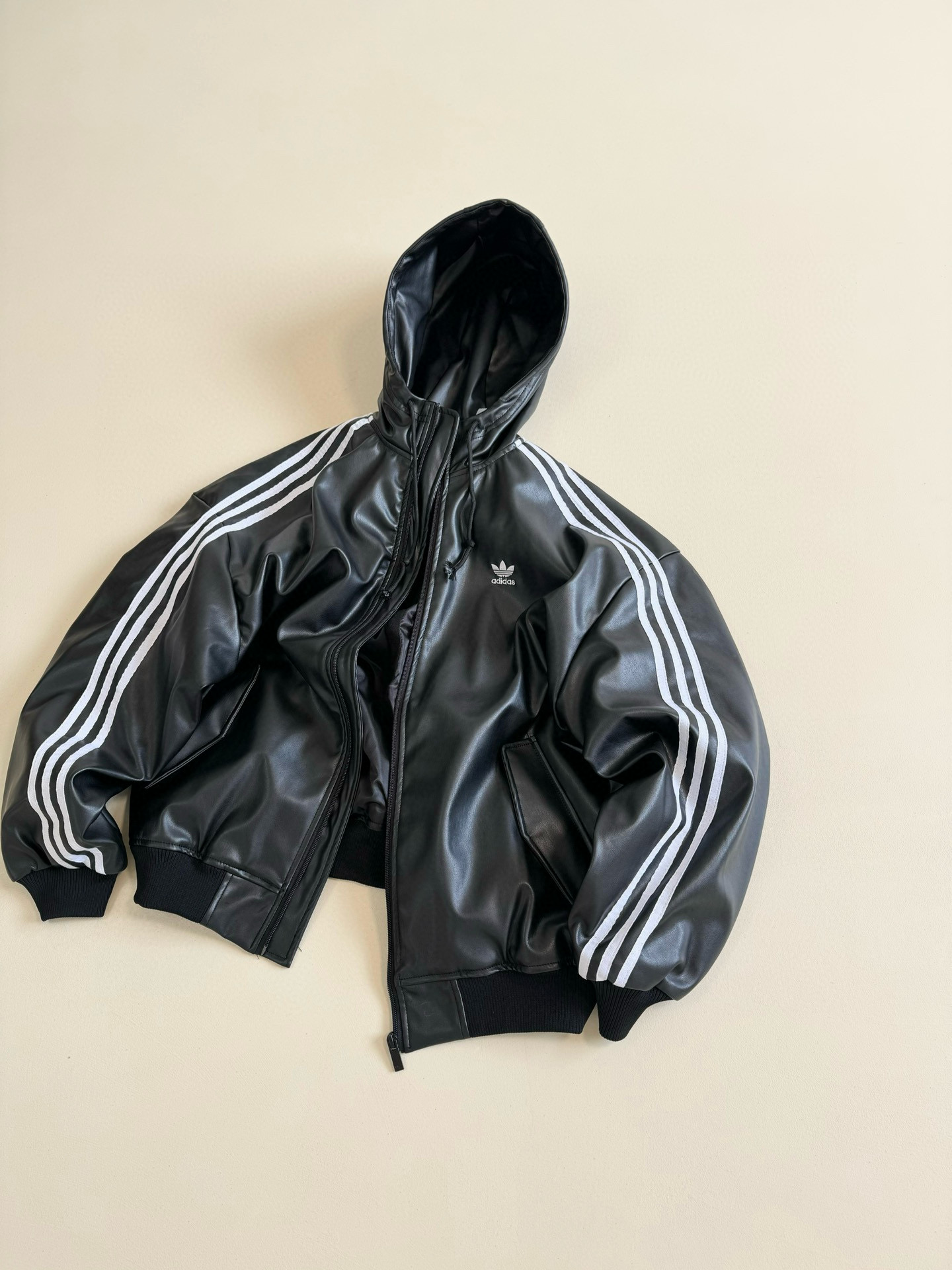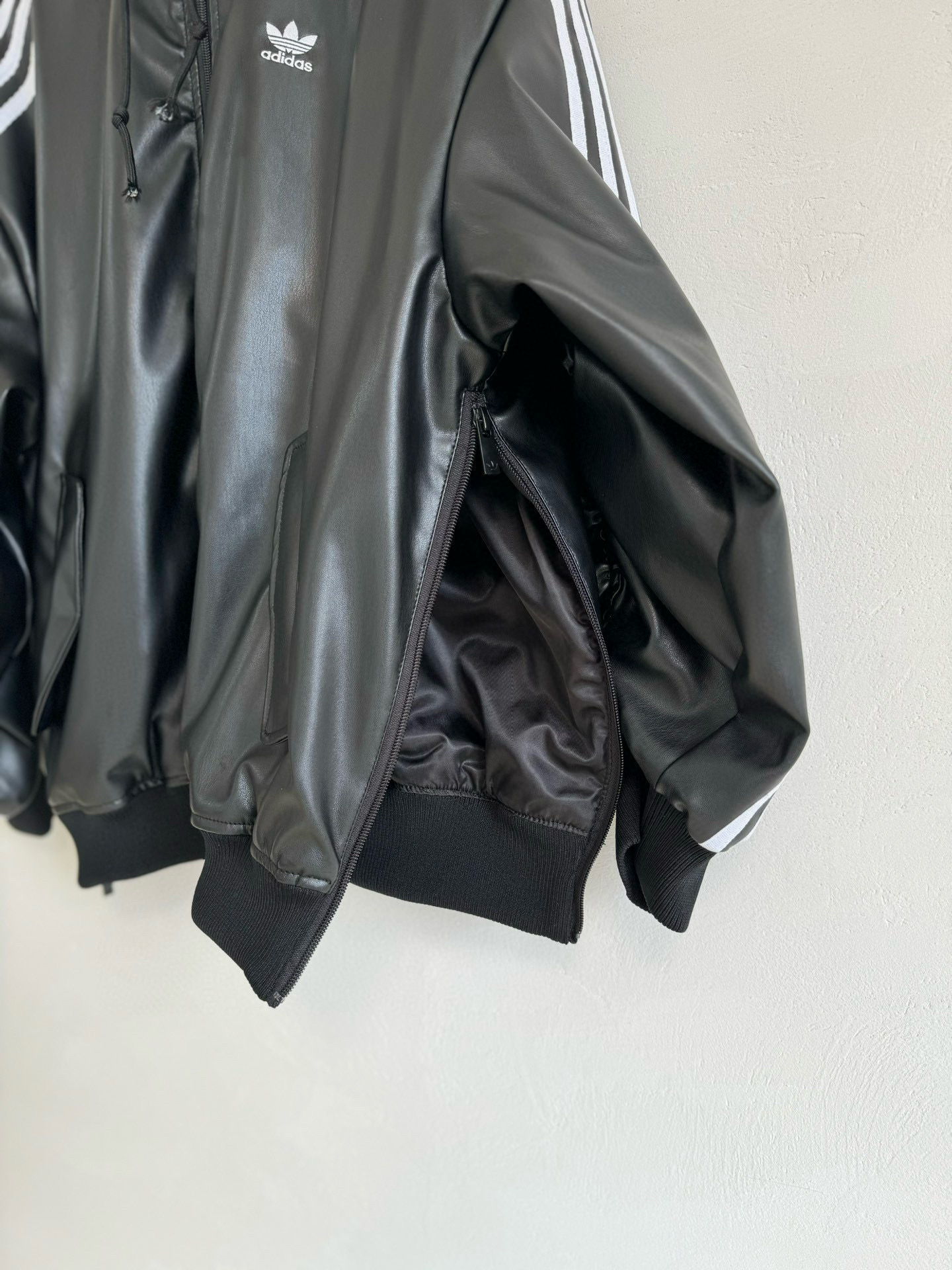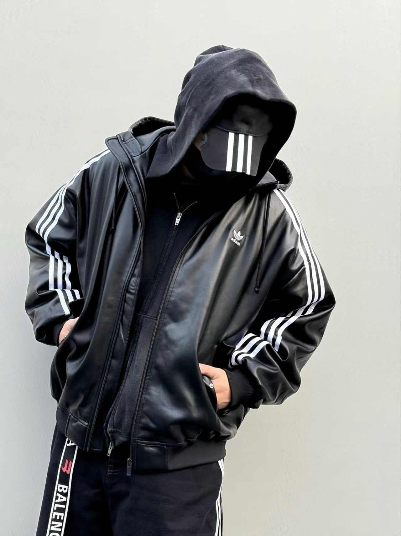NIGO Adidas Originals Men's And Women's Spring And Fall Models Three Stripes Color Blocking Loose Sports Hooded Leather Jacket #nigo98641
