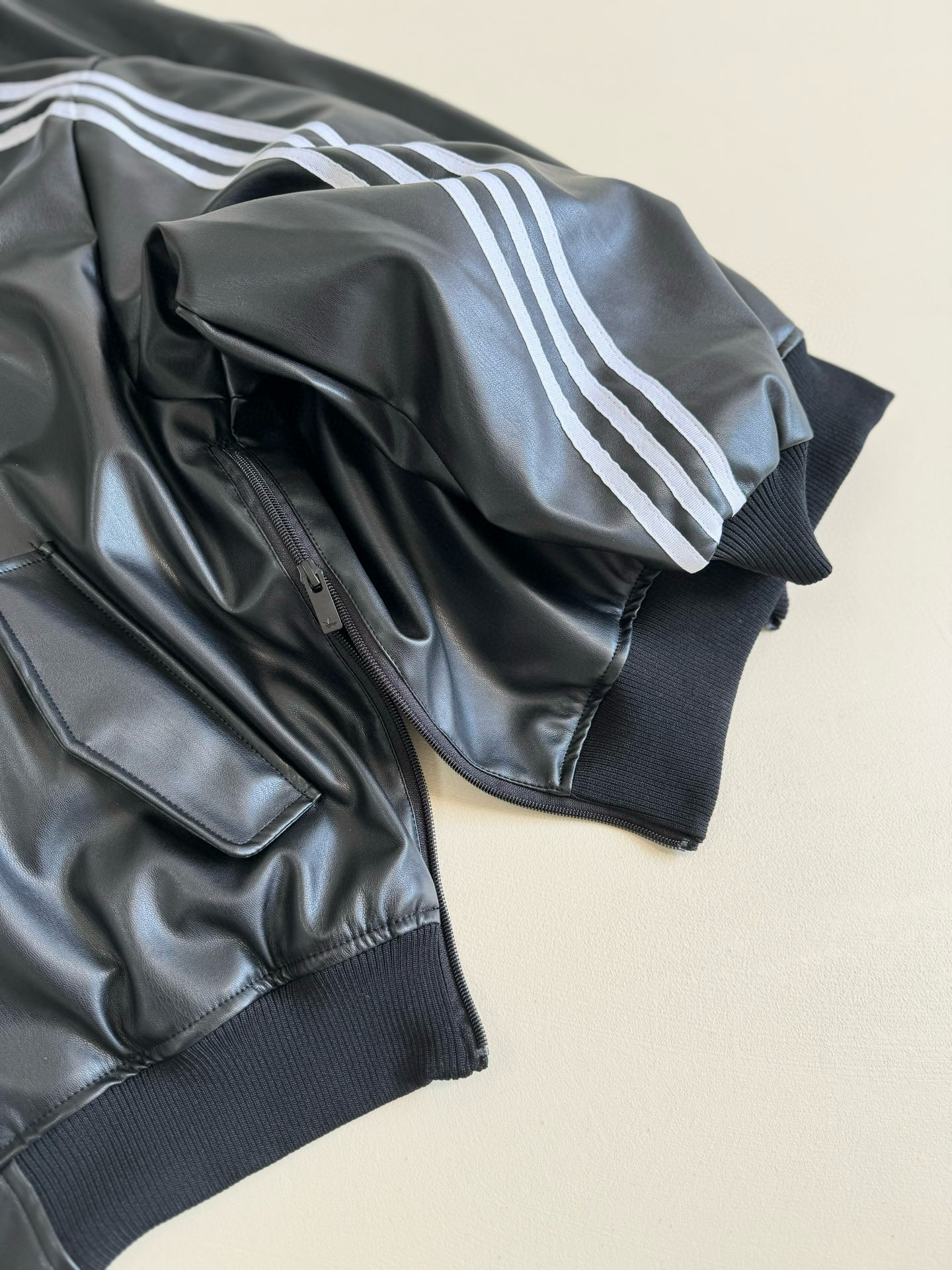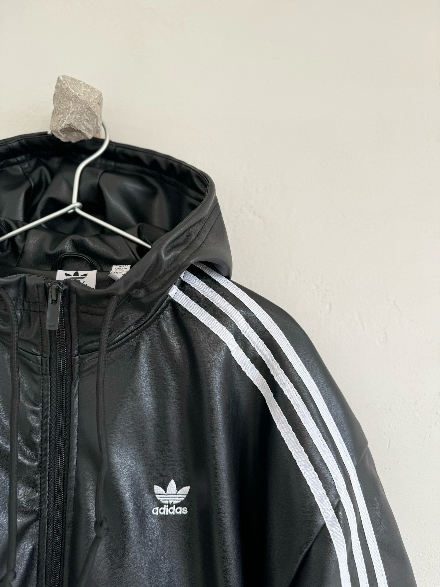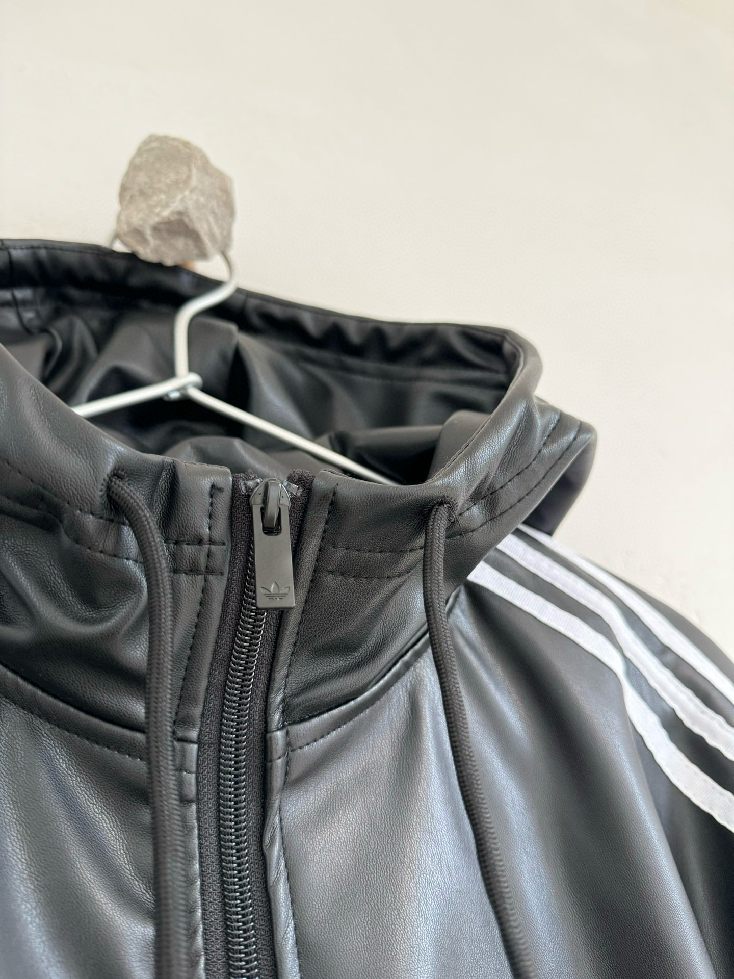NIGO Adidas Originals Men's And Women's Spring And Fall Models Three Stripes Color Blocking Loose Sports Hooded Leather Jacket #nigo98641